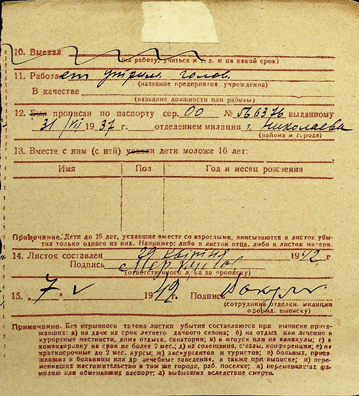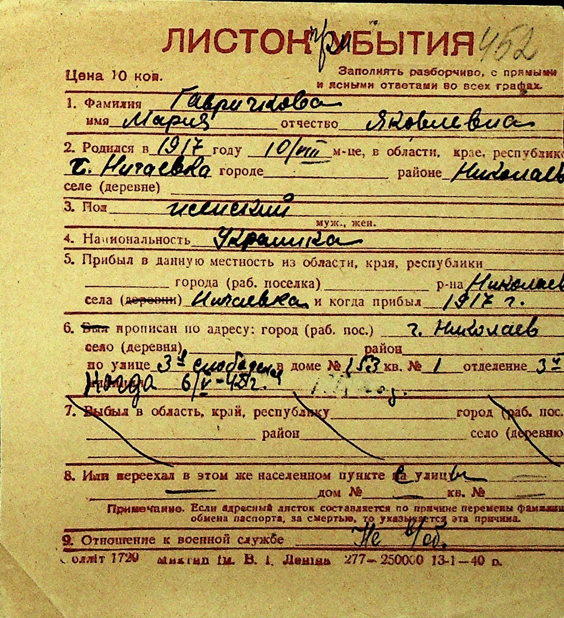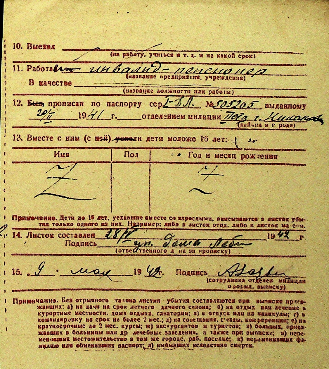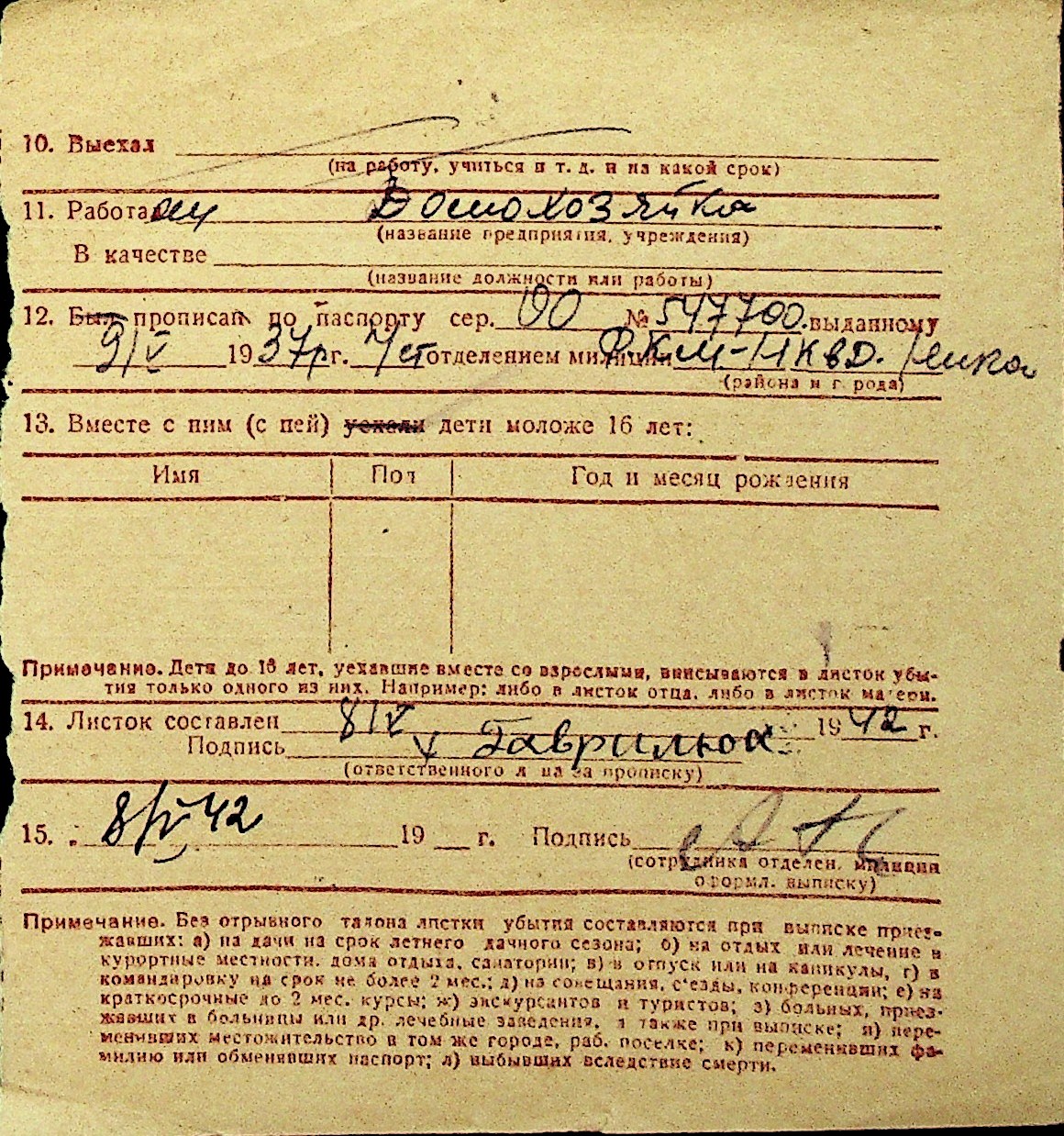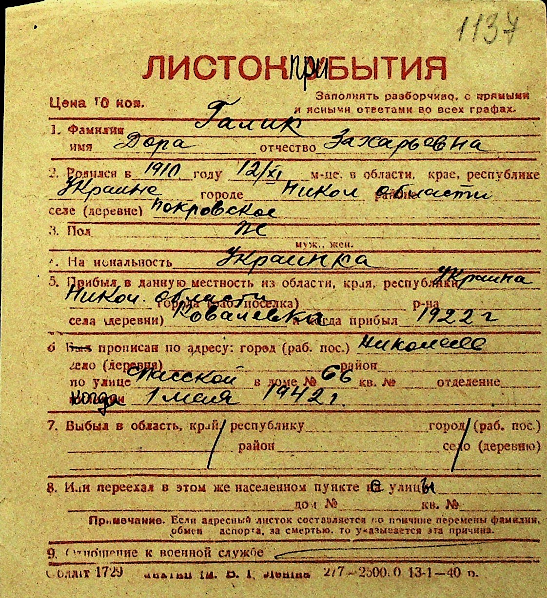 • • Перелік карток до фонду № Н-1016