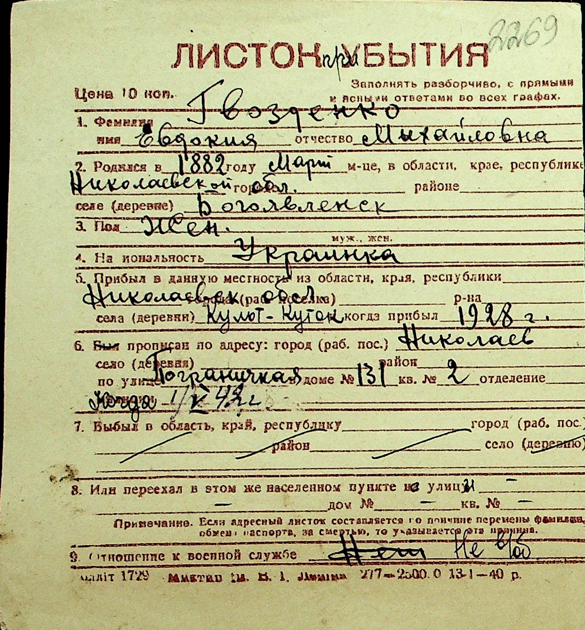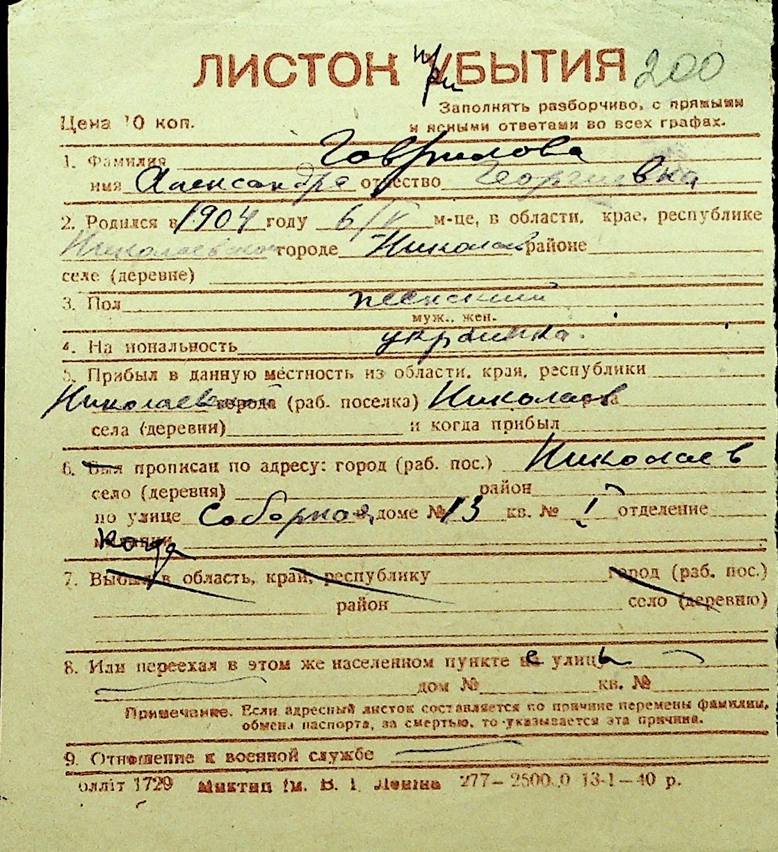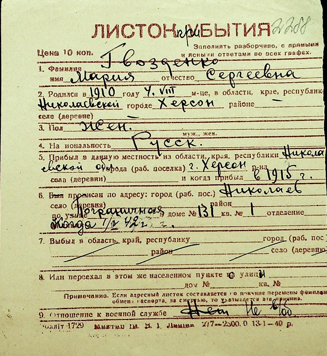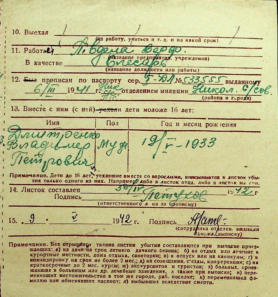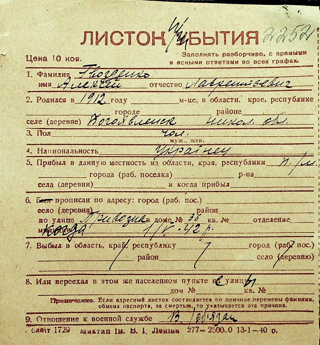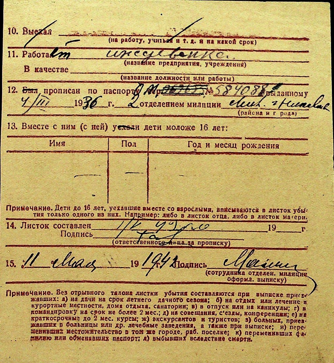 • • Перелік карток до фонду № Н-1016