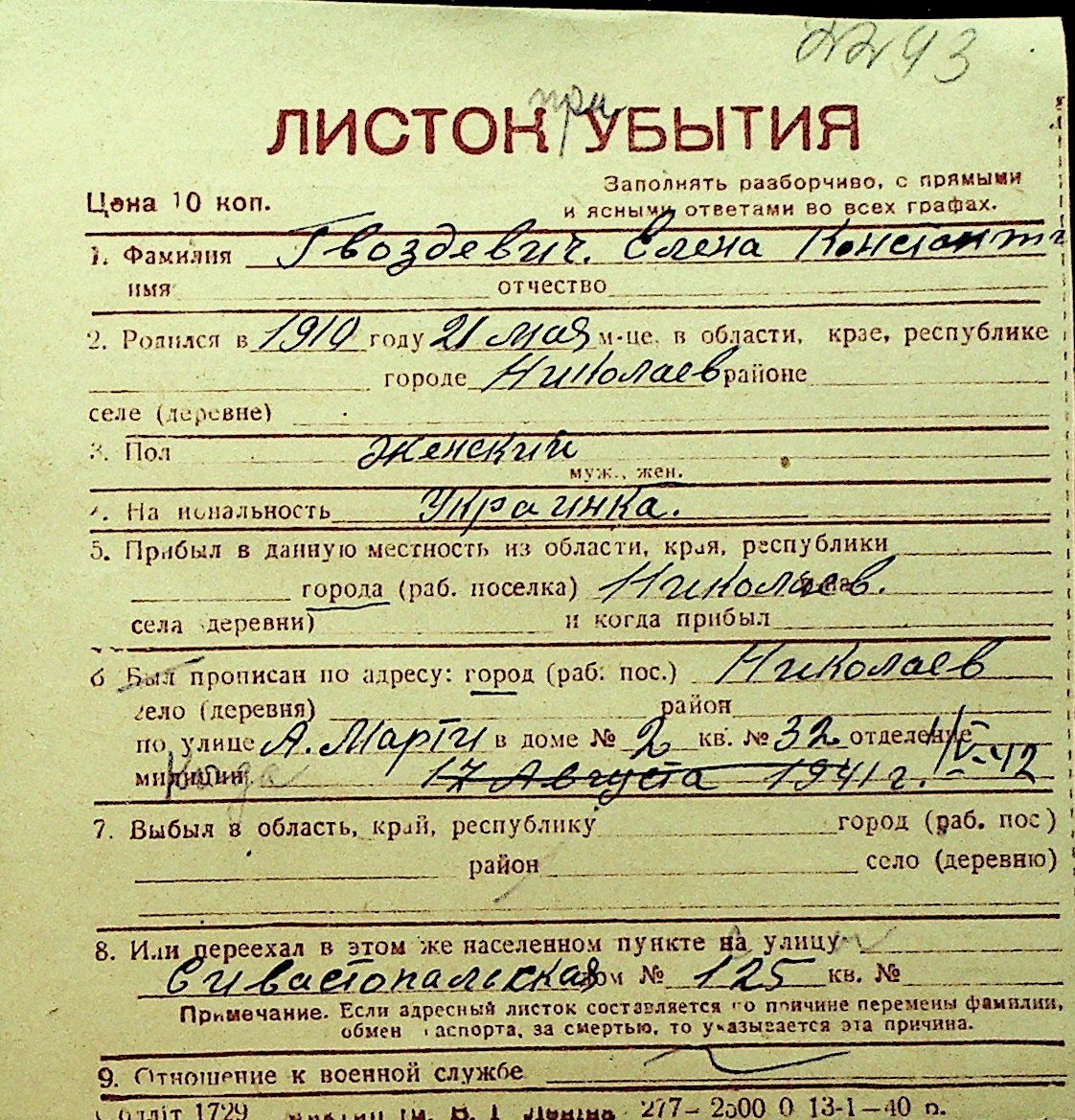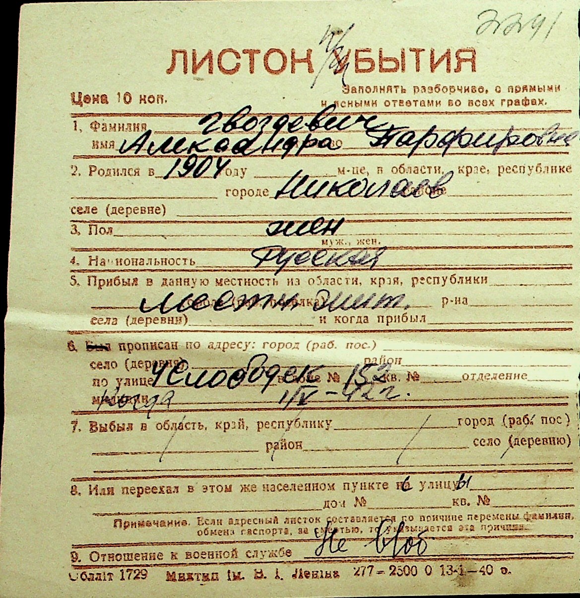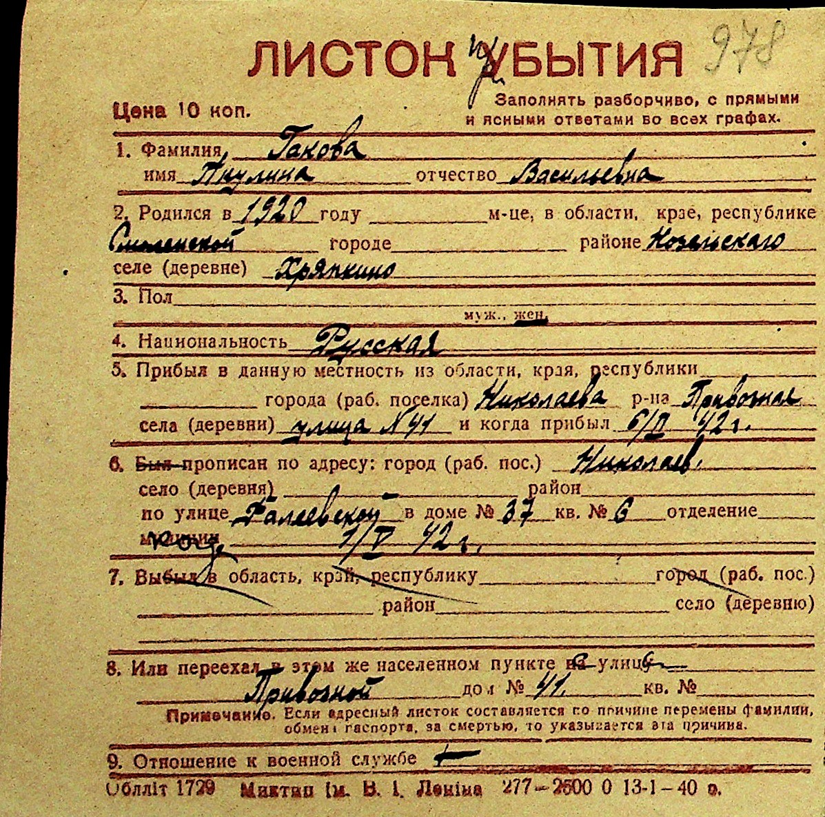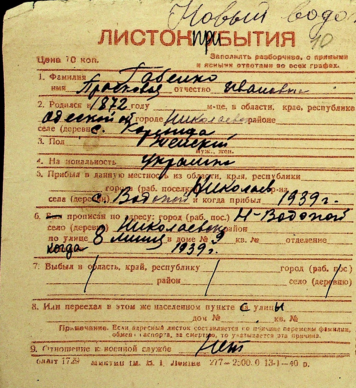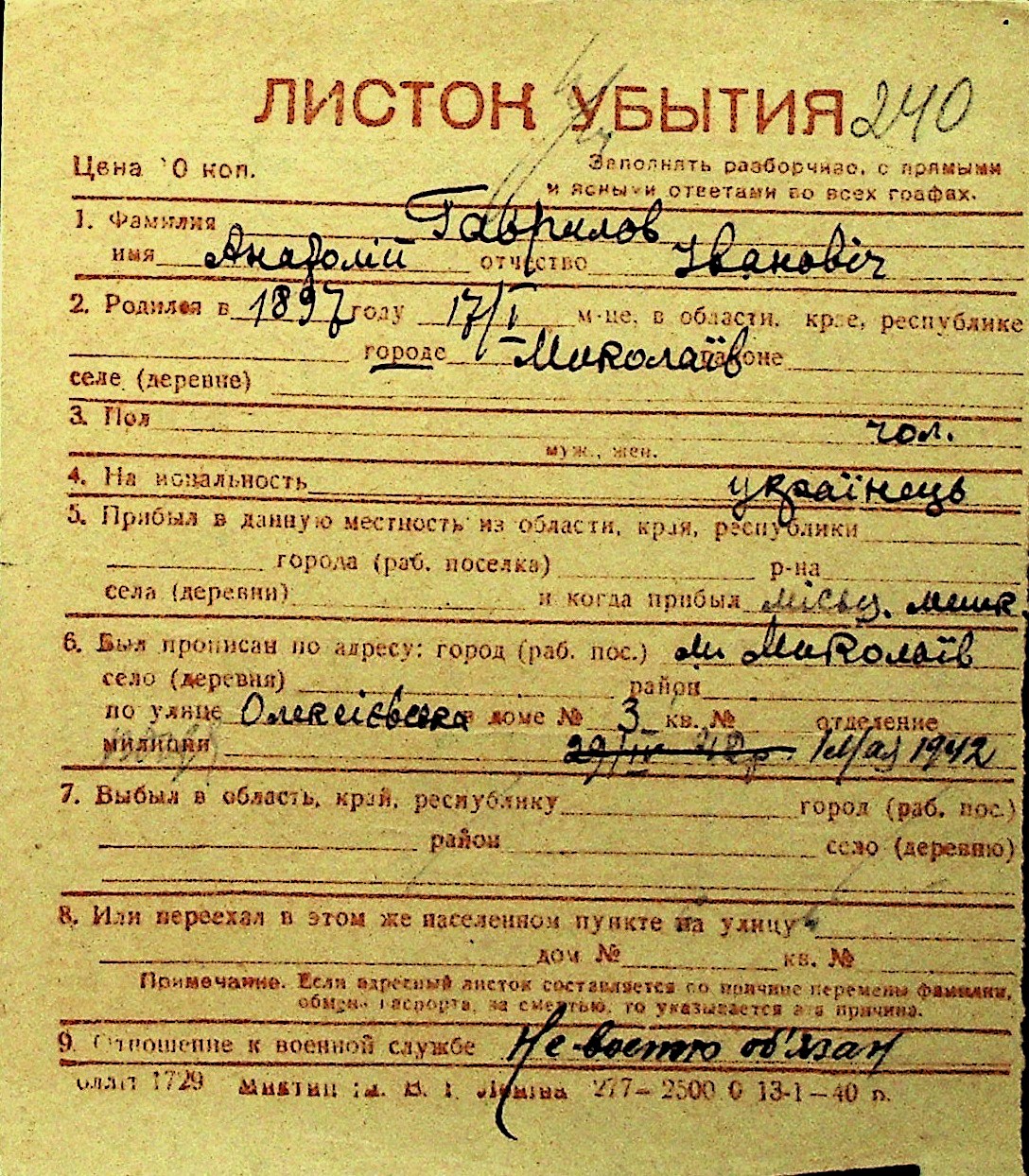 • • Перелік карток до фонду № Н-1016