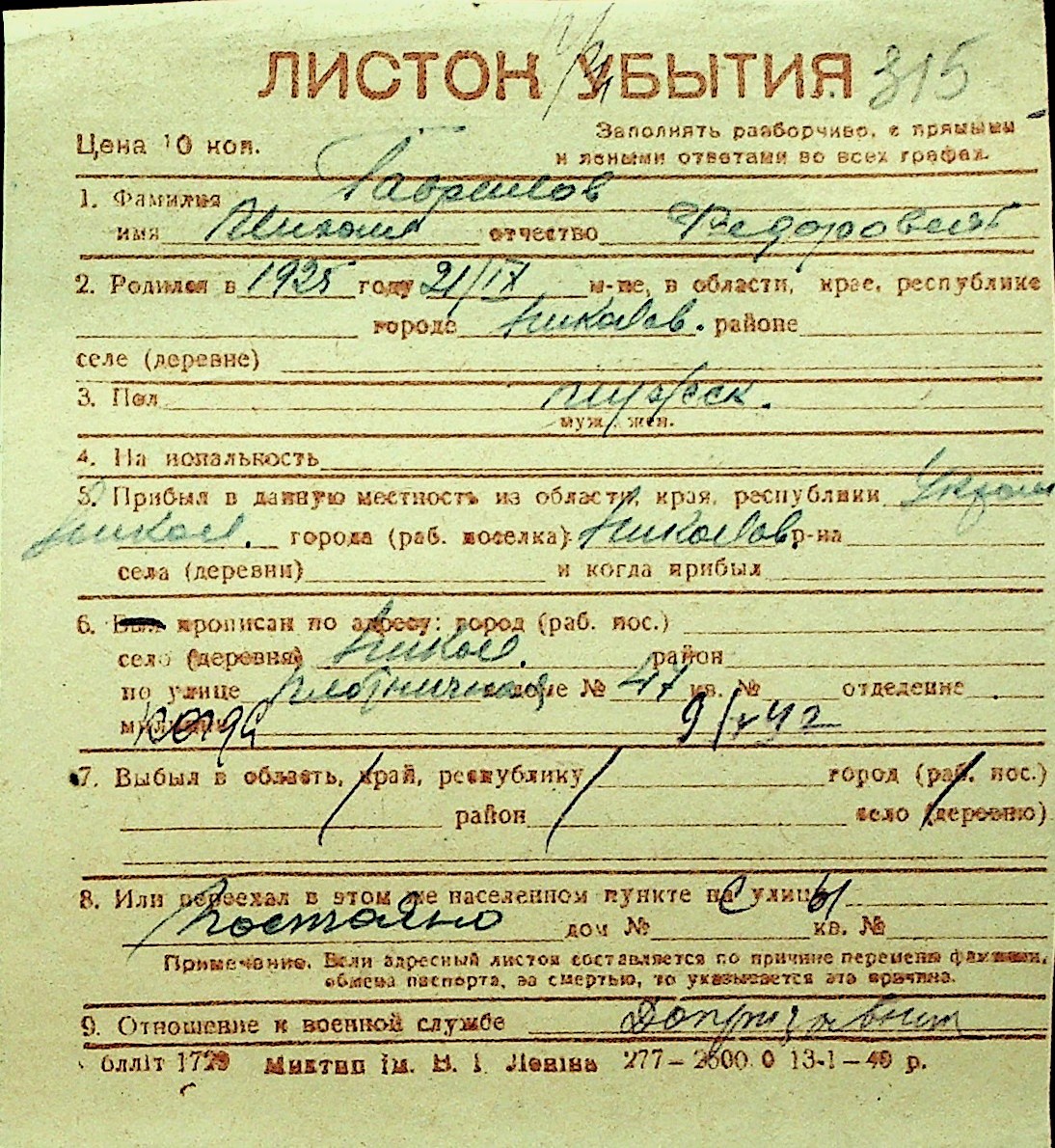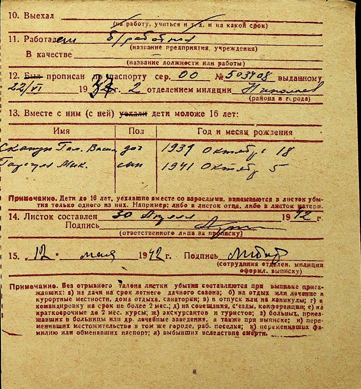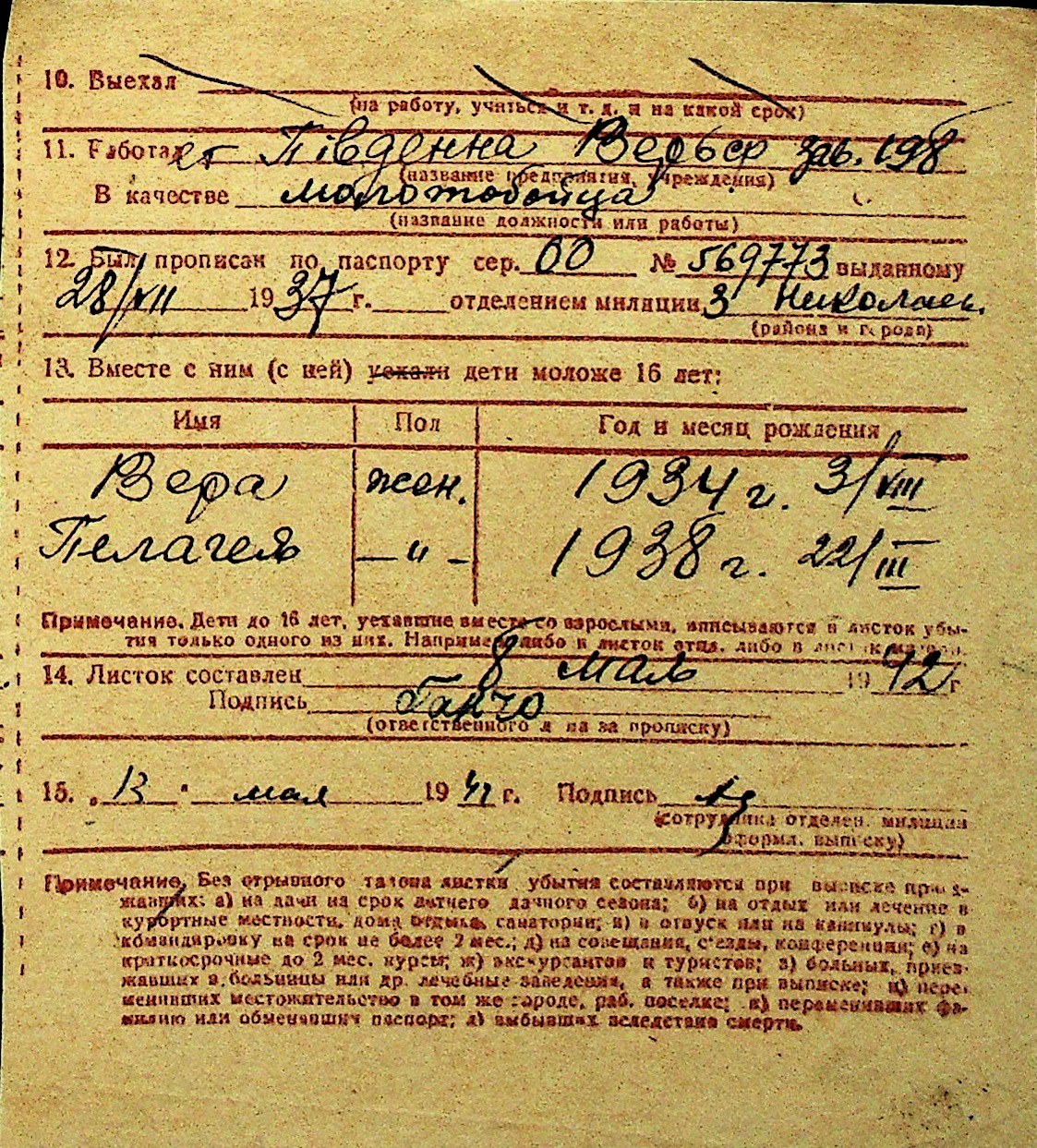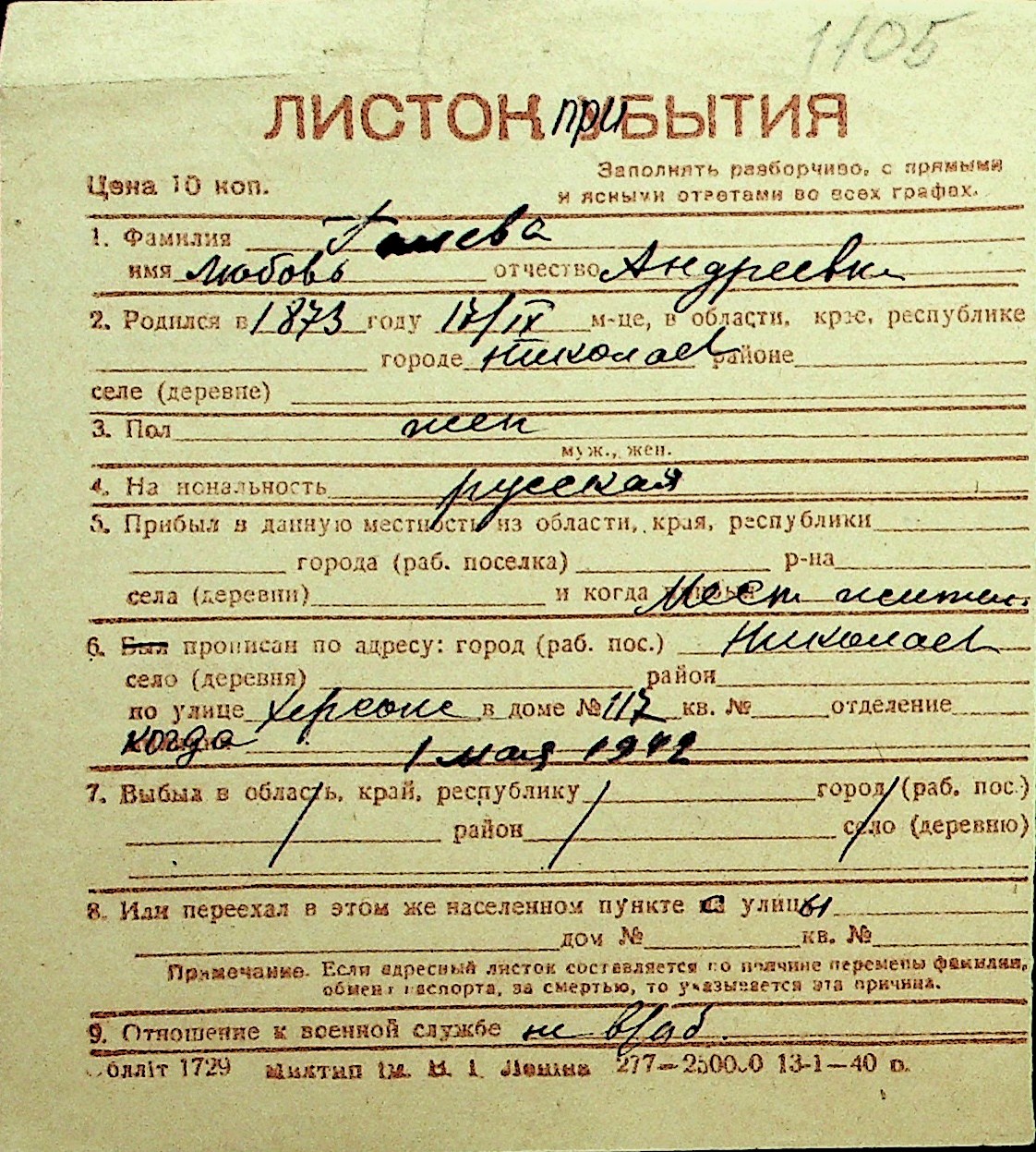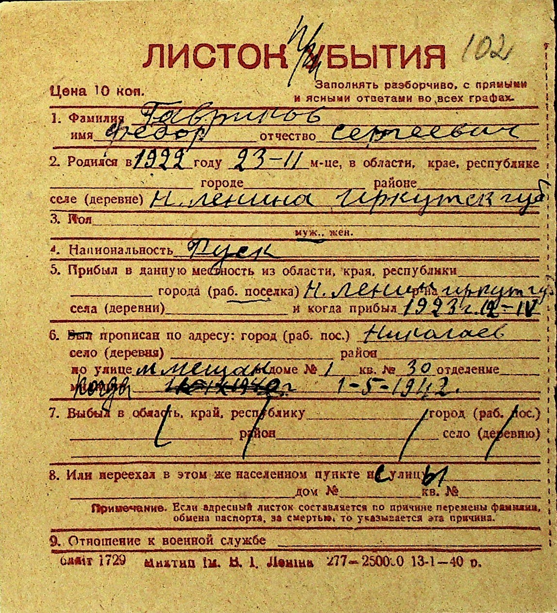 • • Перелік карток до фонду № Н-1016