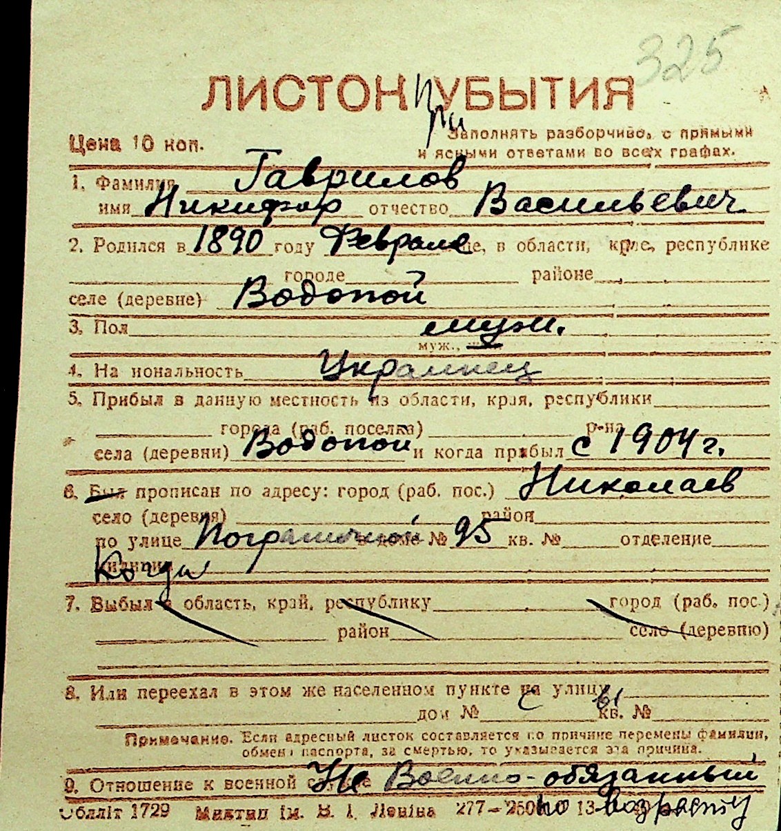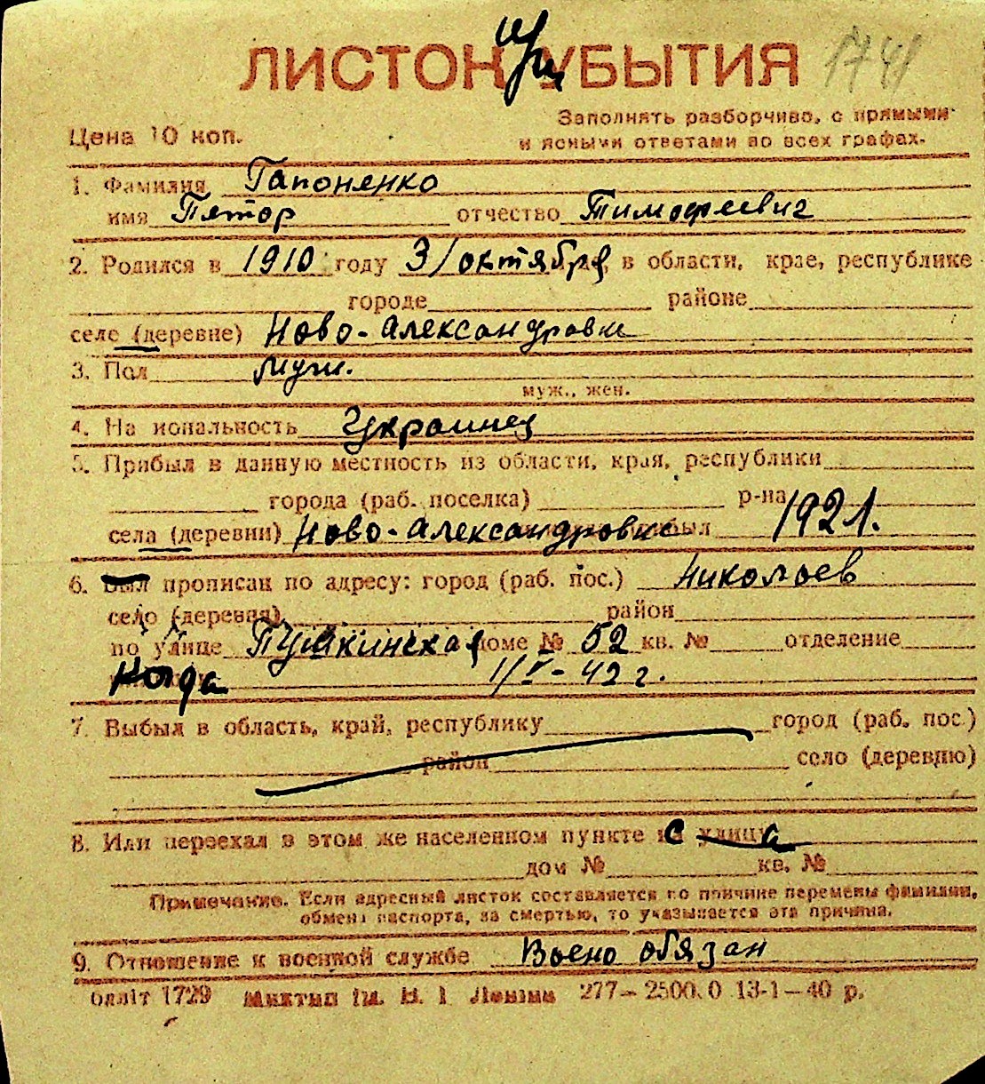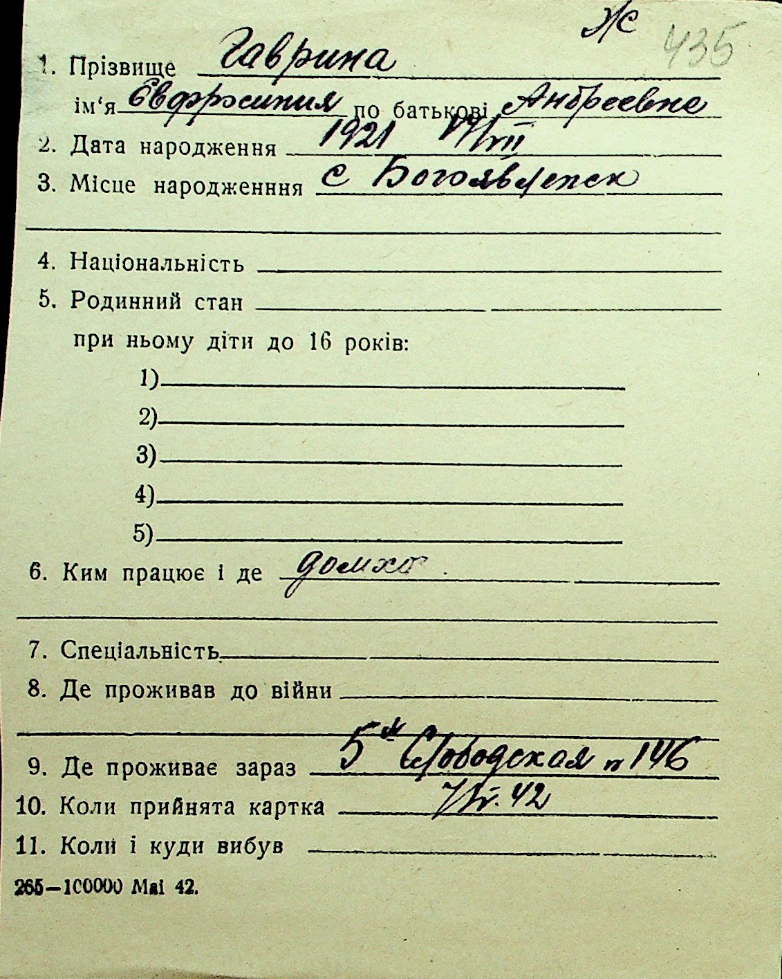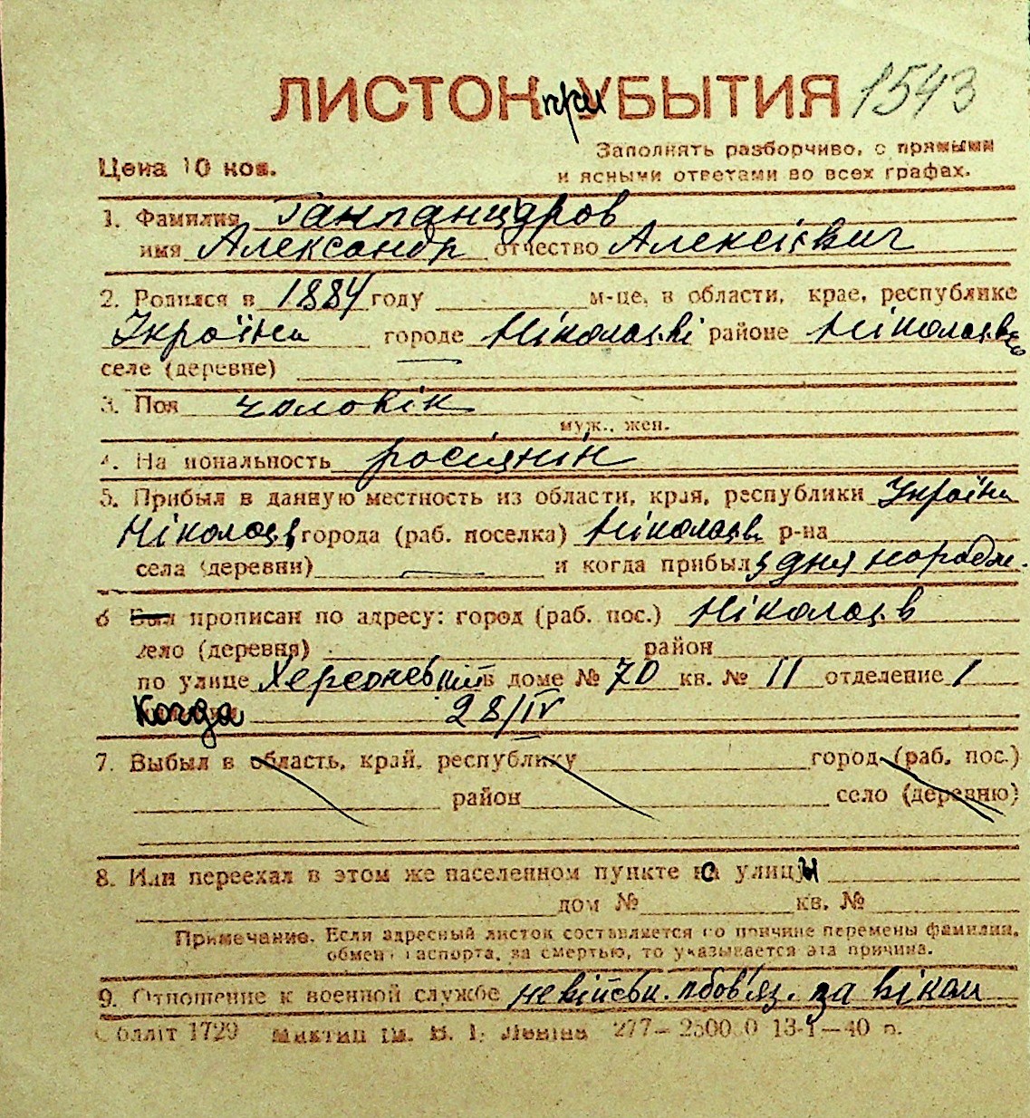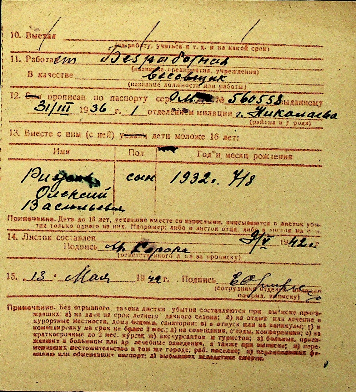 • • Перелік карток до фонду № Н-1016