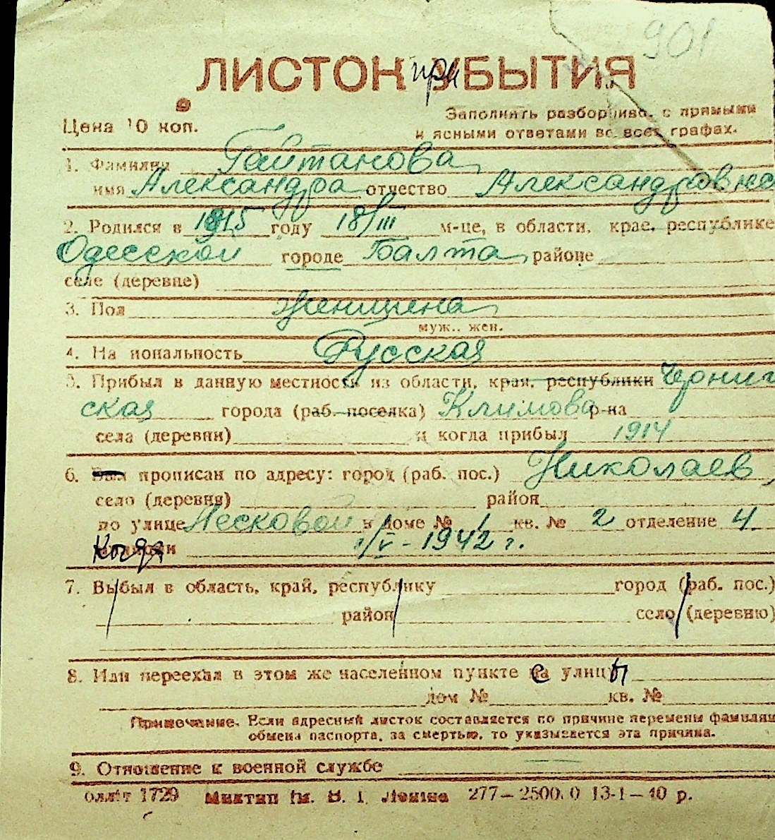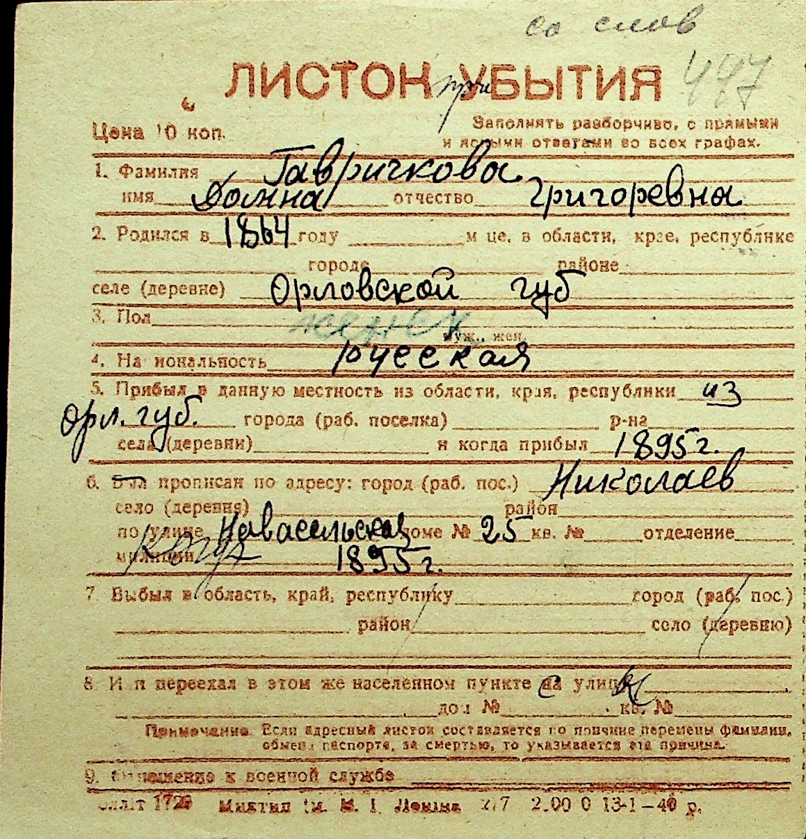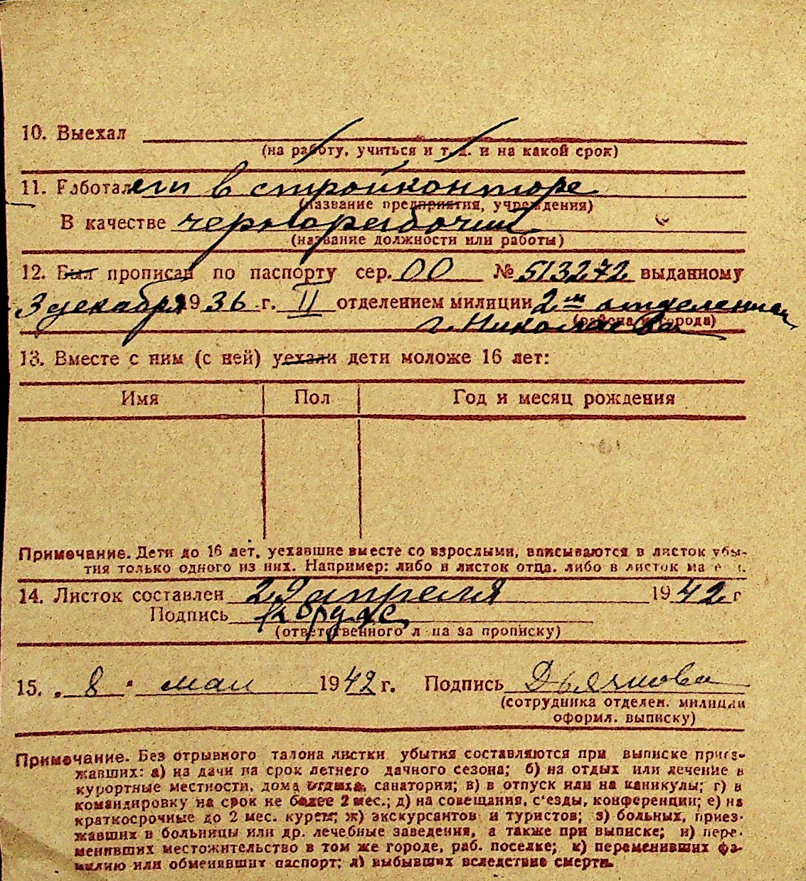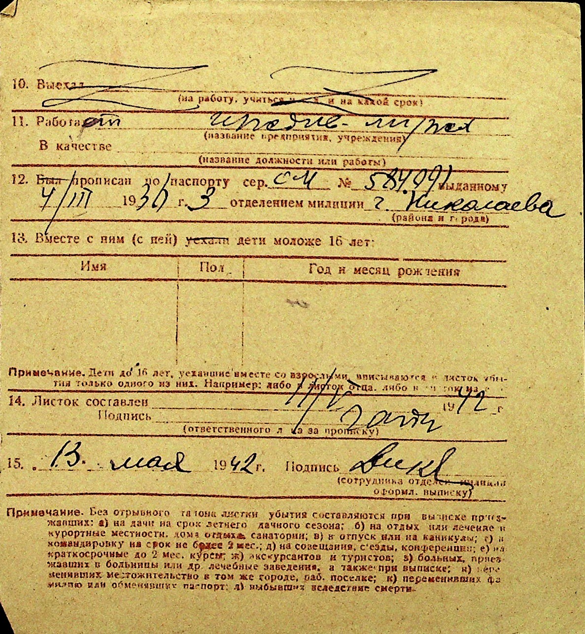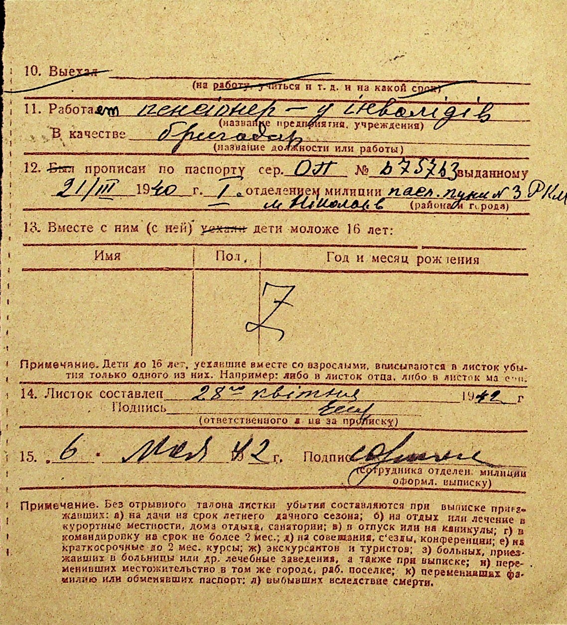 • • Перелік карток до фонду № Н-1016