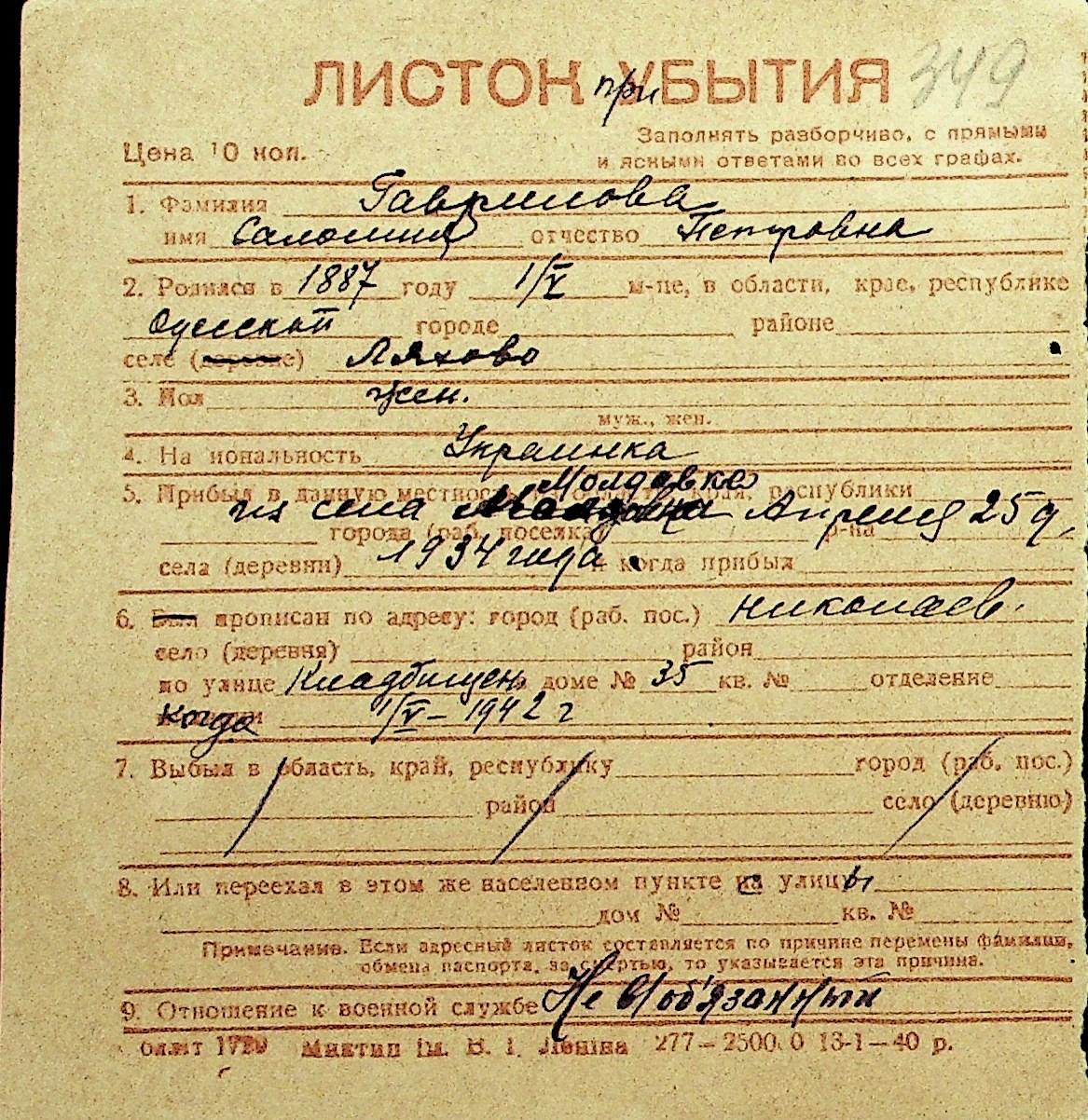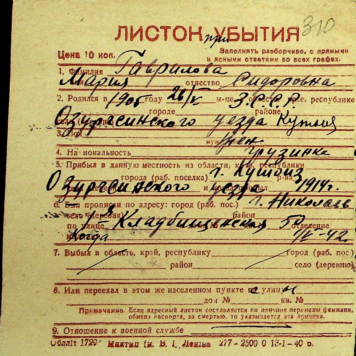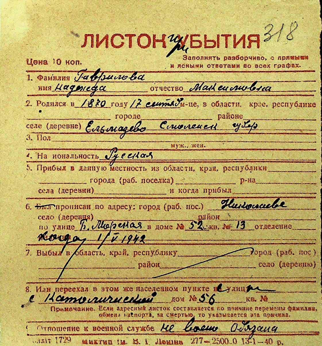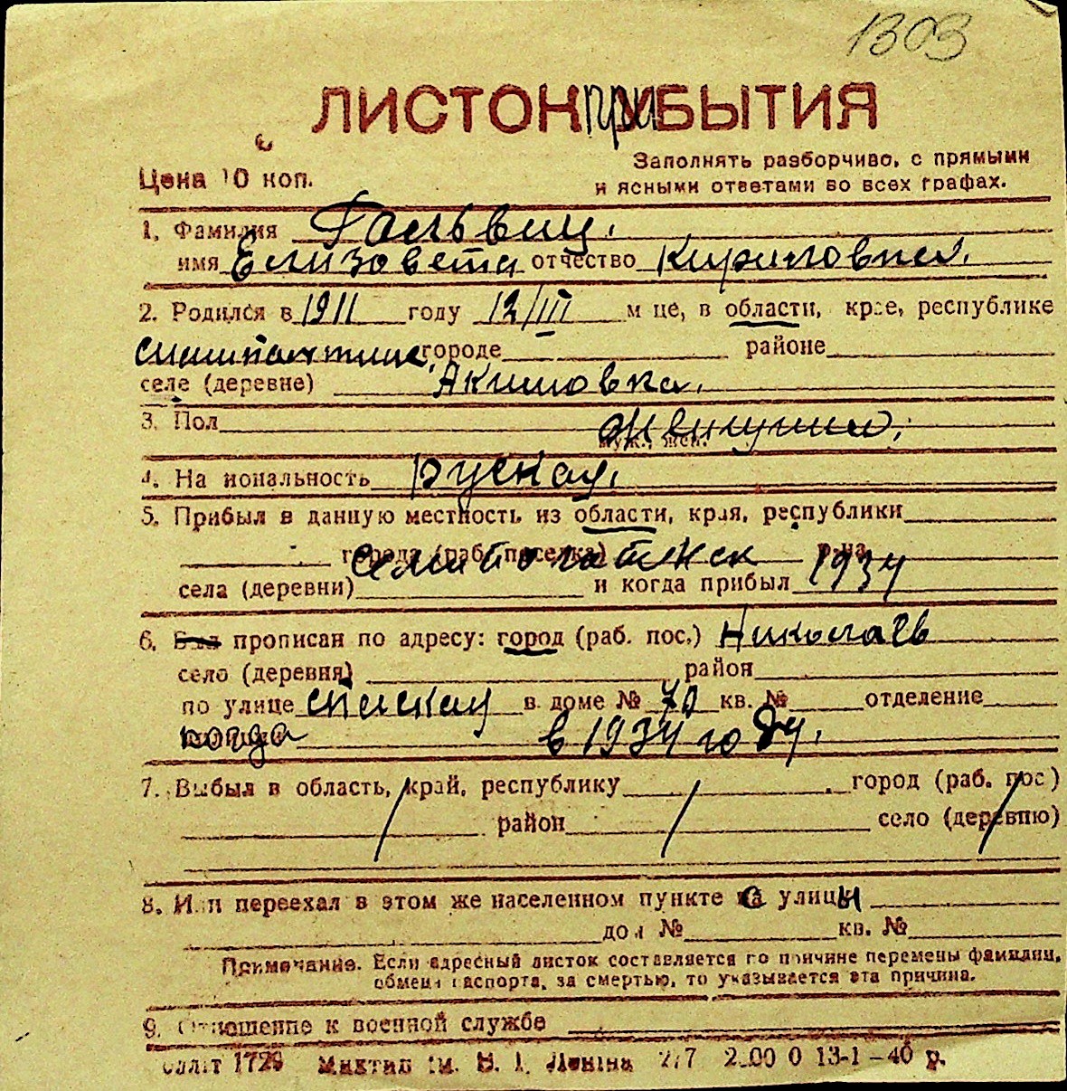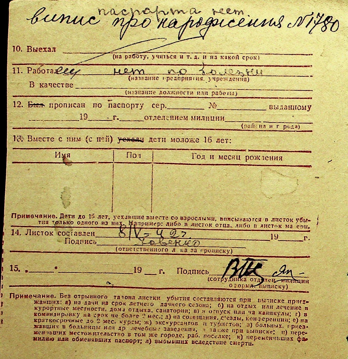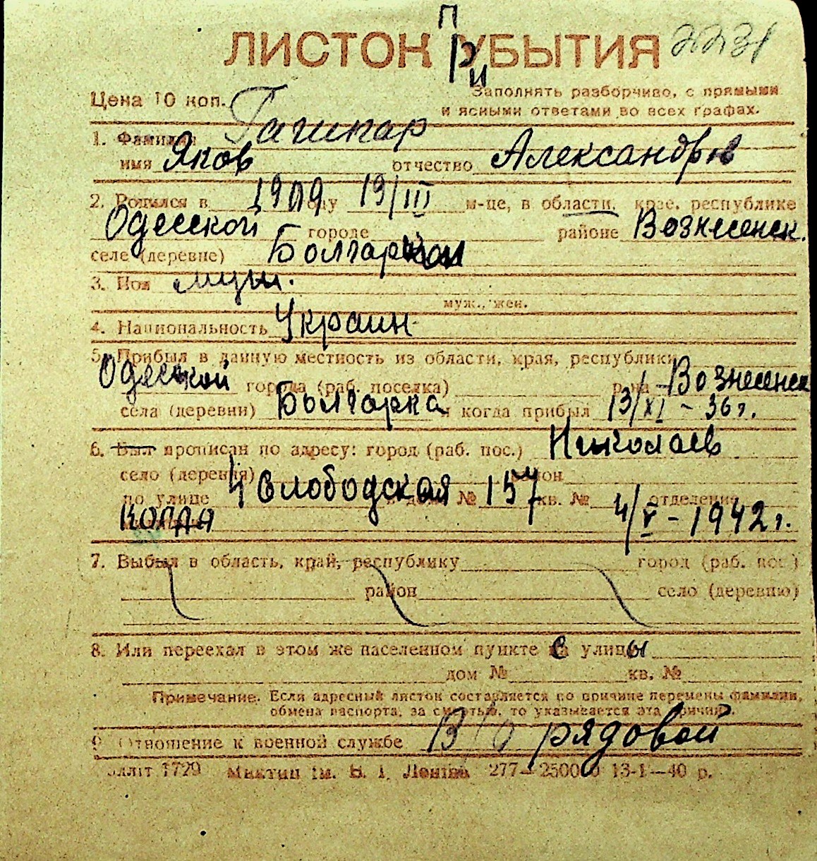 • • Перелік карток до фонду № Н-1016