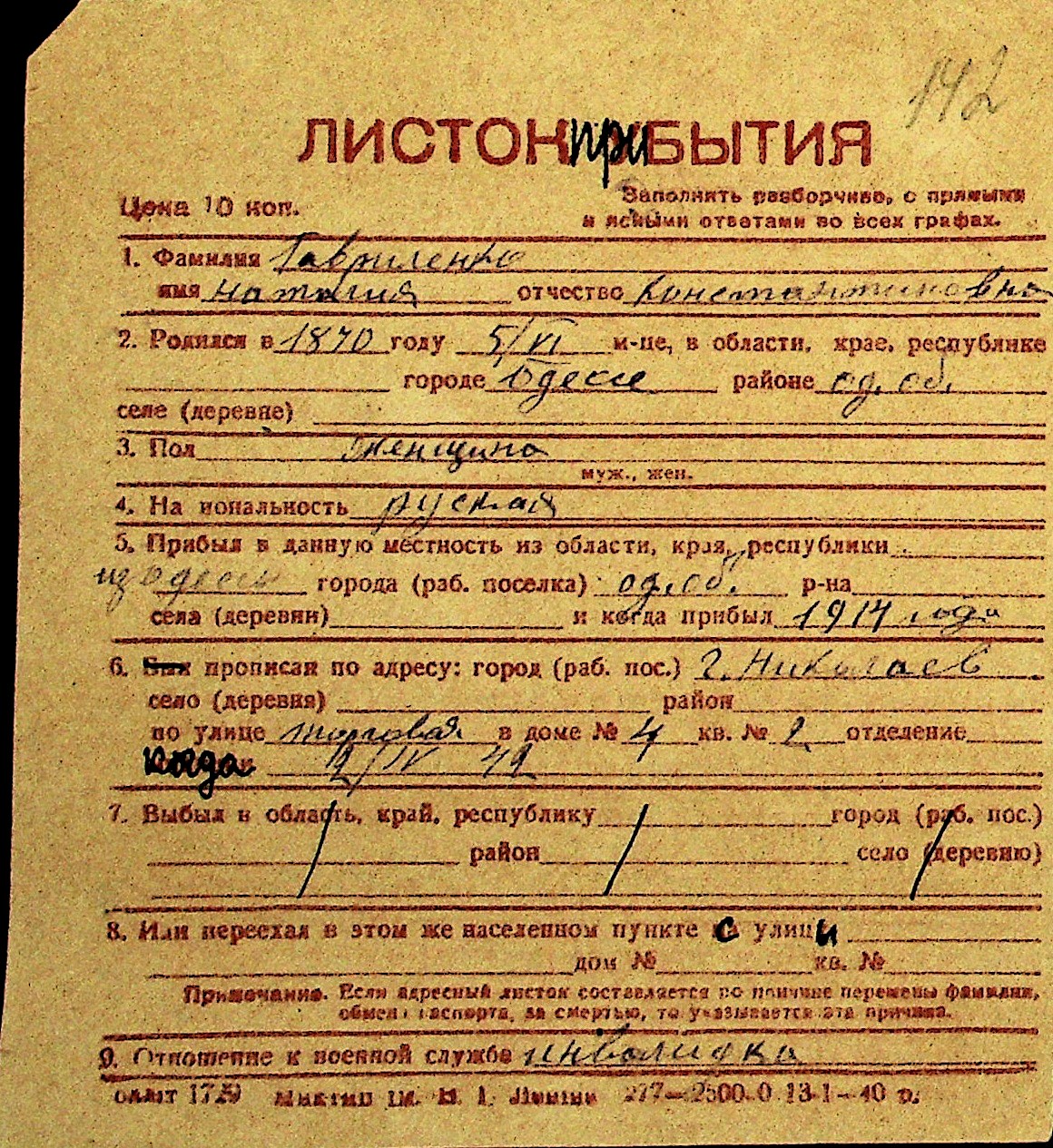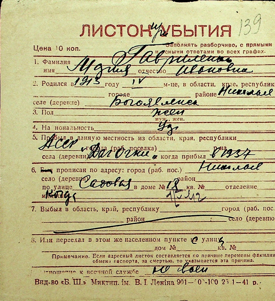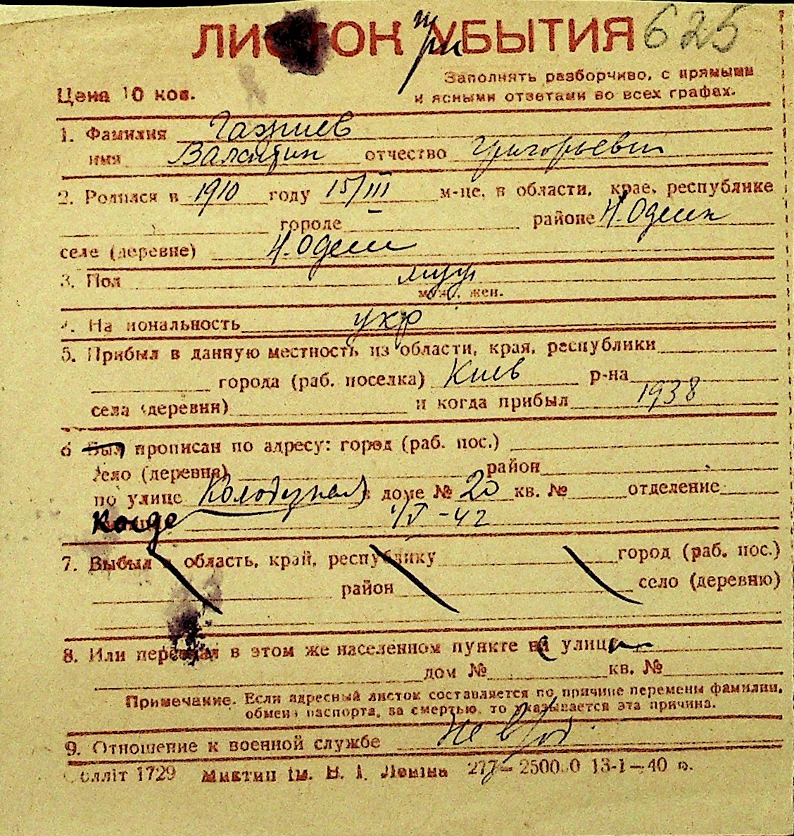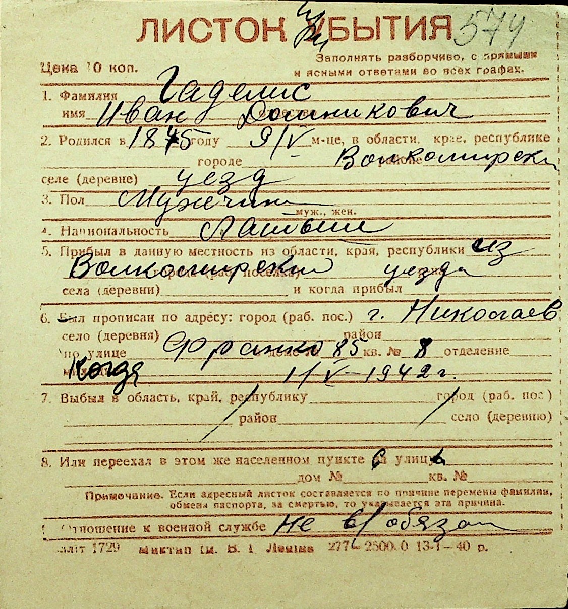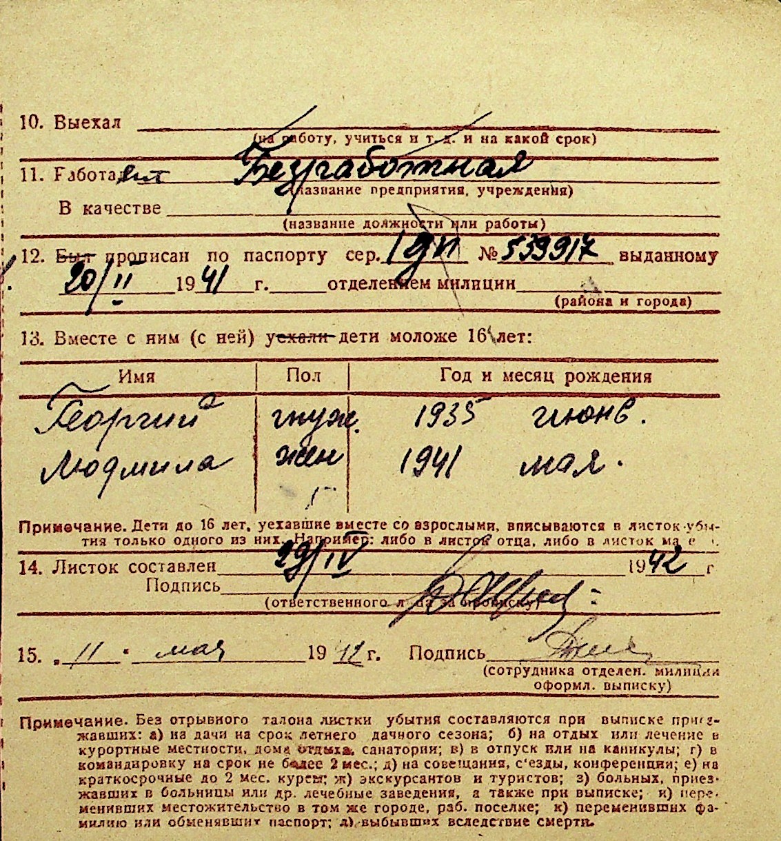 • • Перелік карток до фонду № Н-1016