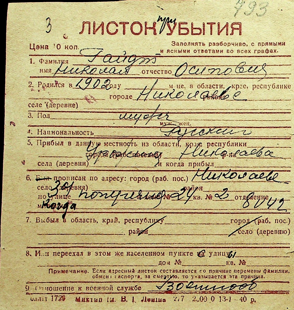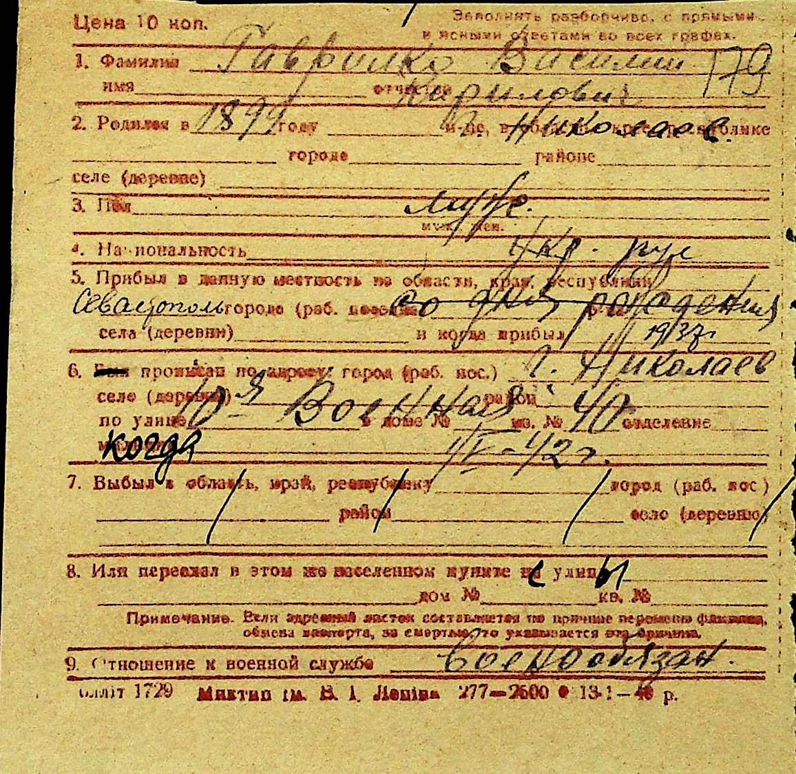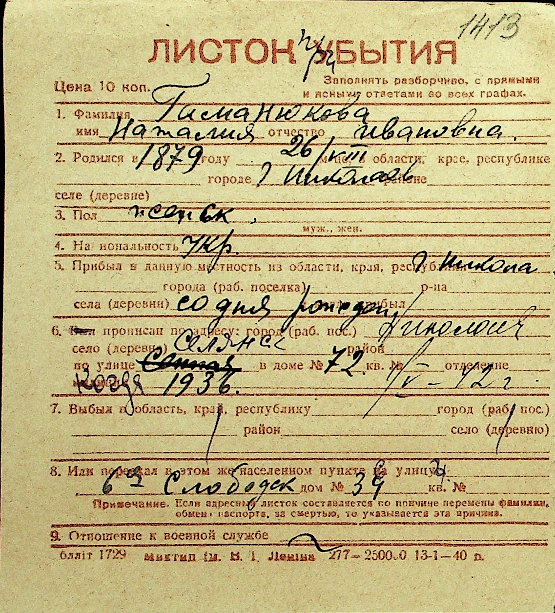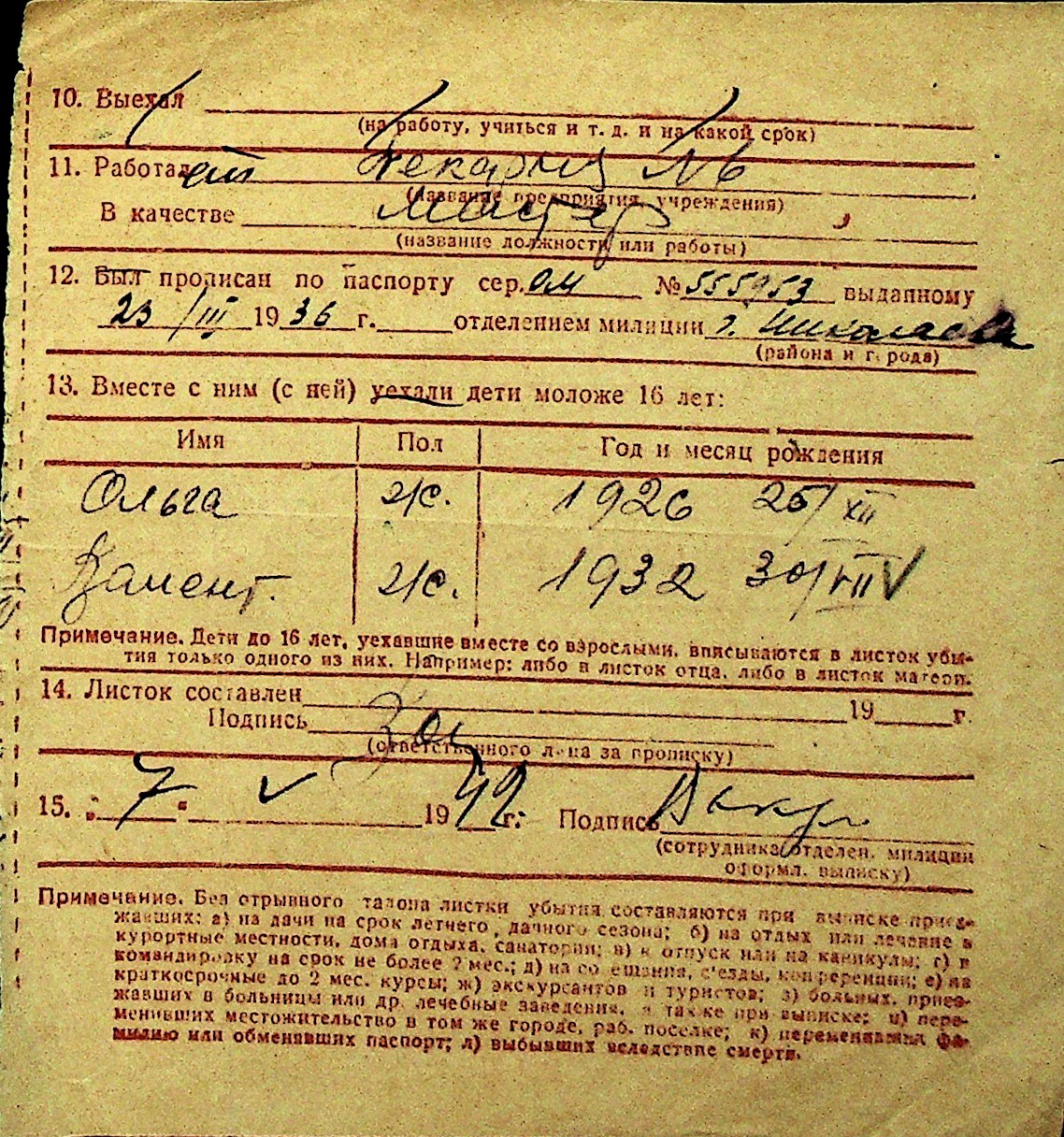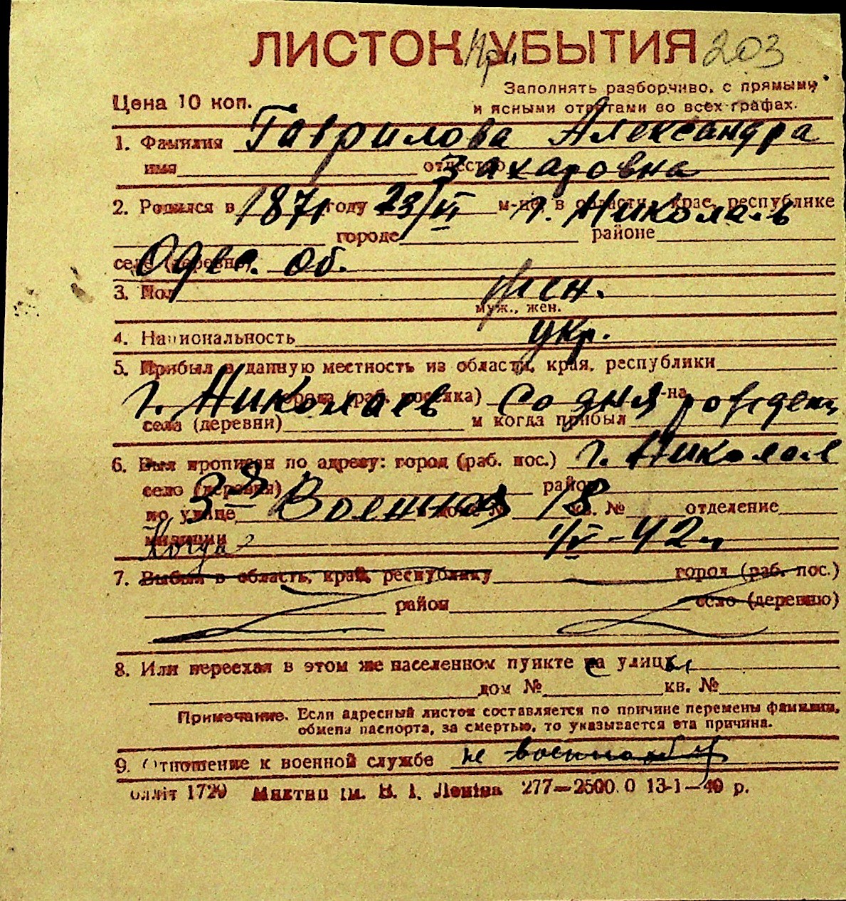 • • Перелік карток до фонду № Н-1016
