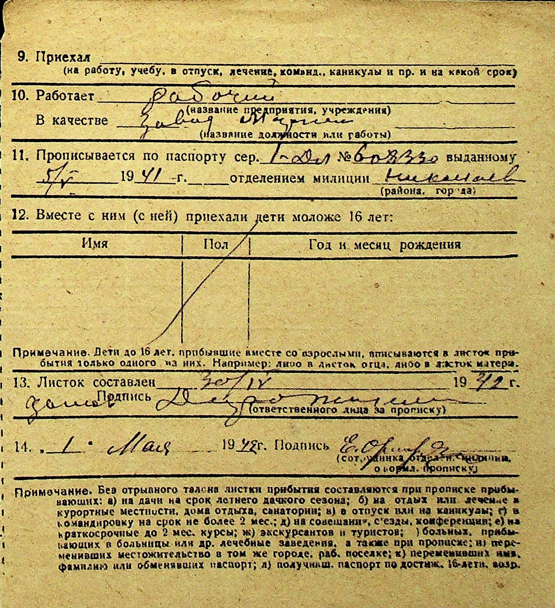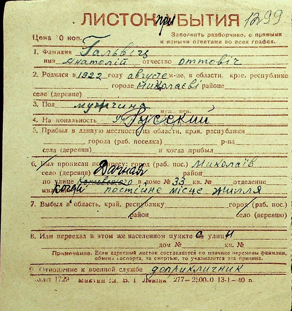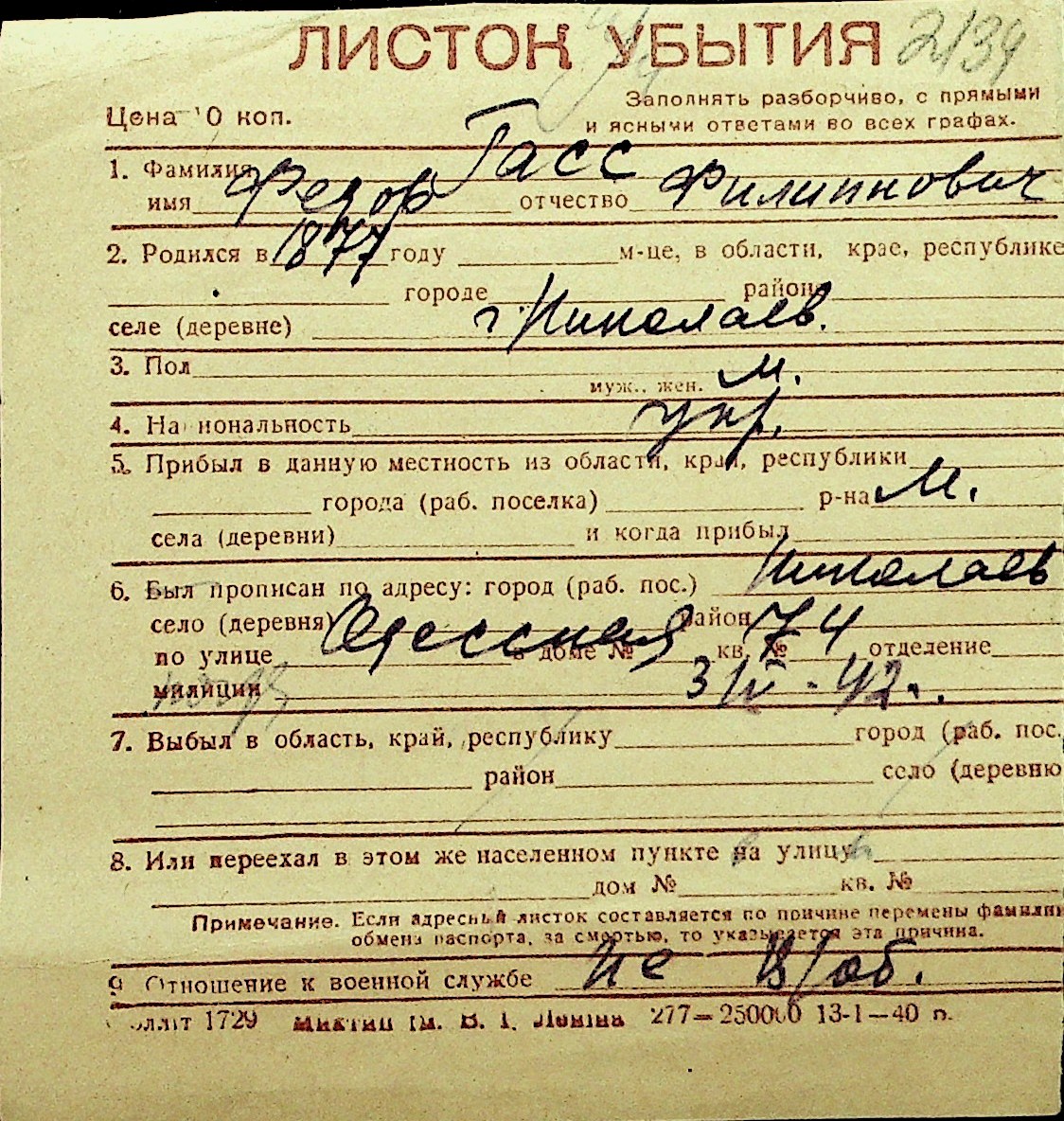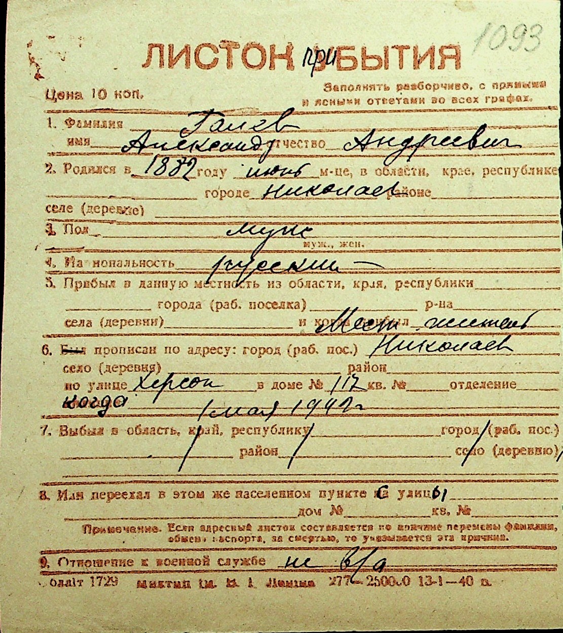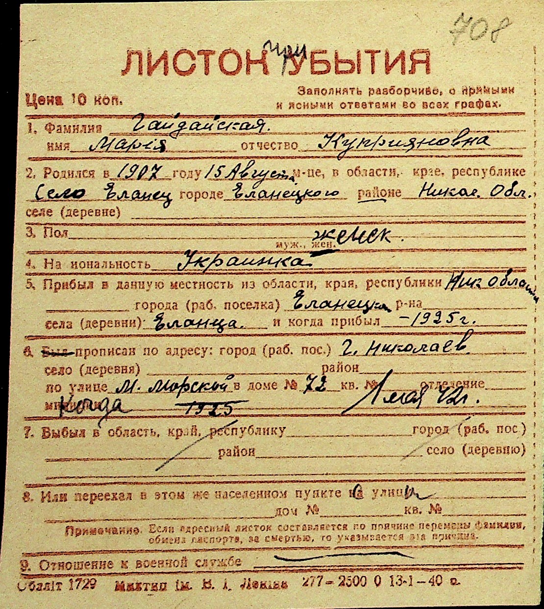 • • Перелік карток до фонду № Н-1016