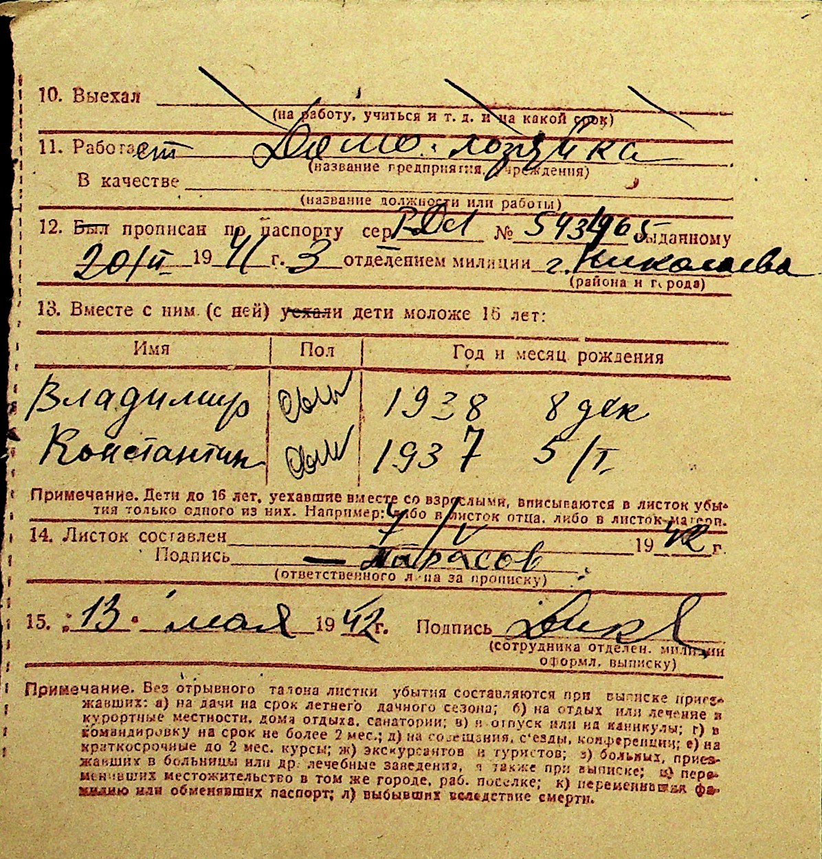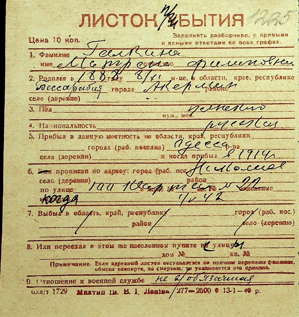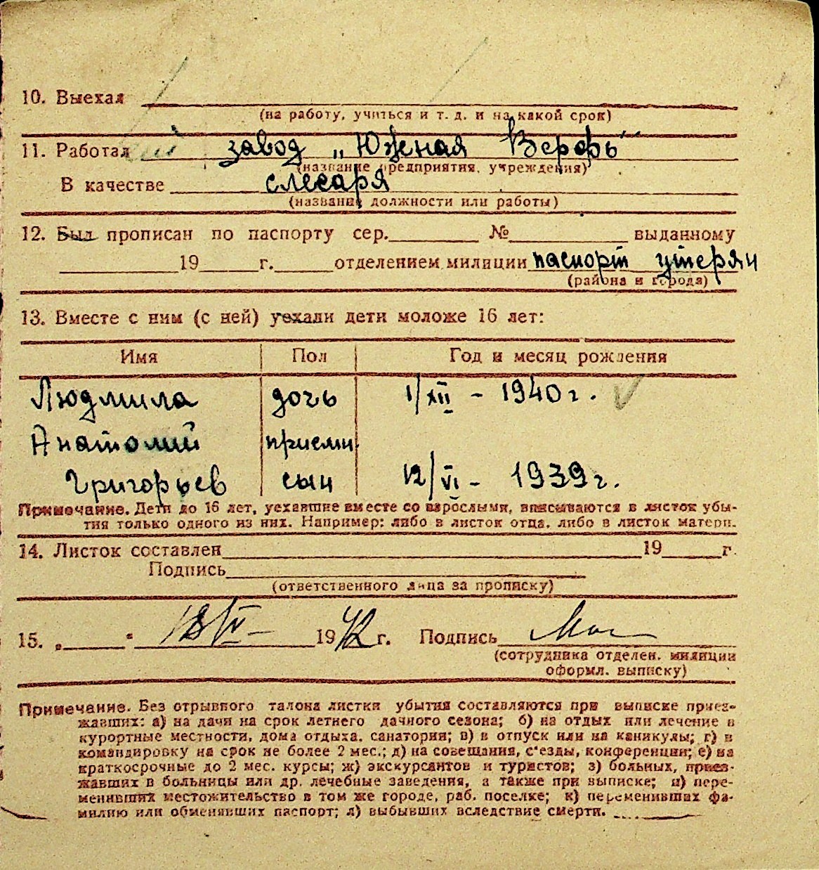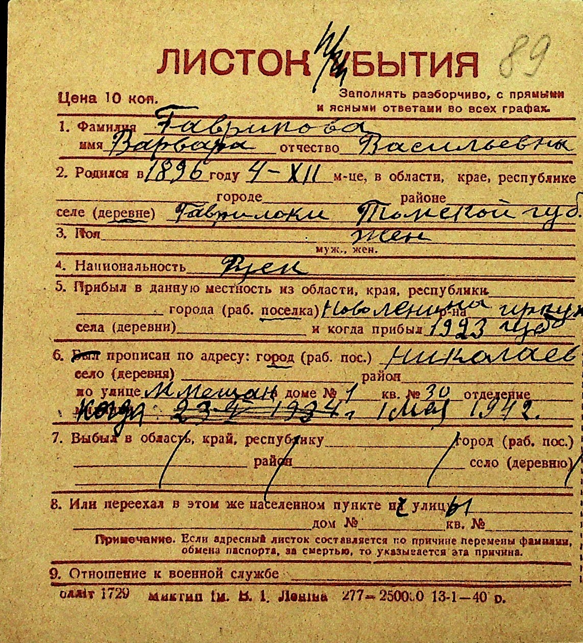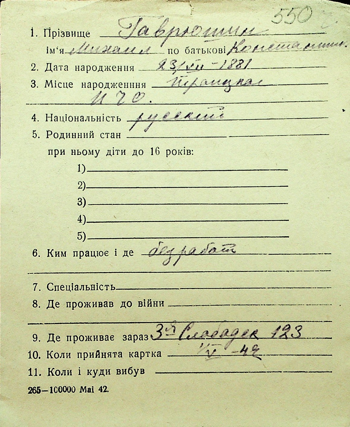 • • Перелік карток до фонду № Н-1016