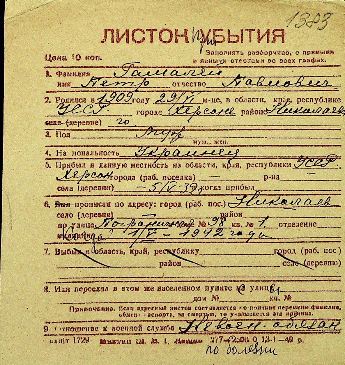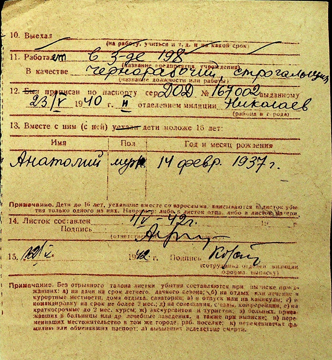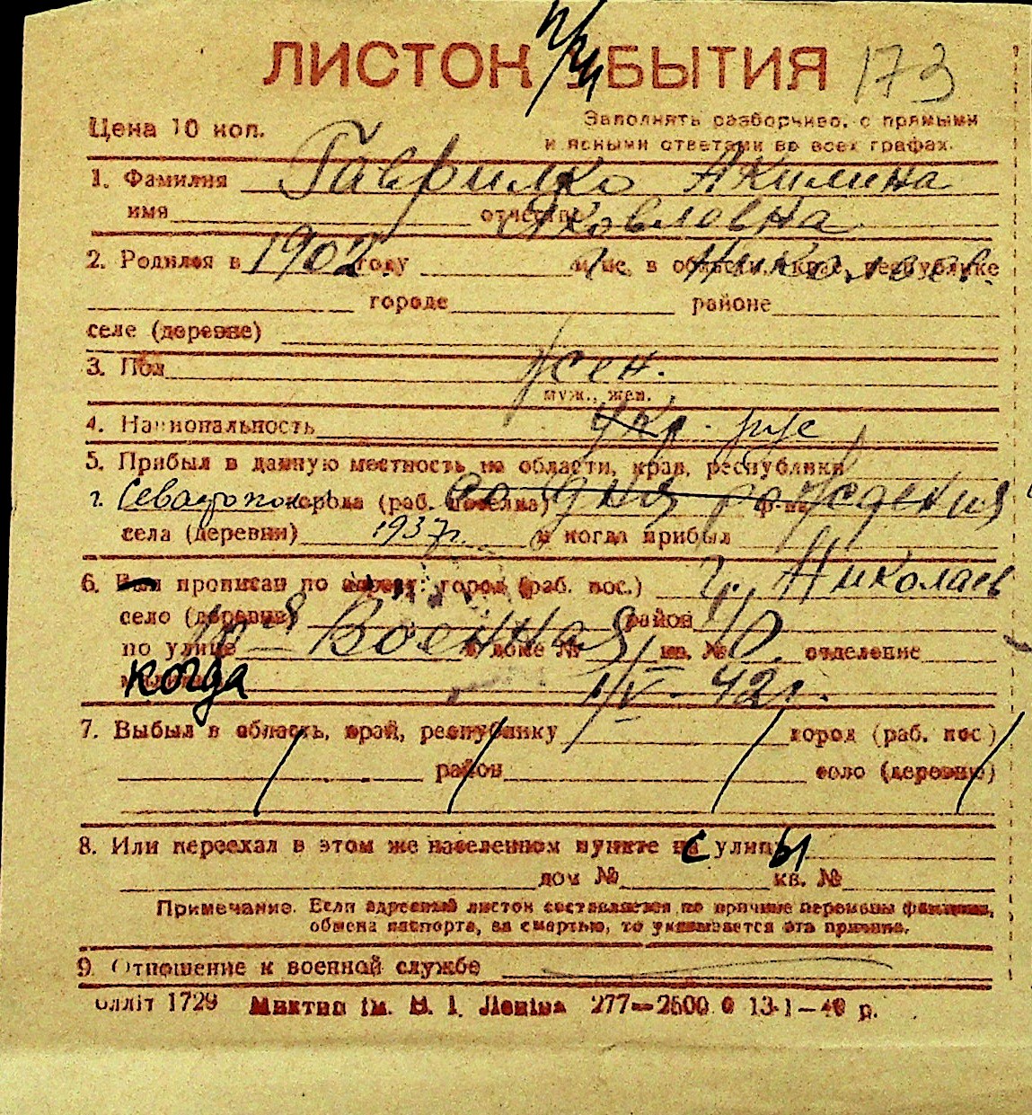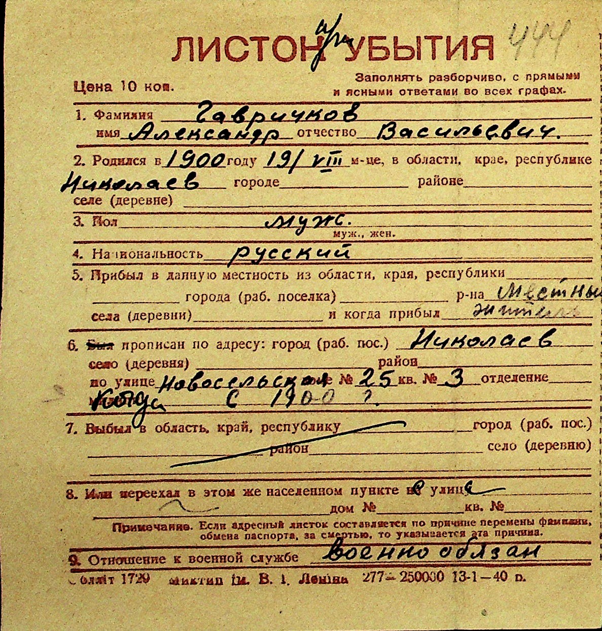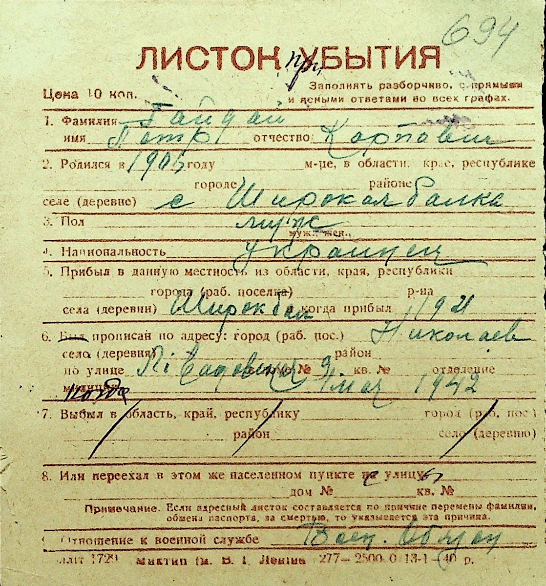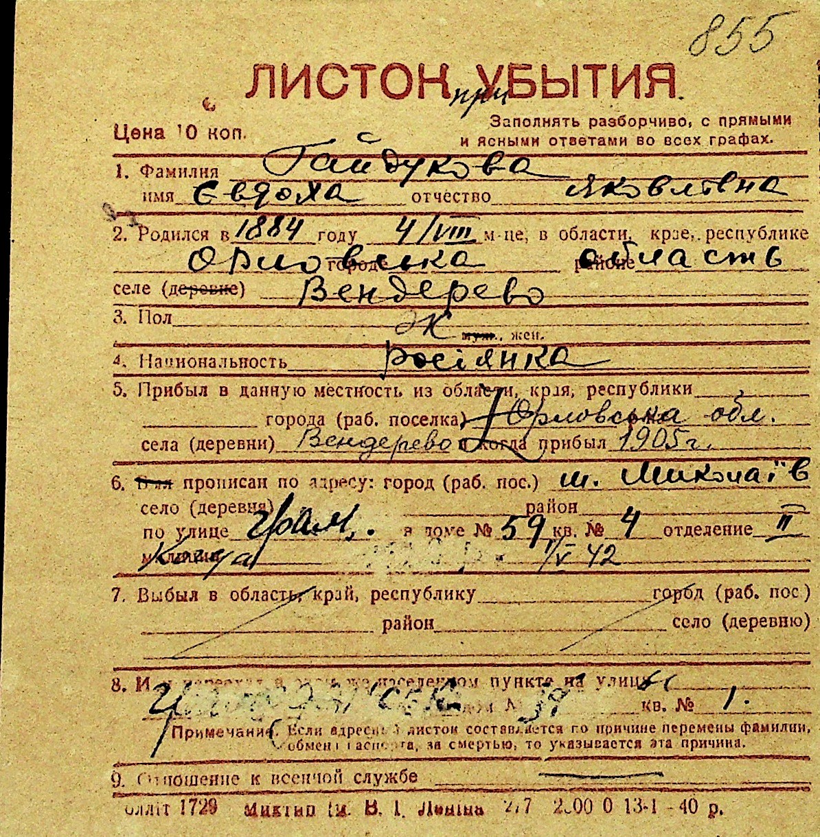 • • Перелік карток до фонду № Н-1016
