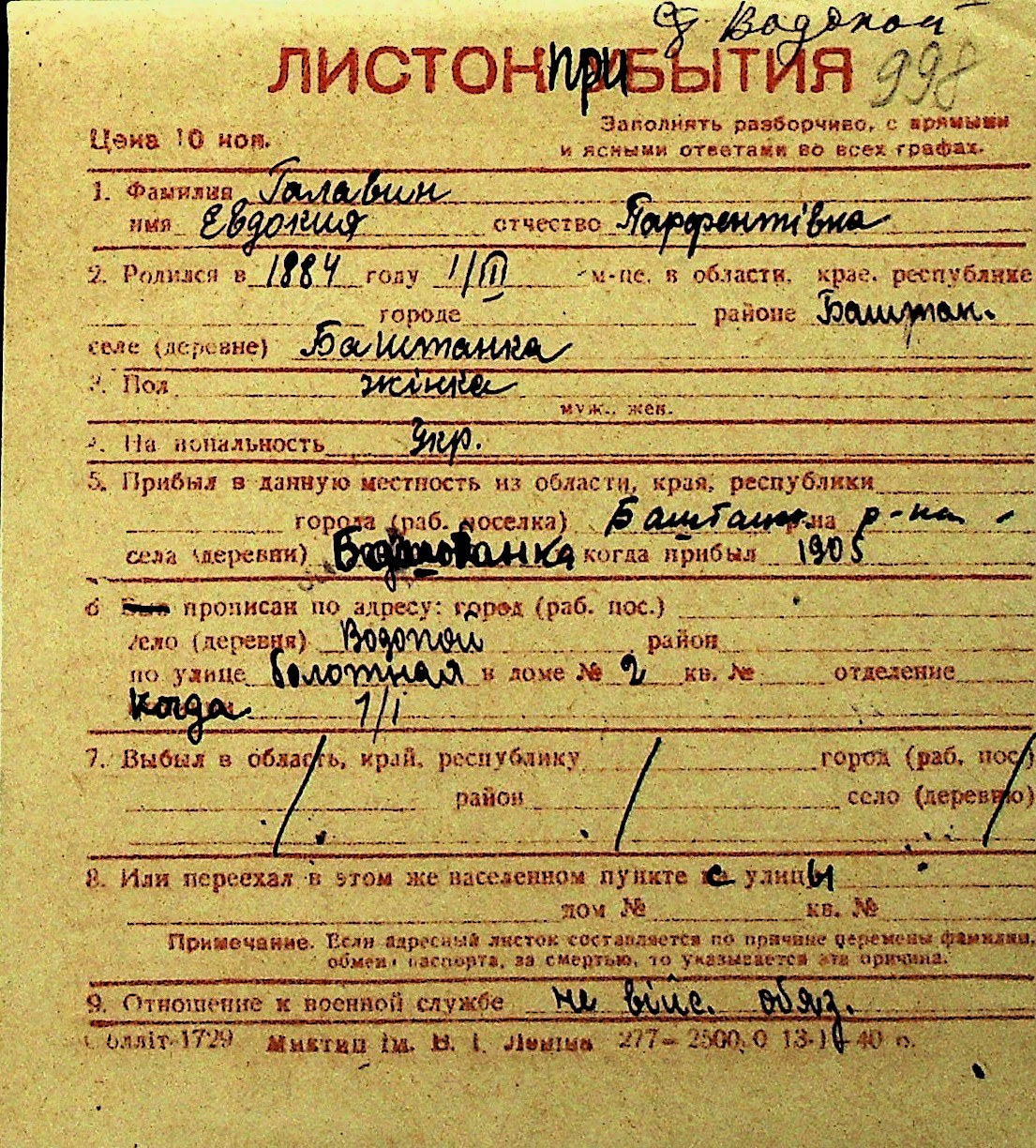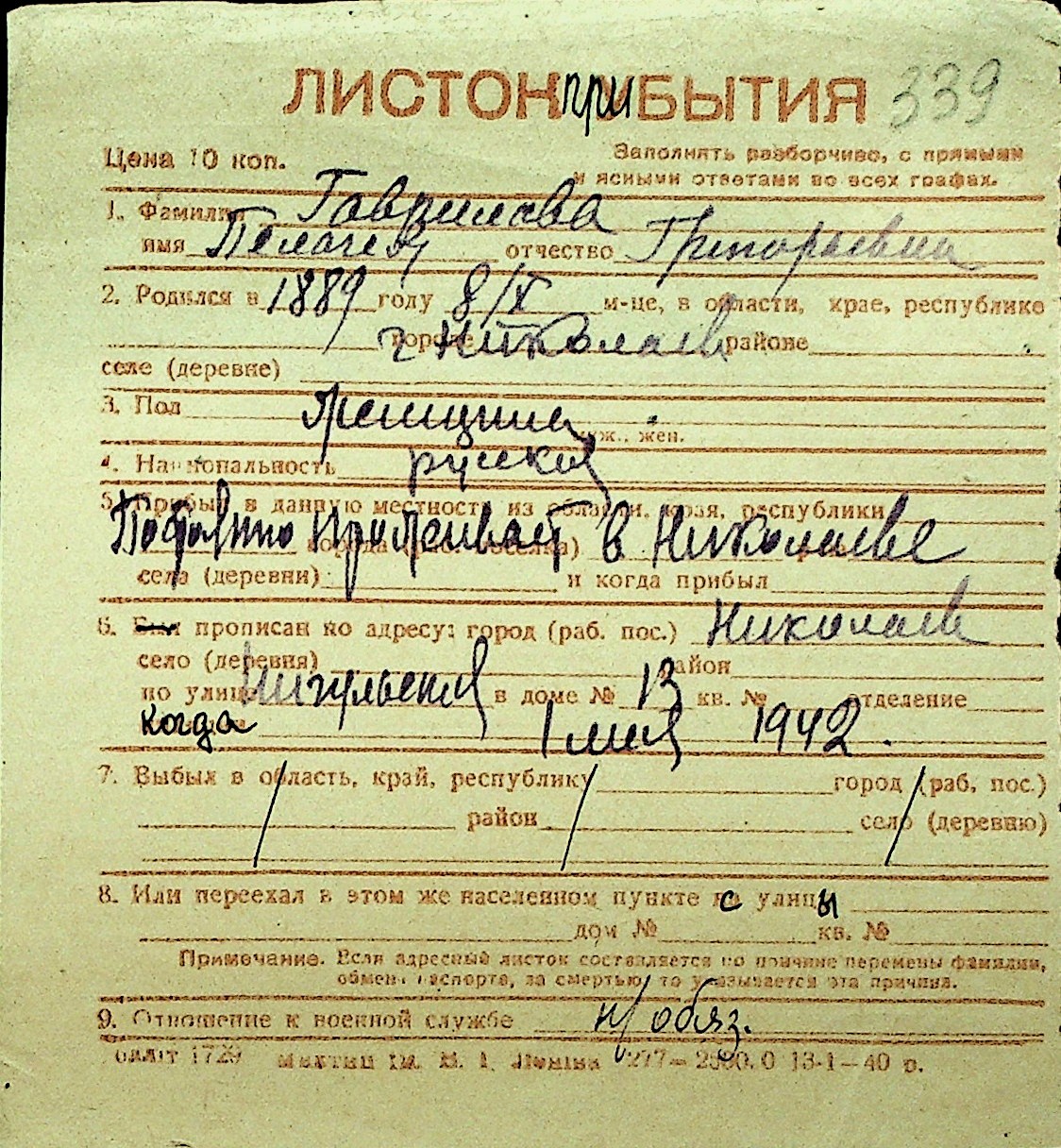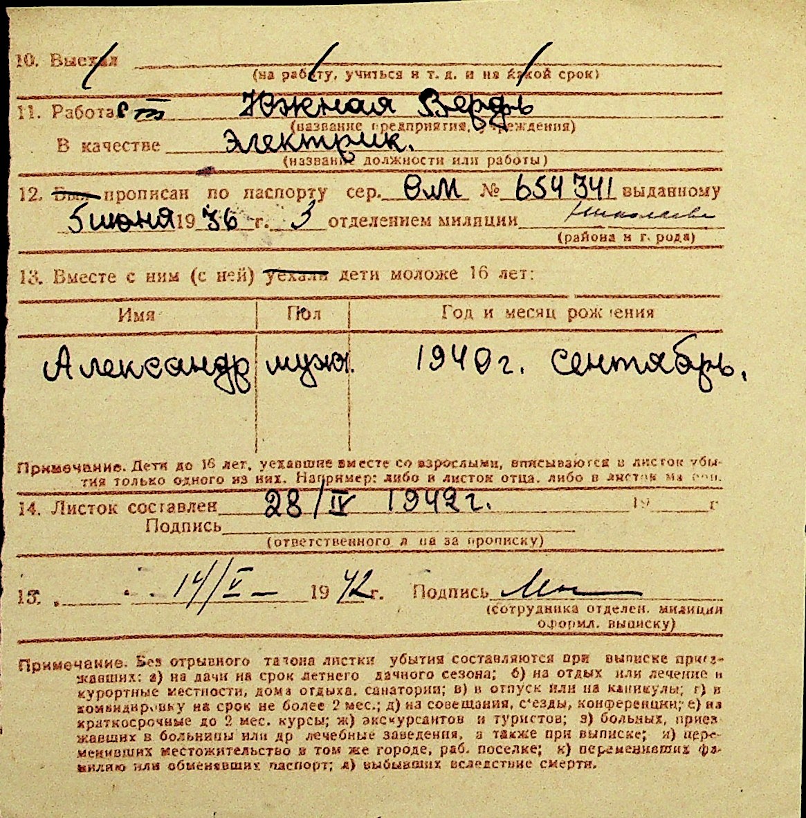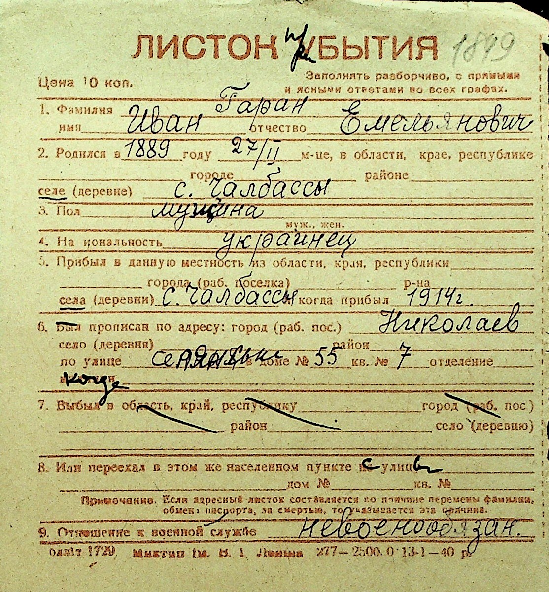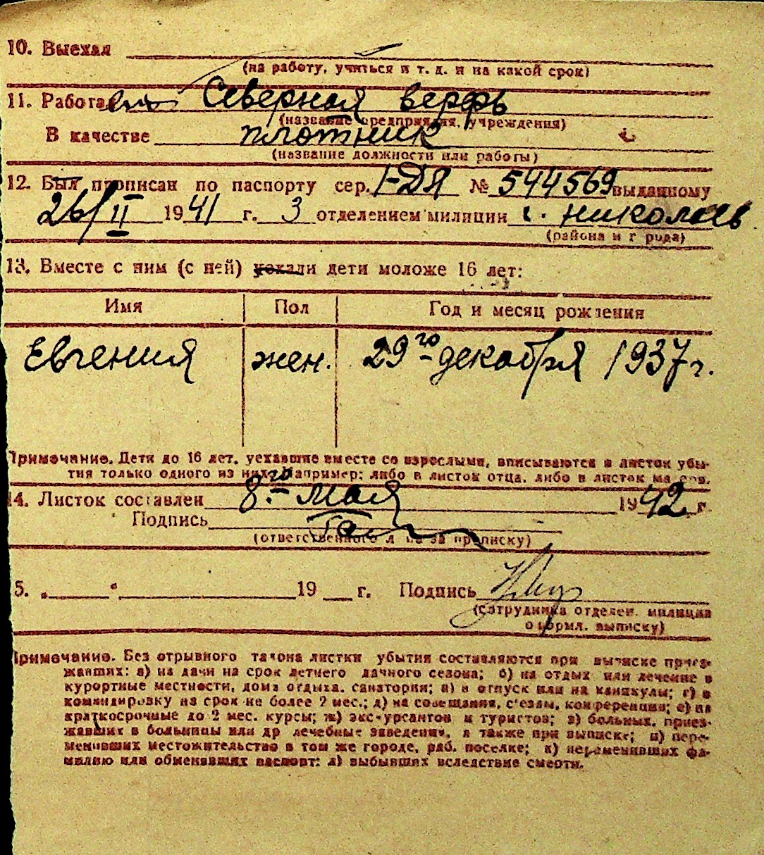 • • Перелік карток до фонду № Н-1016