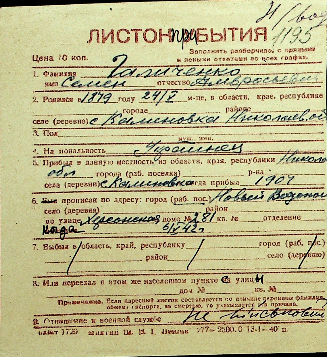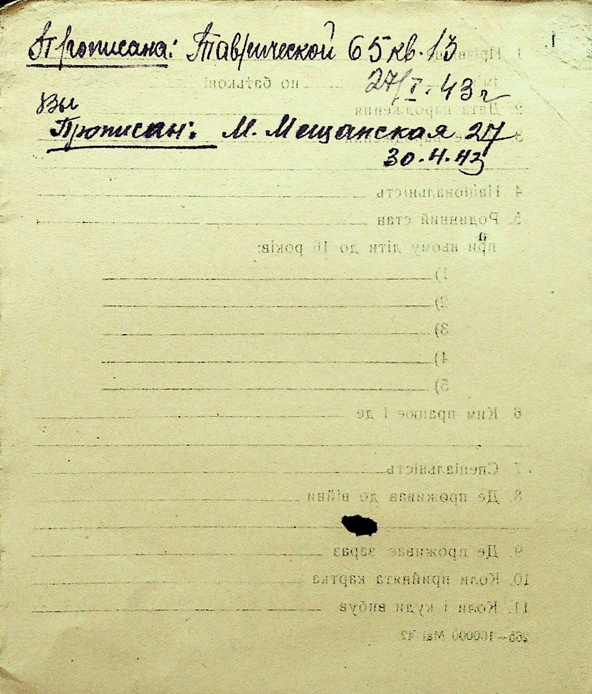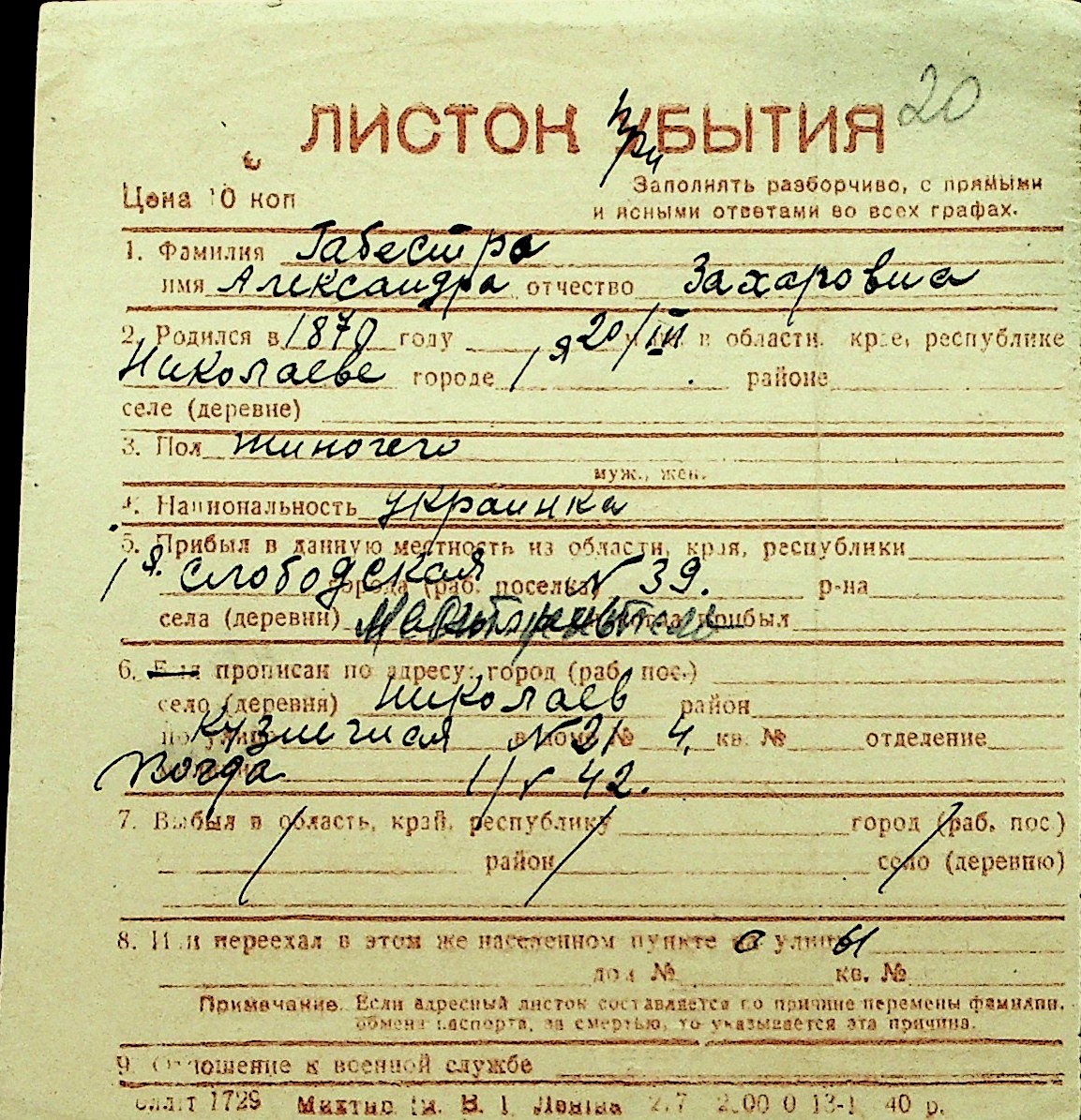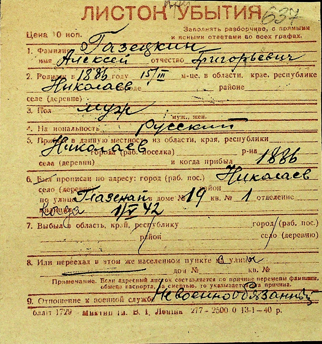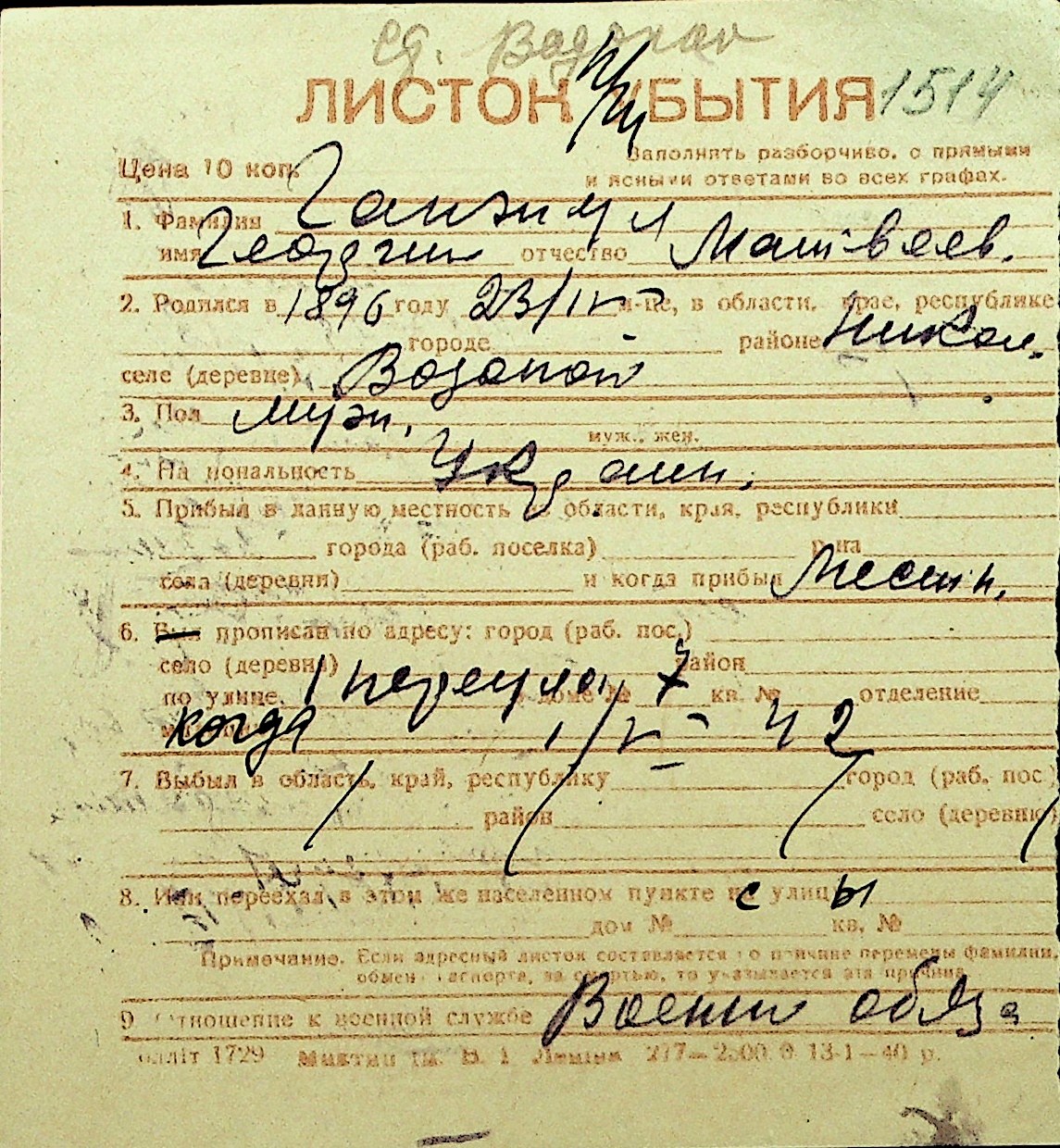 • • Перелік карток до фонду № Н-1016