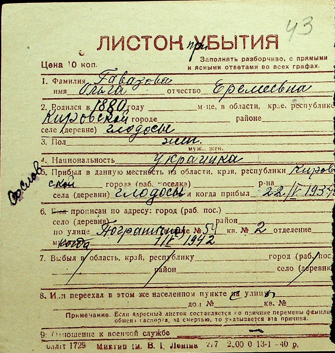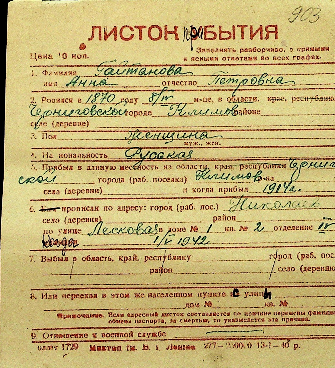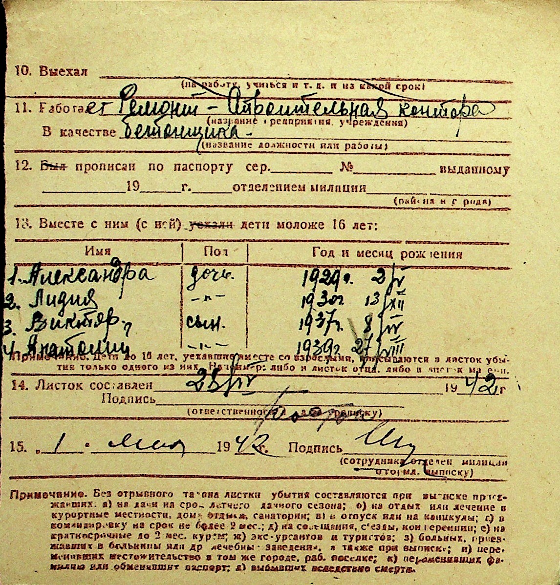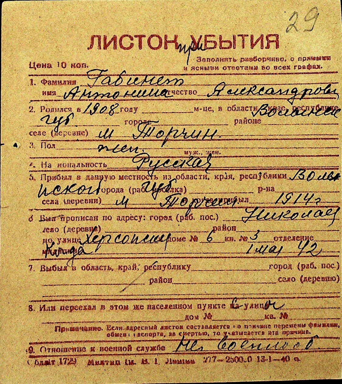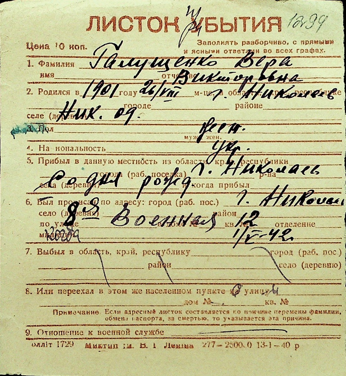 • • Перелік карток до фонду № Н-1016