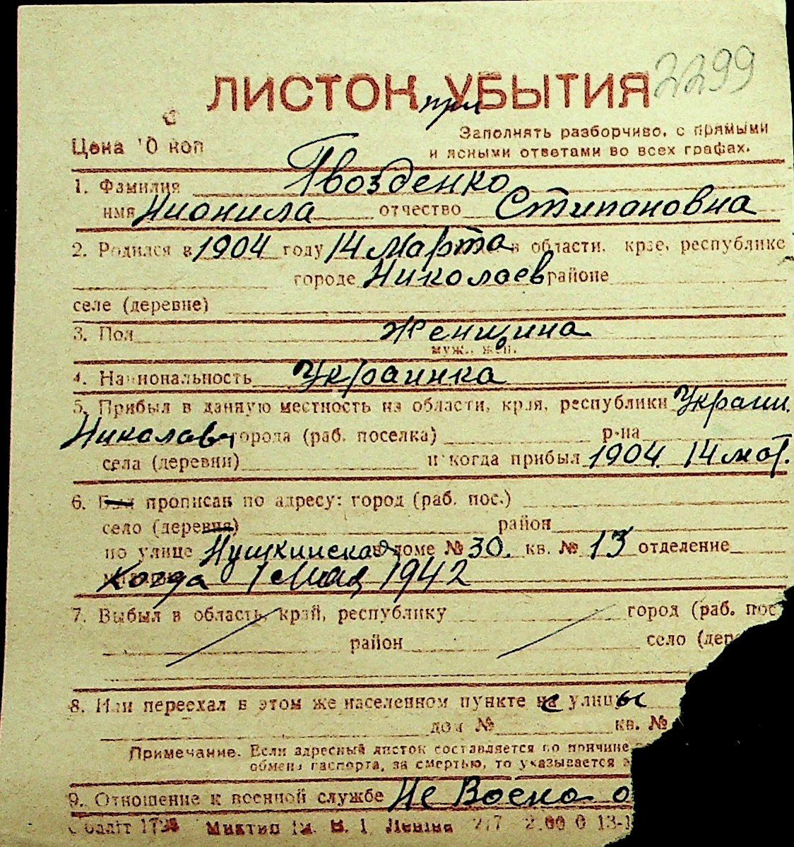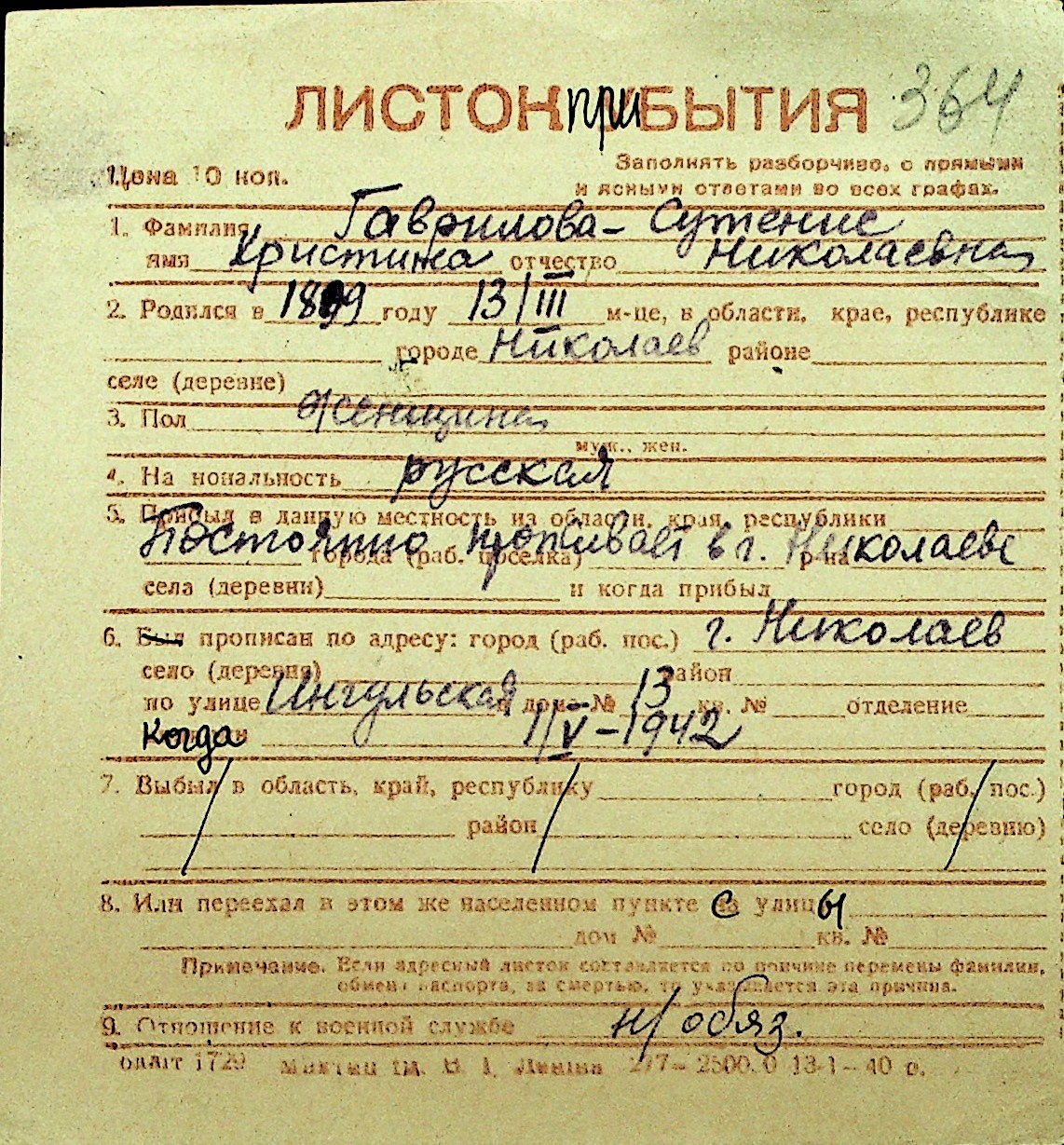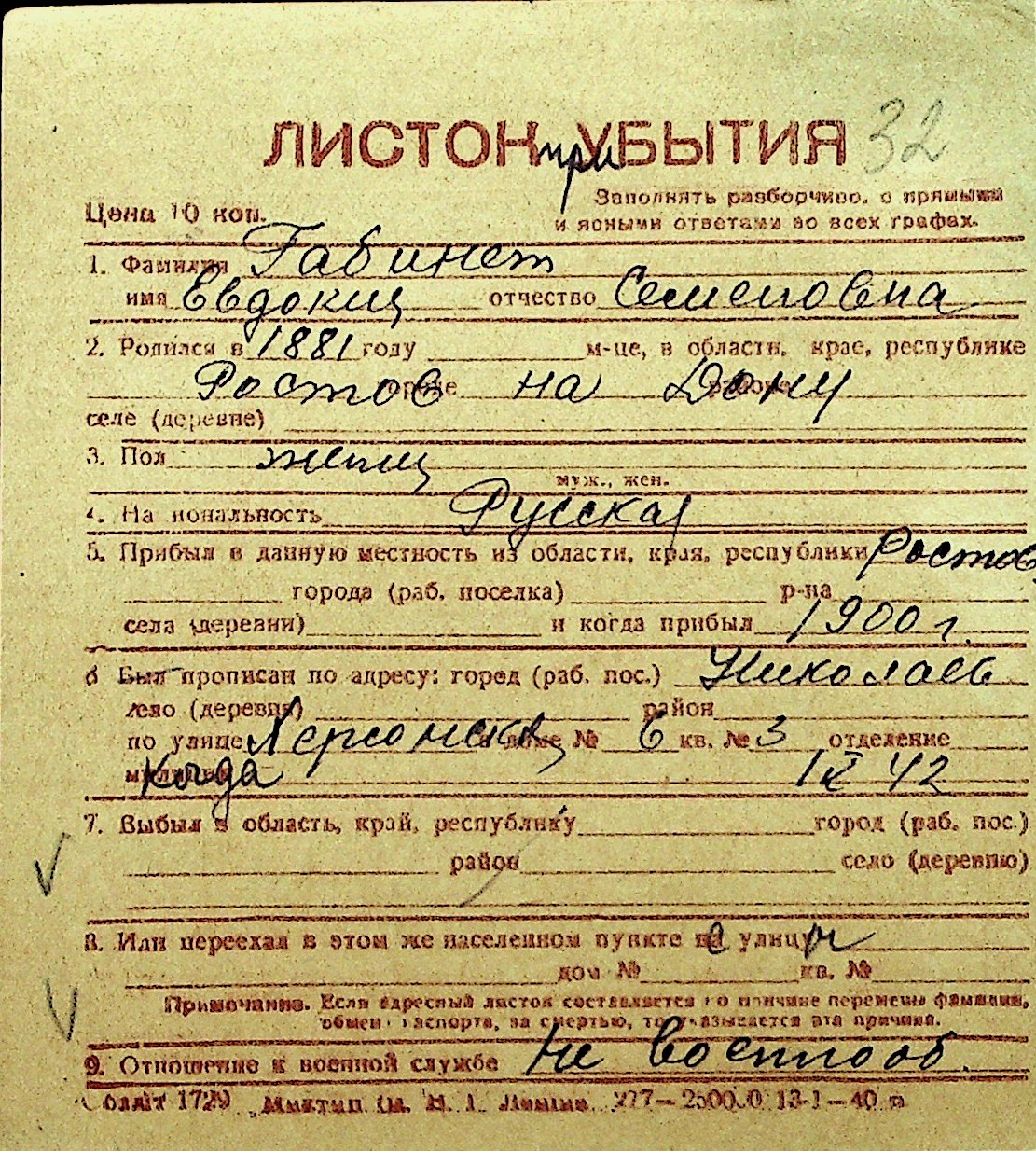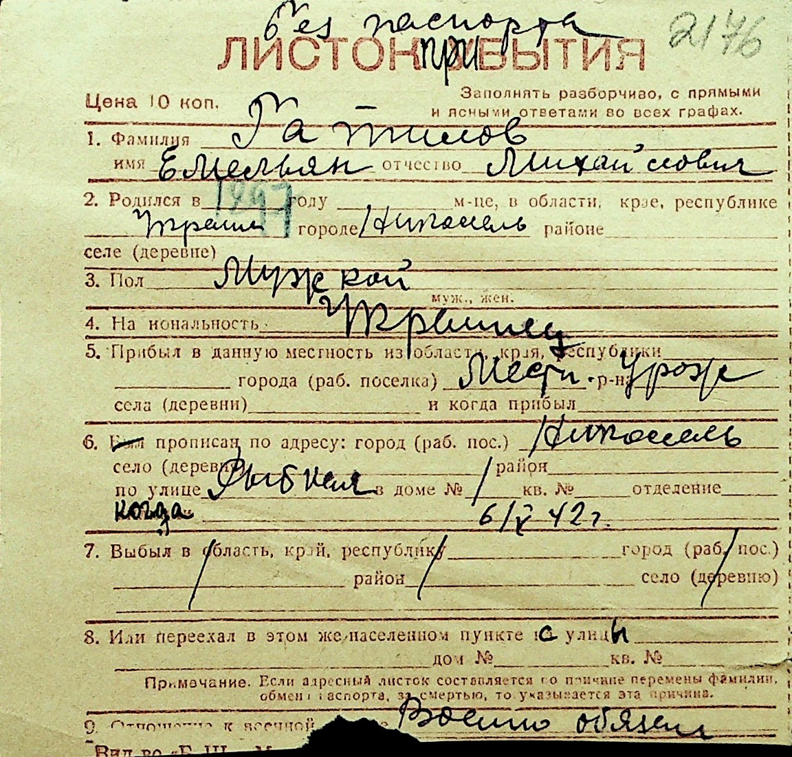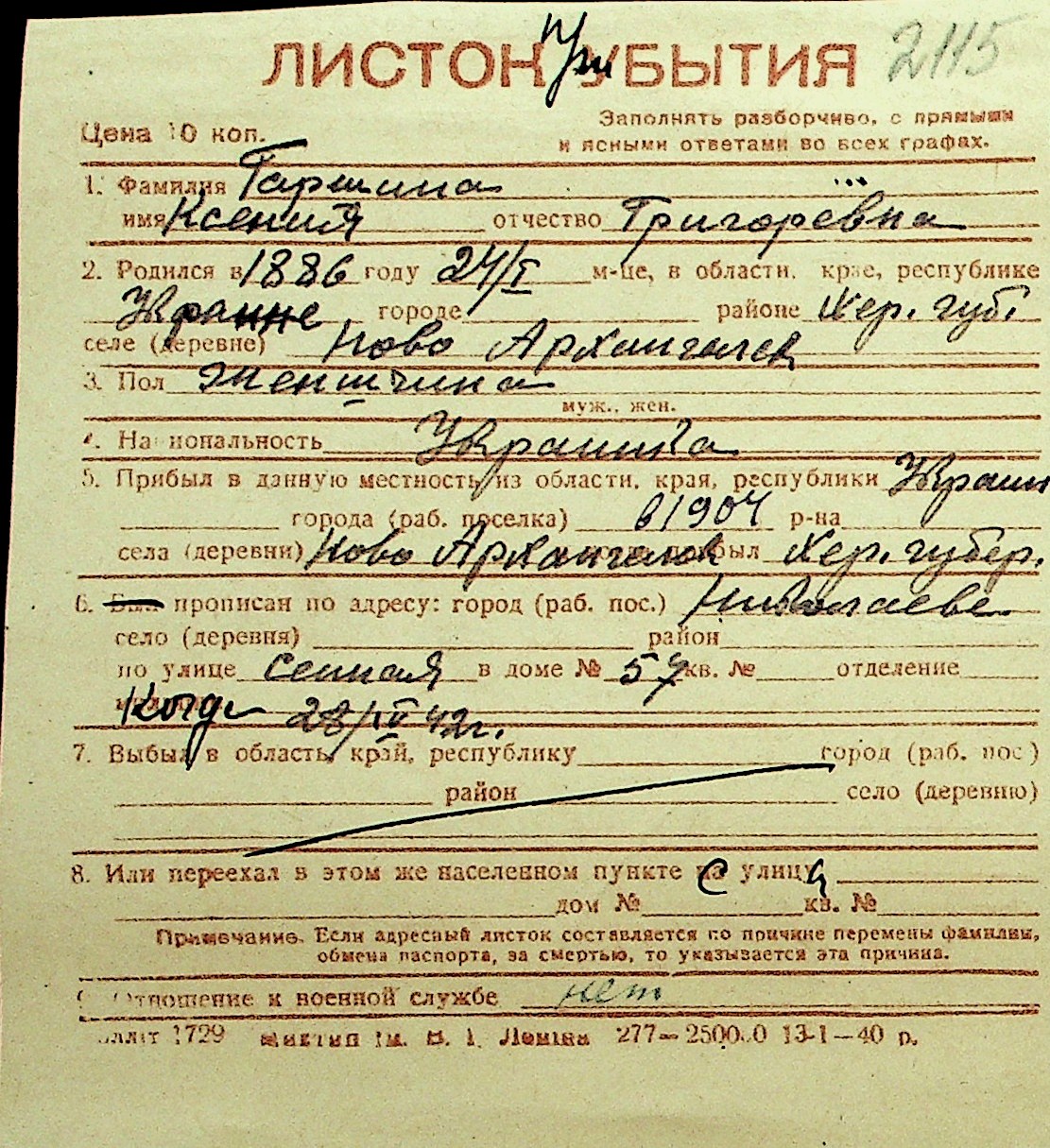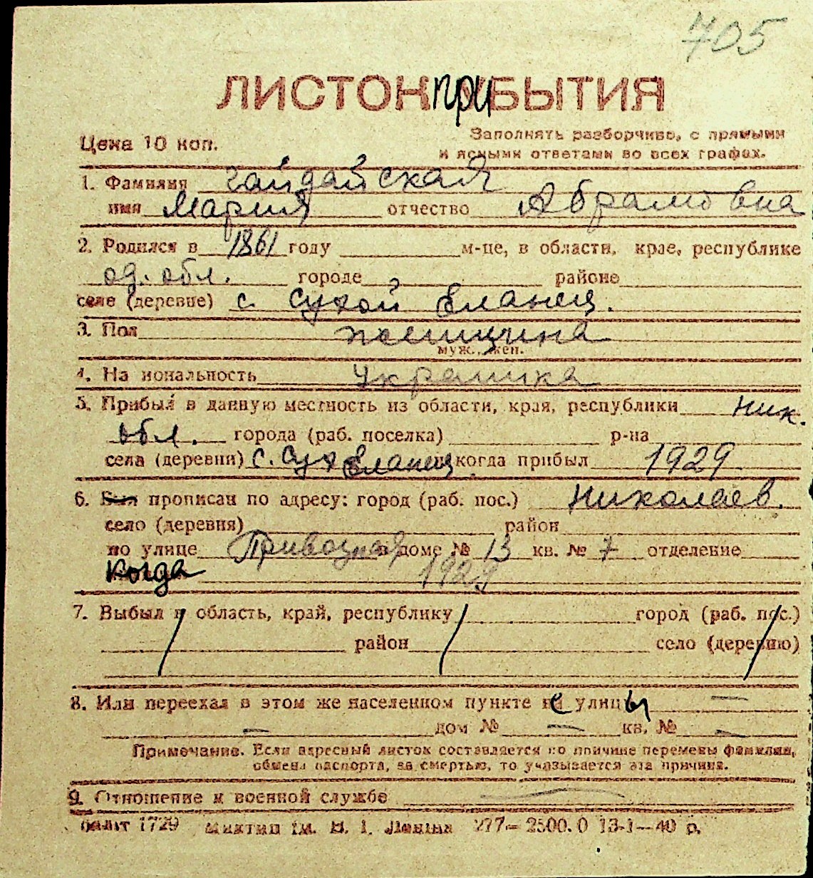 • • Перелік карток до фонду № Н-1016