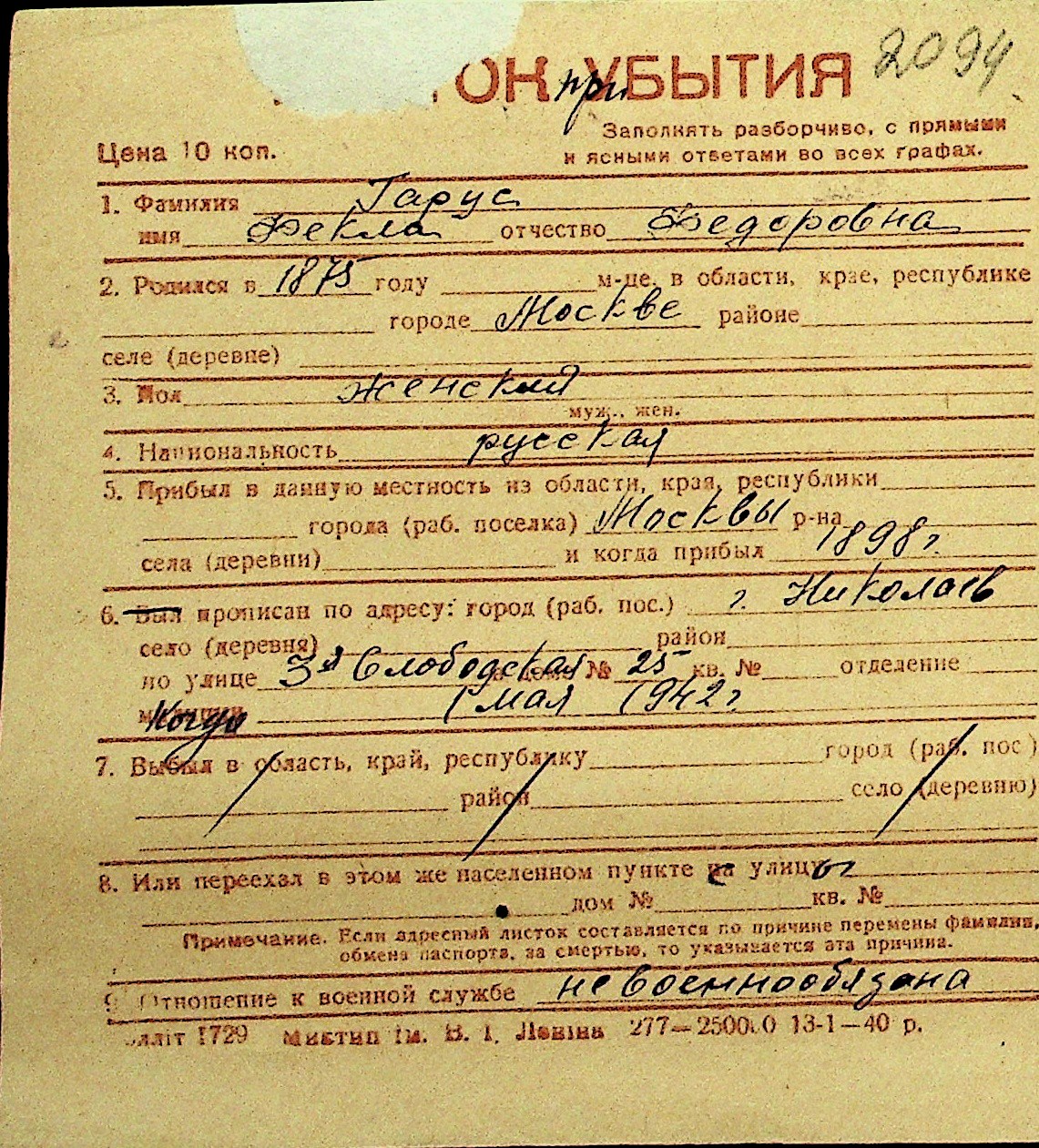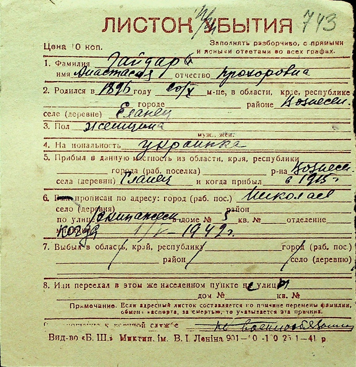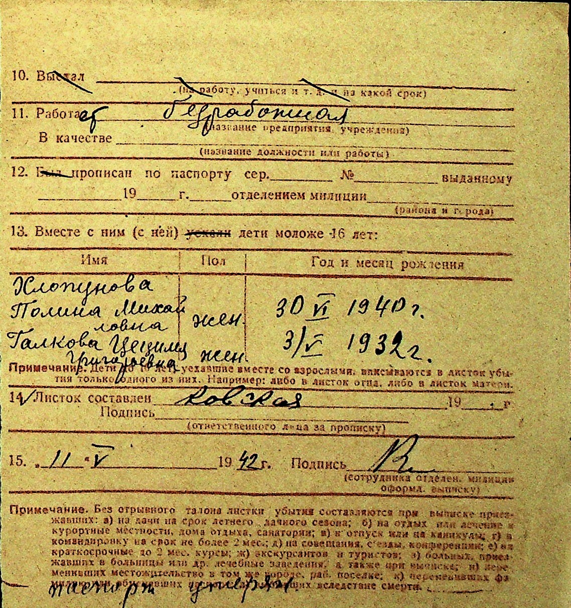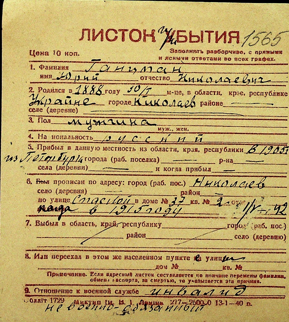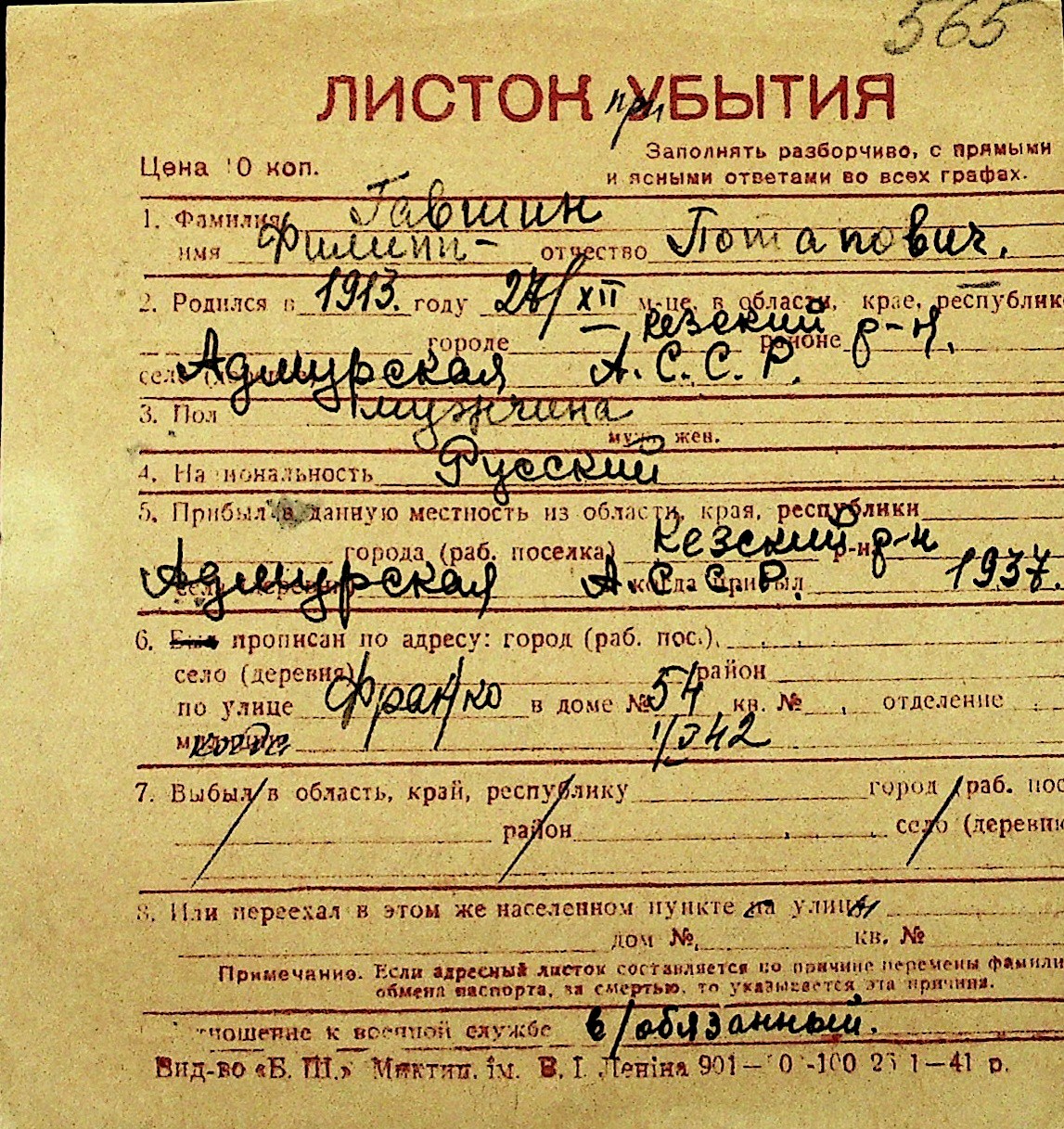 • • Перелік карток до фонду № Н-1016