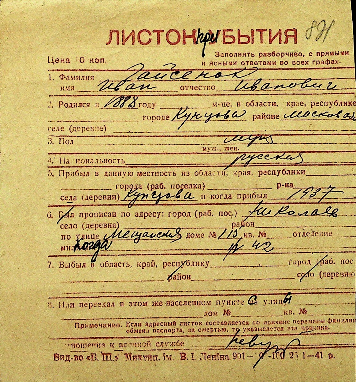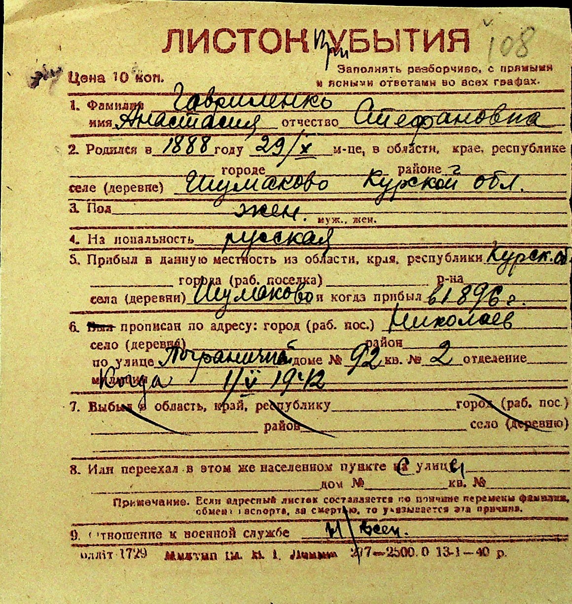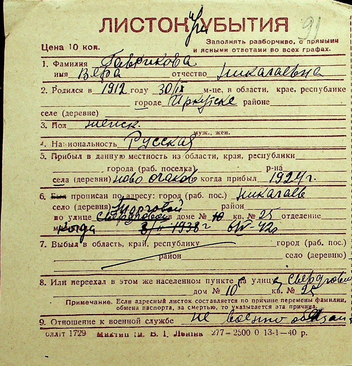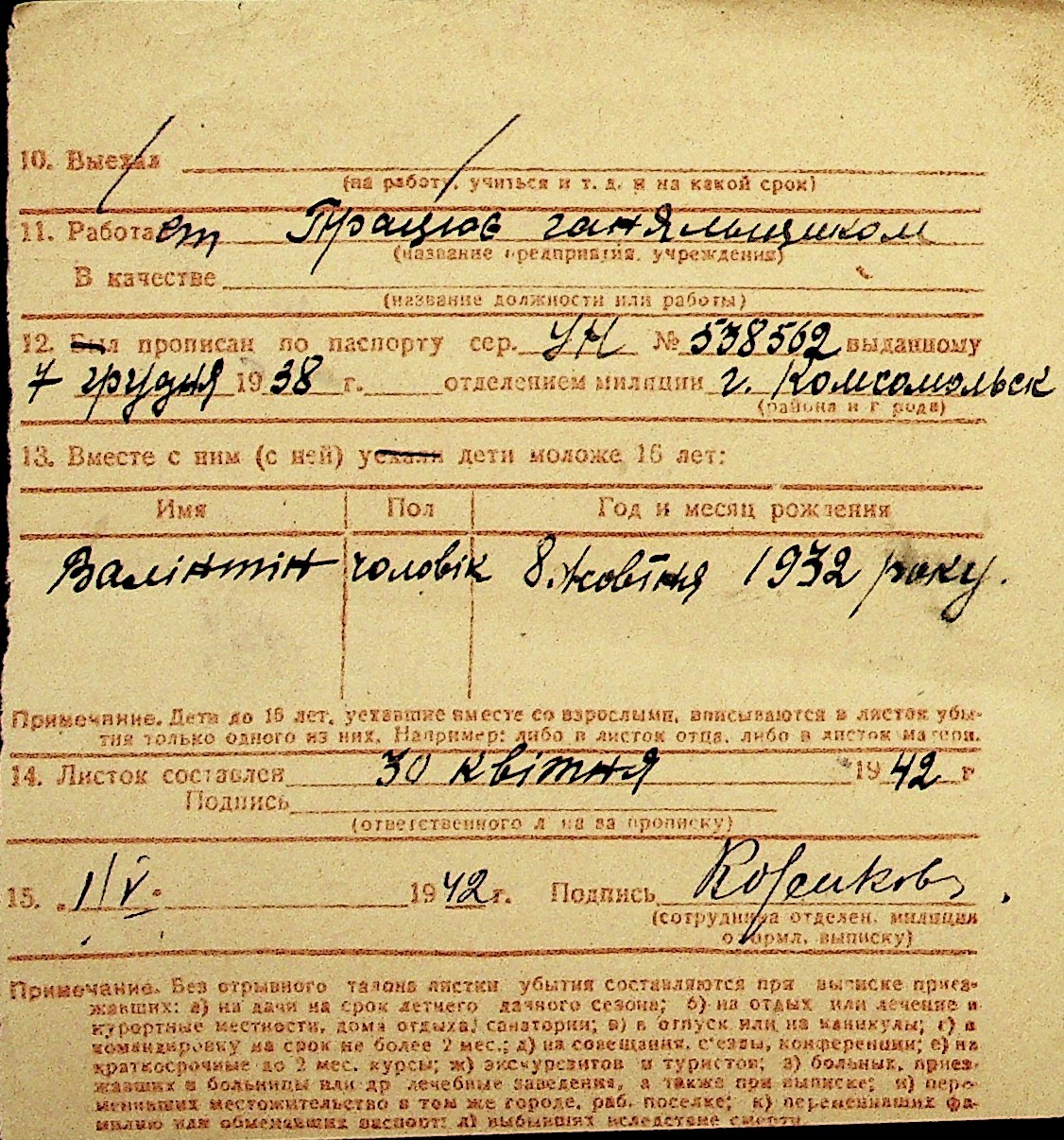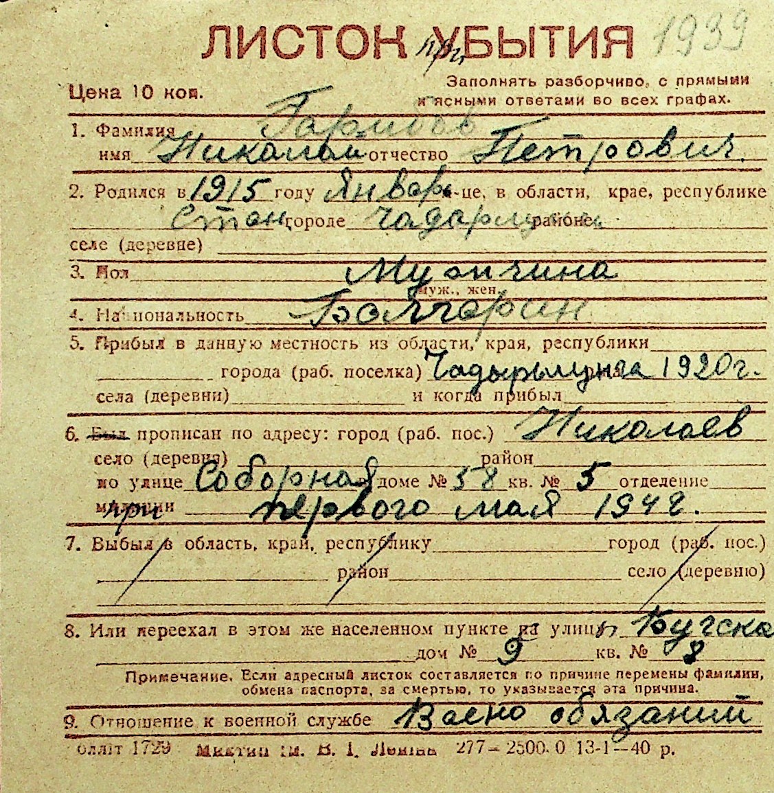 • • Перелік карток до фонду № Н-1016