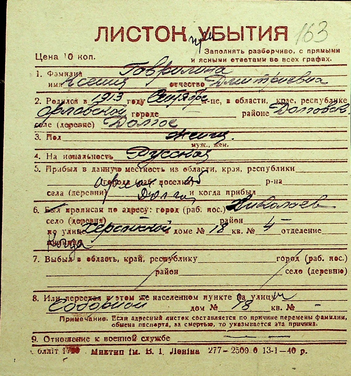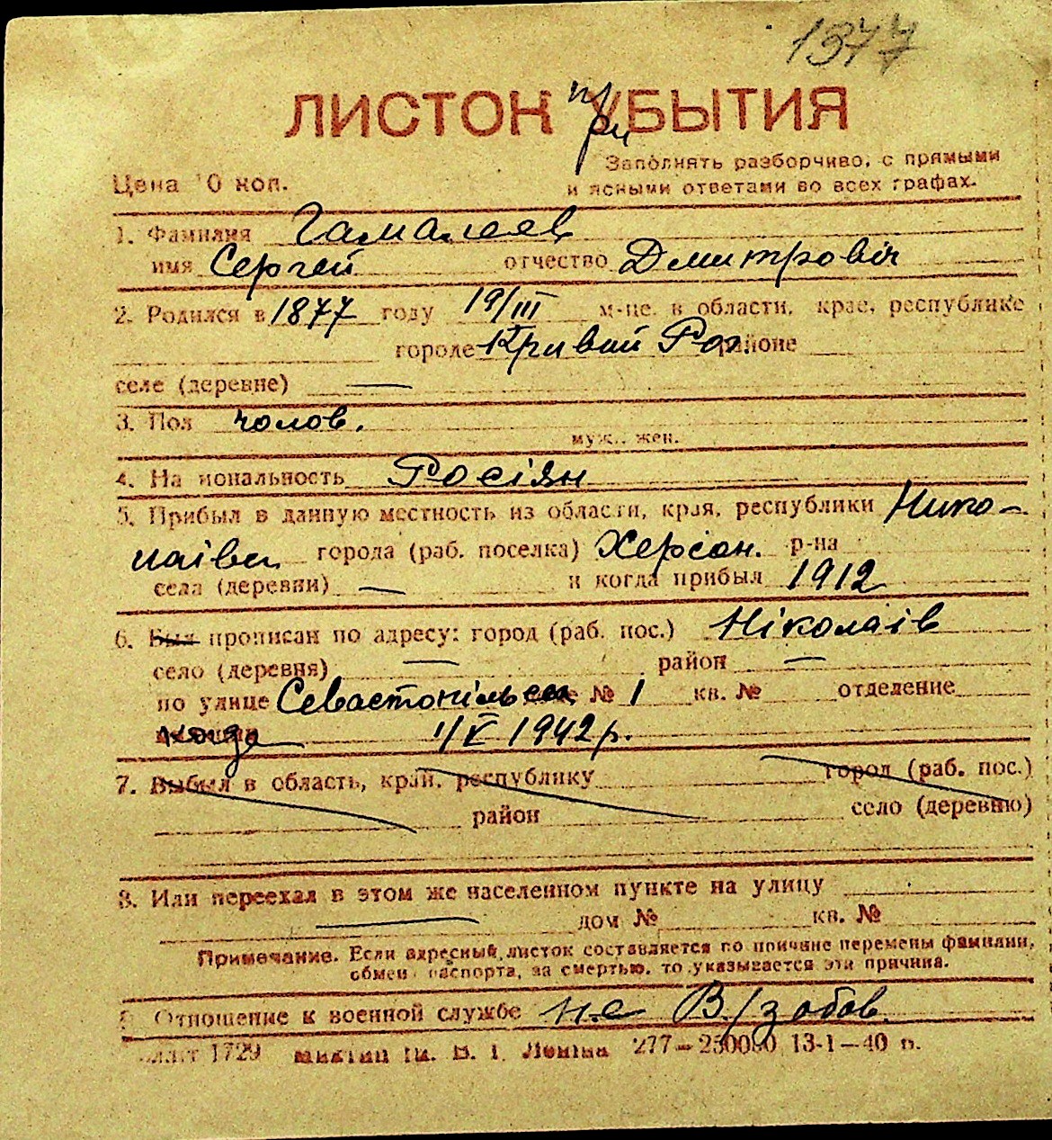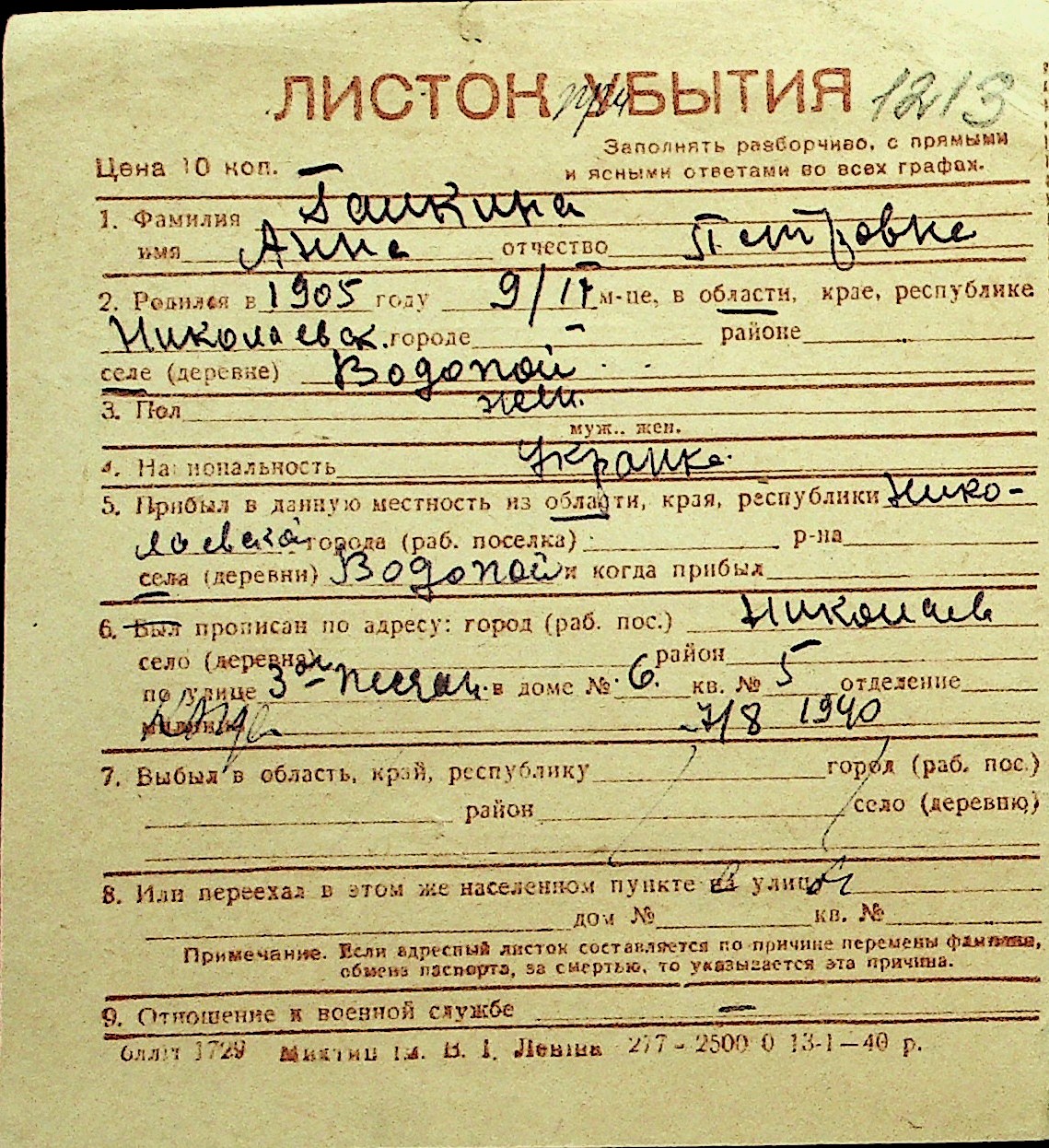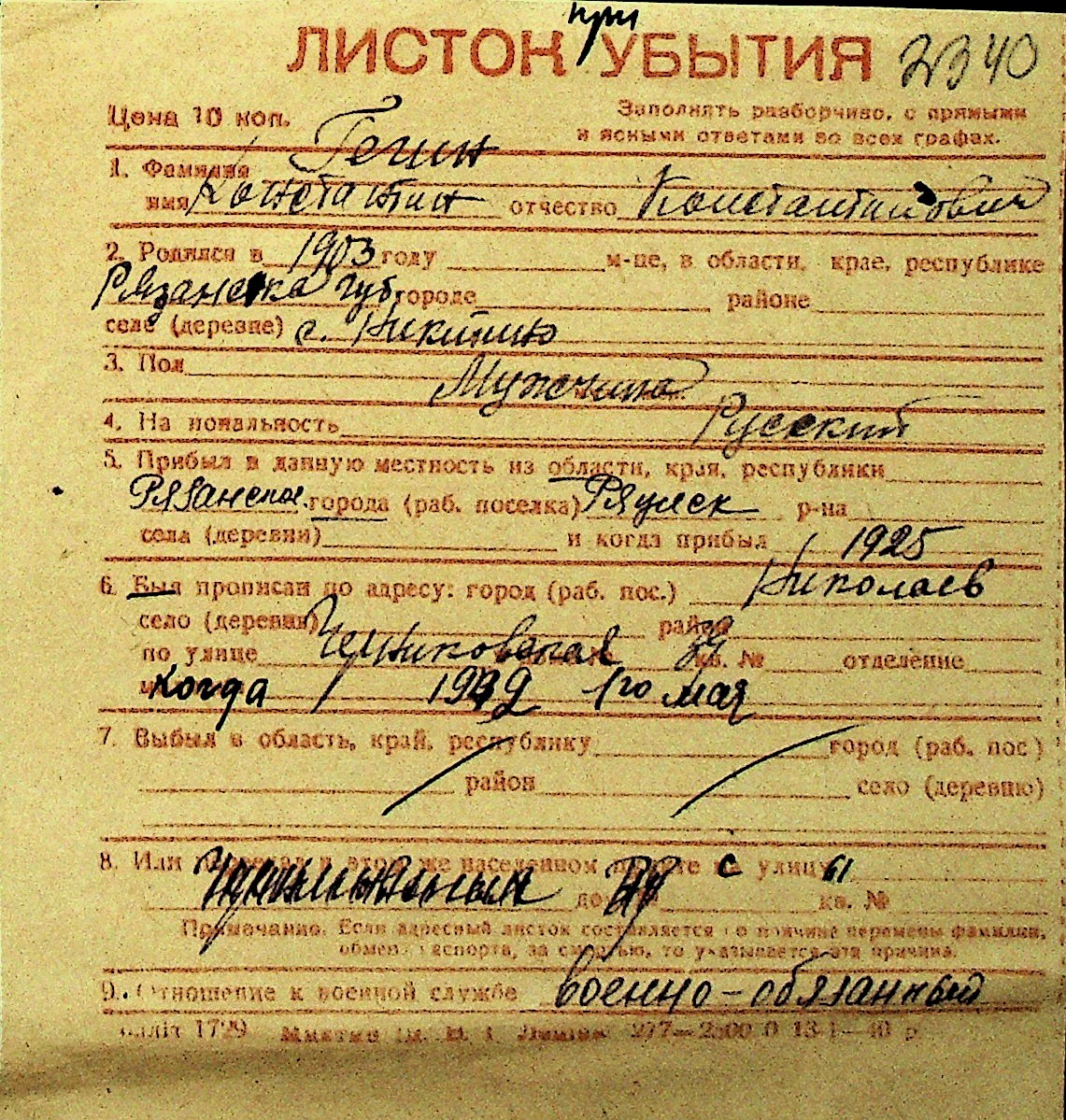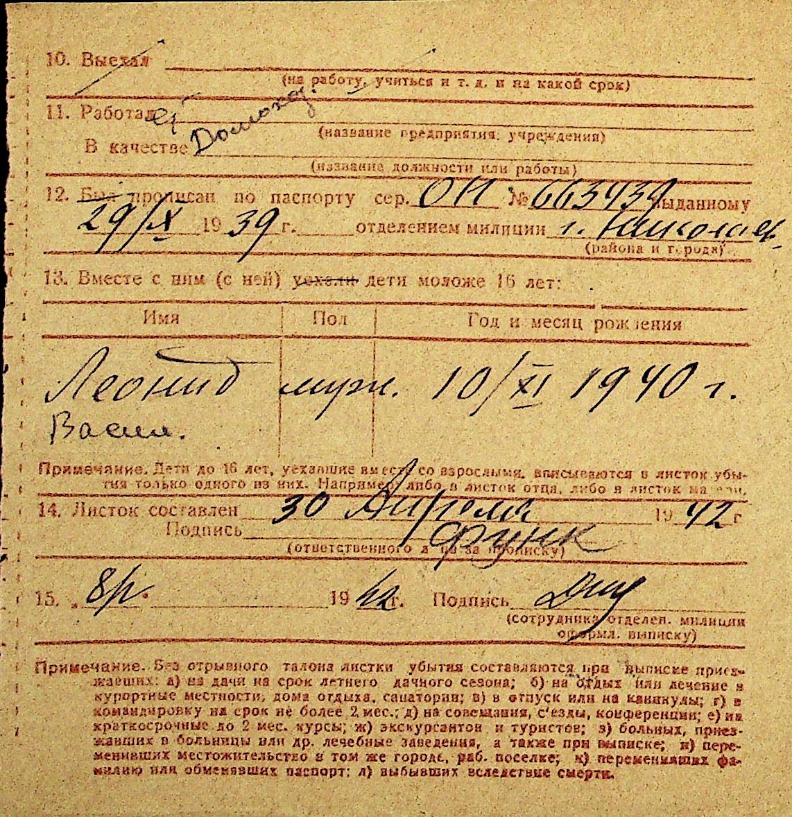 • • Перелік карток до фонду № Н-1016
