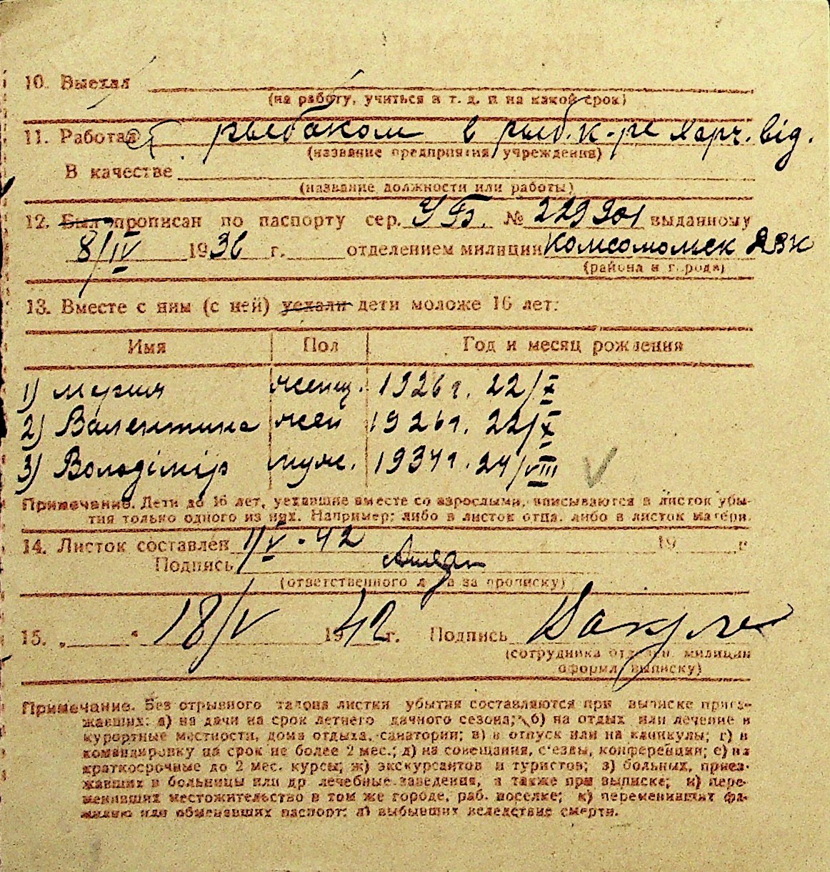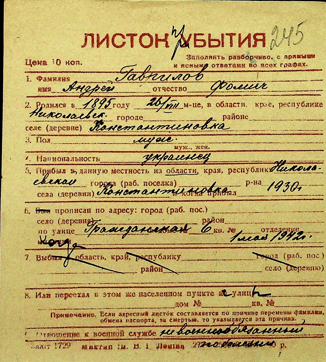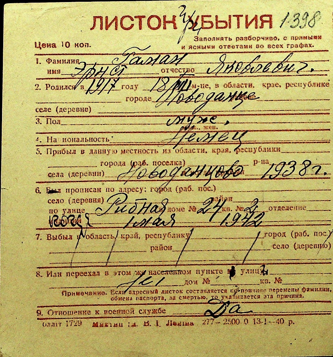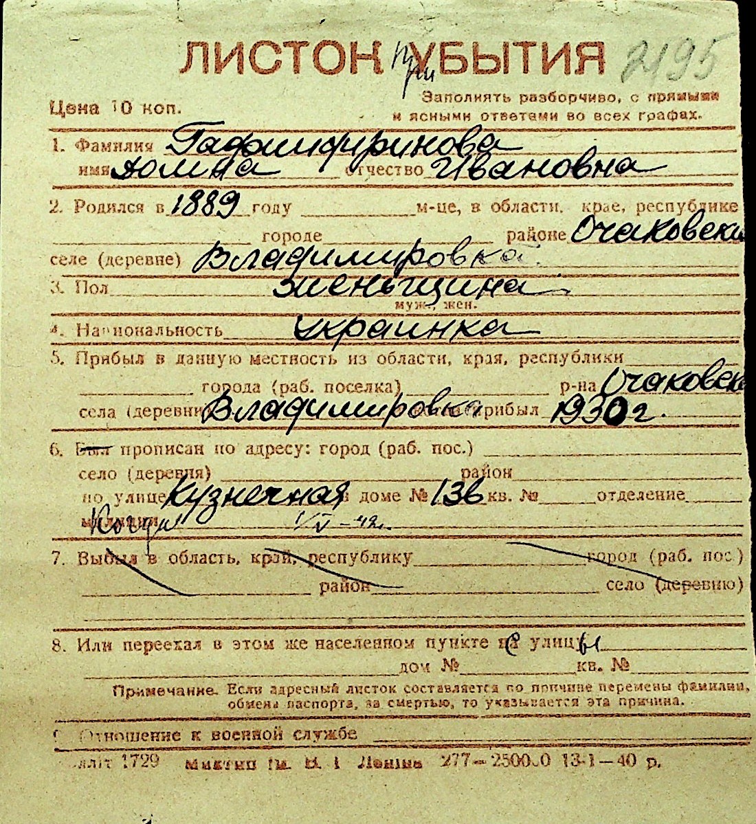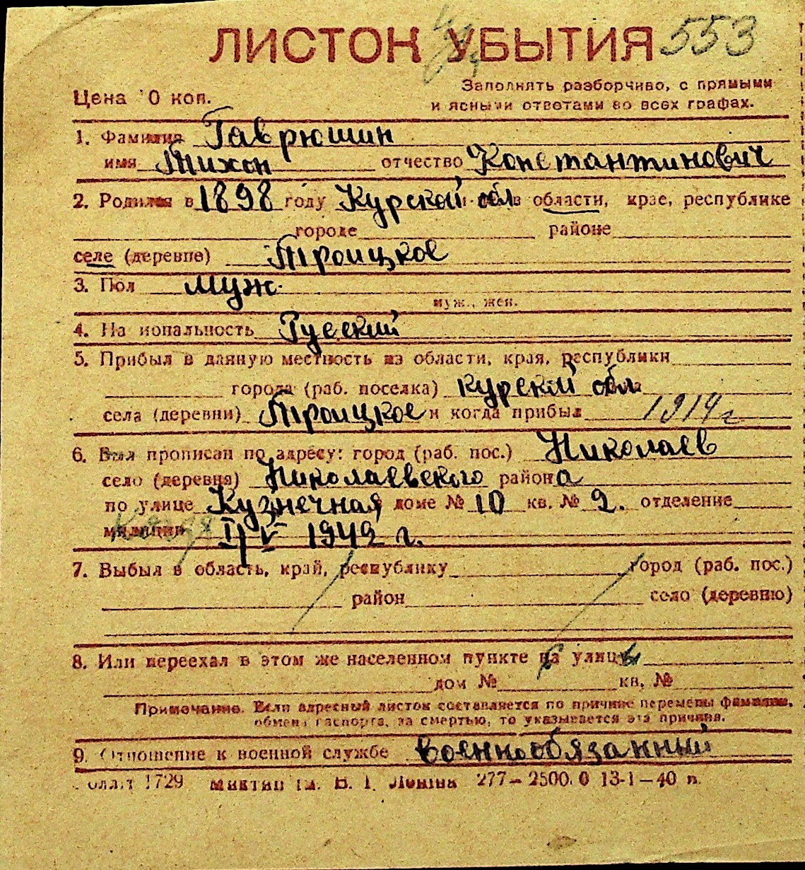 • • Перелік карток до фонду № Н-1016