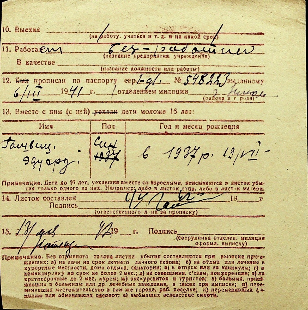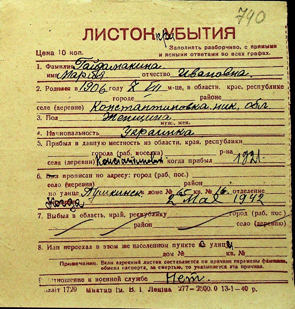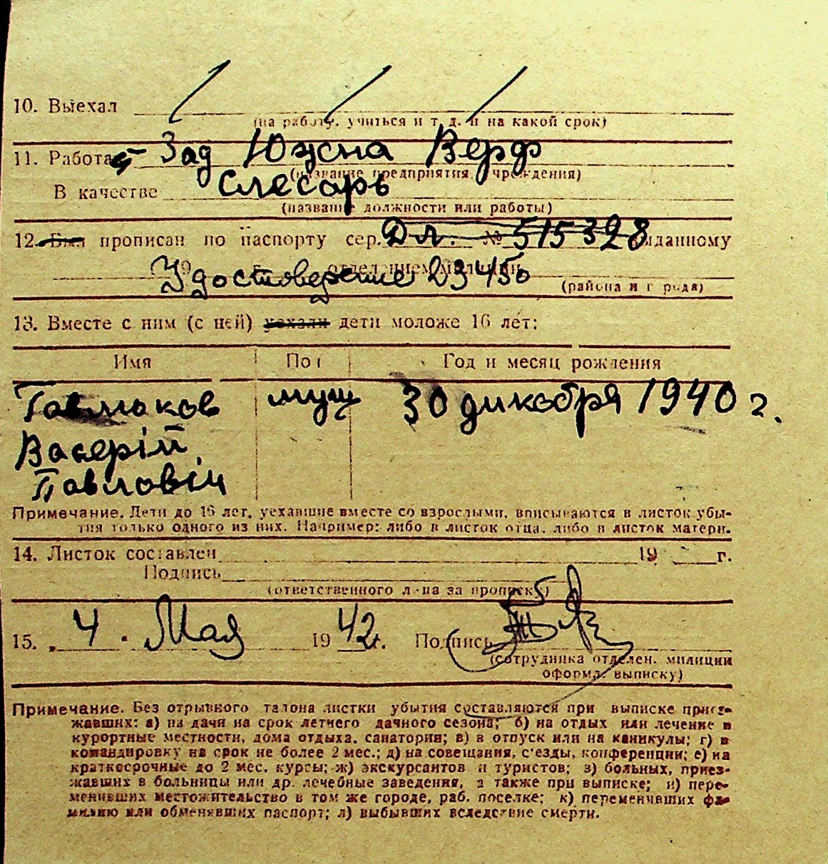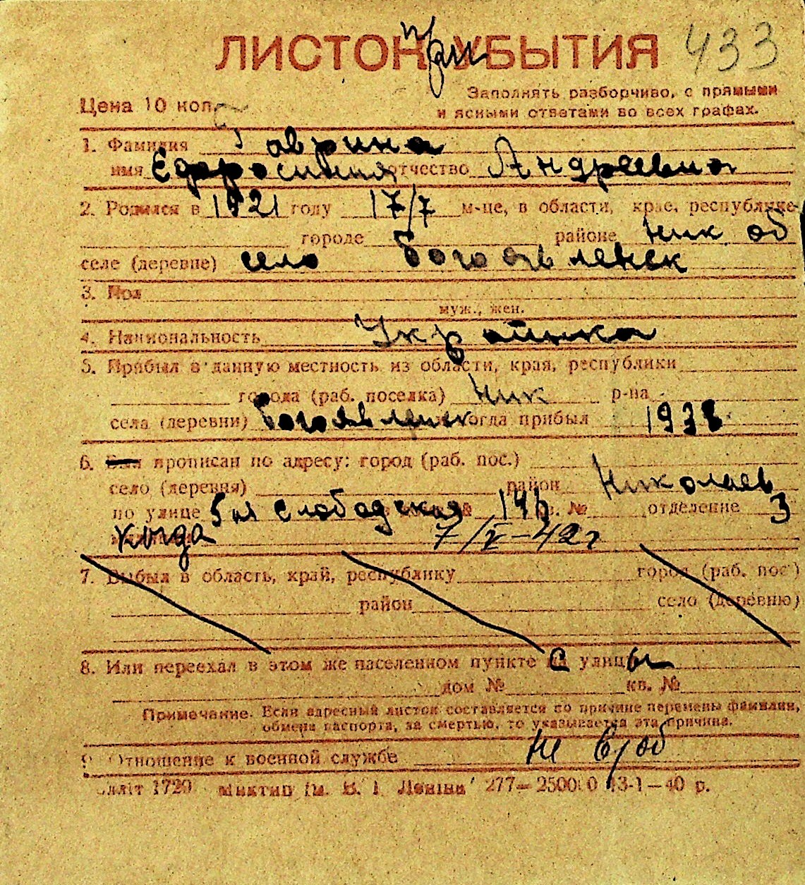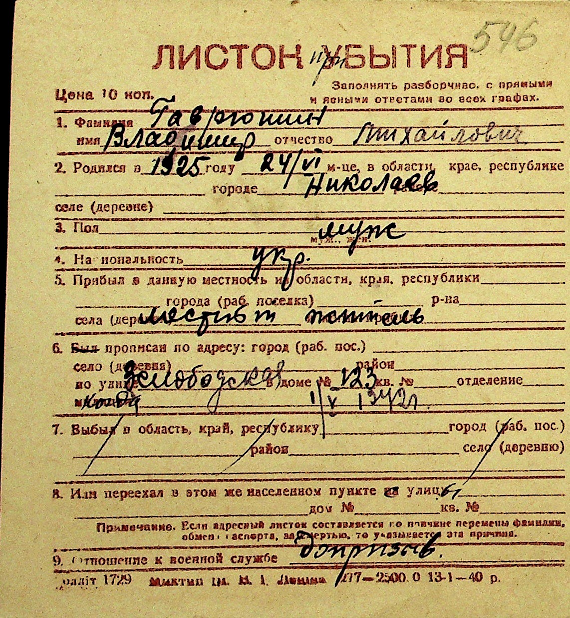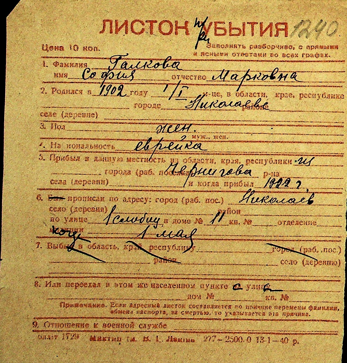 • • Перелік карток до фонду № Н-1016