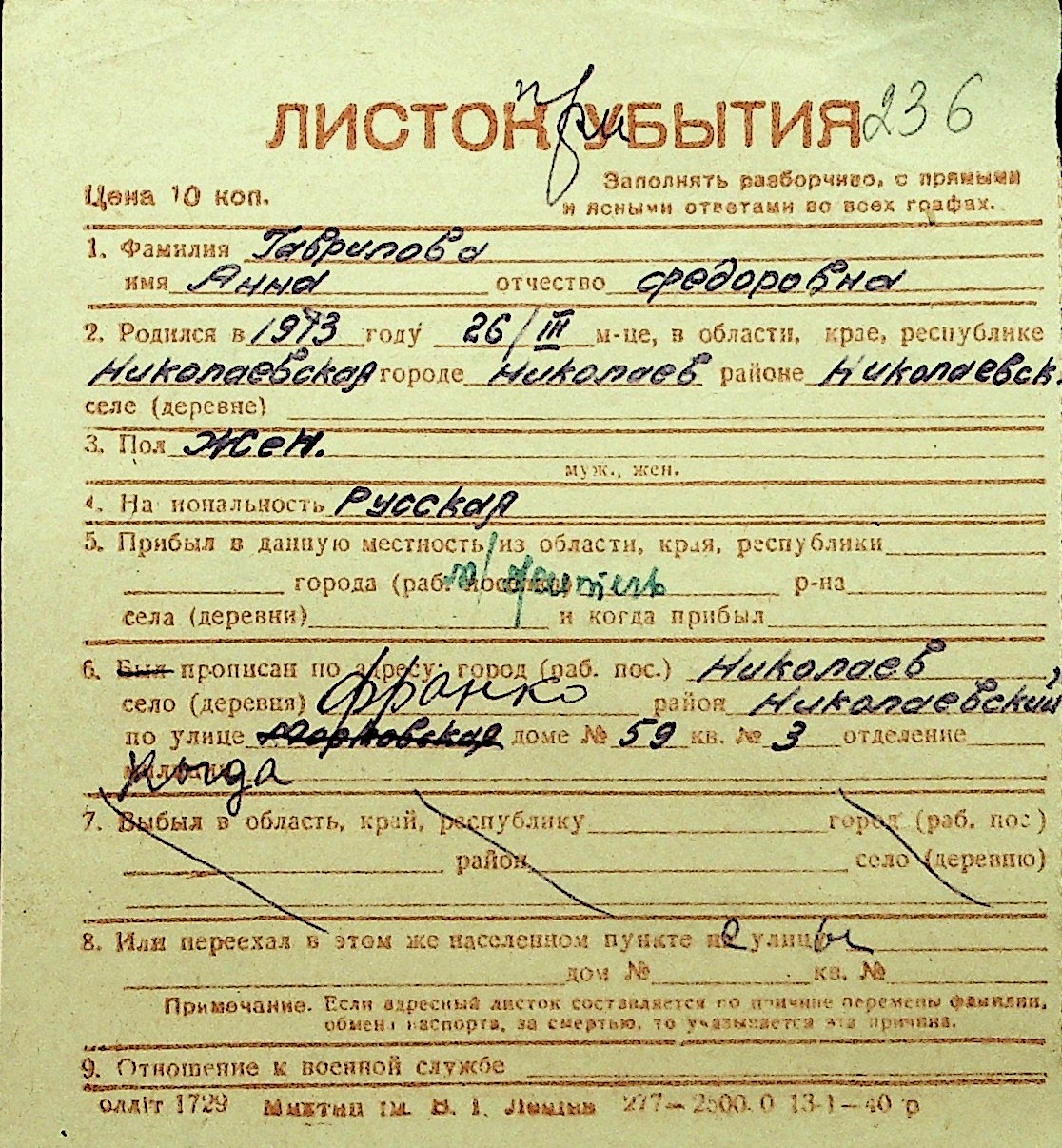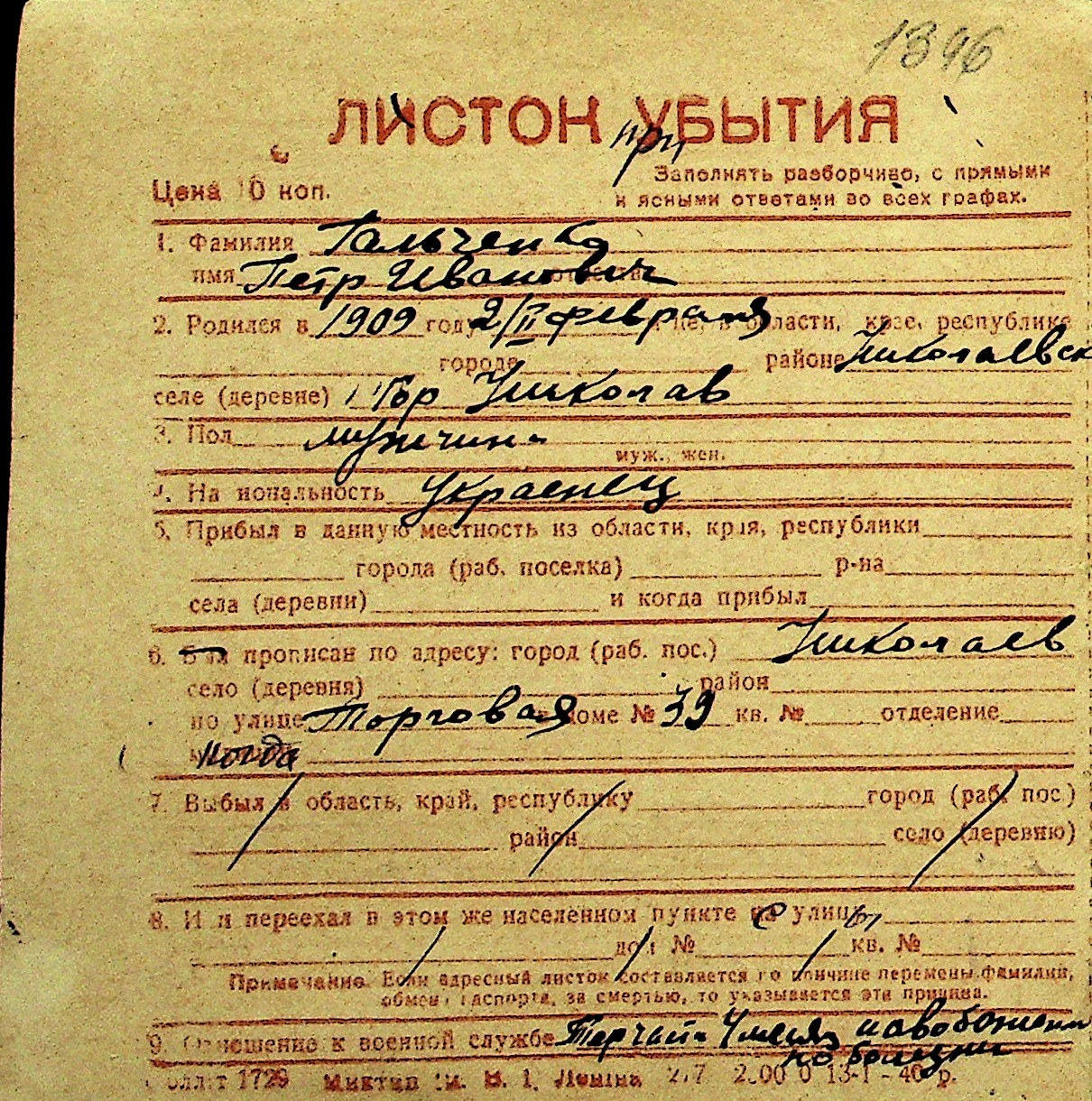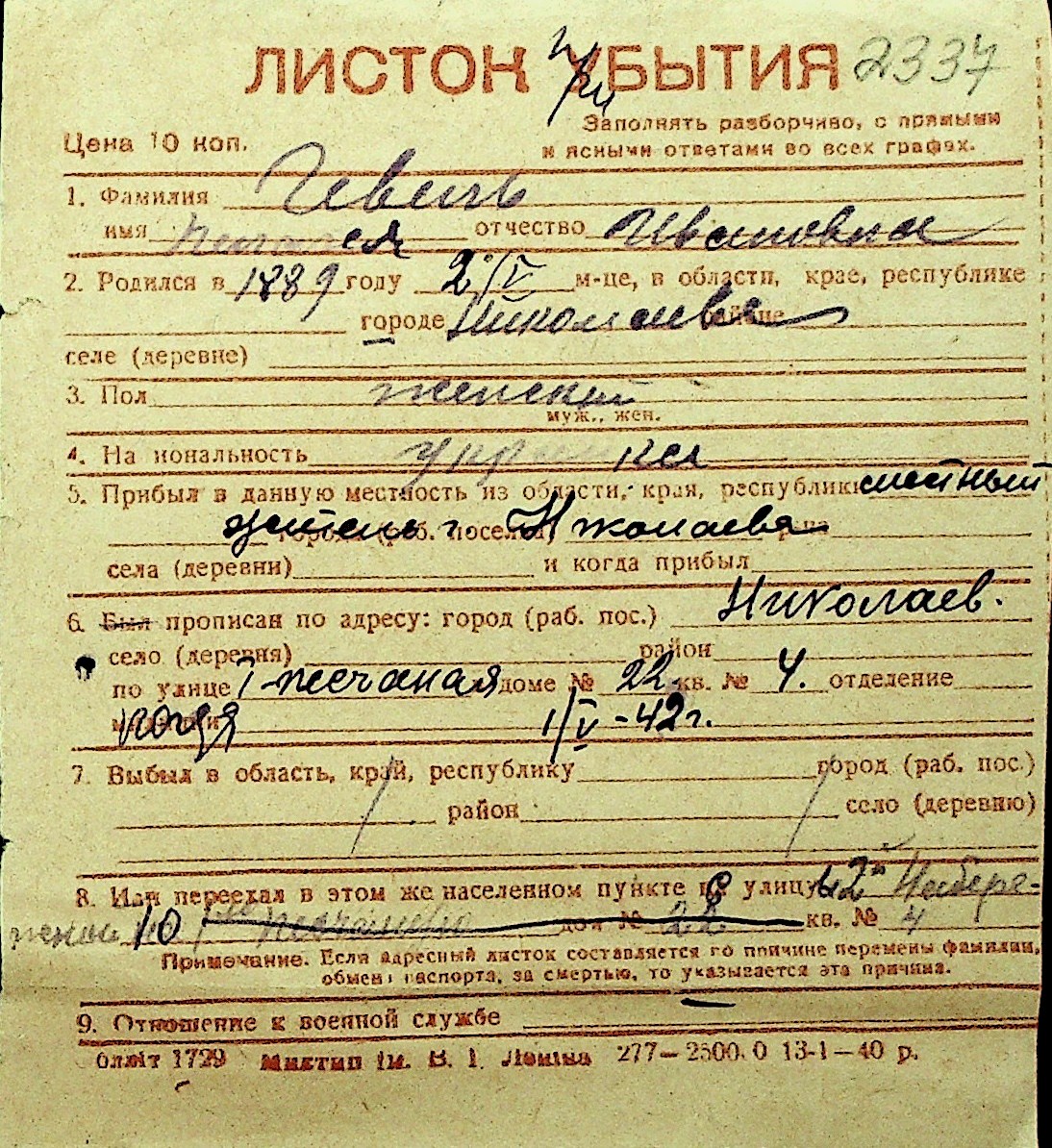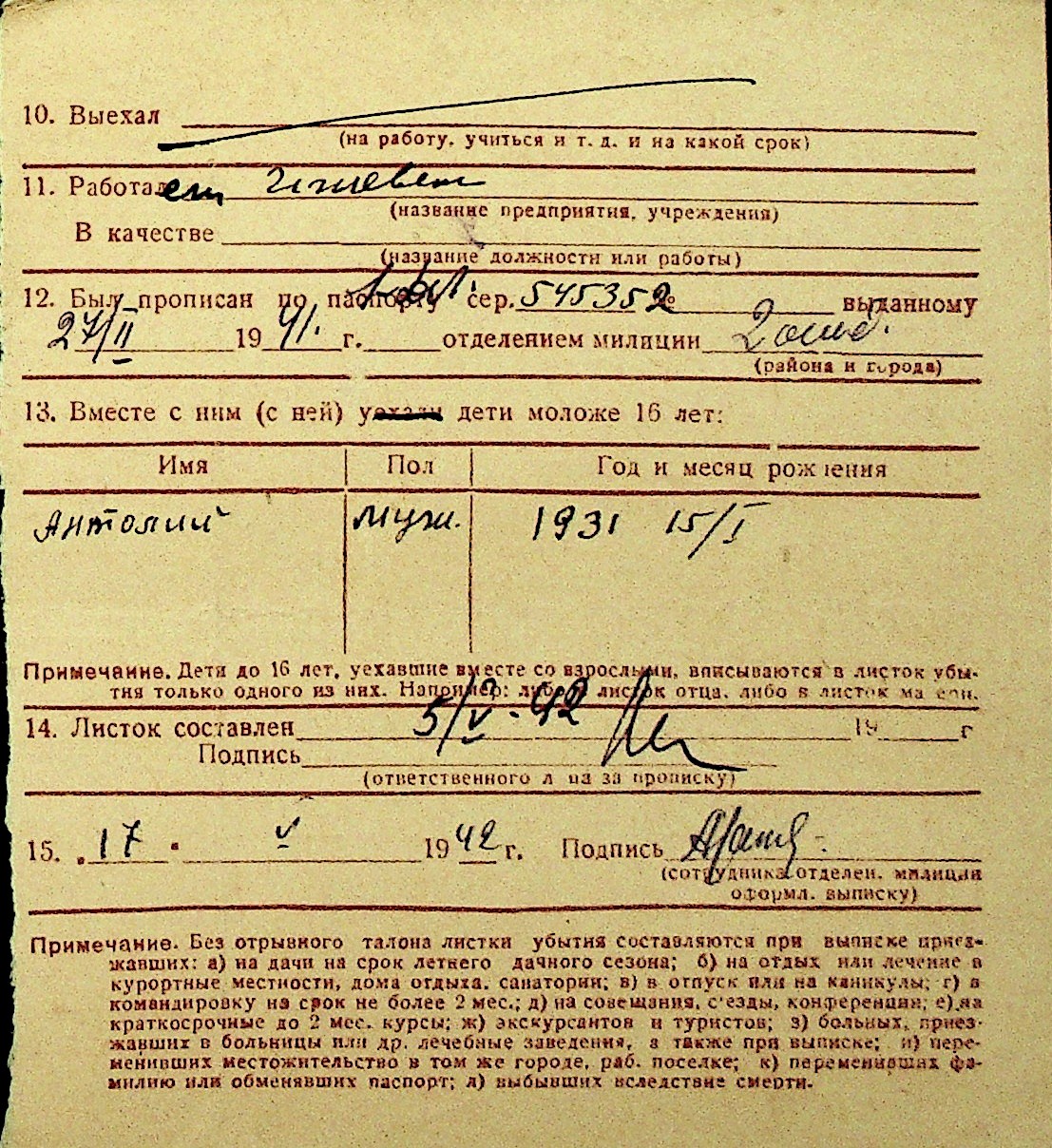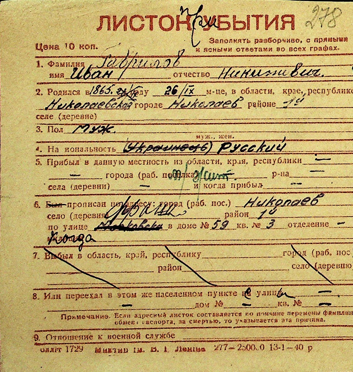 • • Перелік карток до фонду № Н-1016