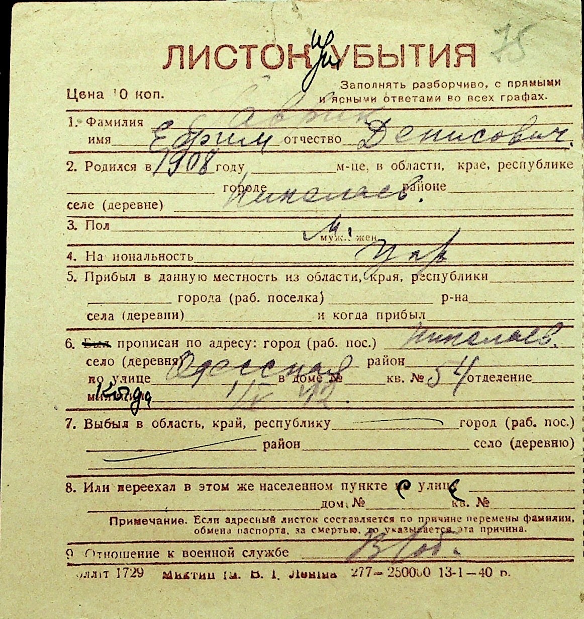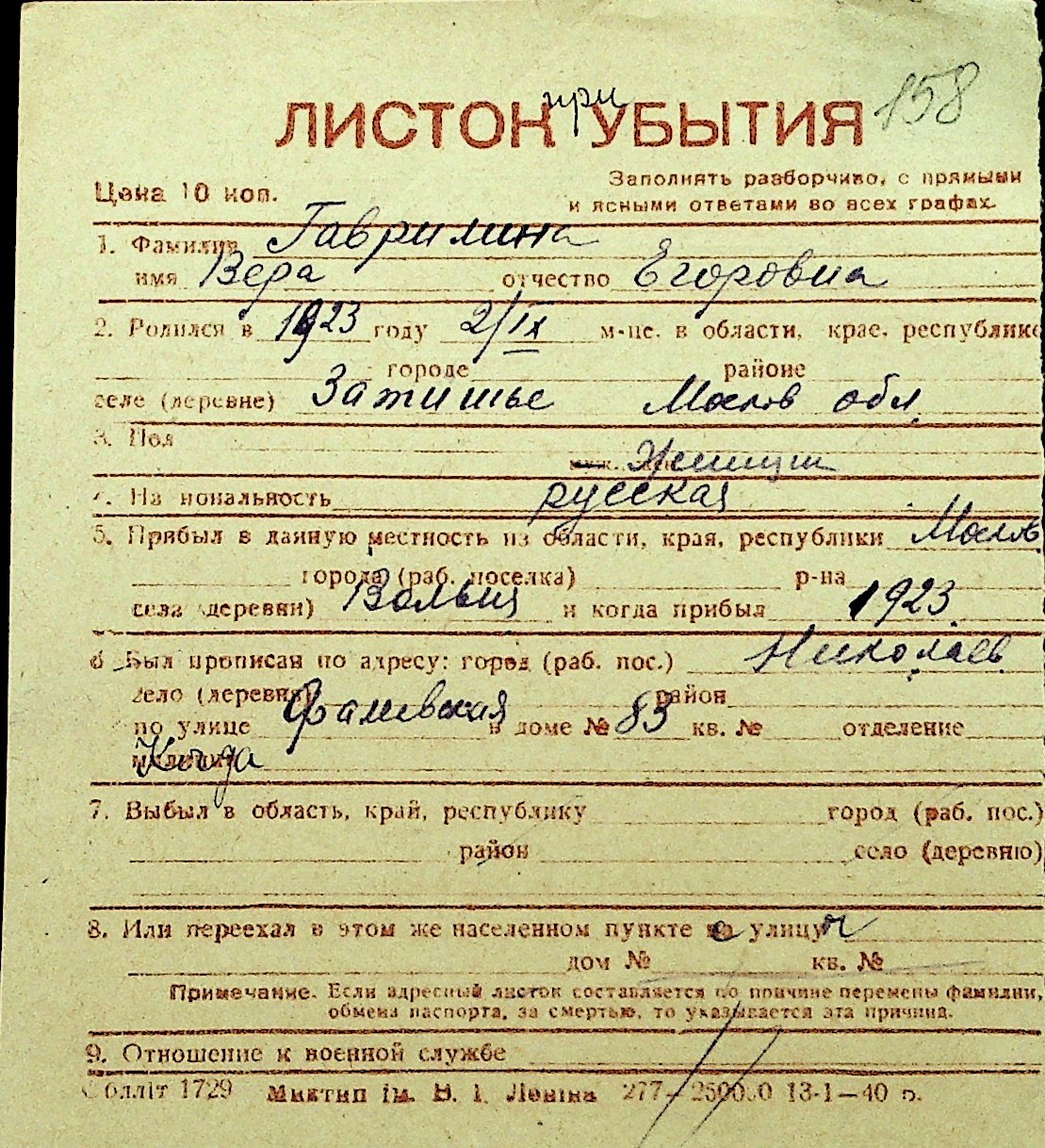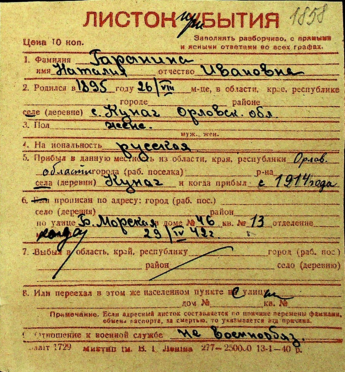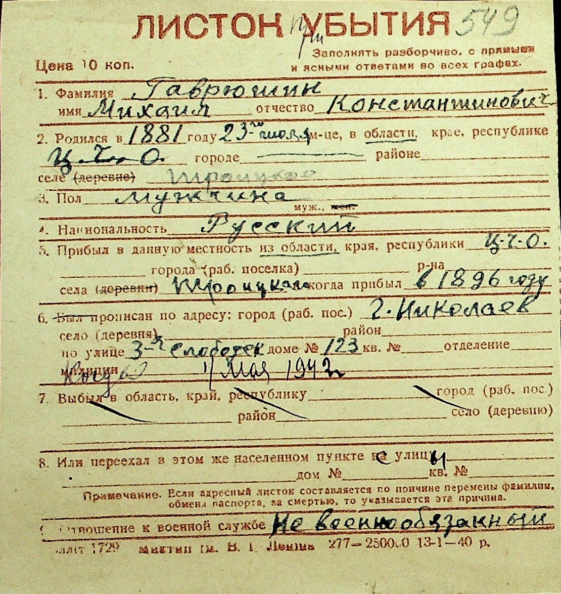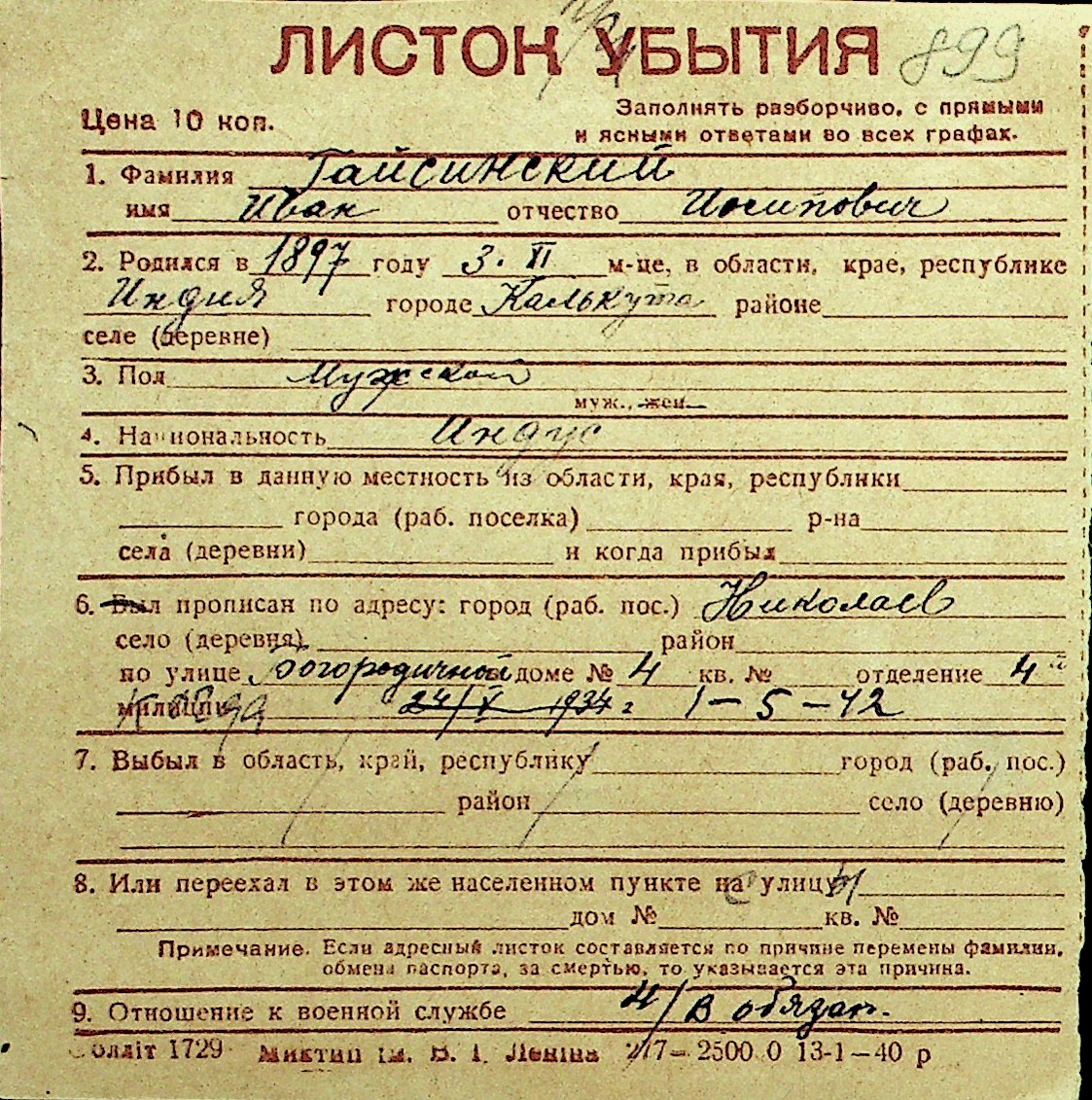 • • Перелік карток до фонду № Н-1016