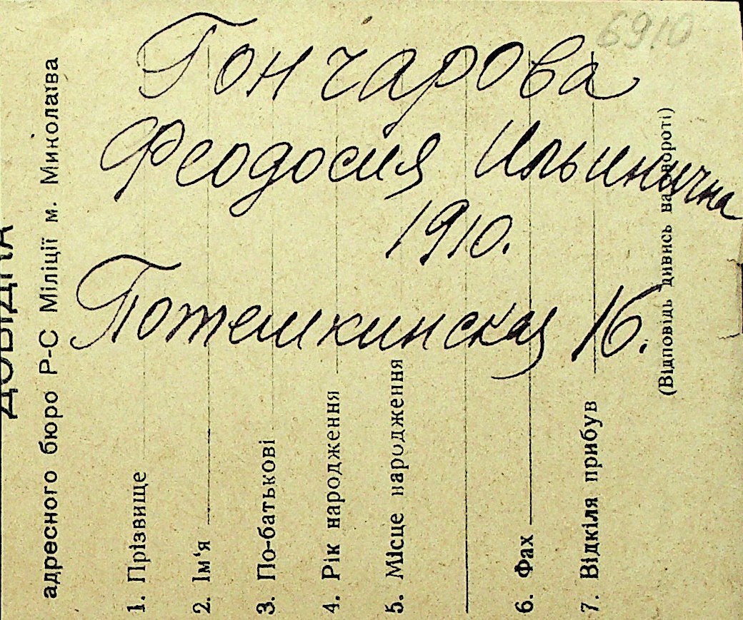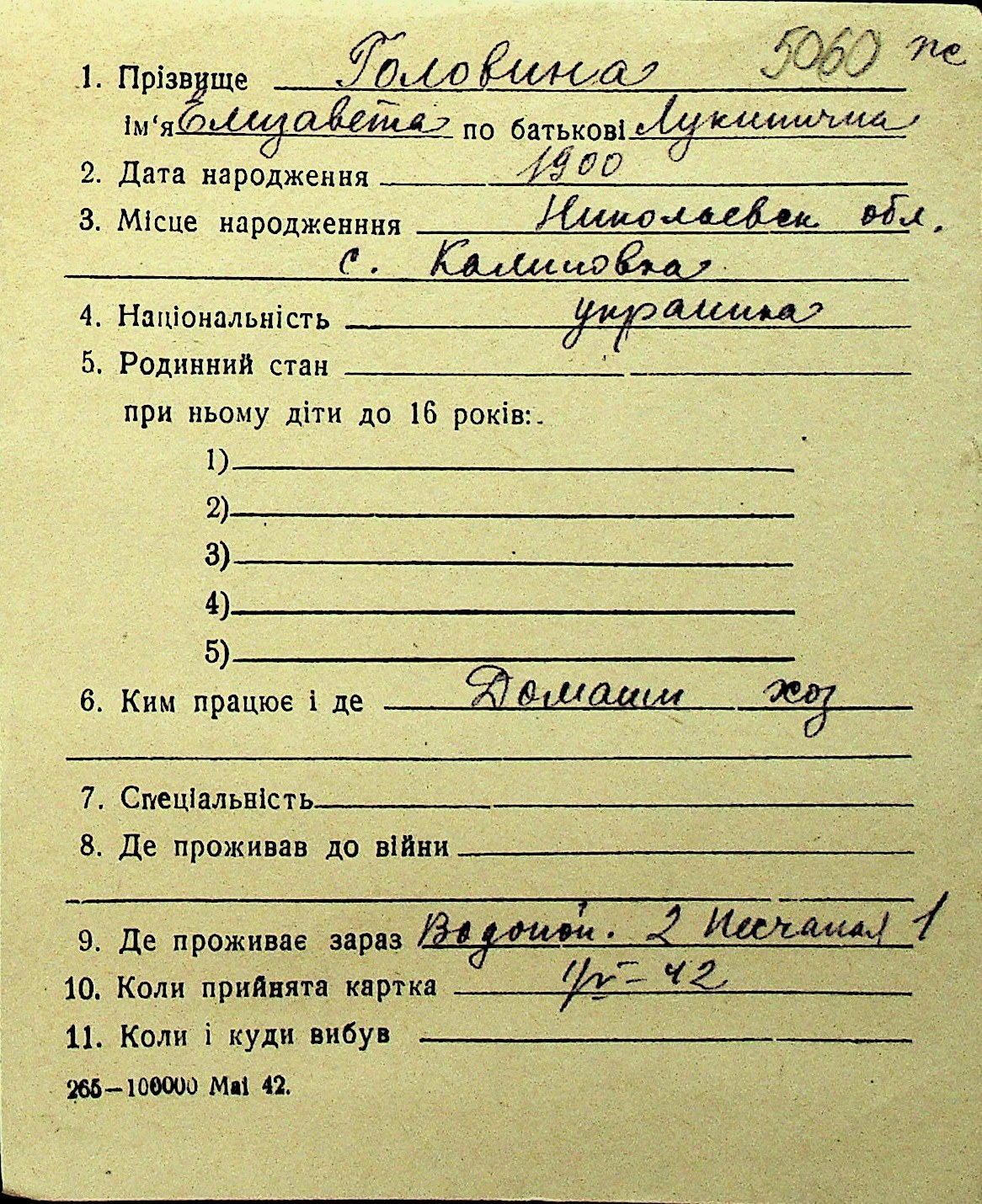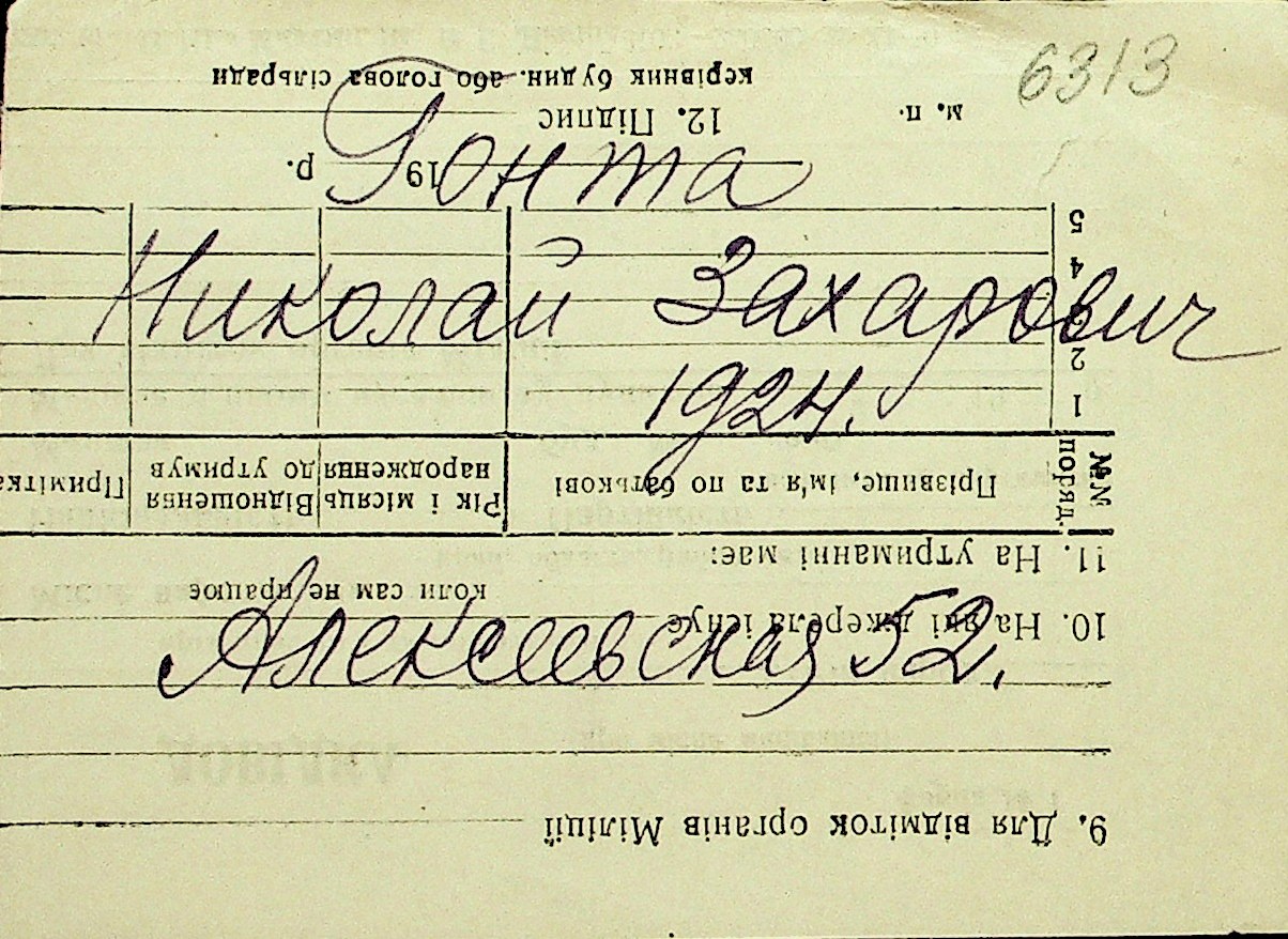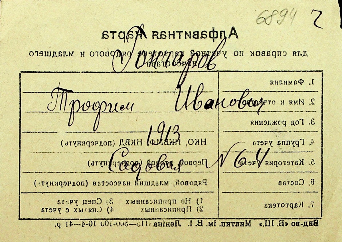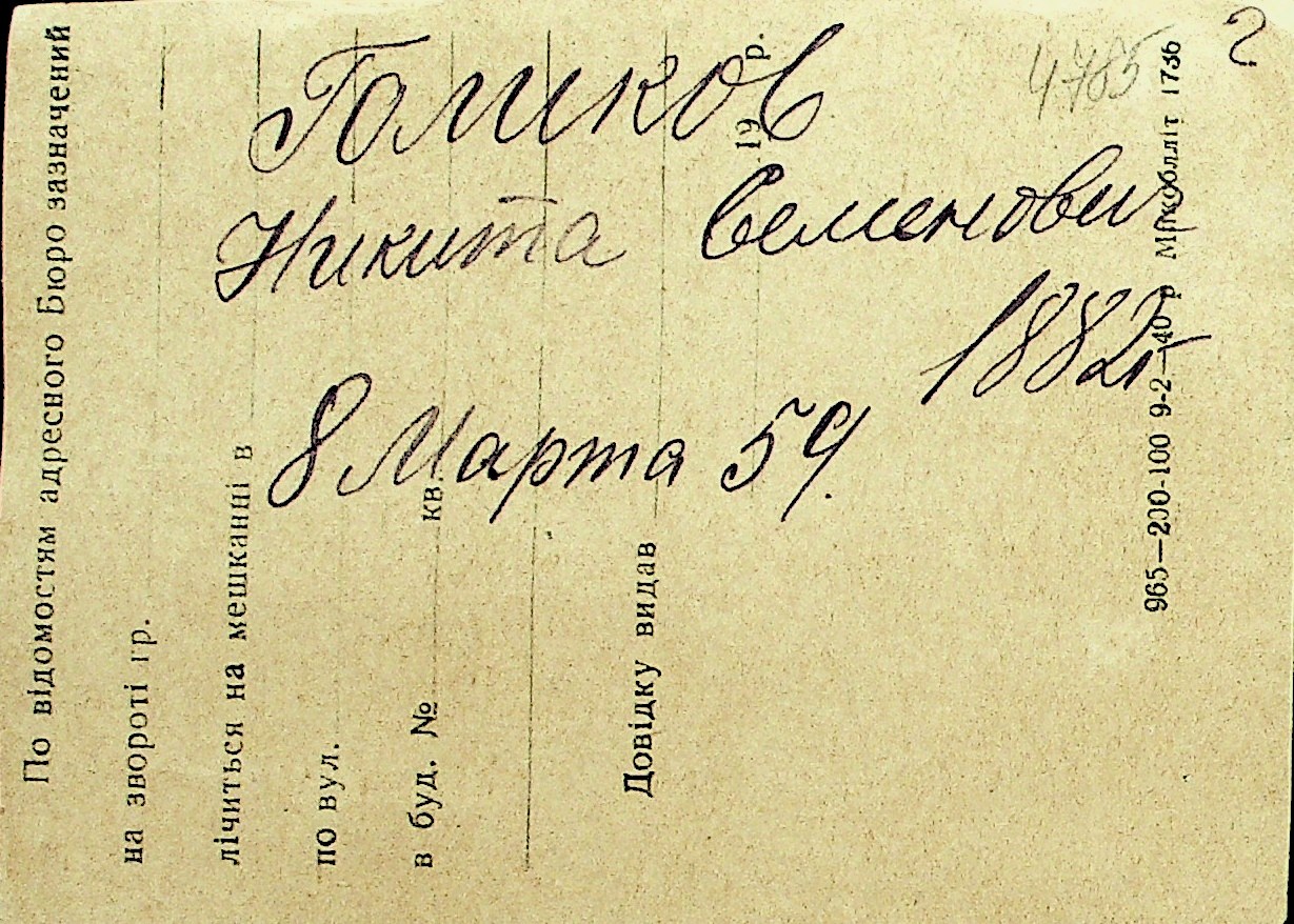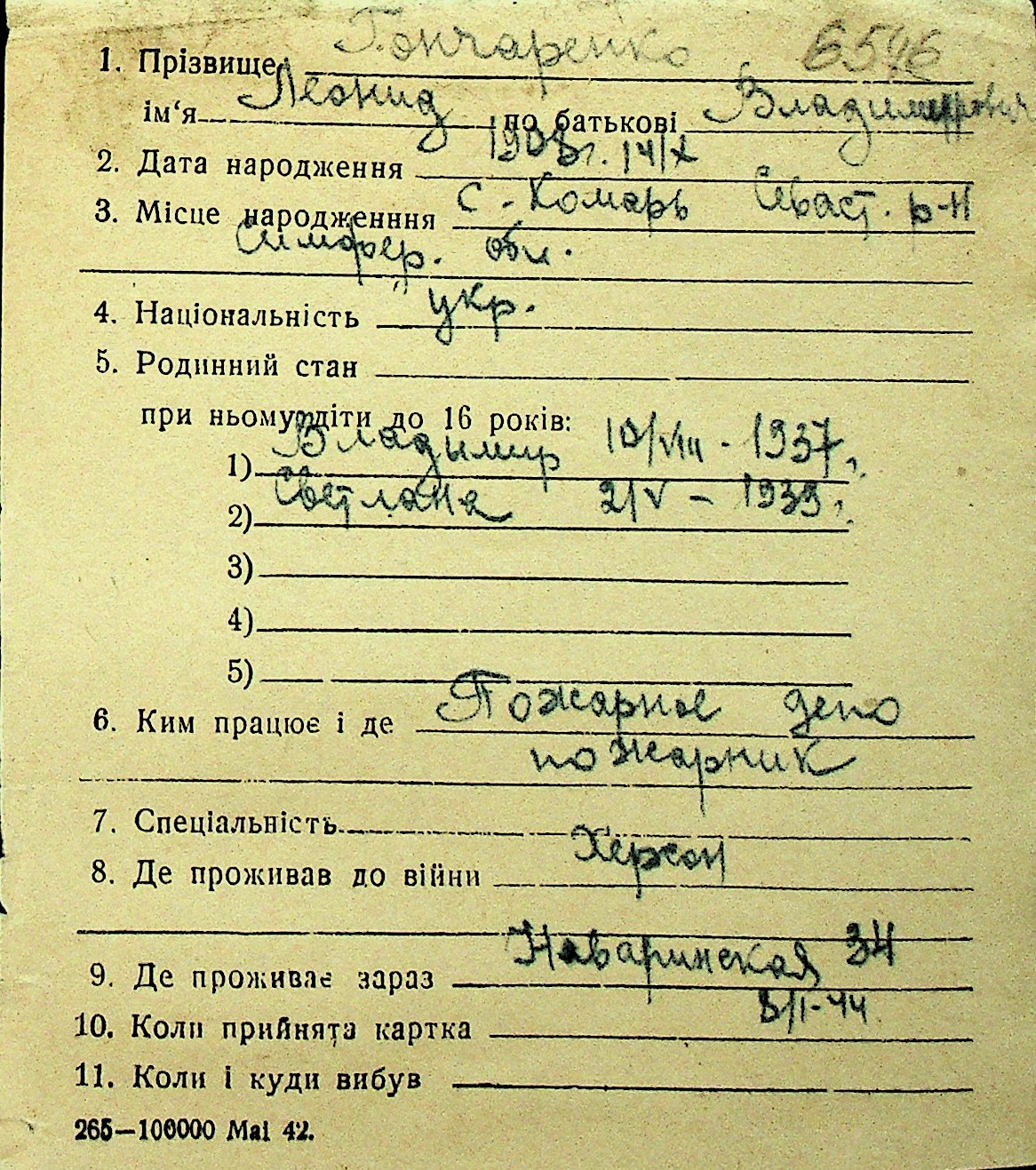 • • Перелік карток до фонду № Н-1016
