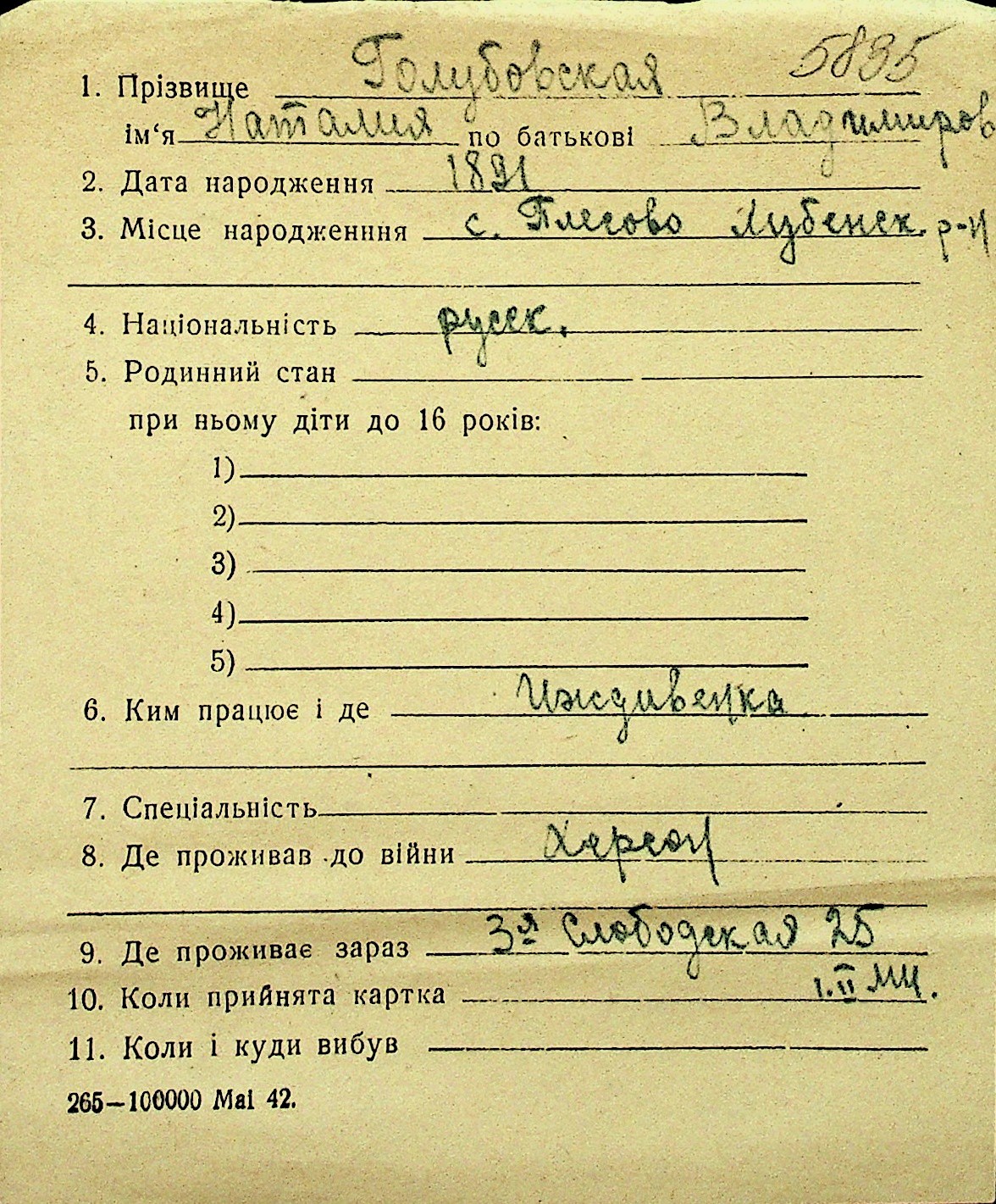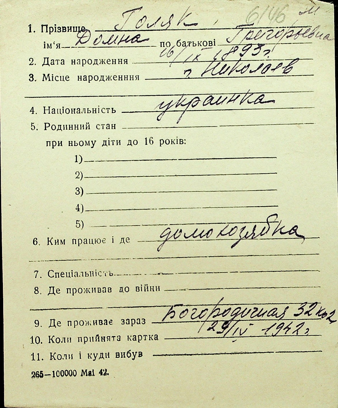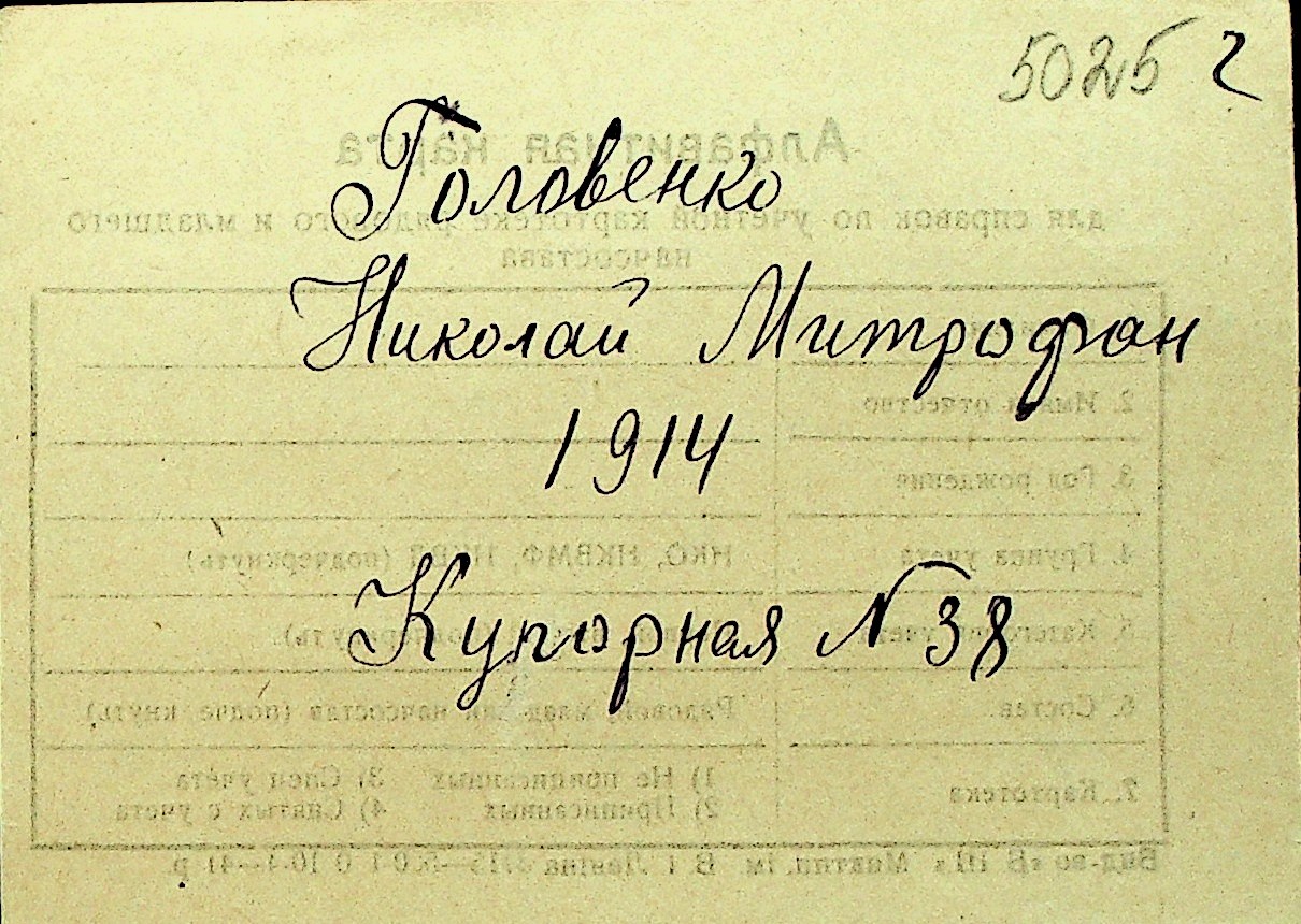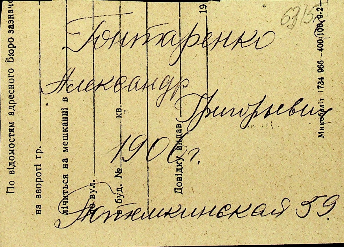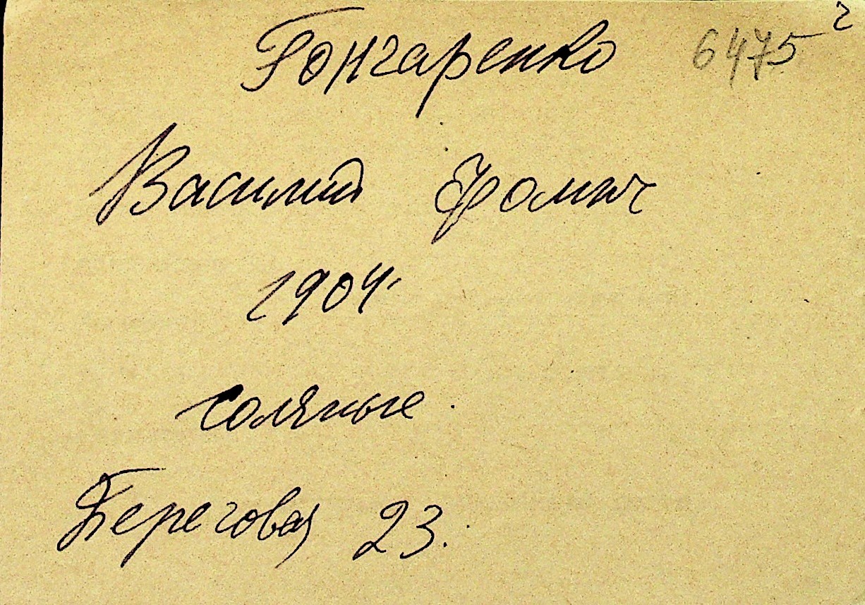 • • Перелік карток до фонду № Н-1016