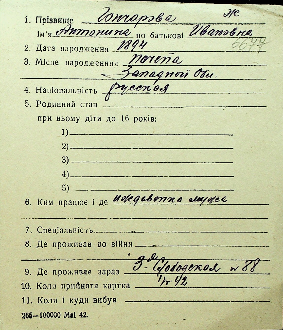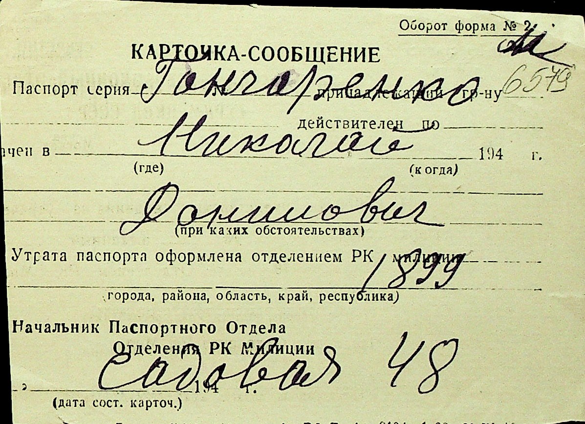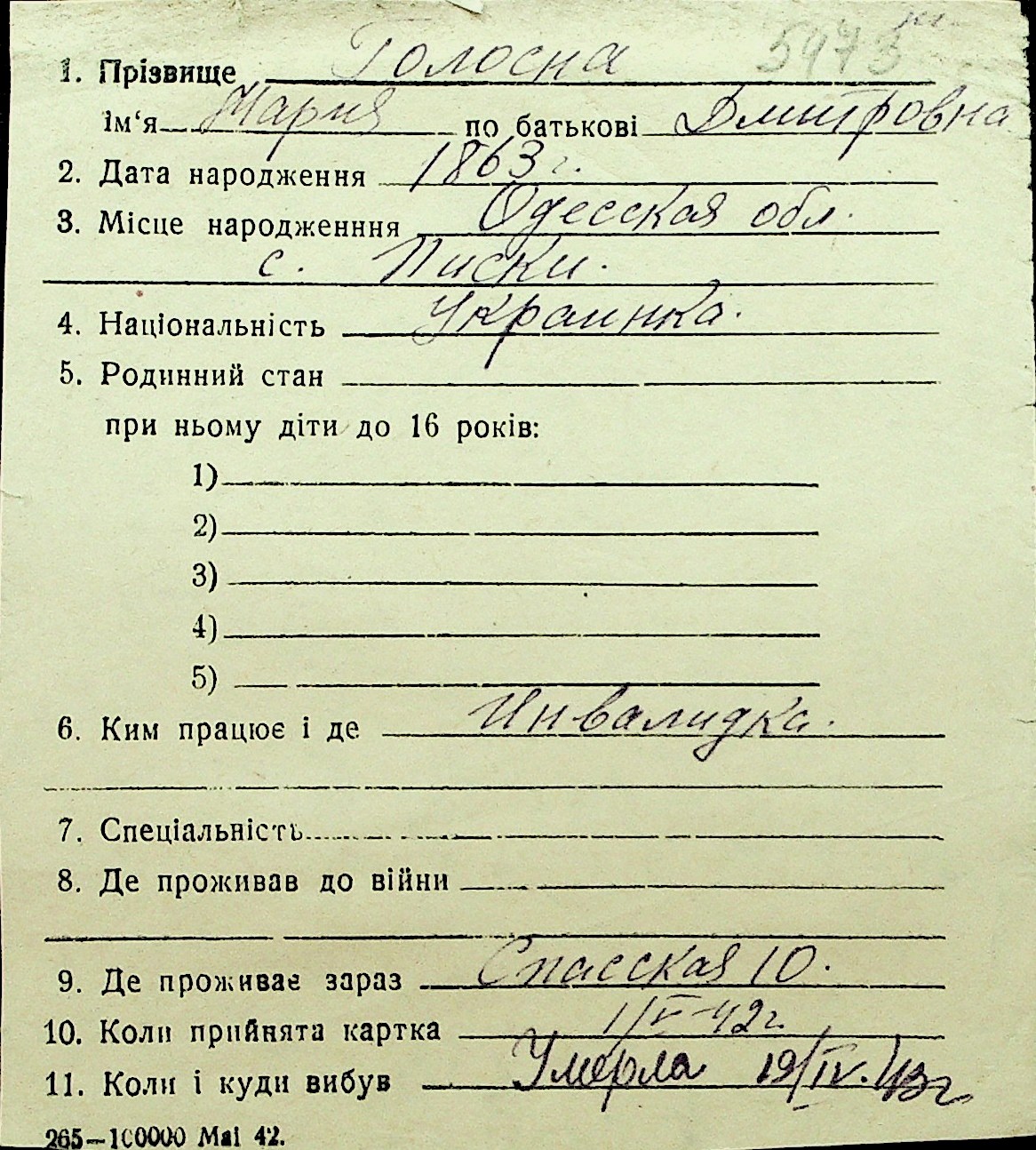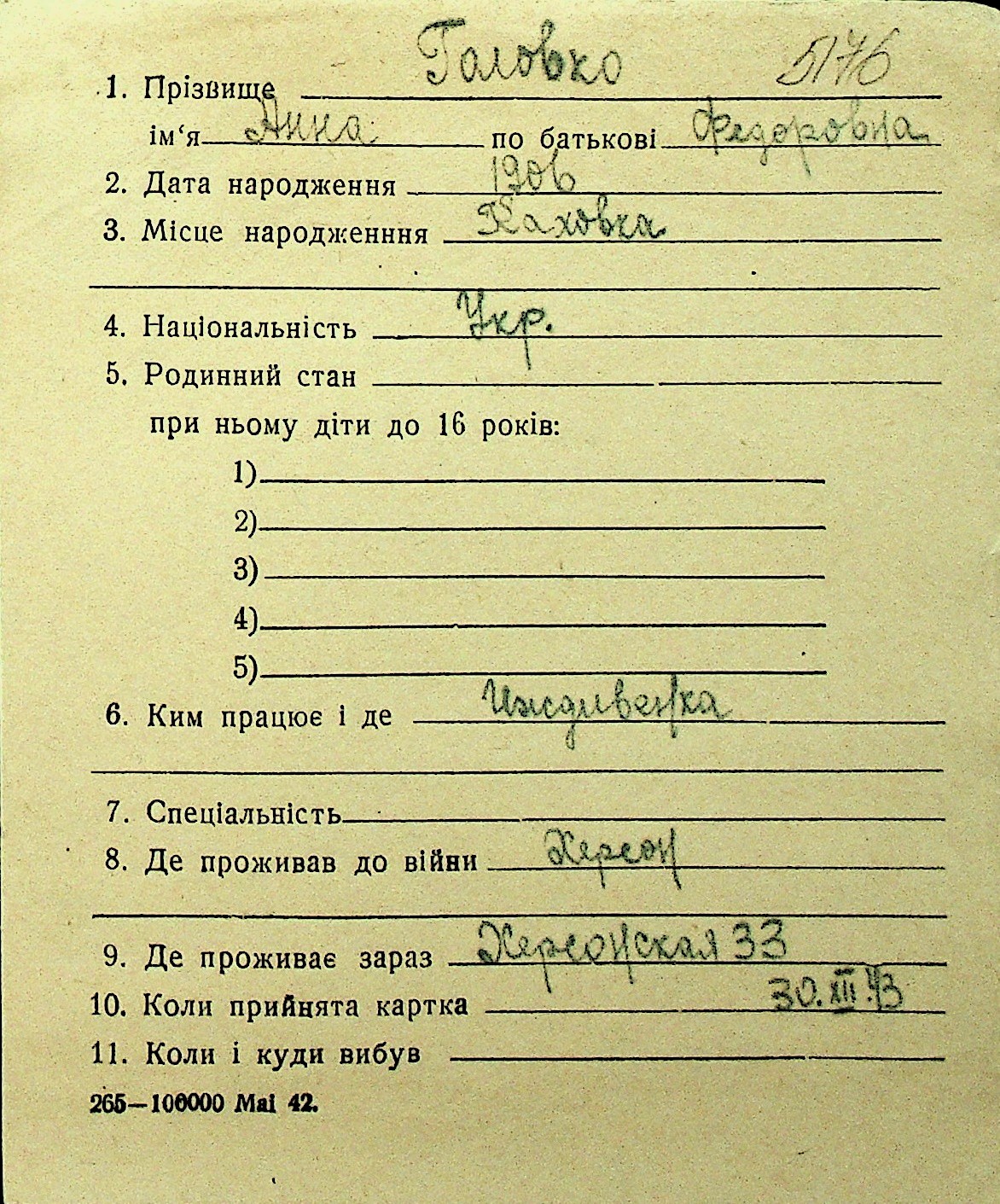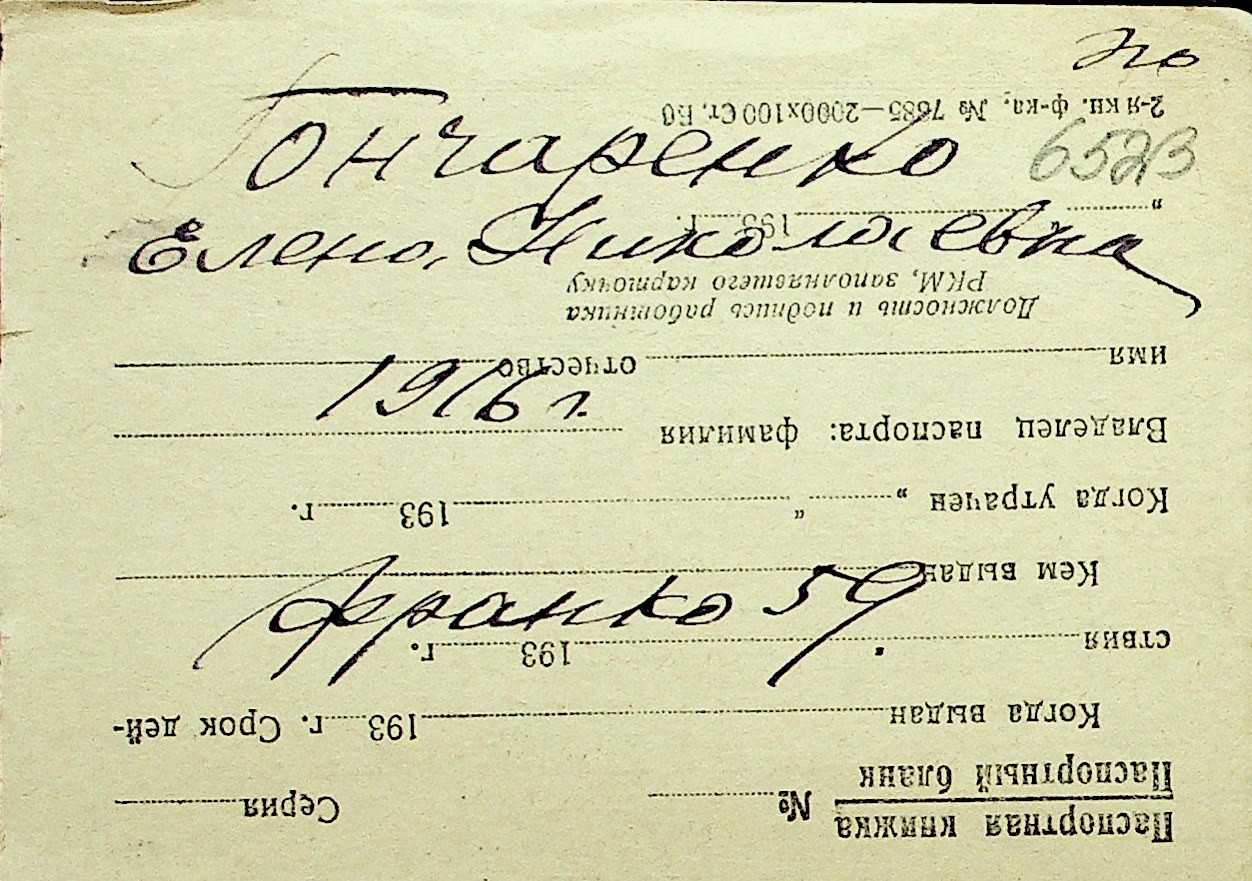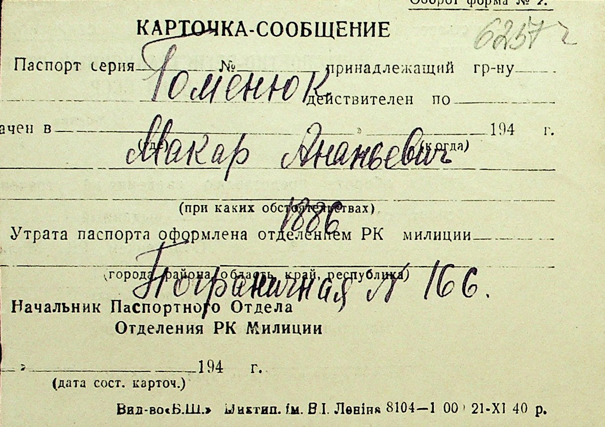• • Перелік карток до фонду № Н-1016