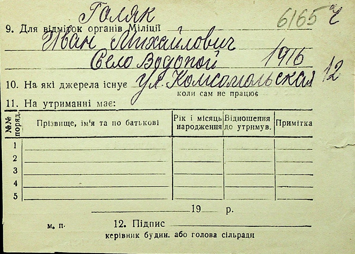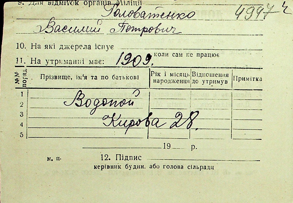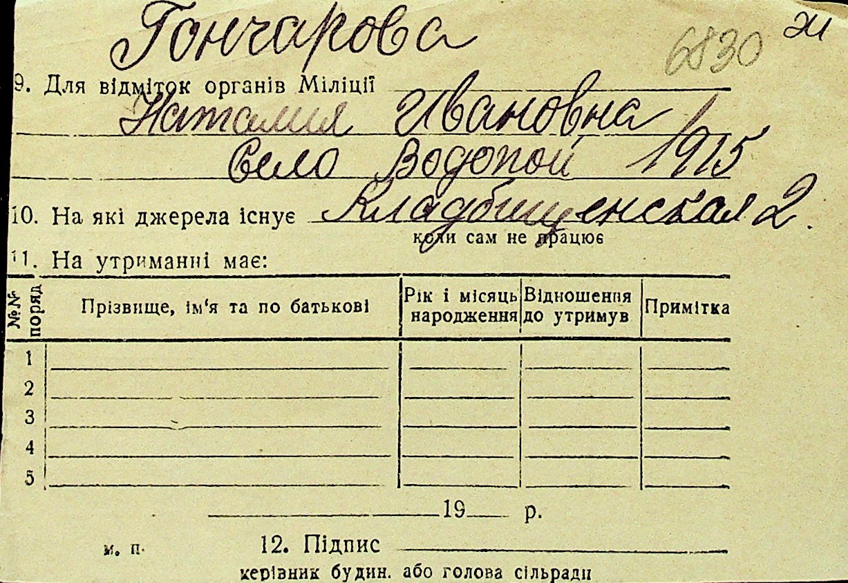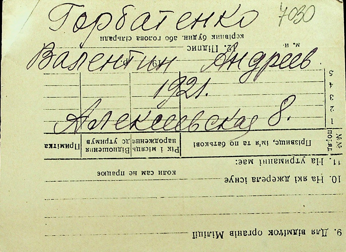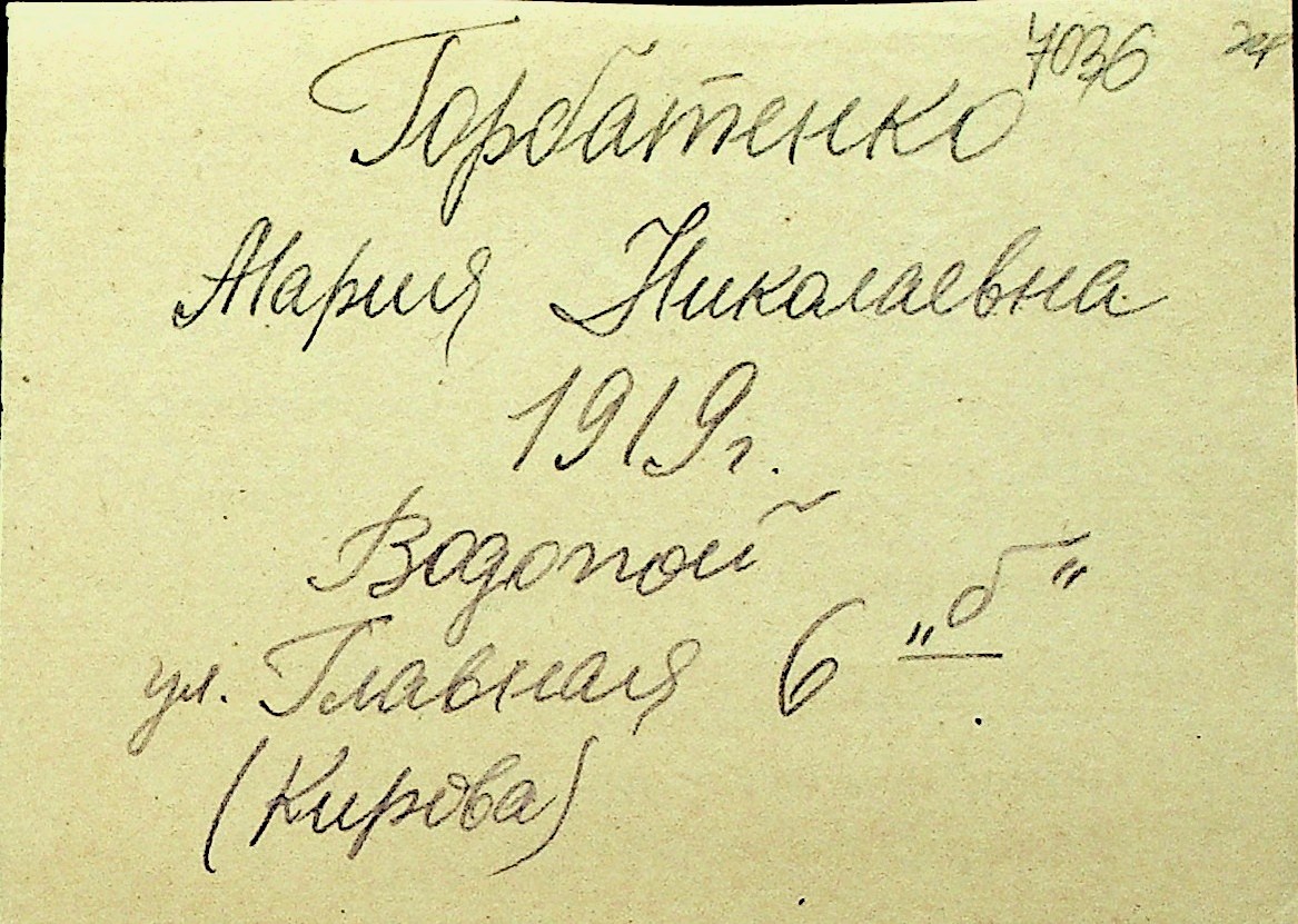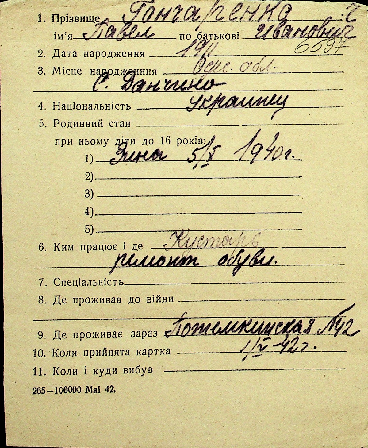 • • Перелік карток до фонду № Н-1016