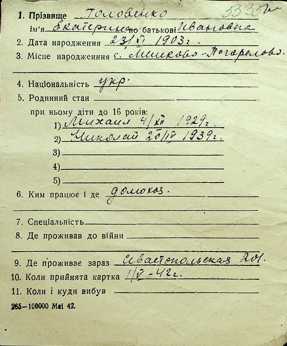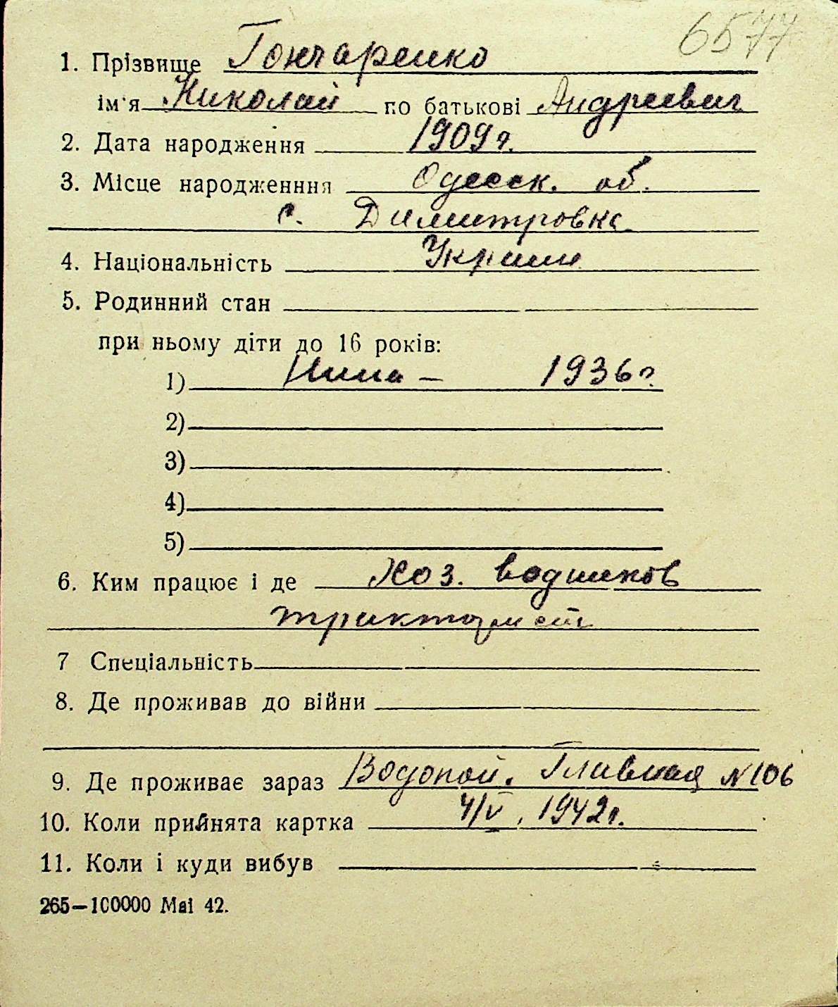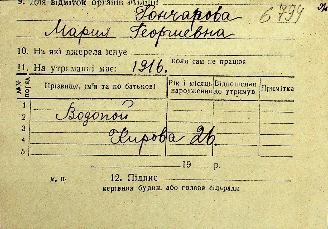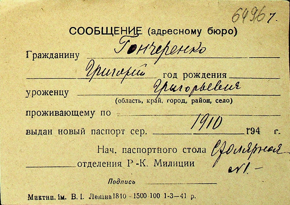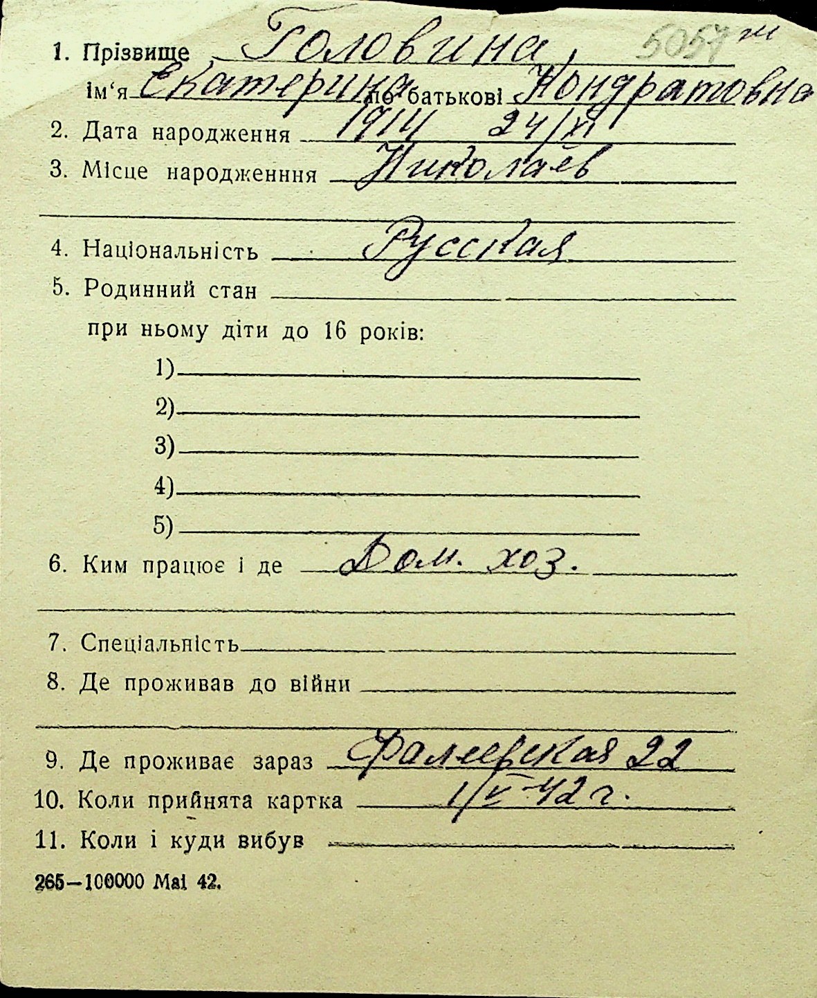 • • Перелік карток до фонду № Н-1016