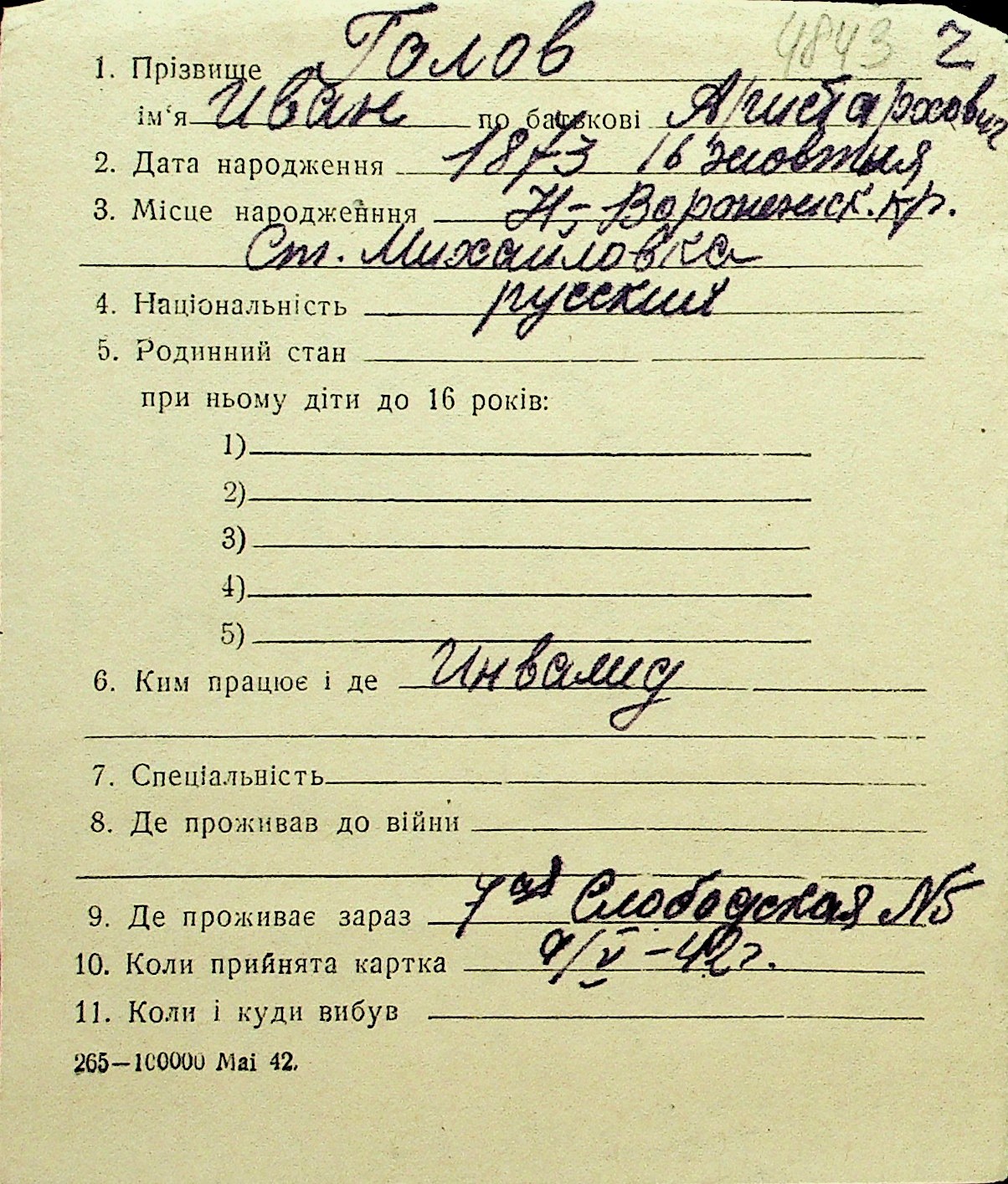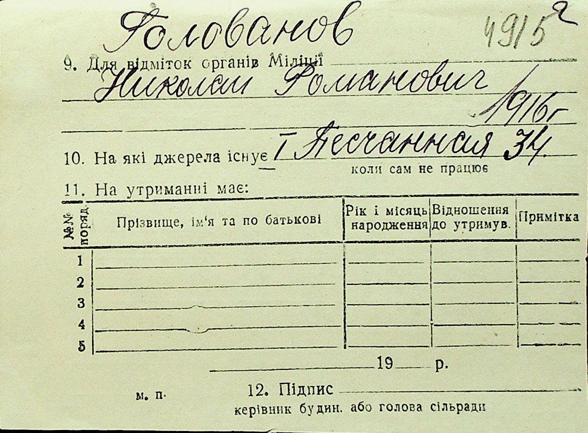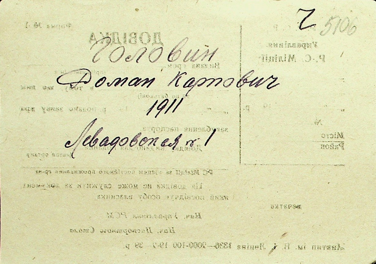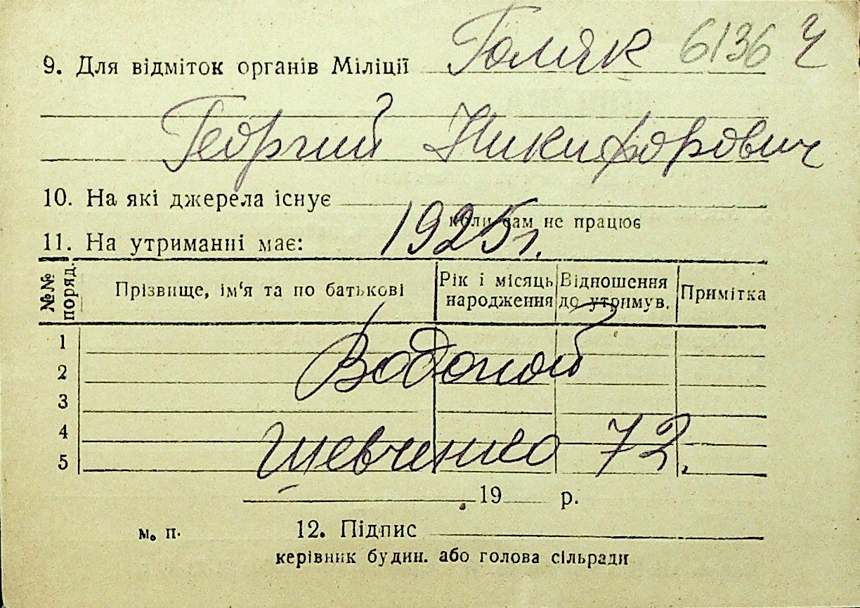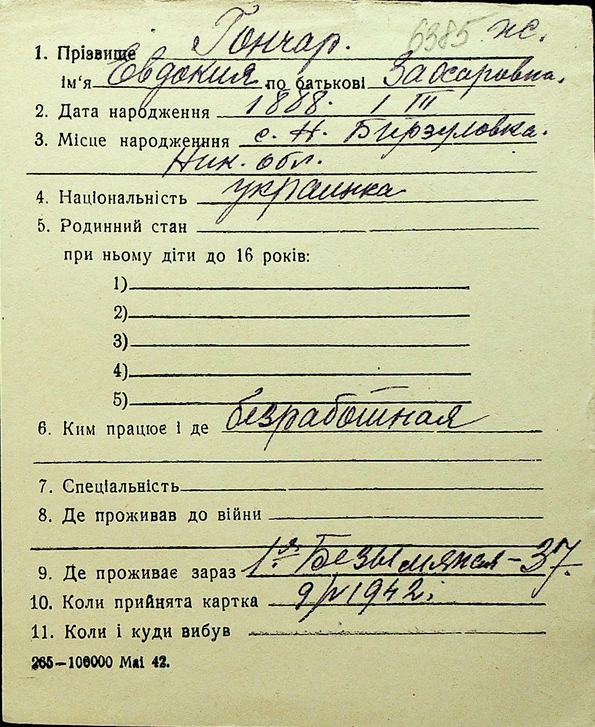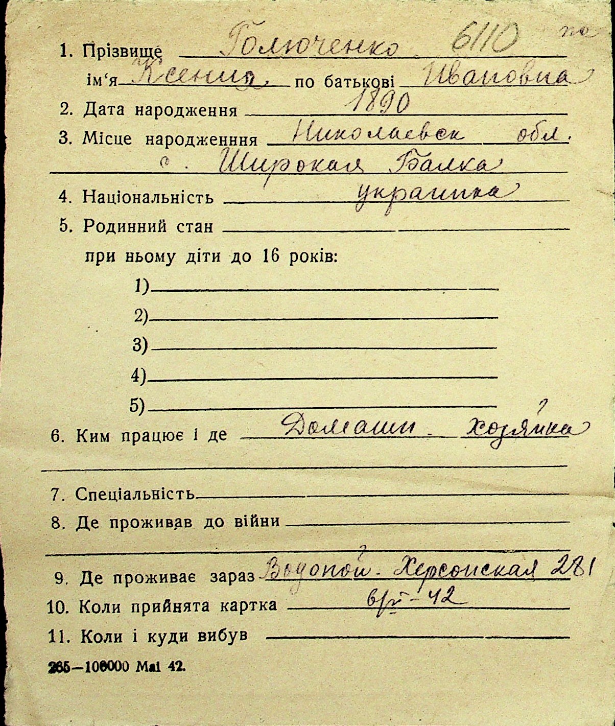 • • Перелік карток до фонду № Н-1016