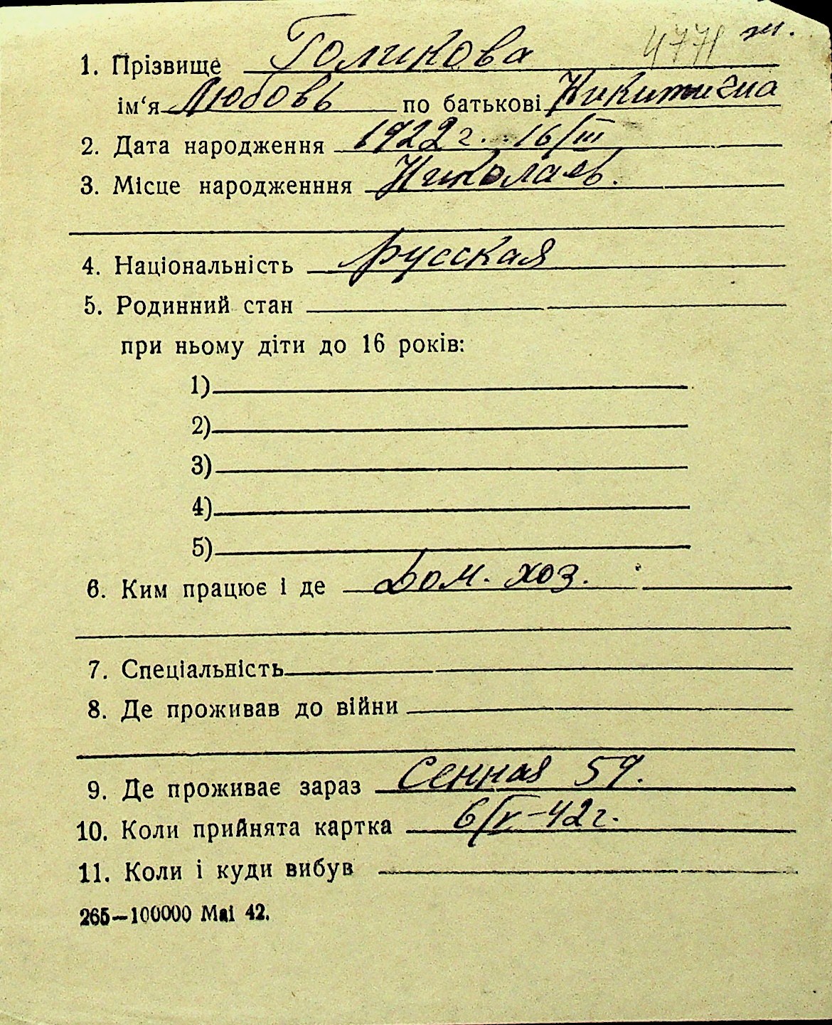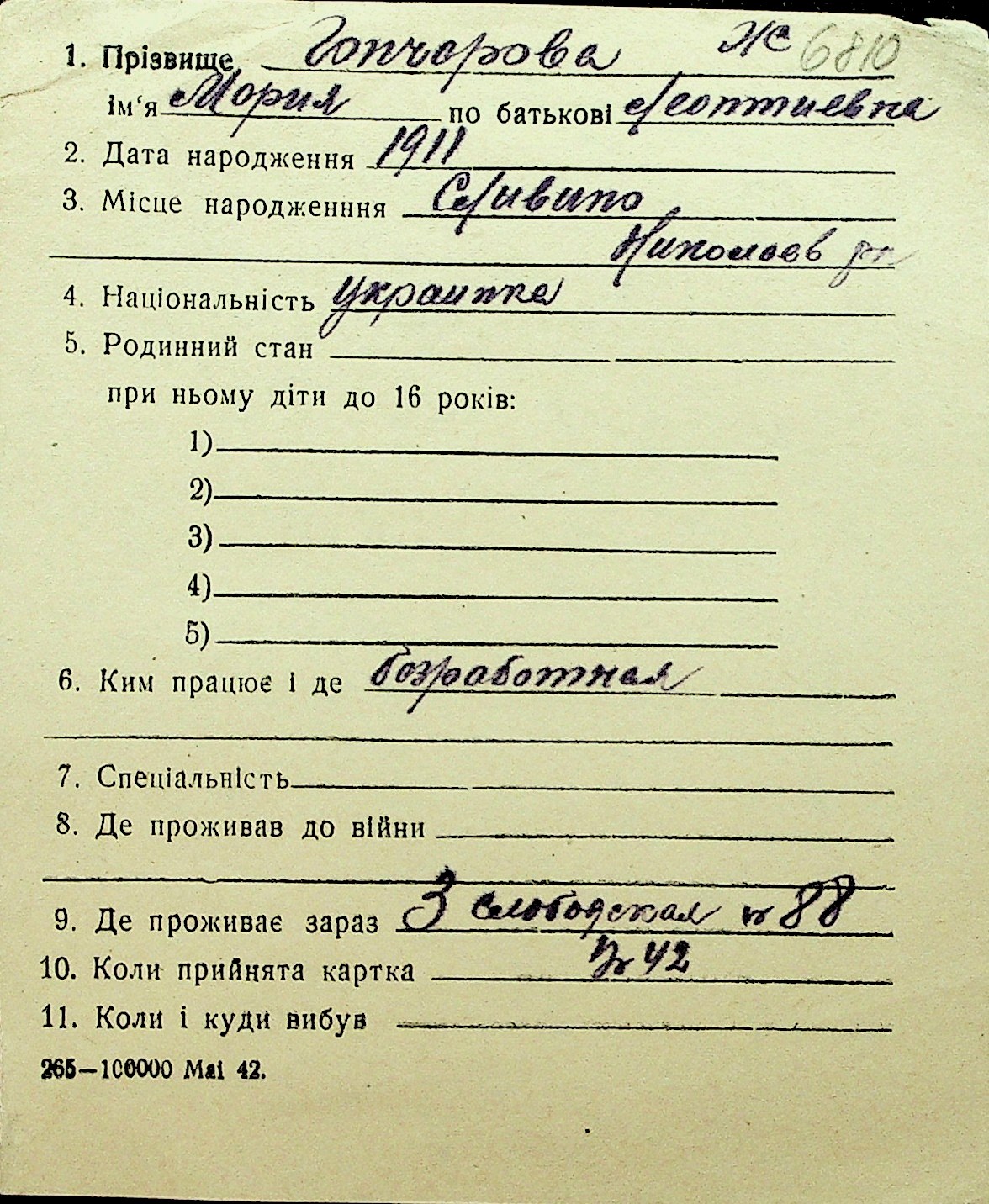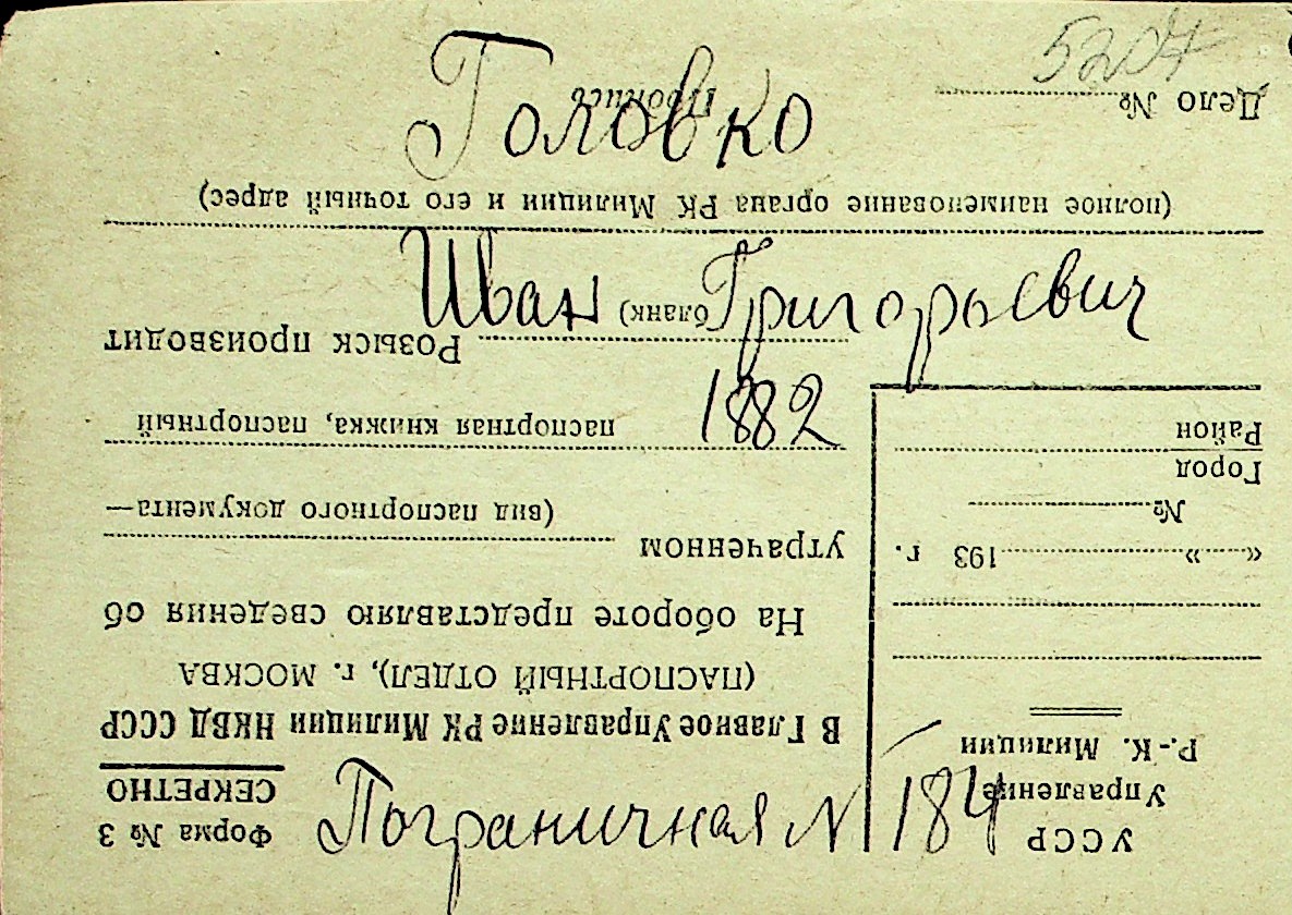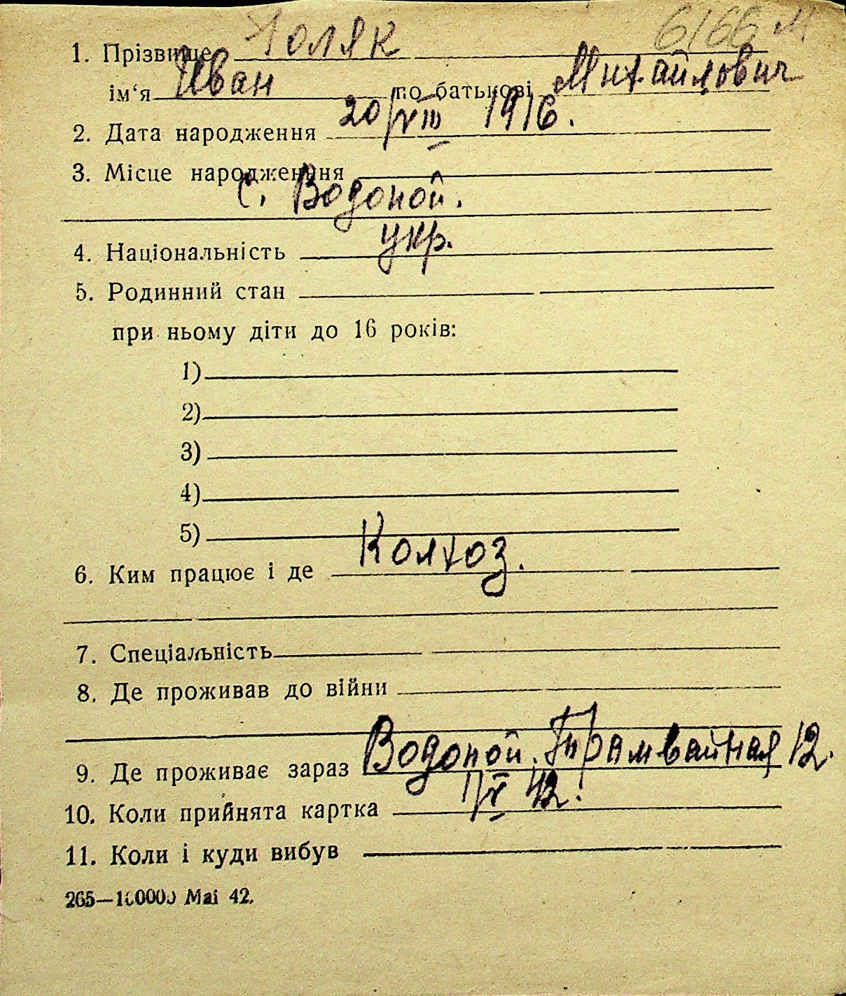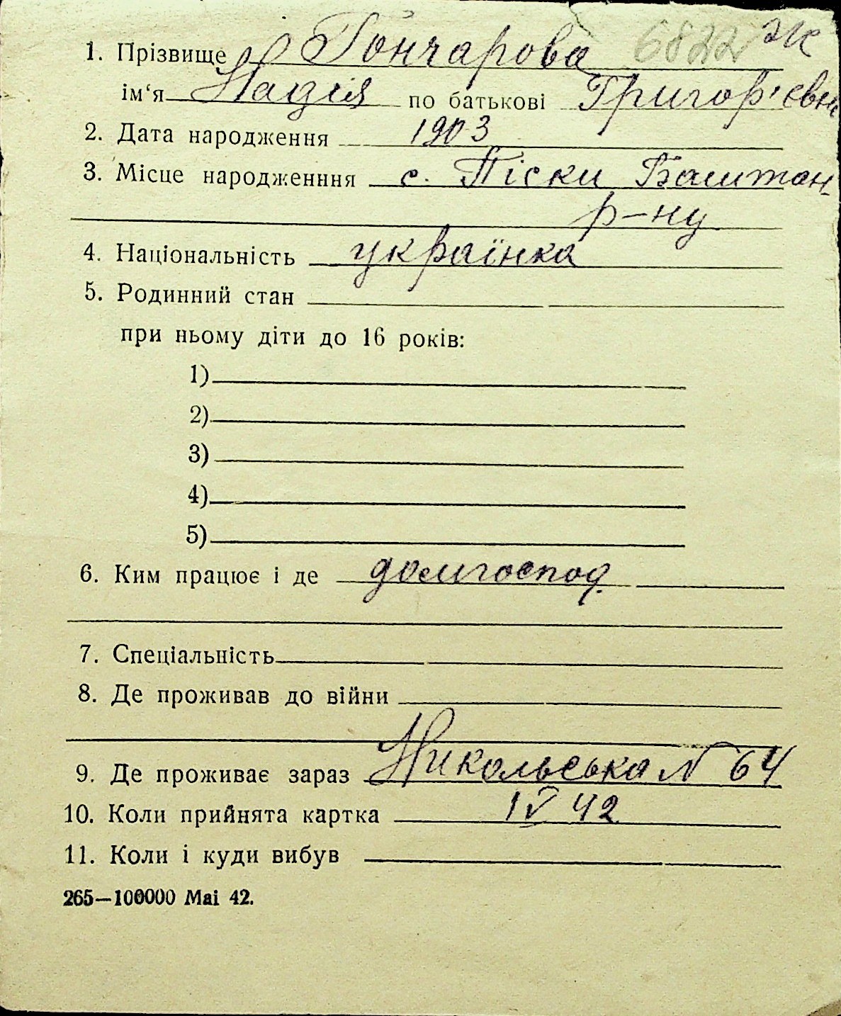• • Перелік карток до фонду № Н-1016