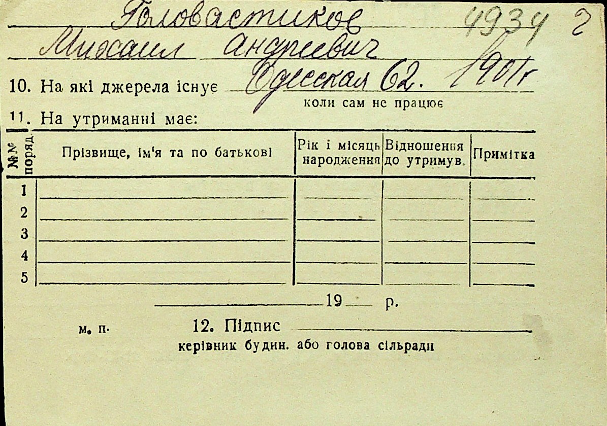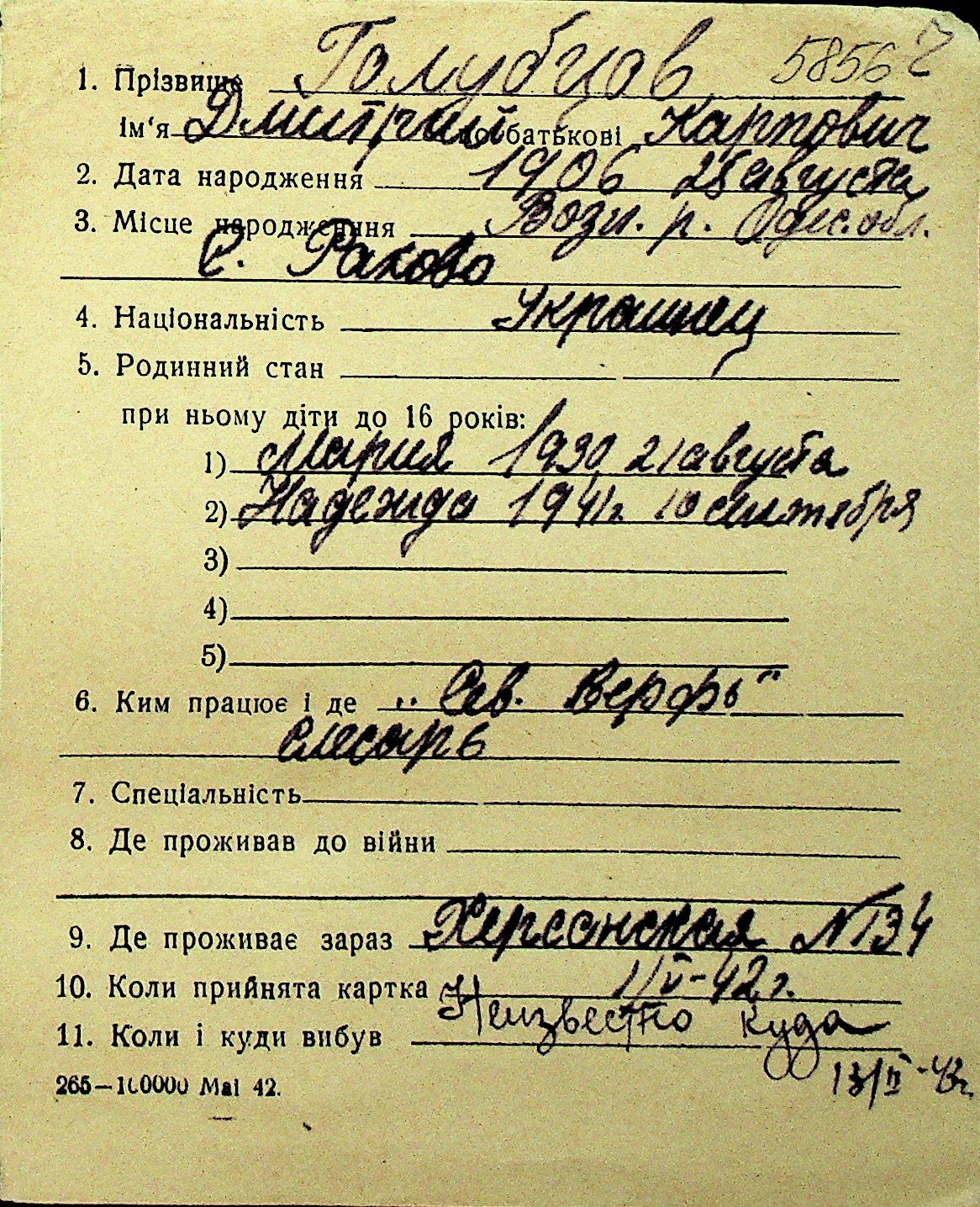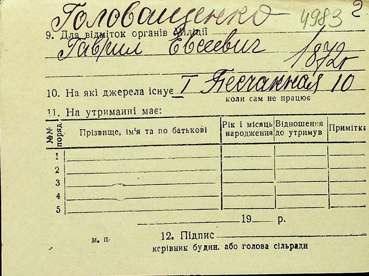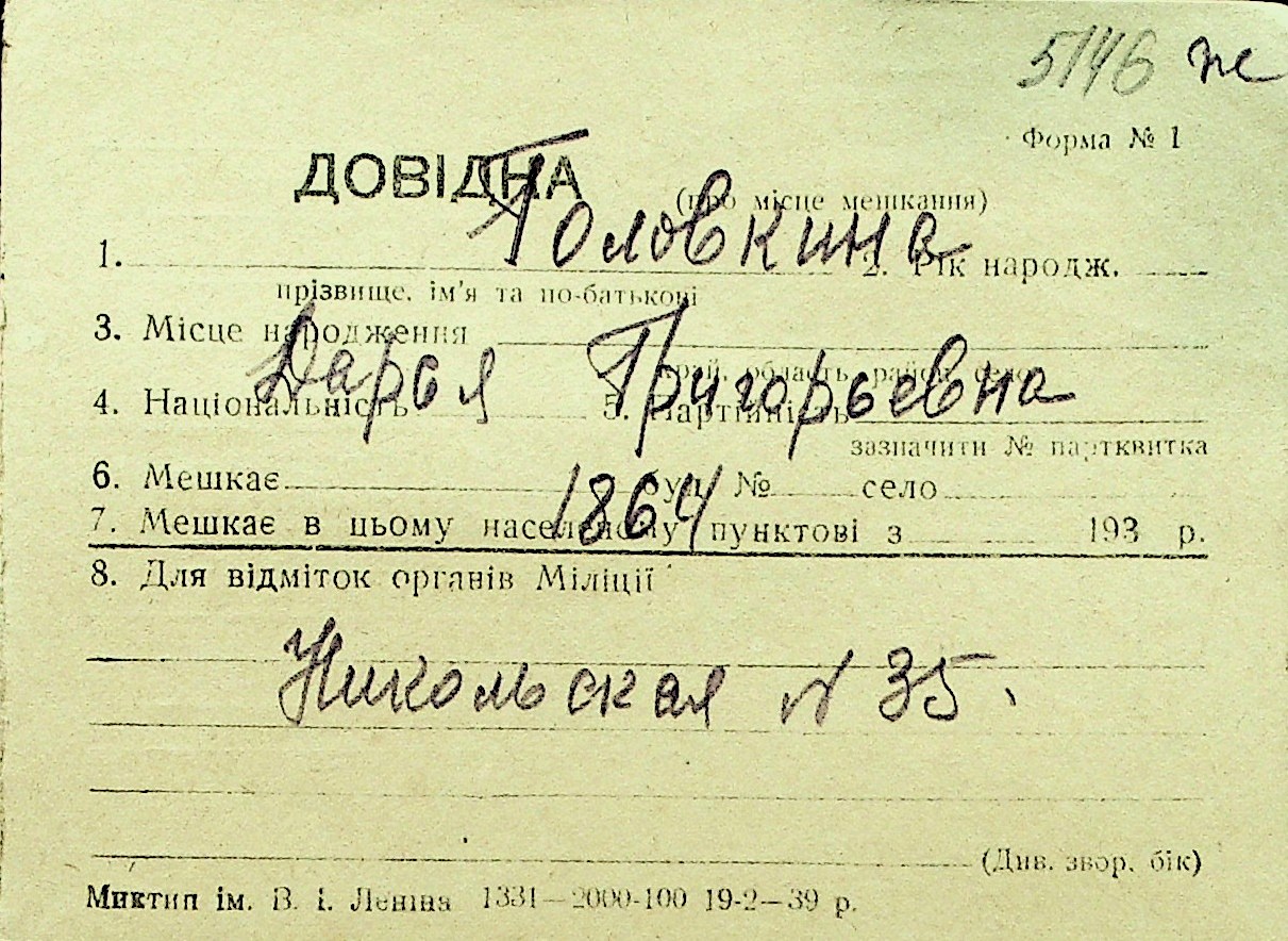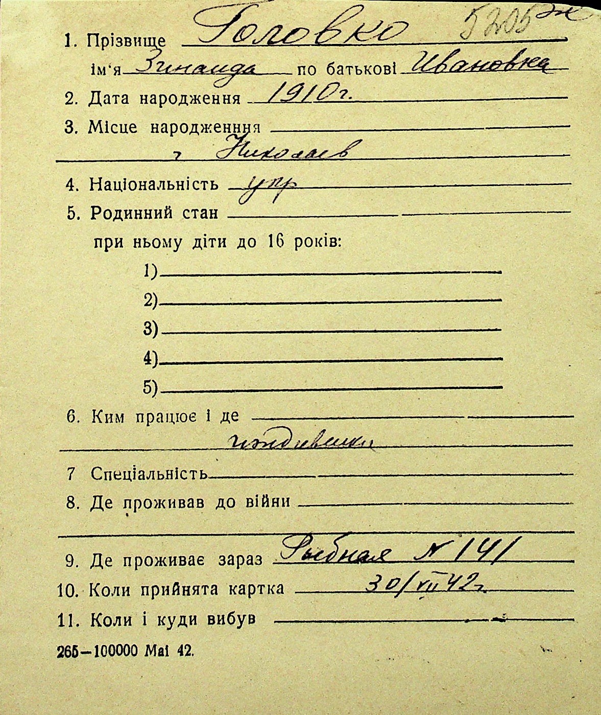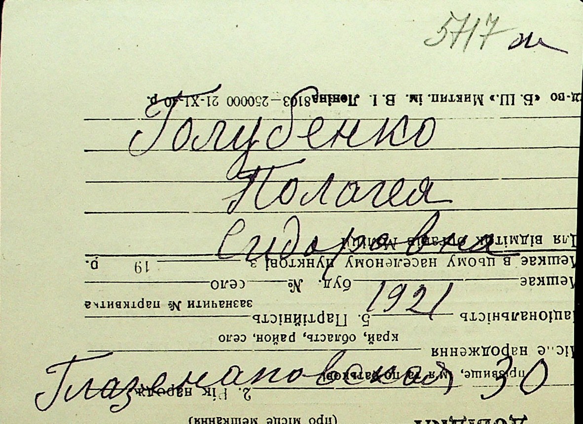 • • Перелік карток до фонду № Н-1016