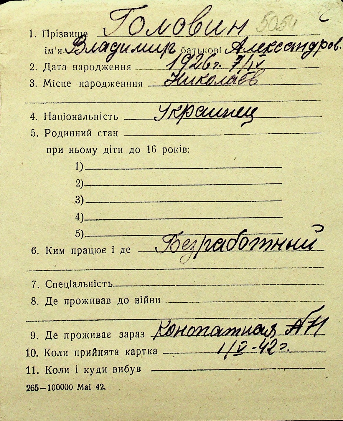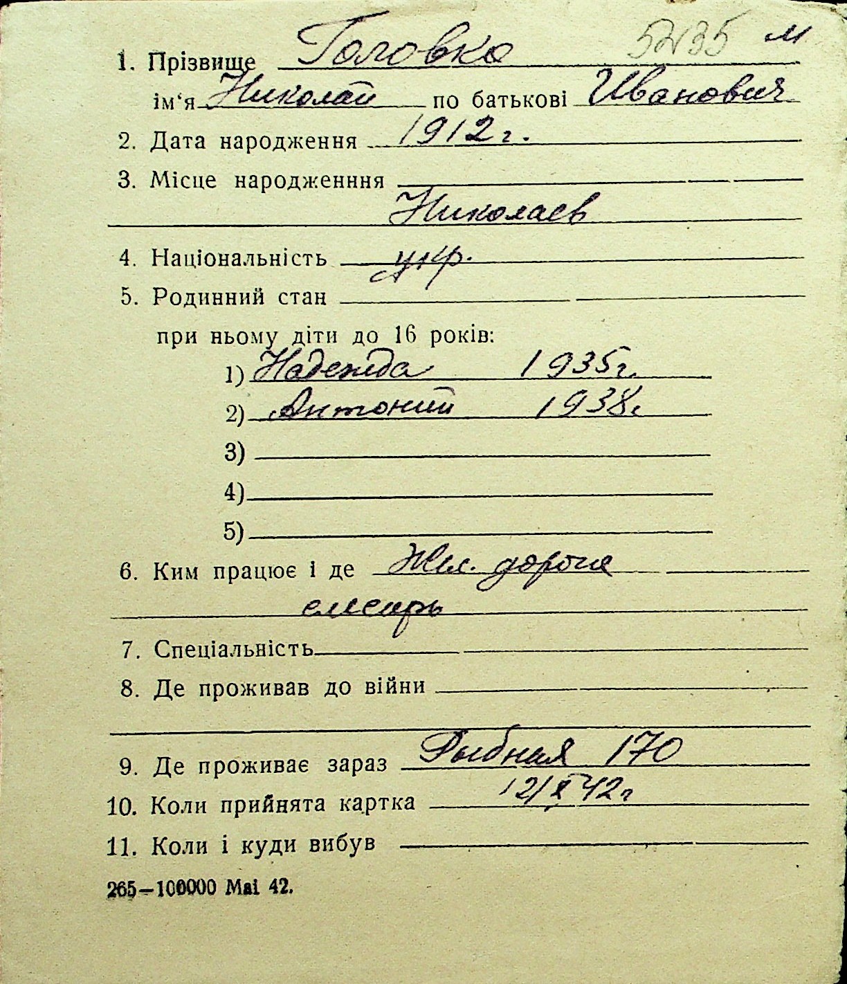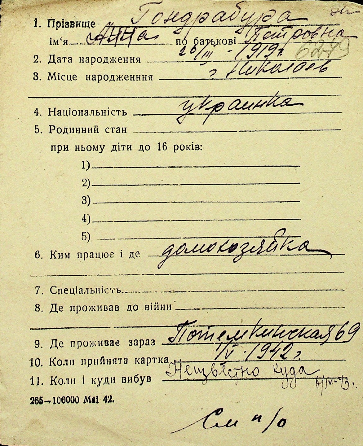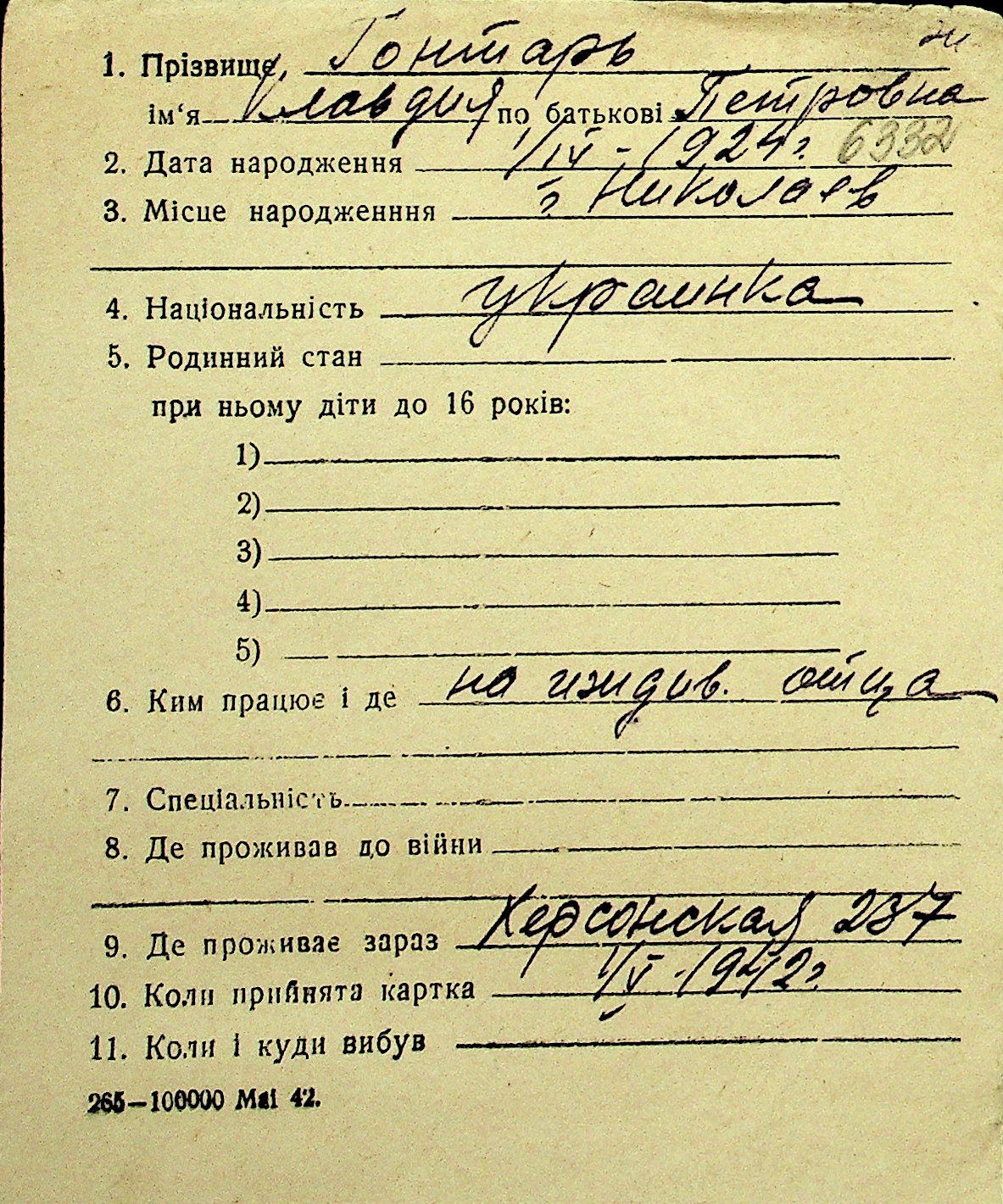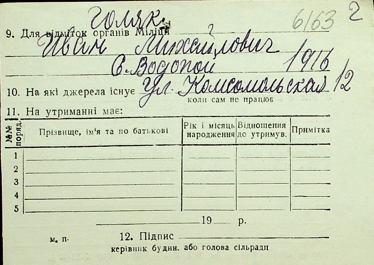 • • Перелік карток до фонду № Н-1016