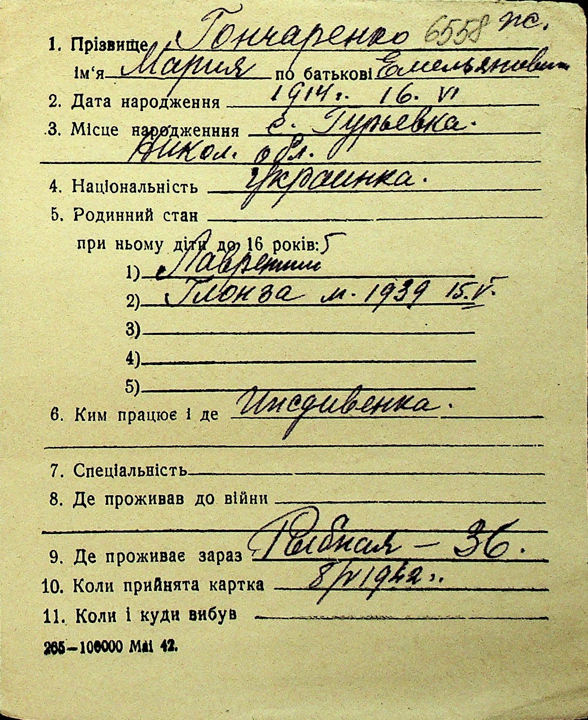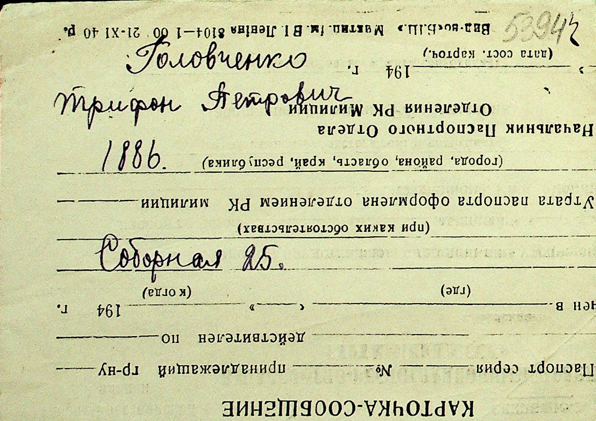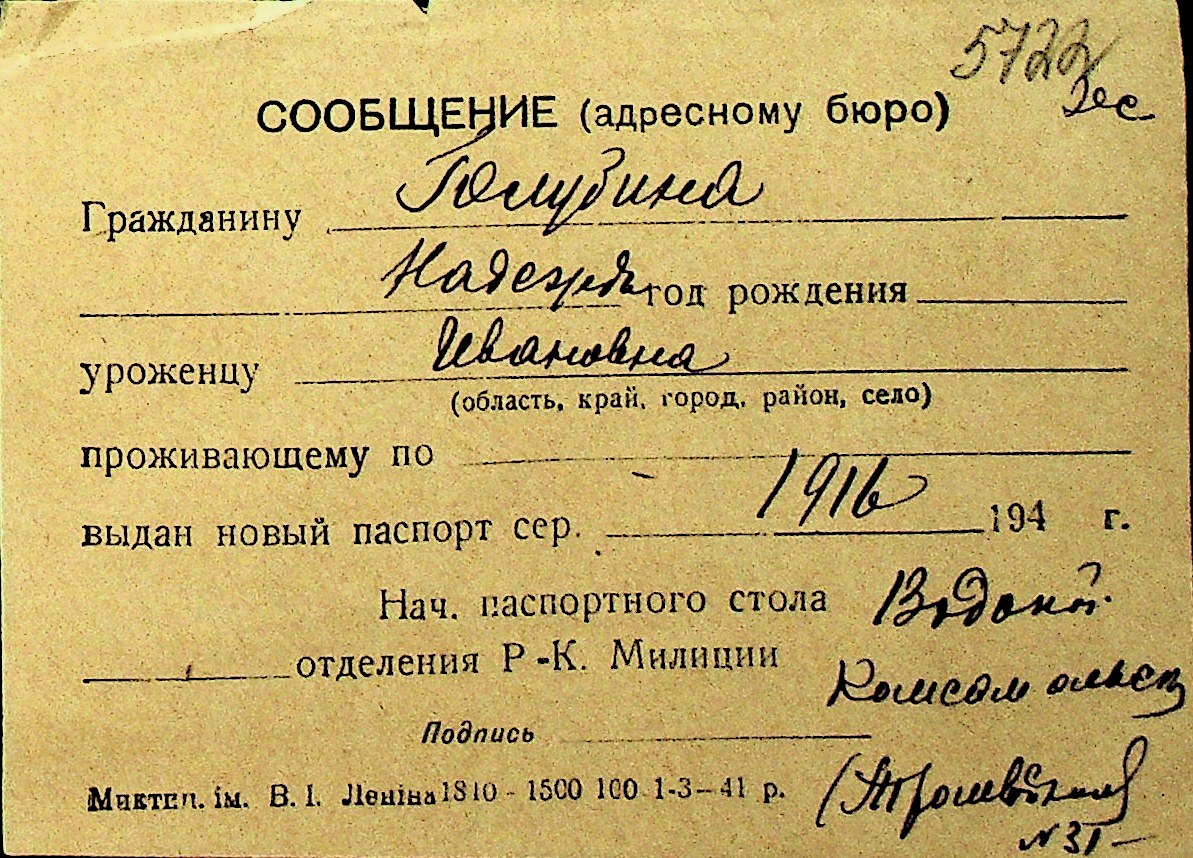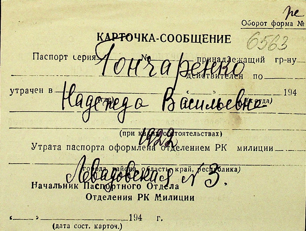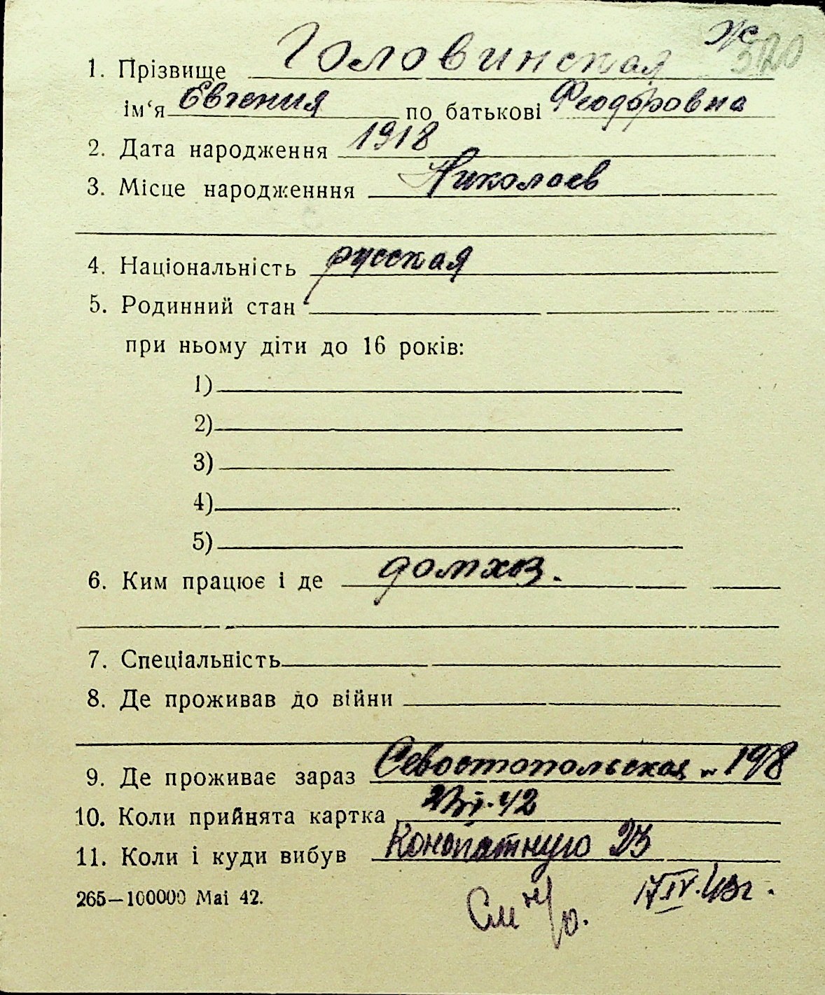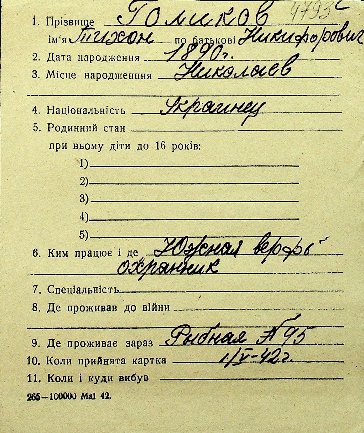 • • Перелік карток до фонду № Н-1016