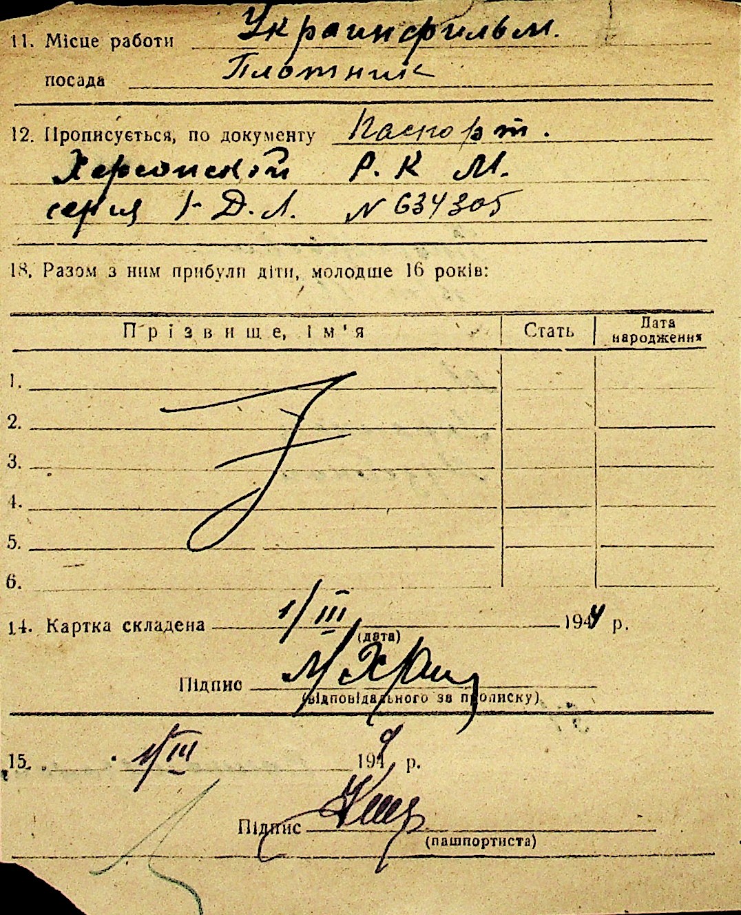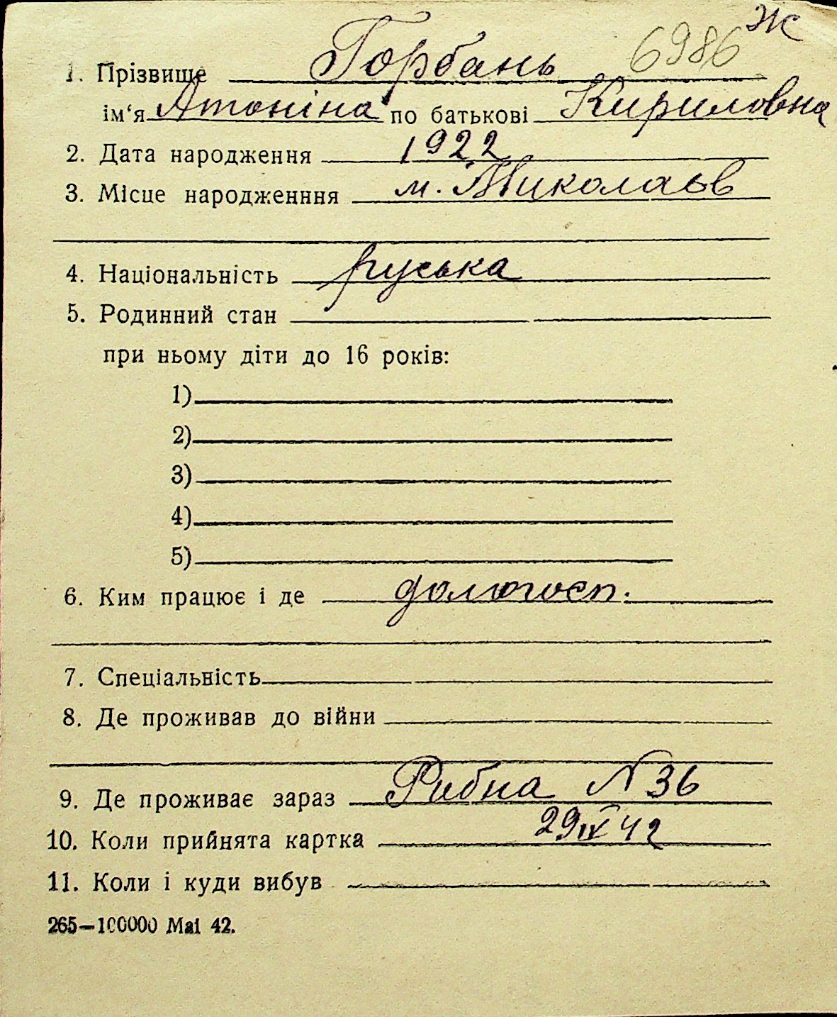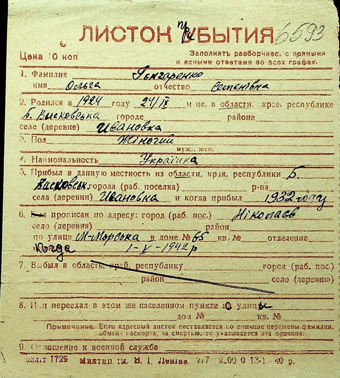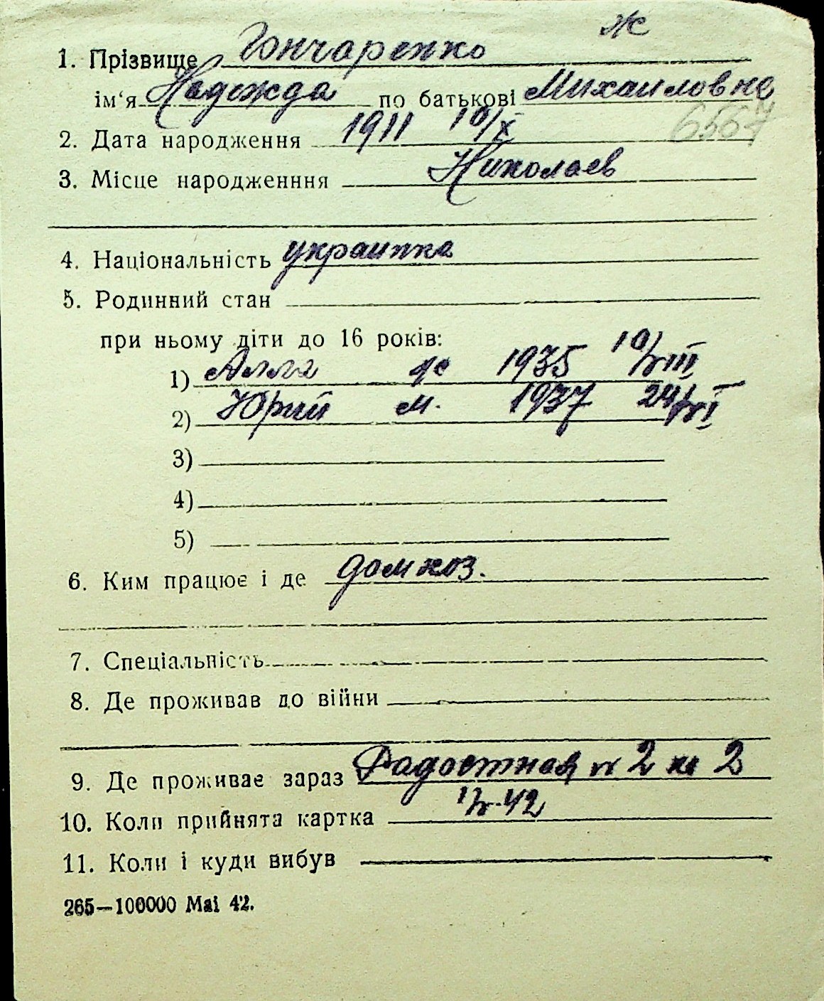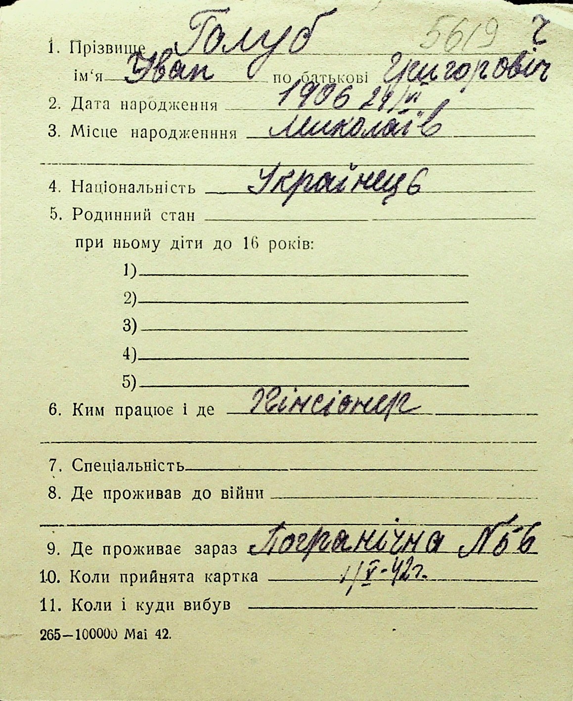 • • Перелік карток до фонду № Н-1016