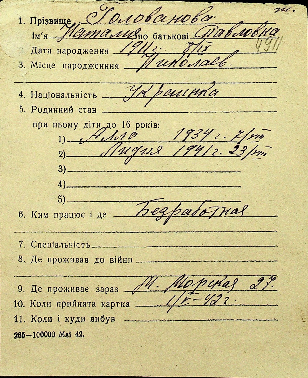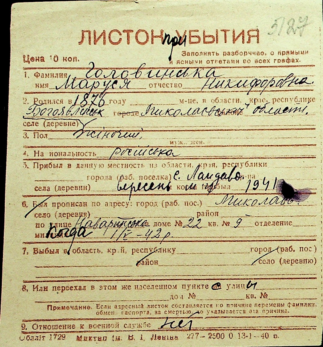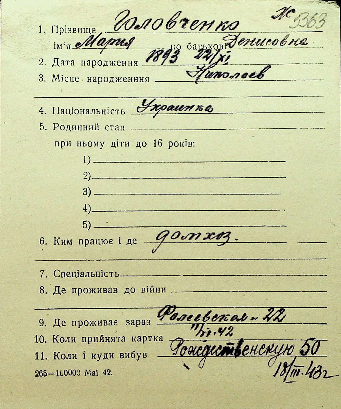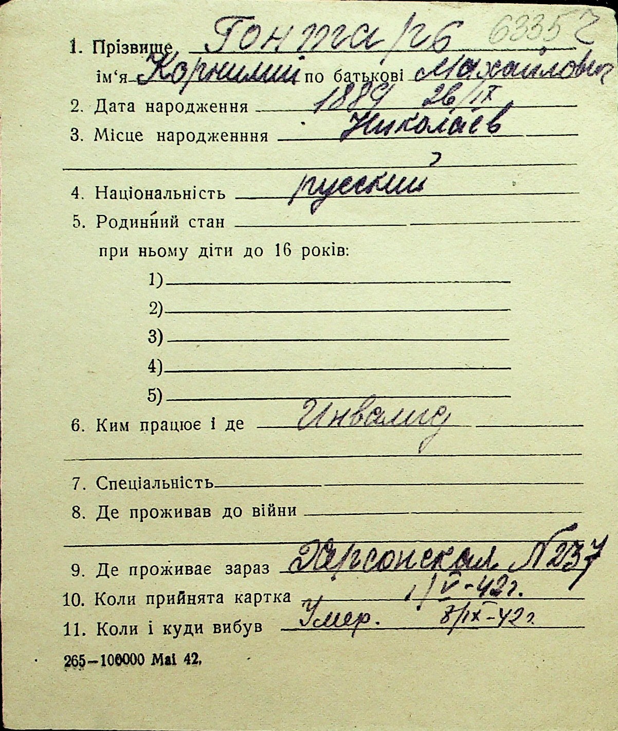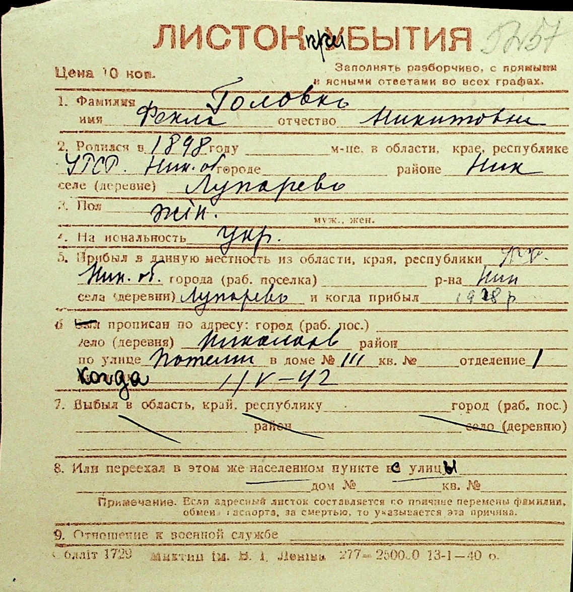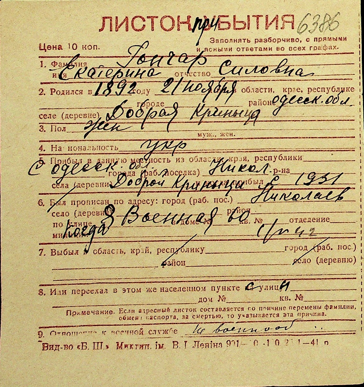 • • Перелік карток до фонду № Н-1016