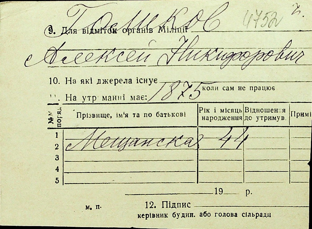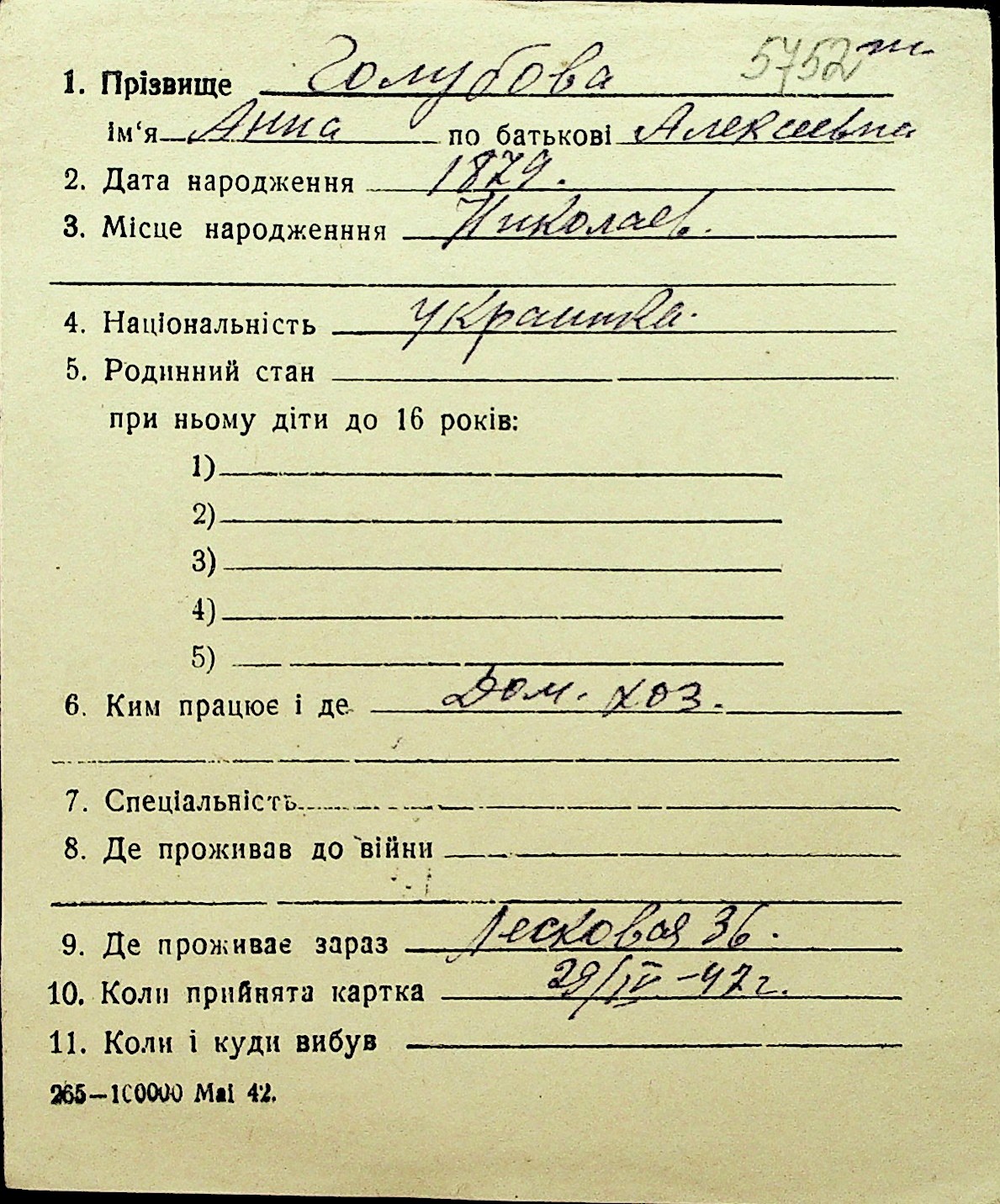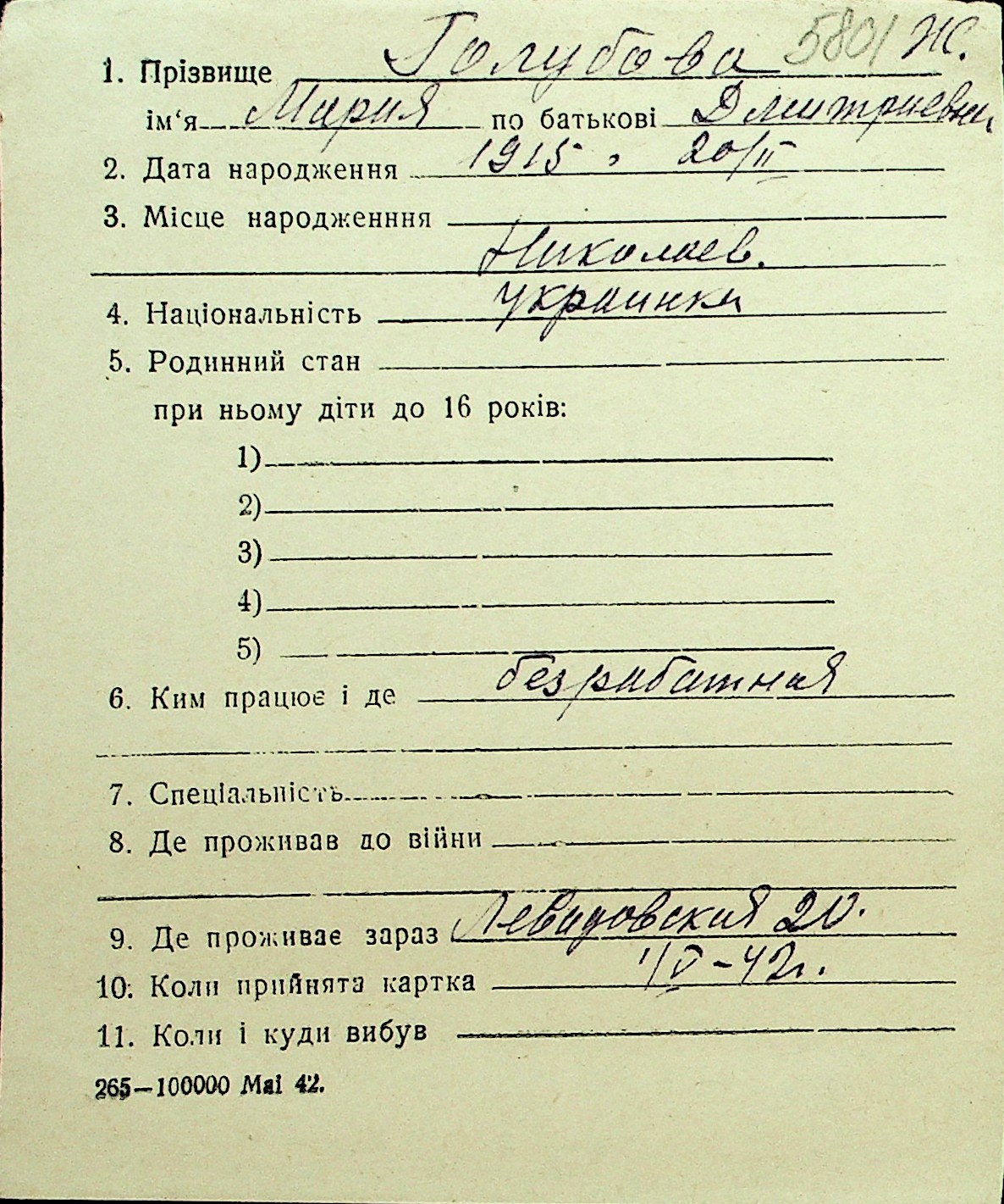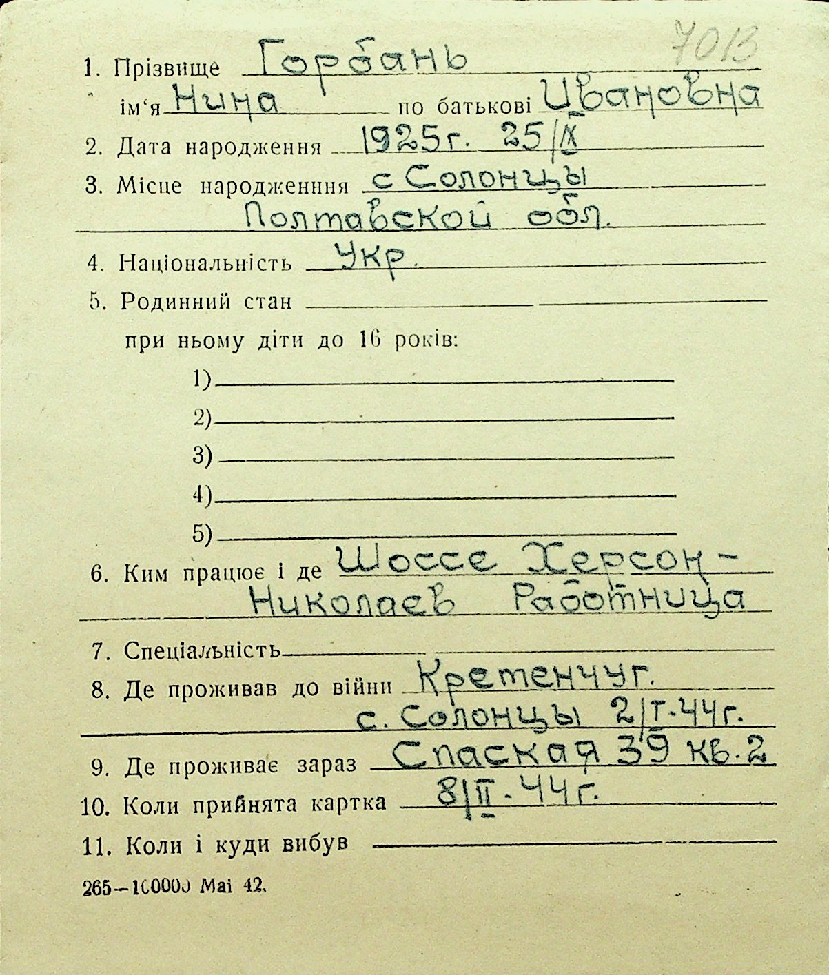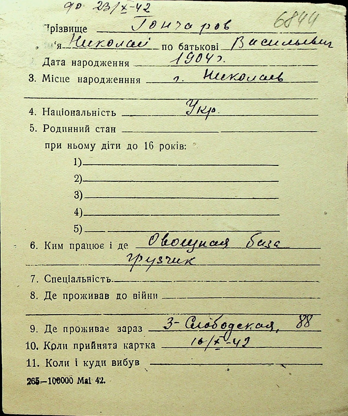 • • Перелік карток до фонду № Н-1016