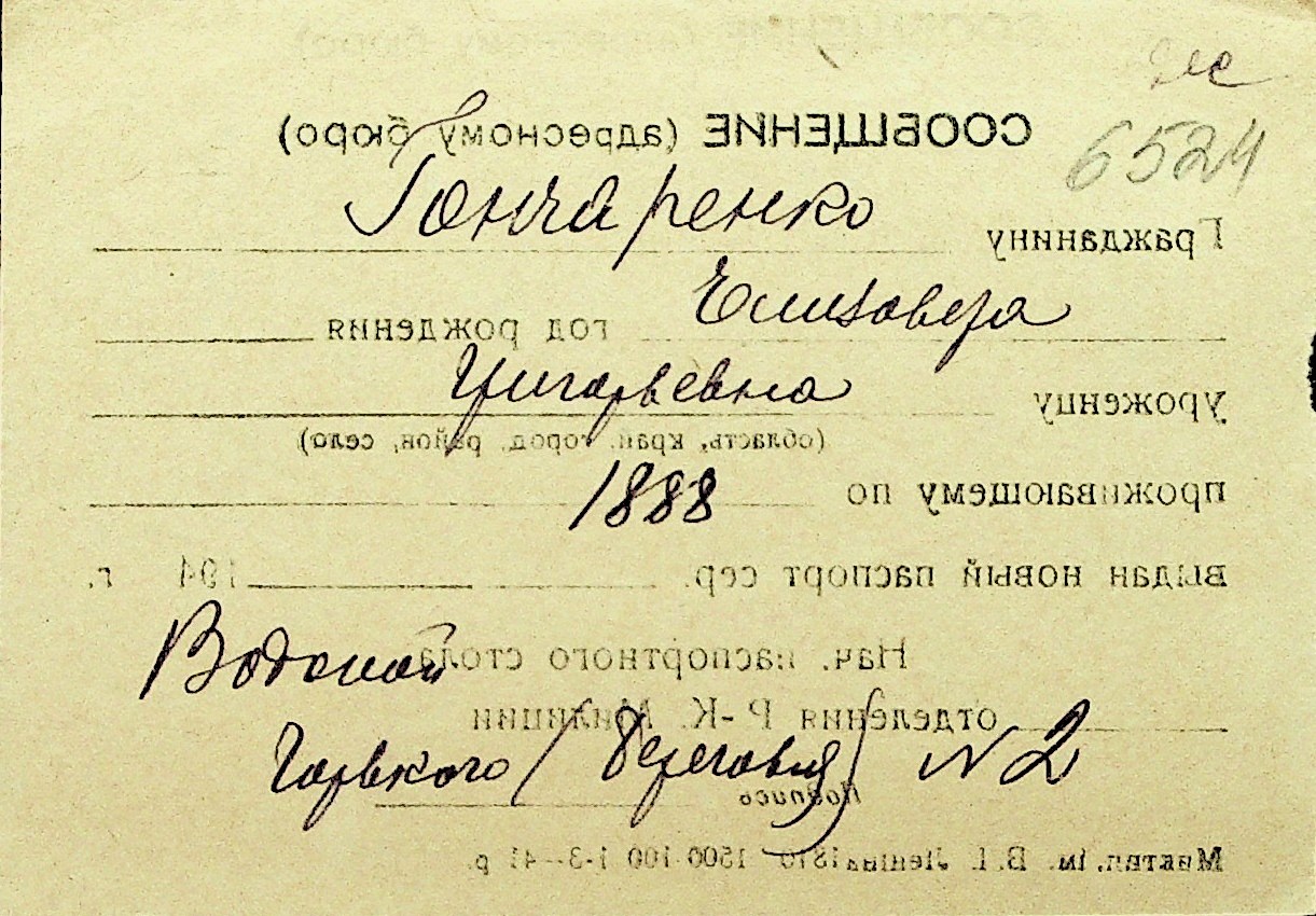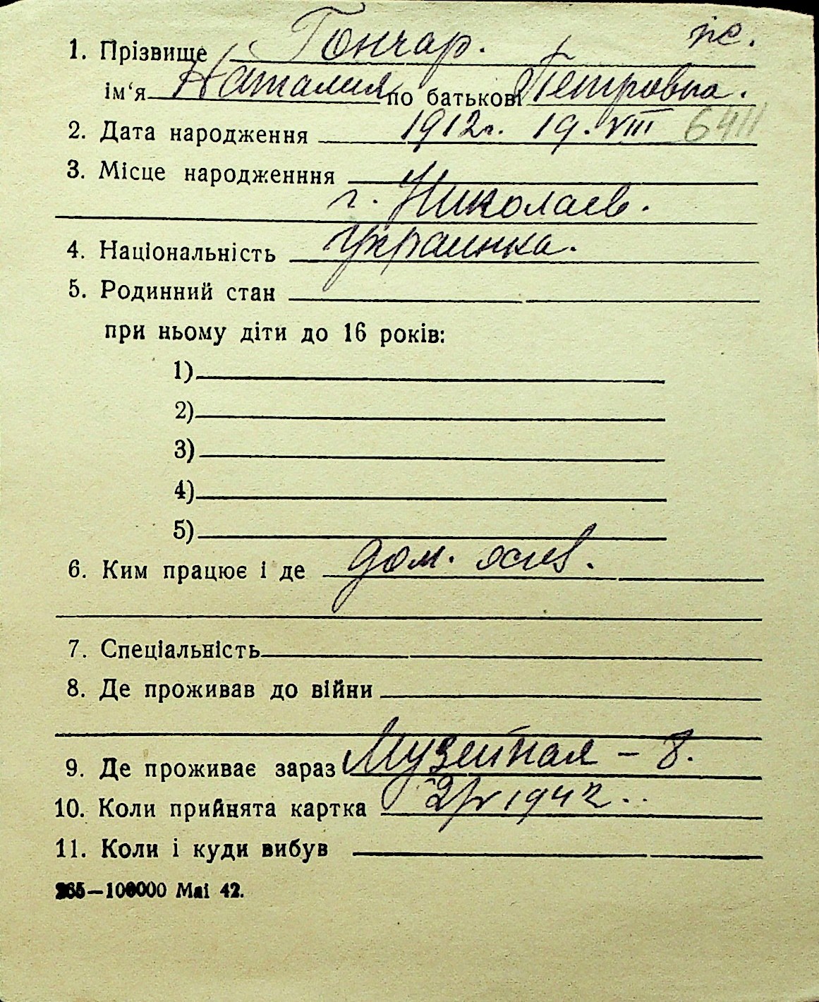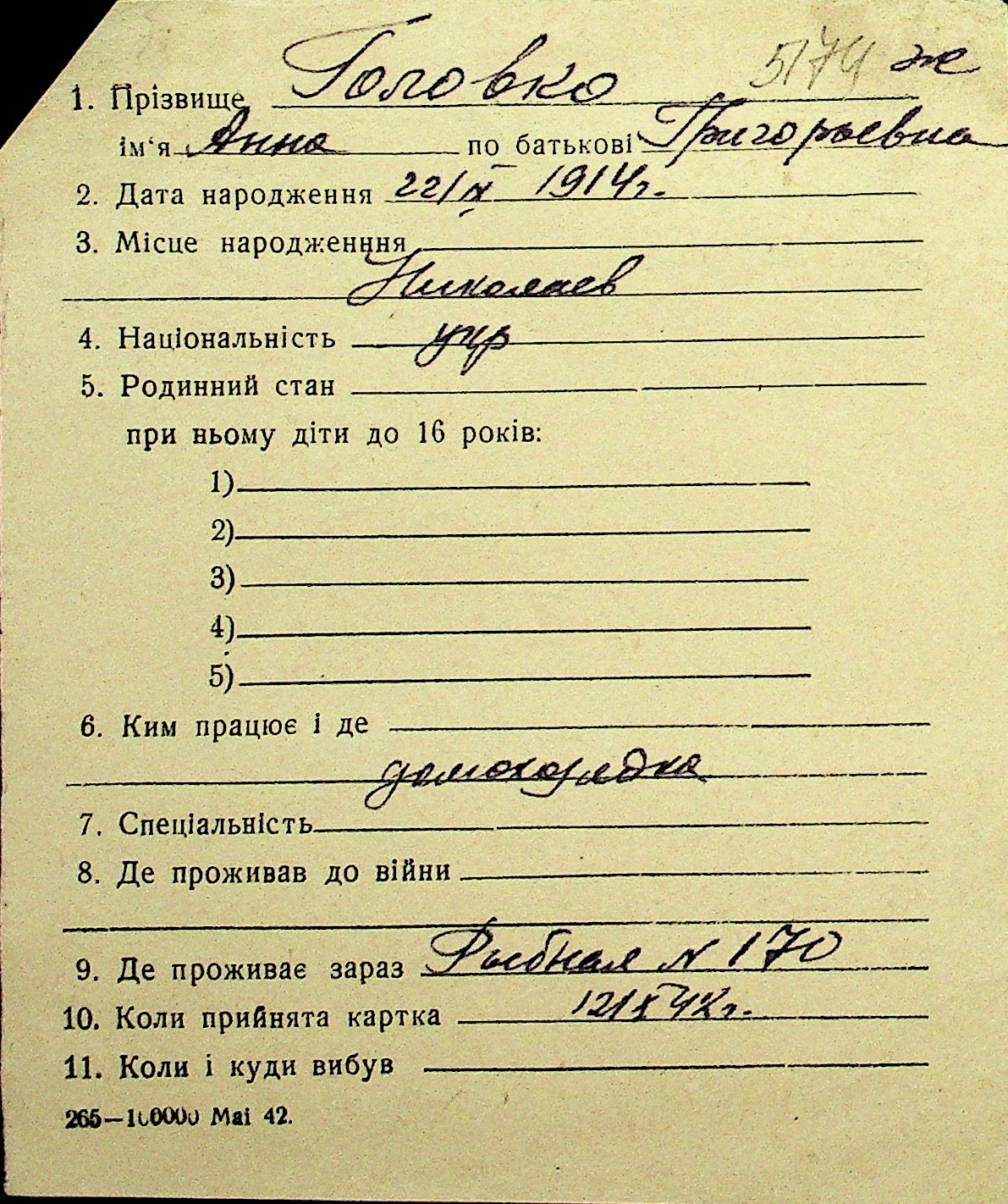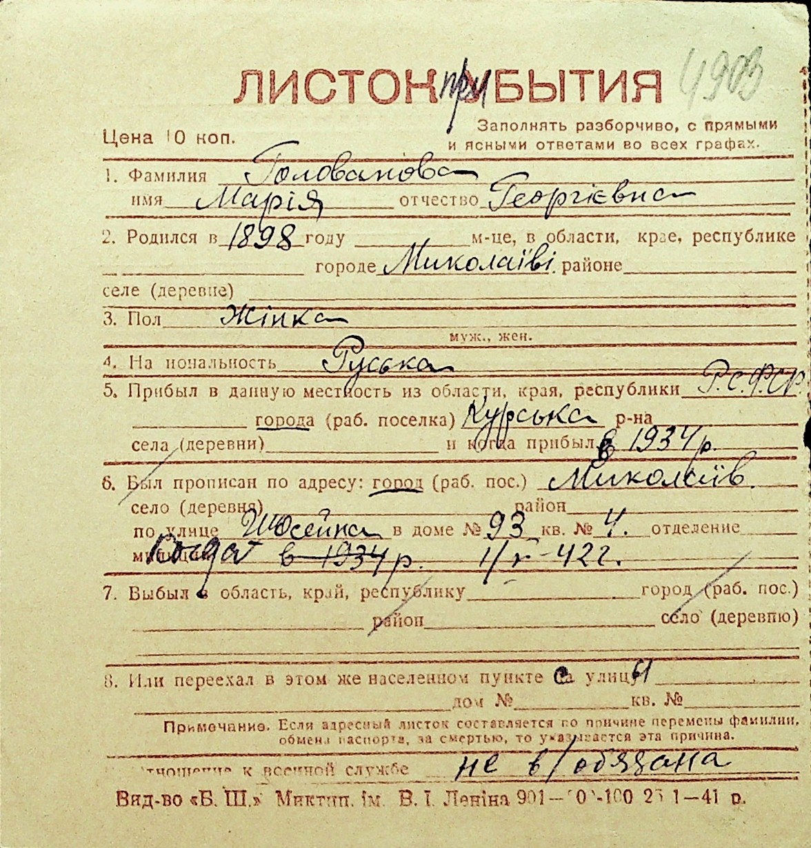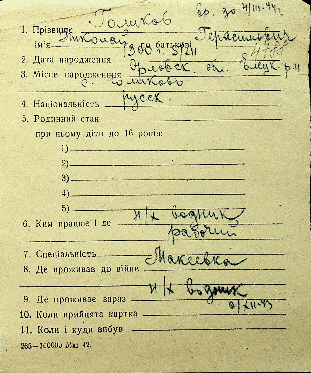 • • Перелік карток до фонду № Н-1016