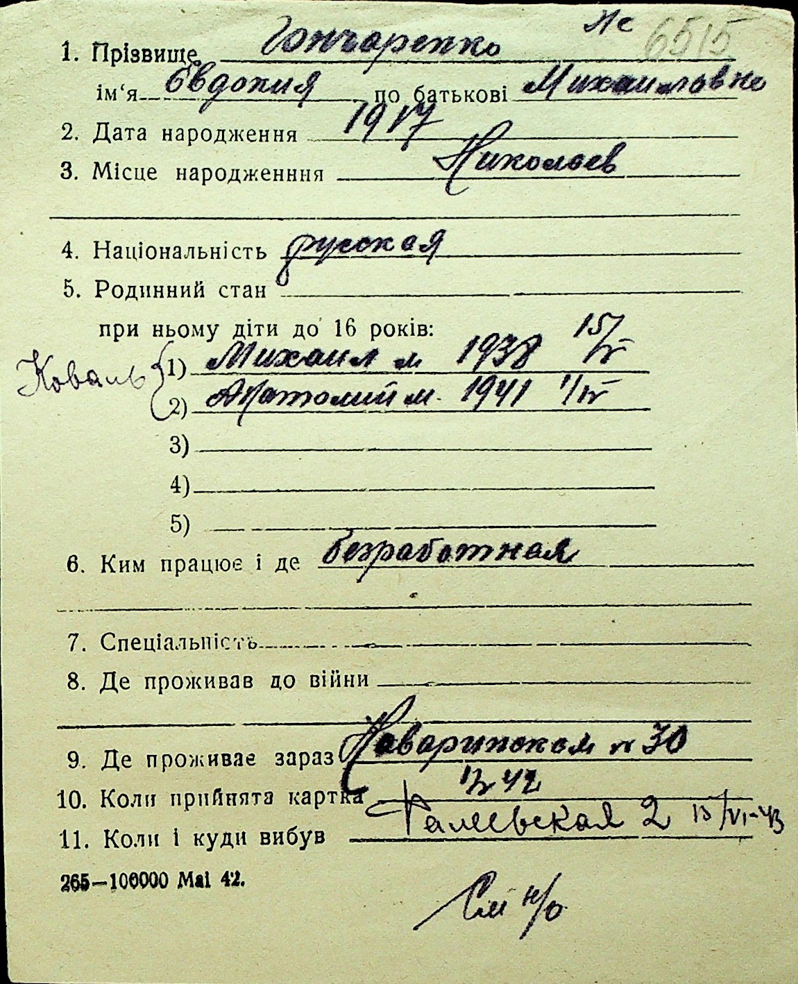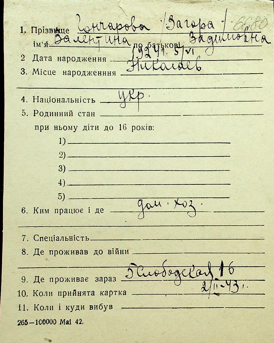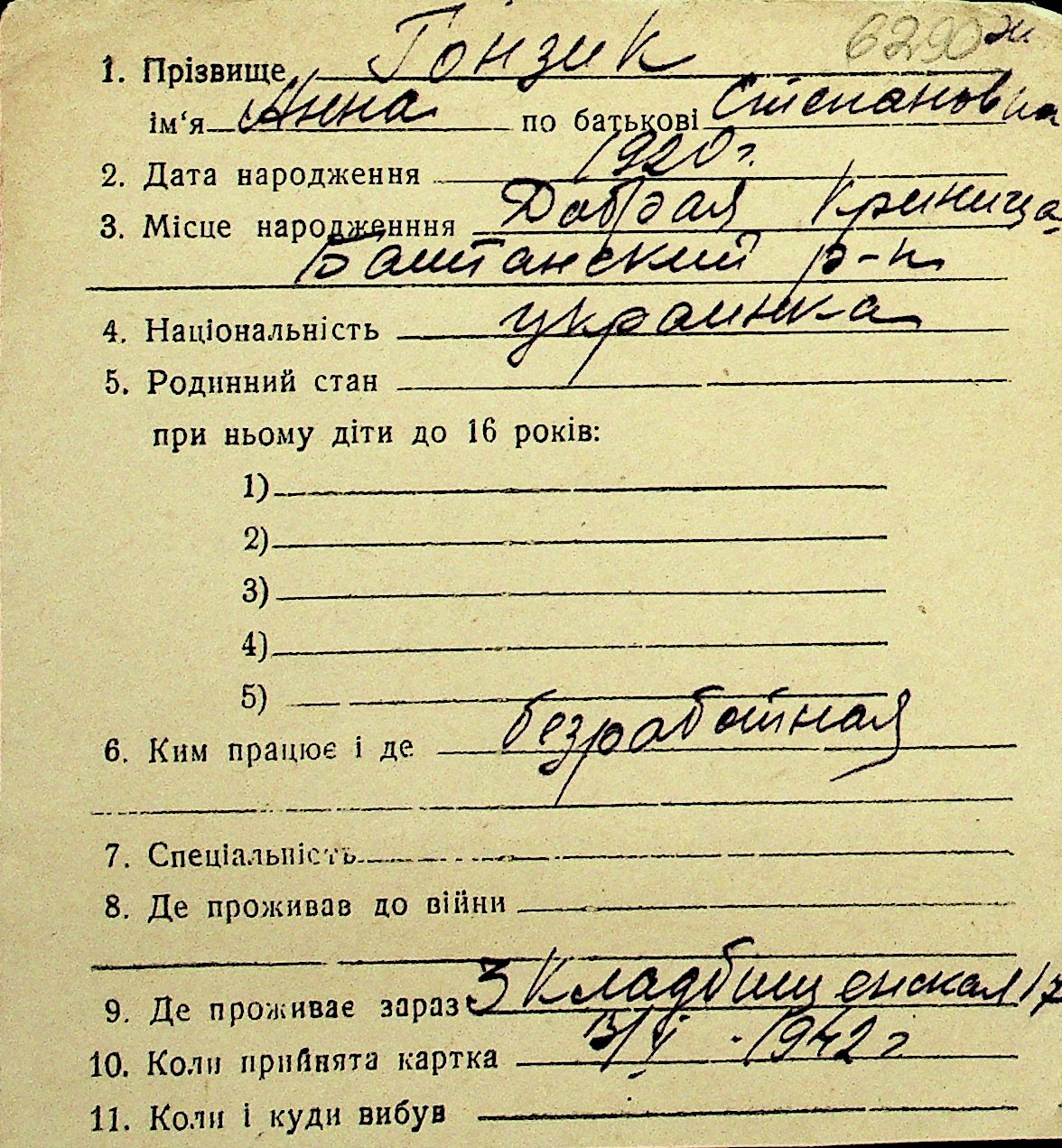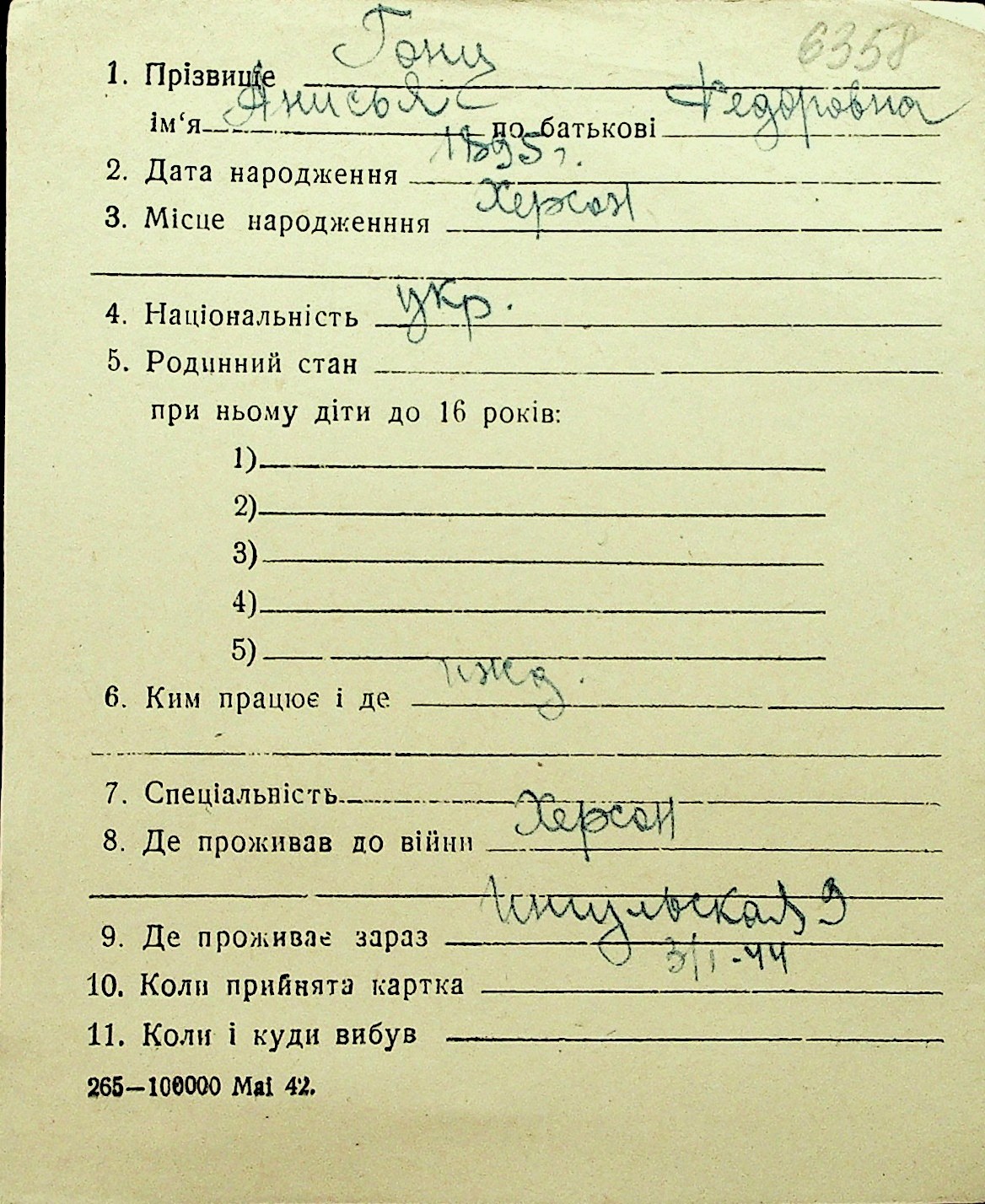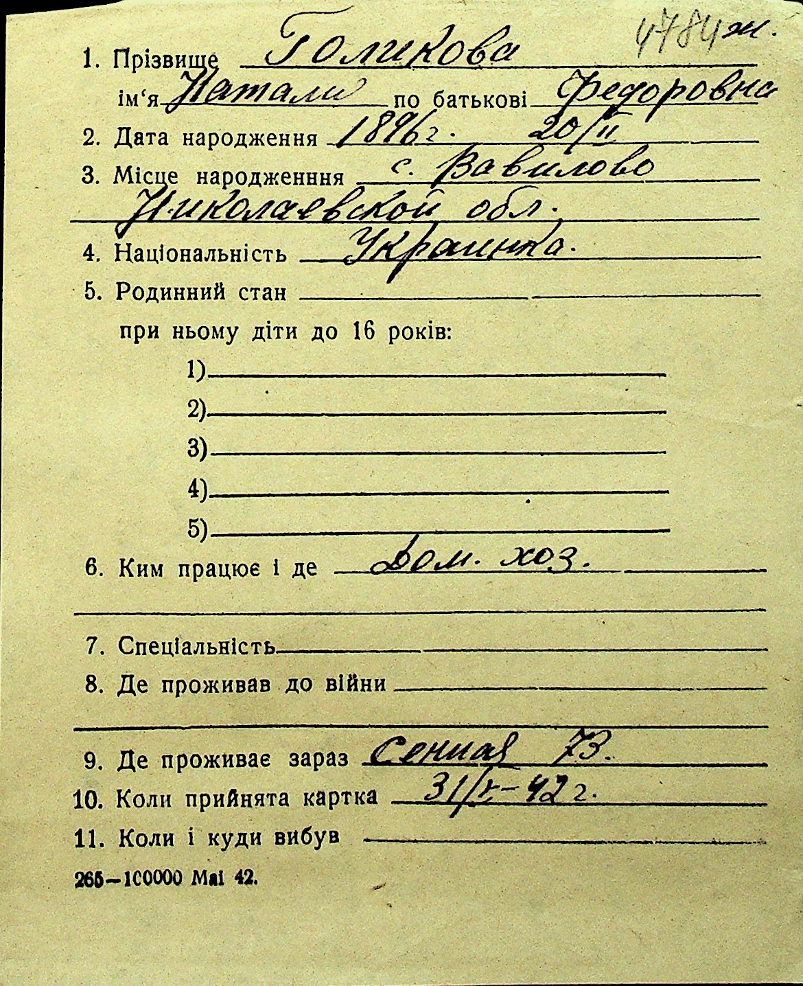 • • Перелік карток до фонду № Н-1016