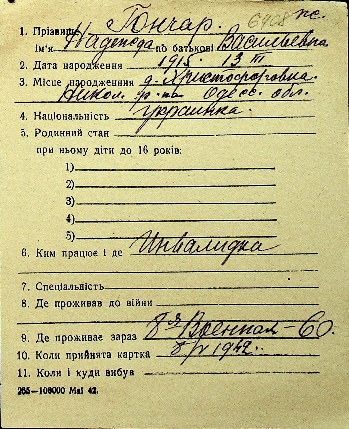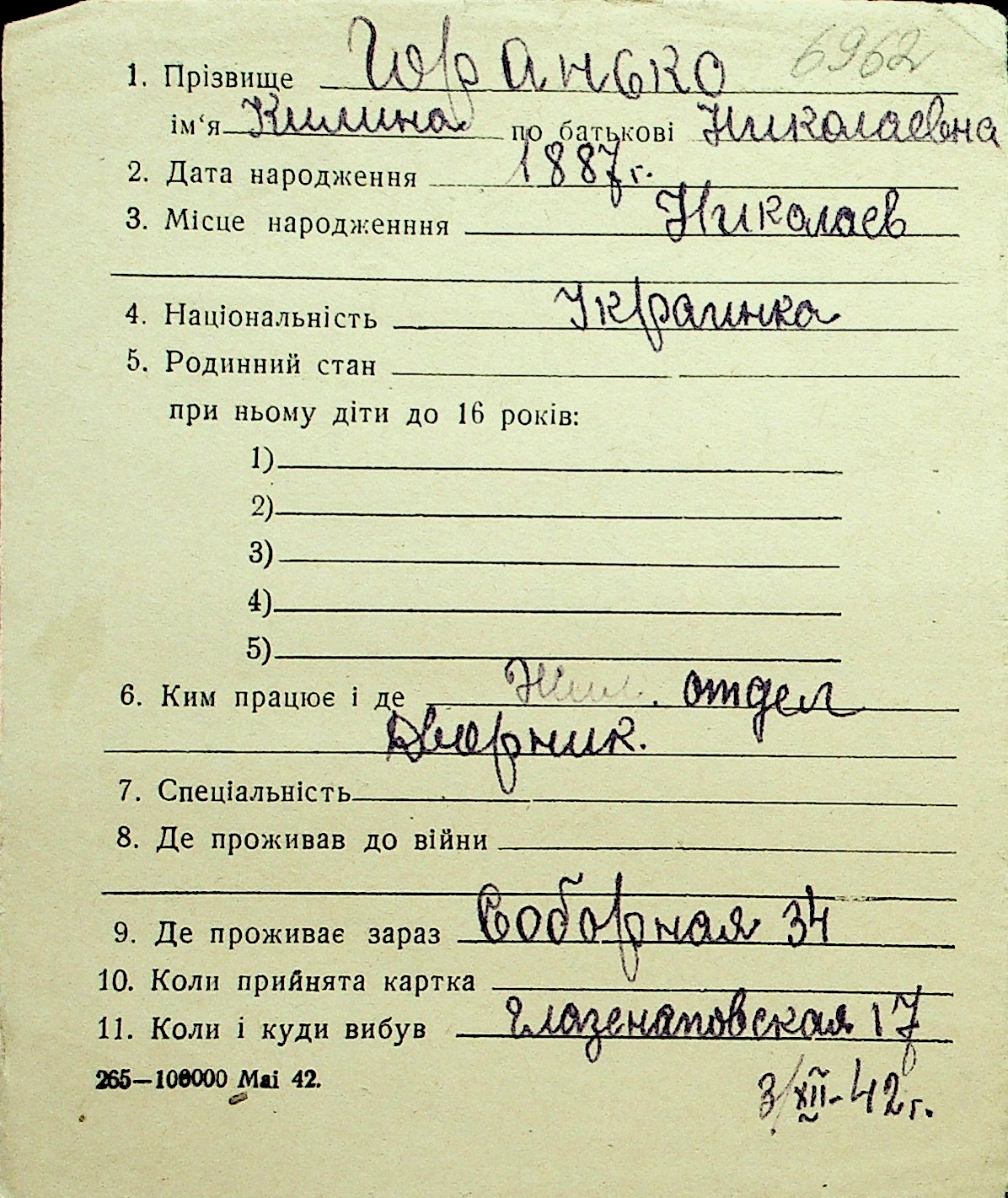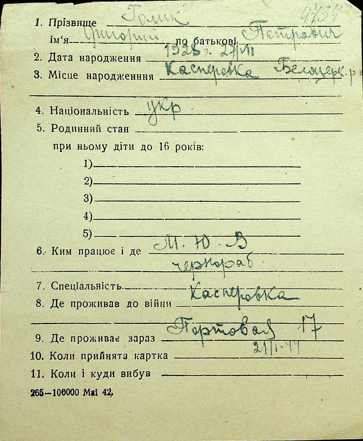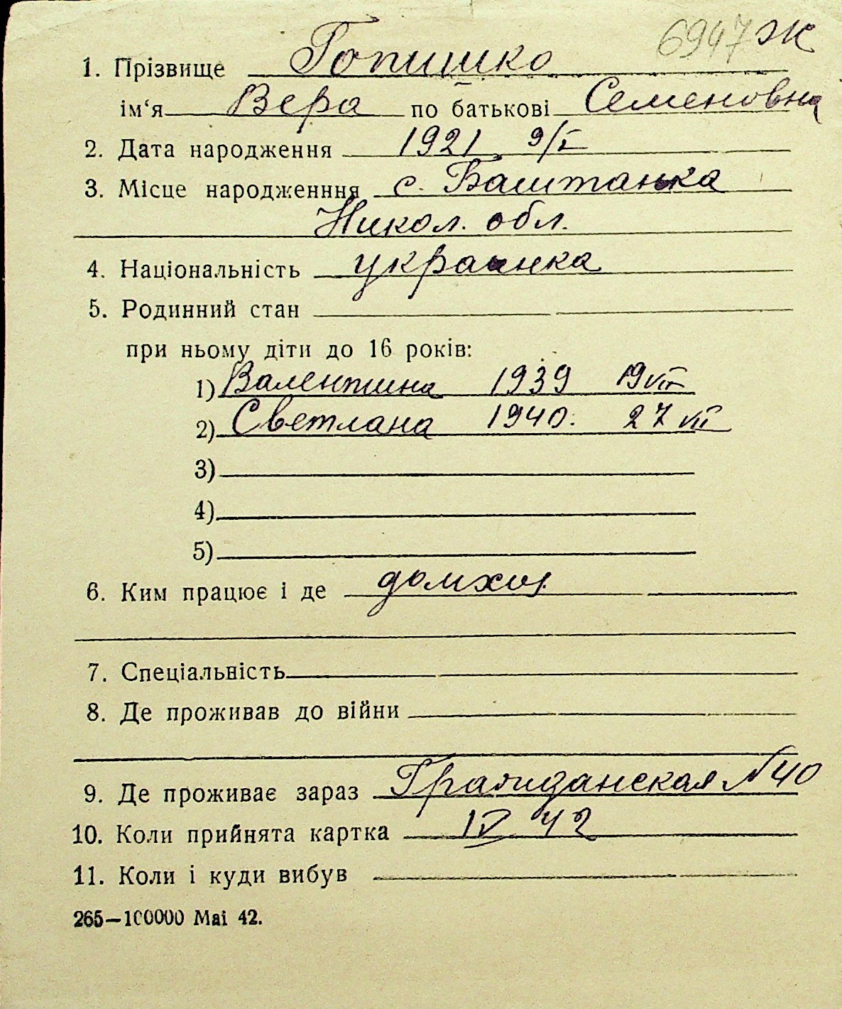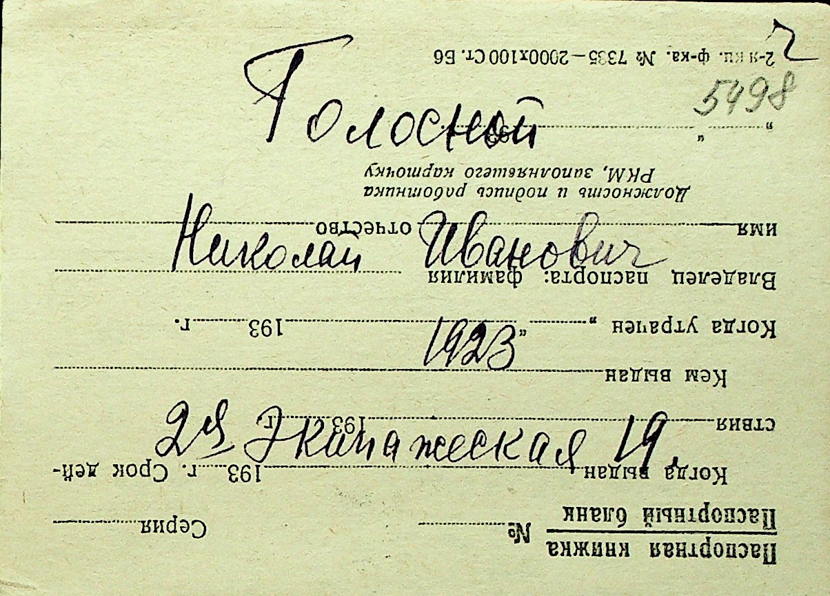 • • Перелік карток до фонду № Н-1016