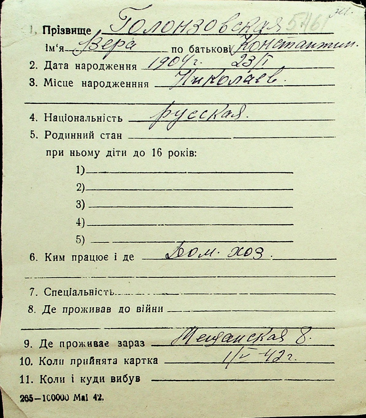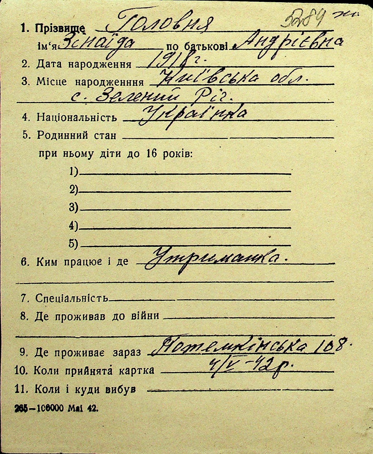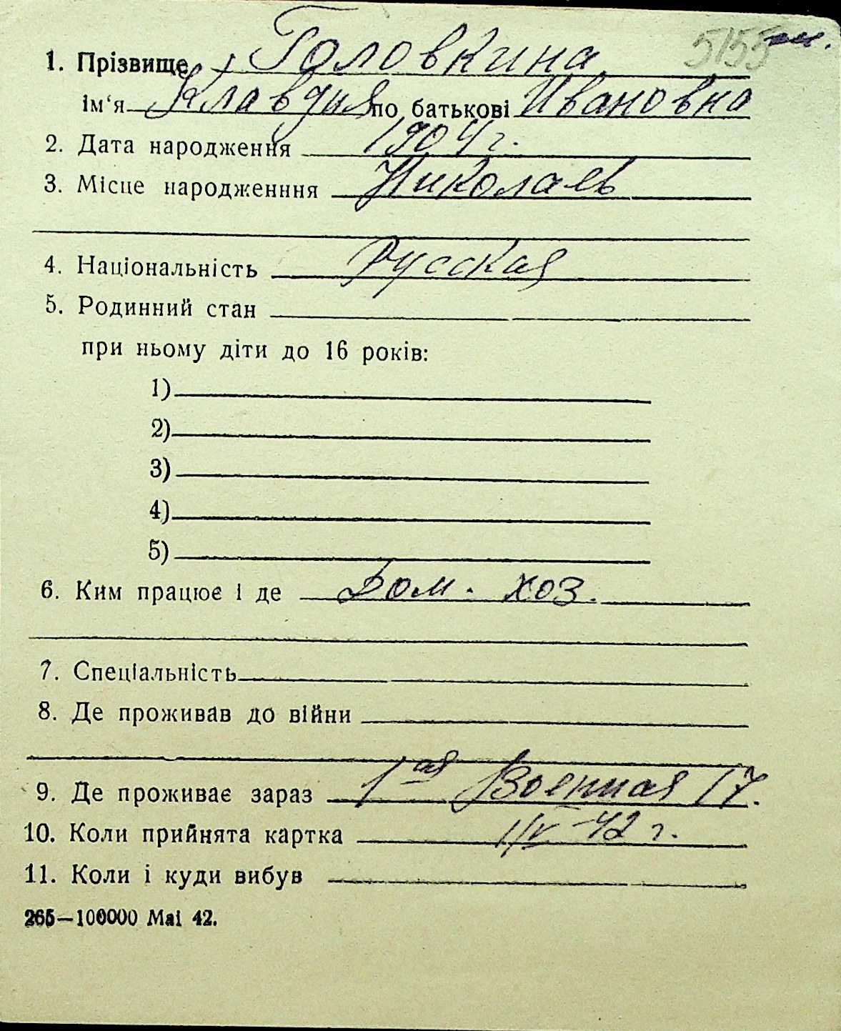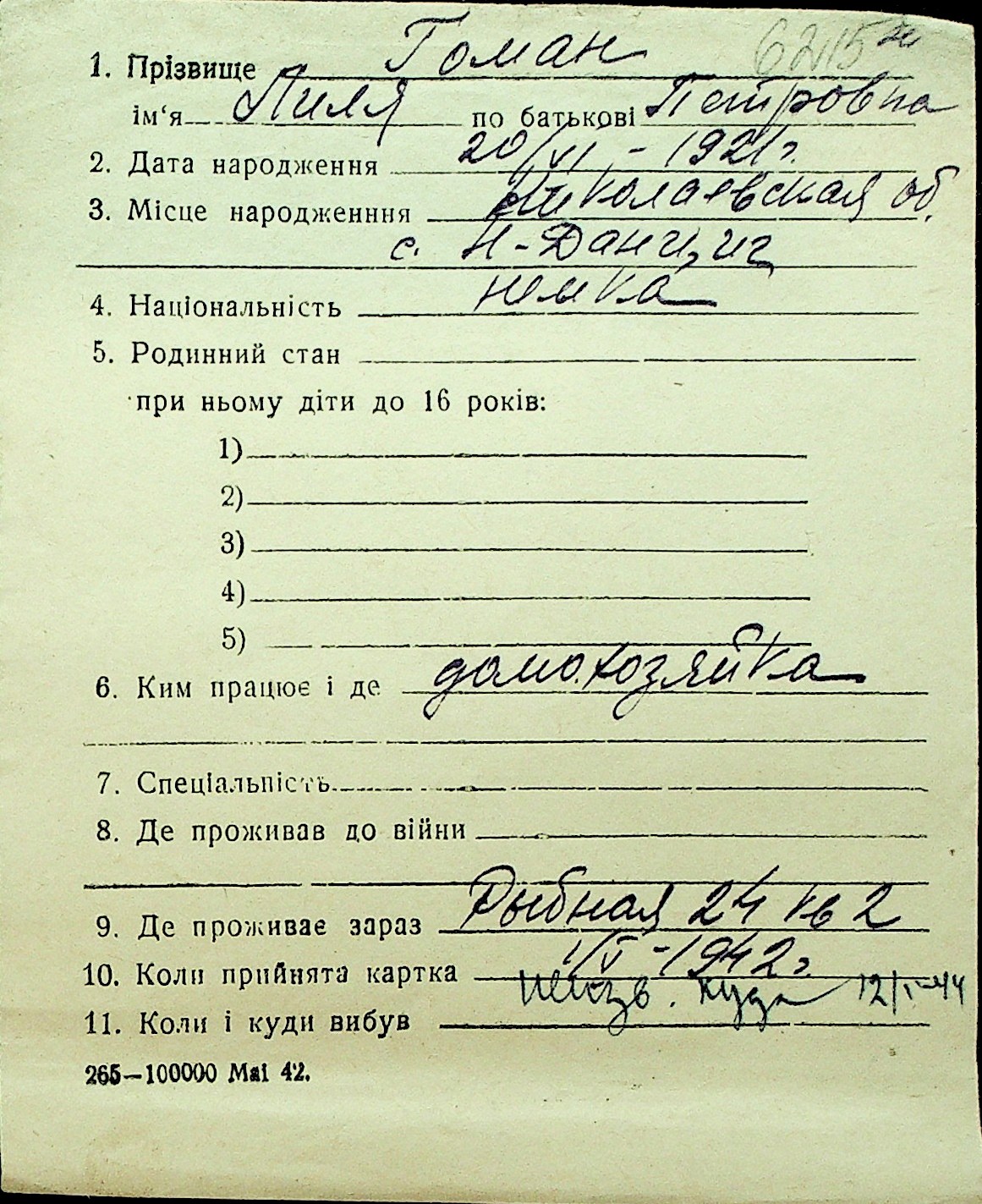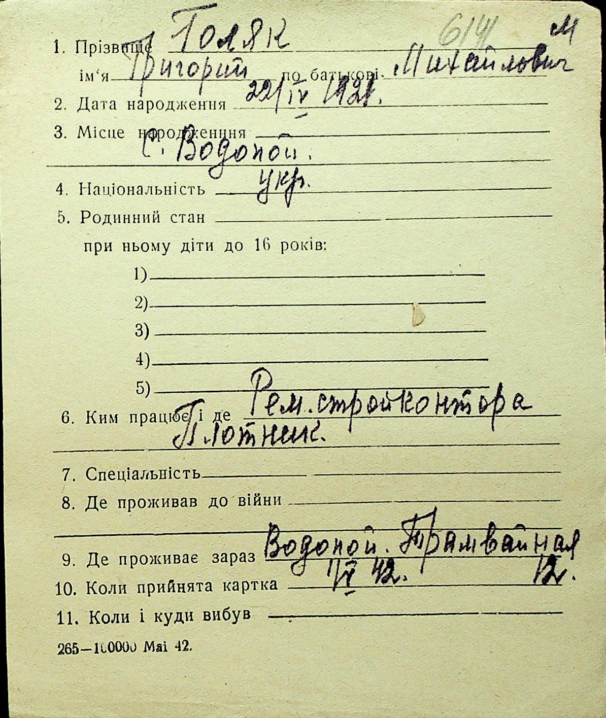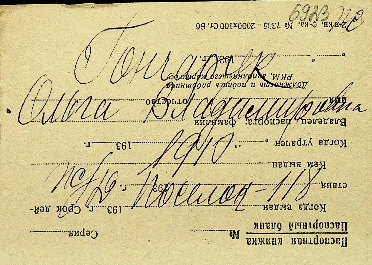• • Перелік карток до фонду № Н-1016