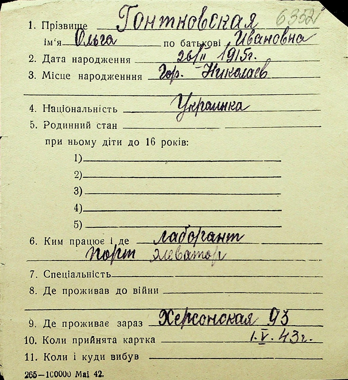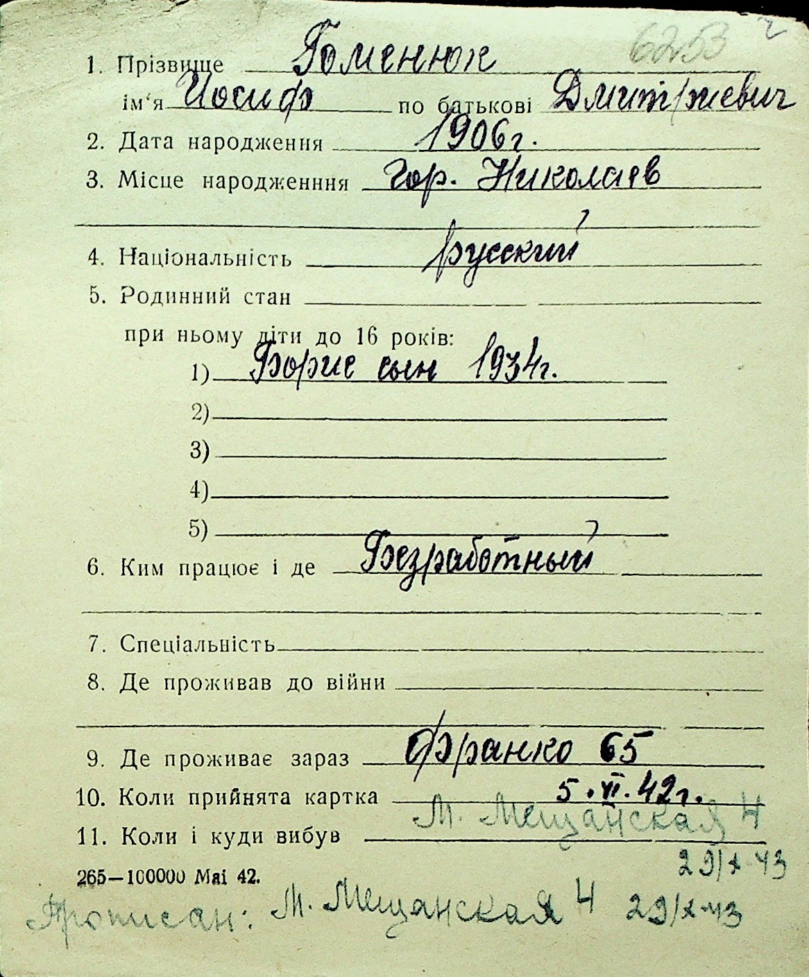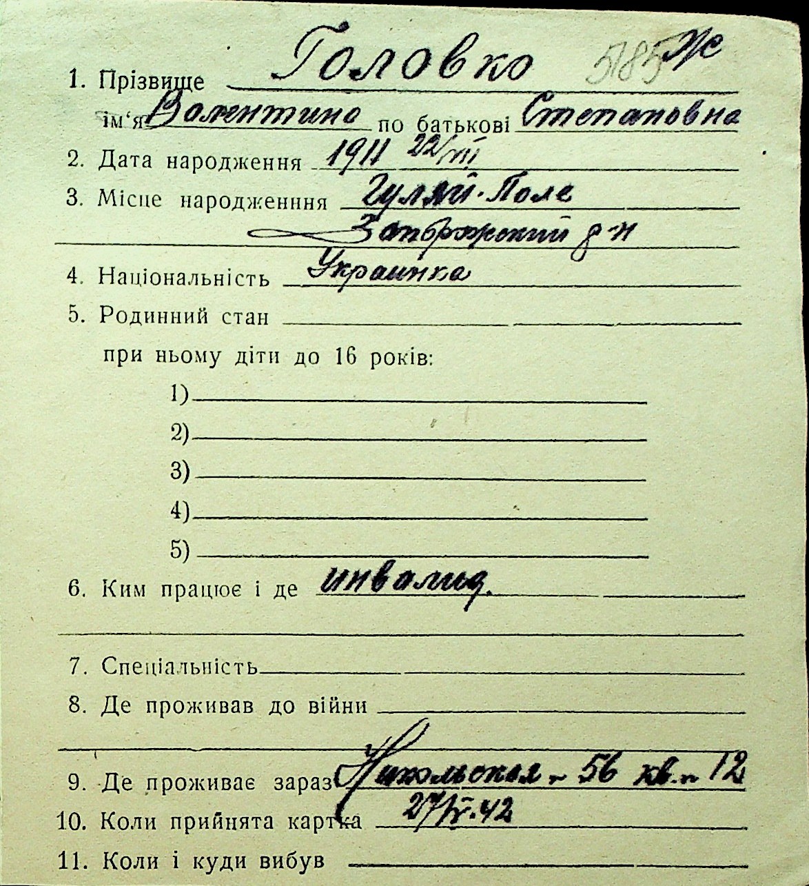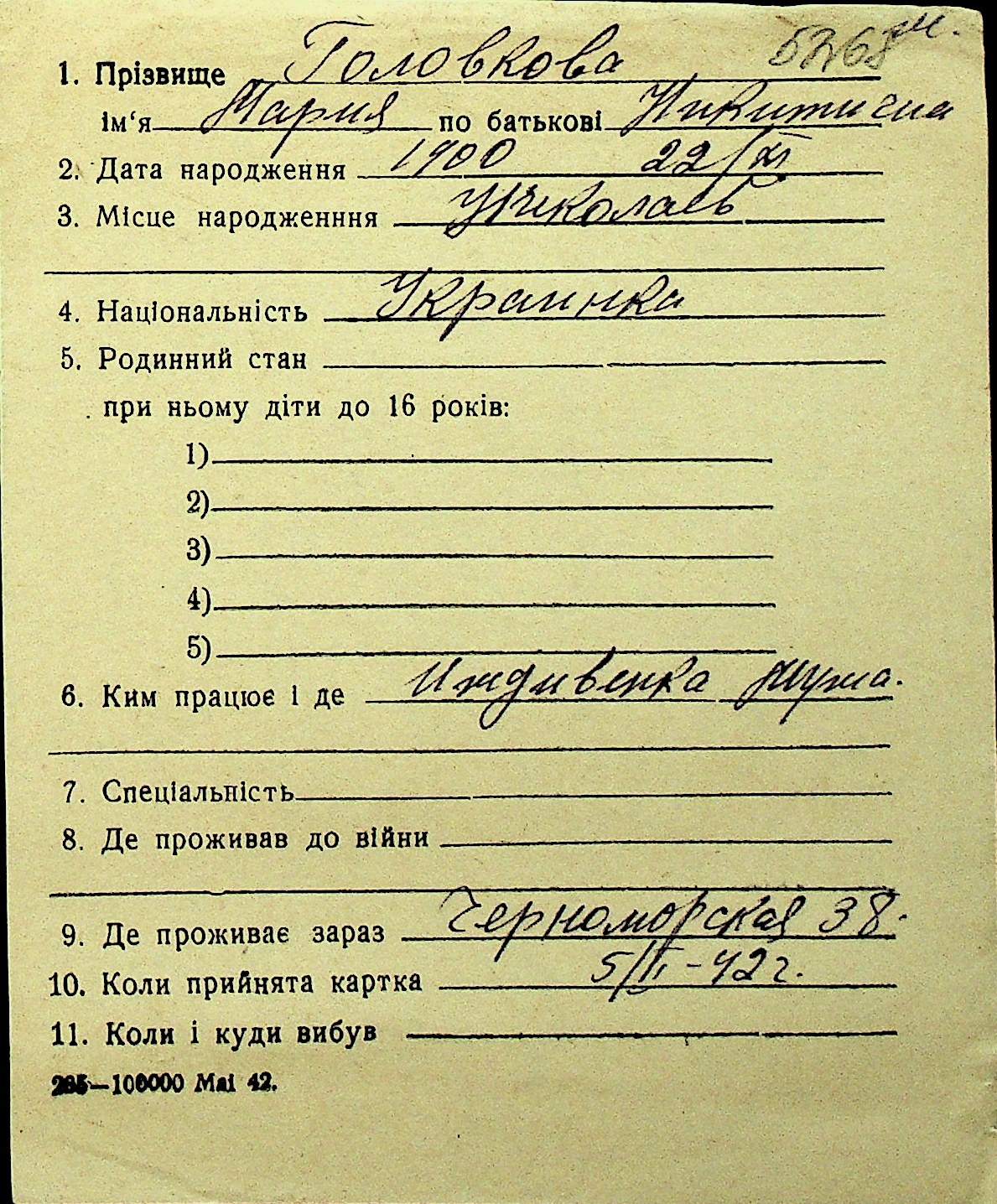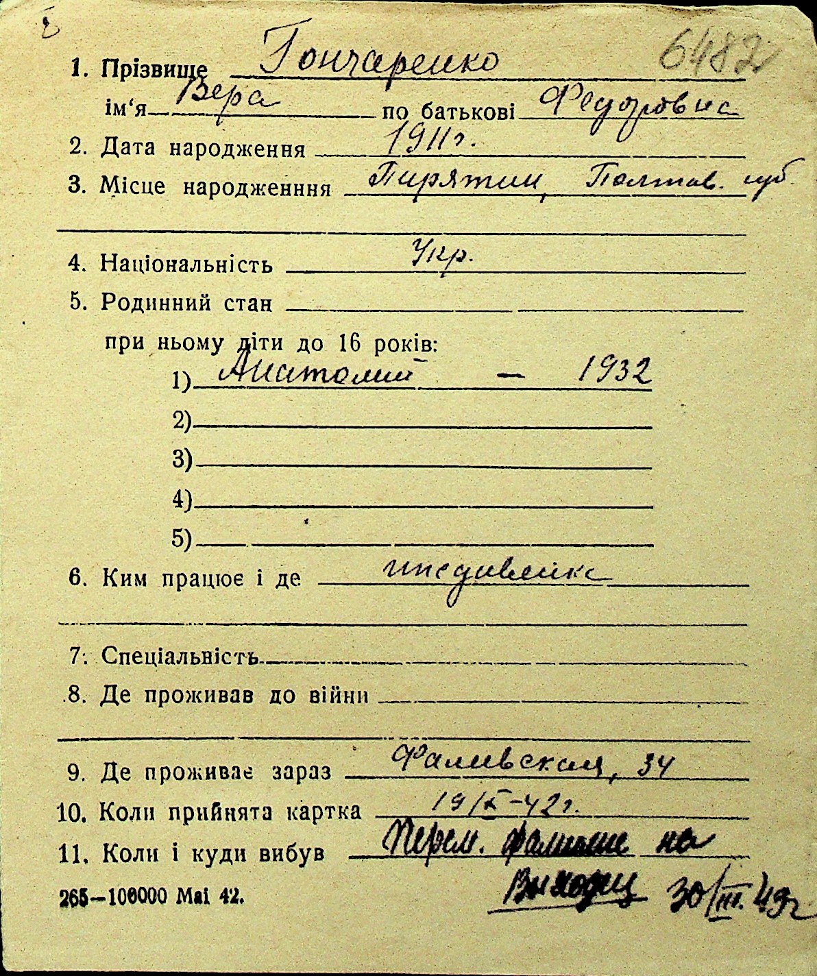 • • Перелік карток до фонду № Н-1016