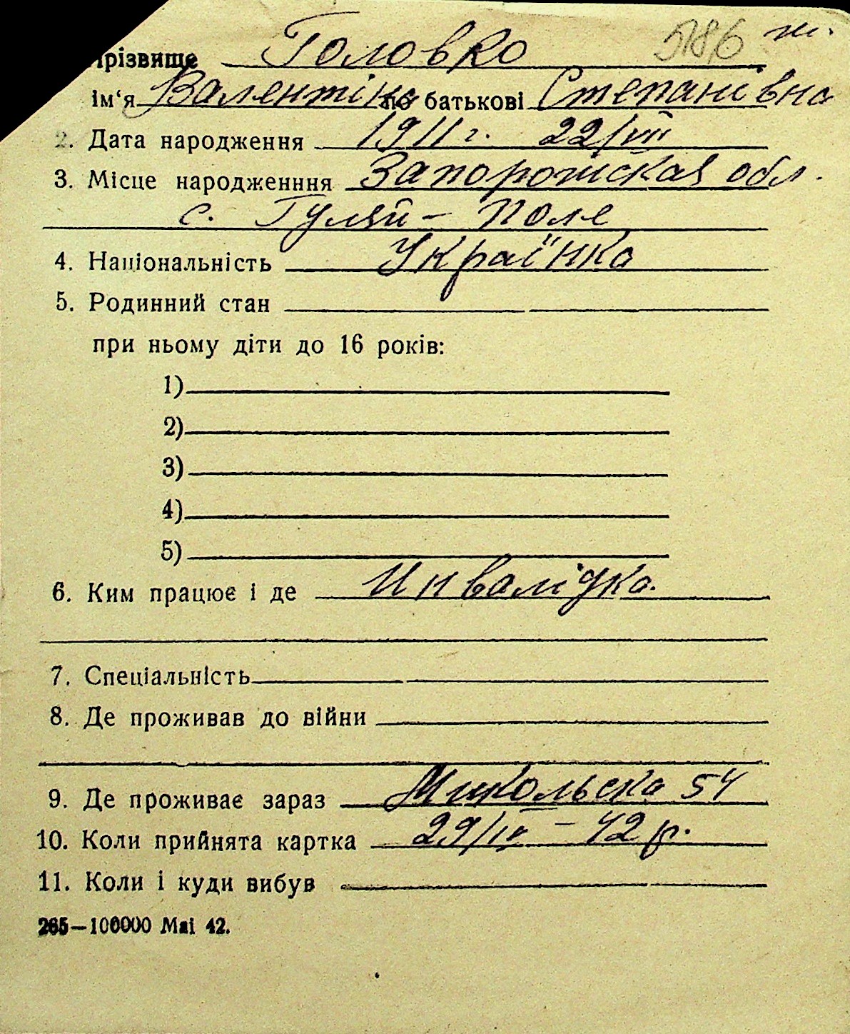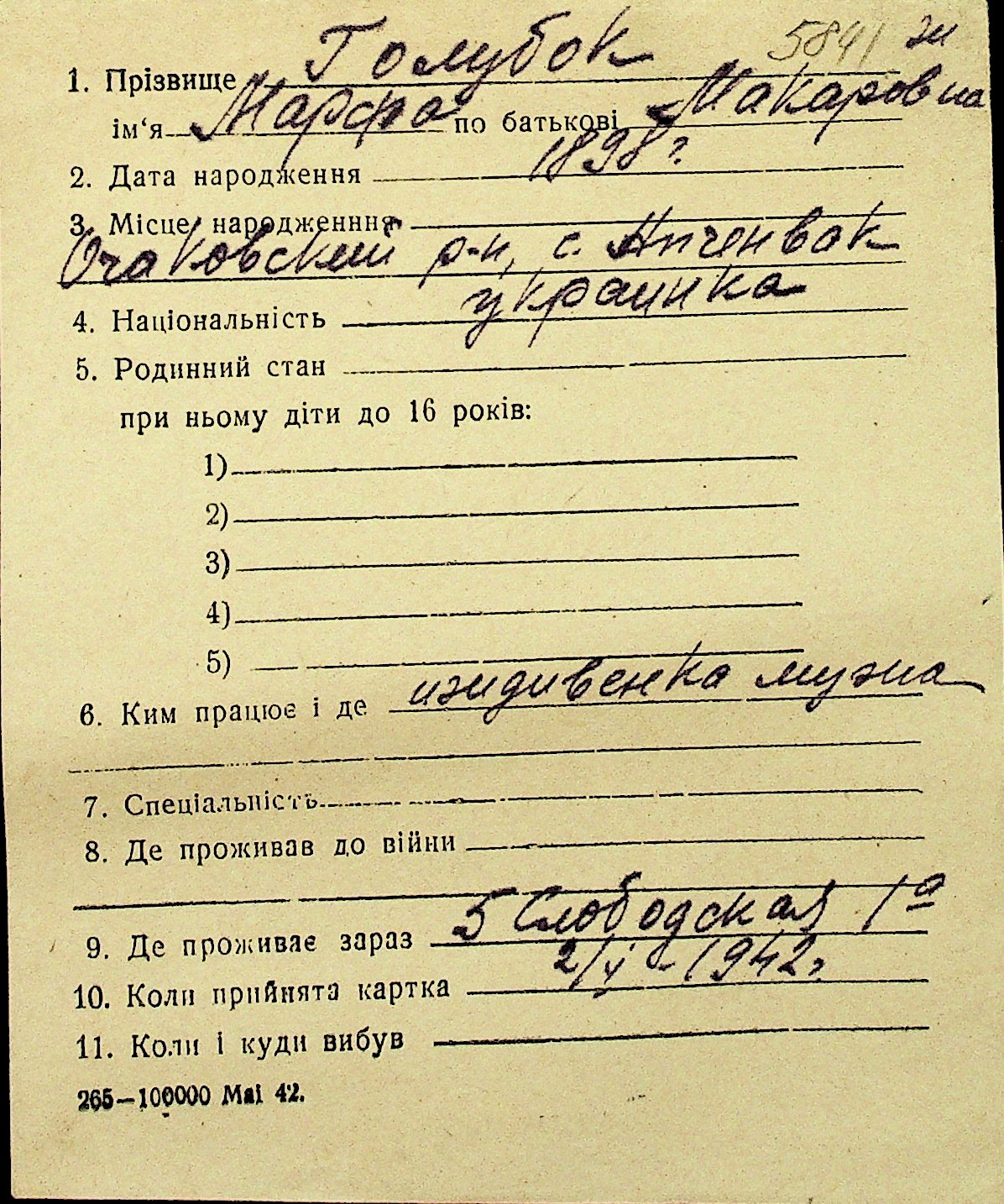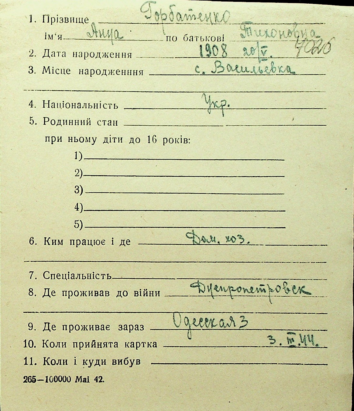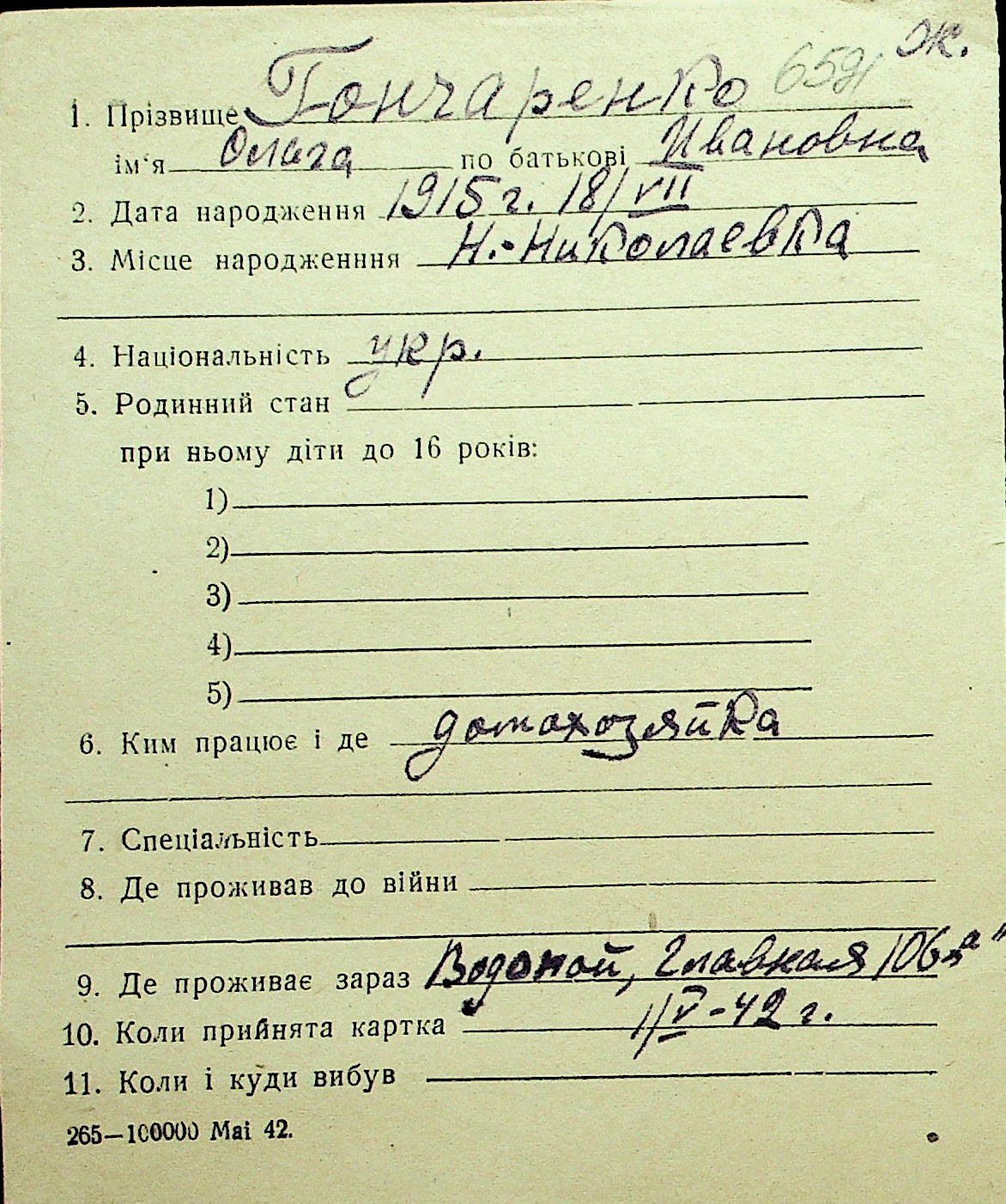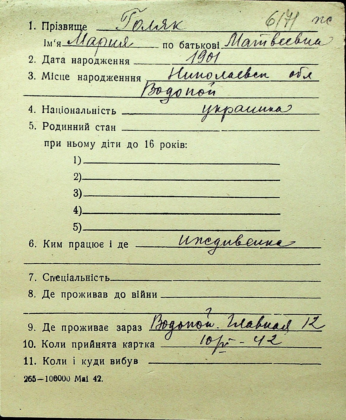 • • Перелік карток до фонду № Н-1016