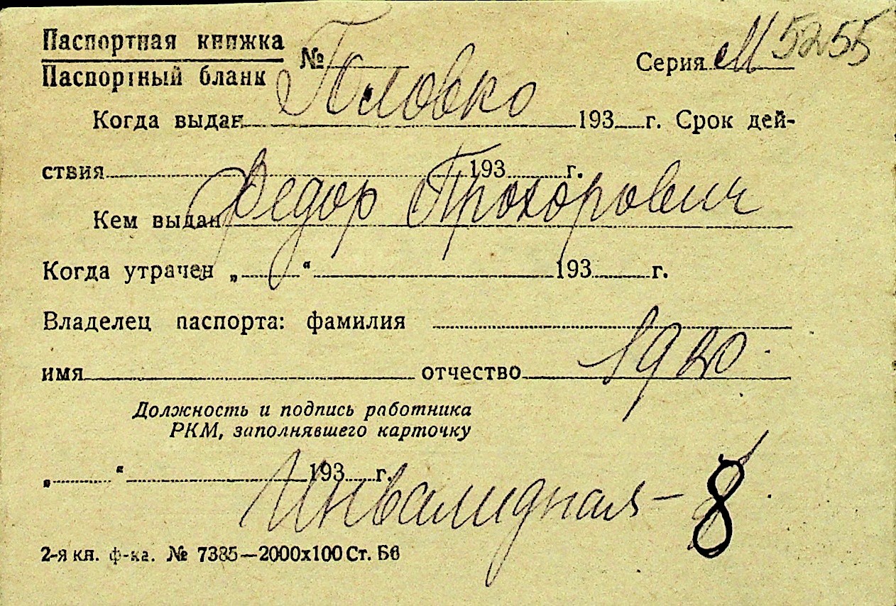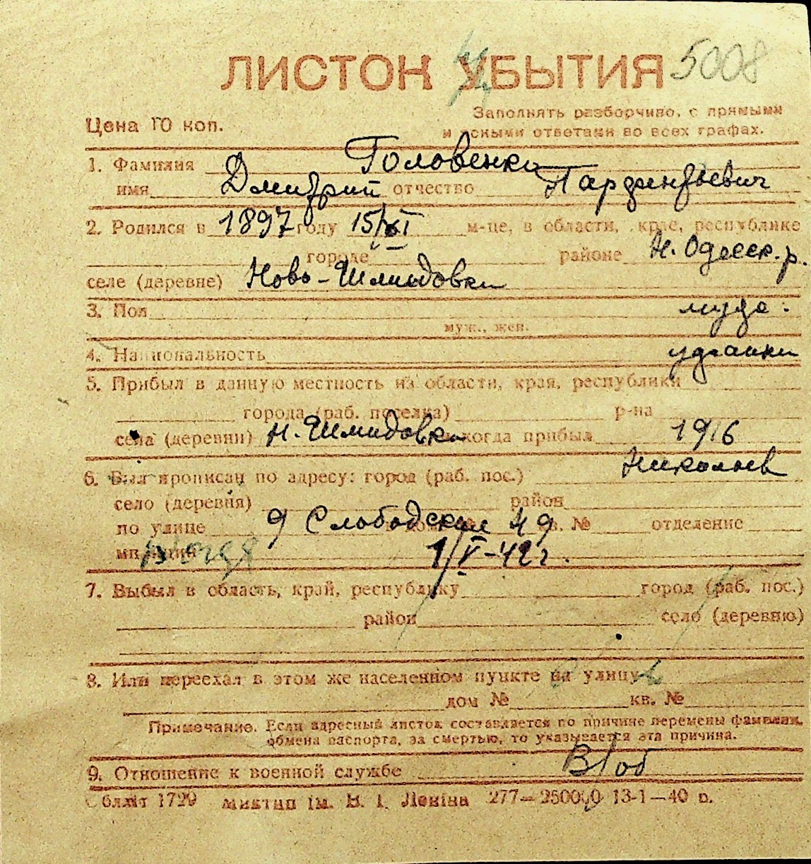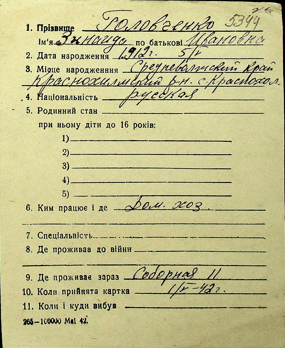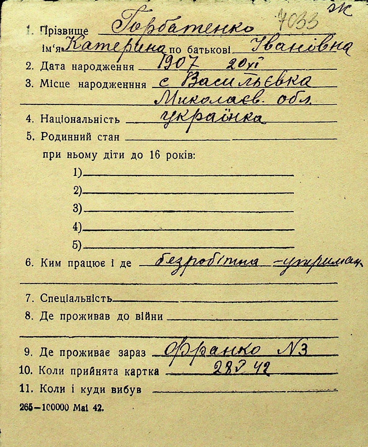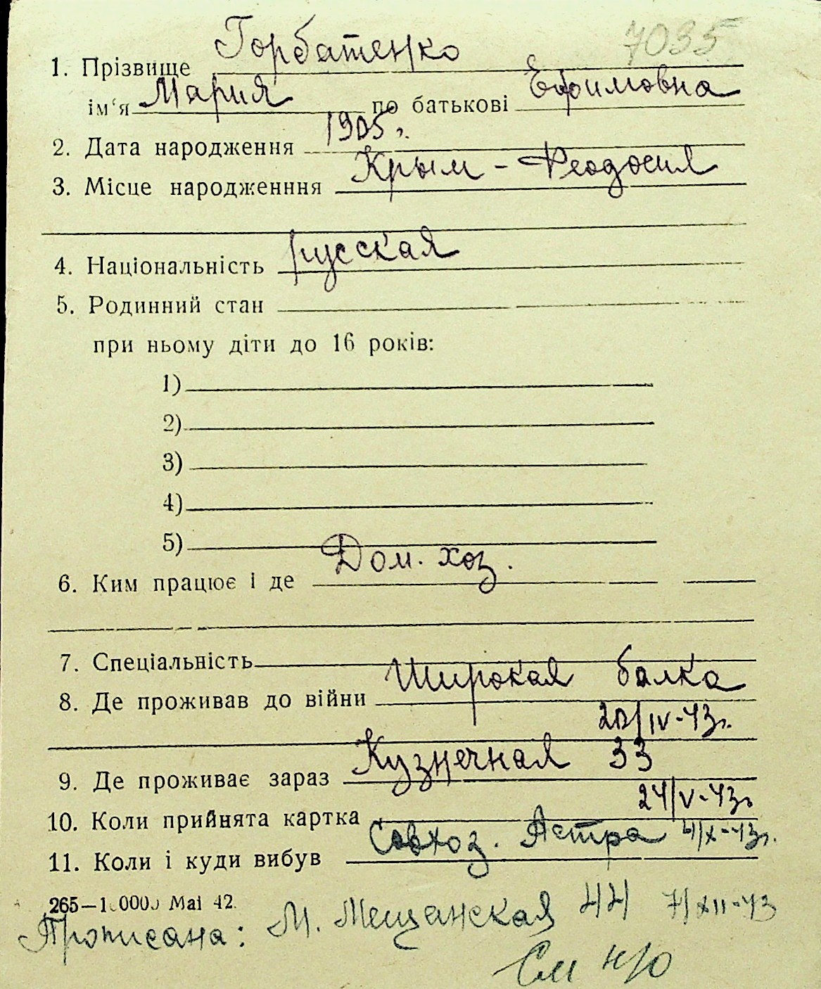 • • Перелік карток до фонду № Н-1016