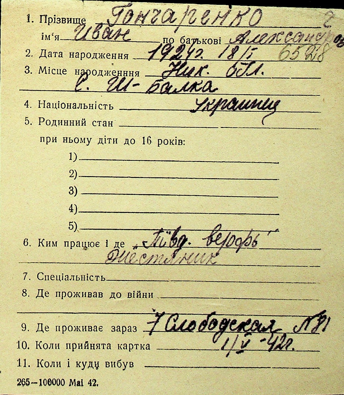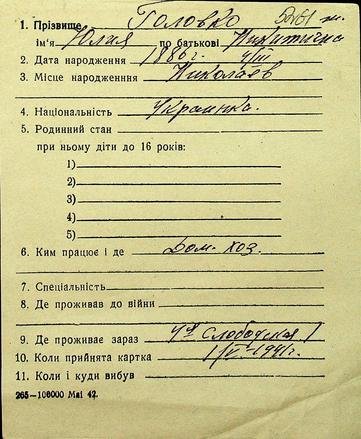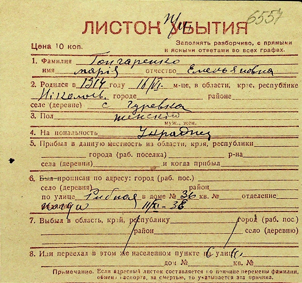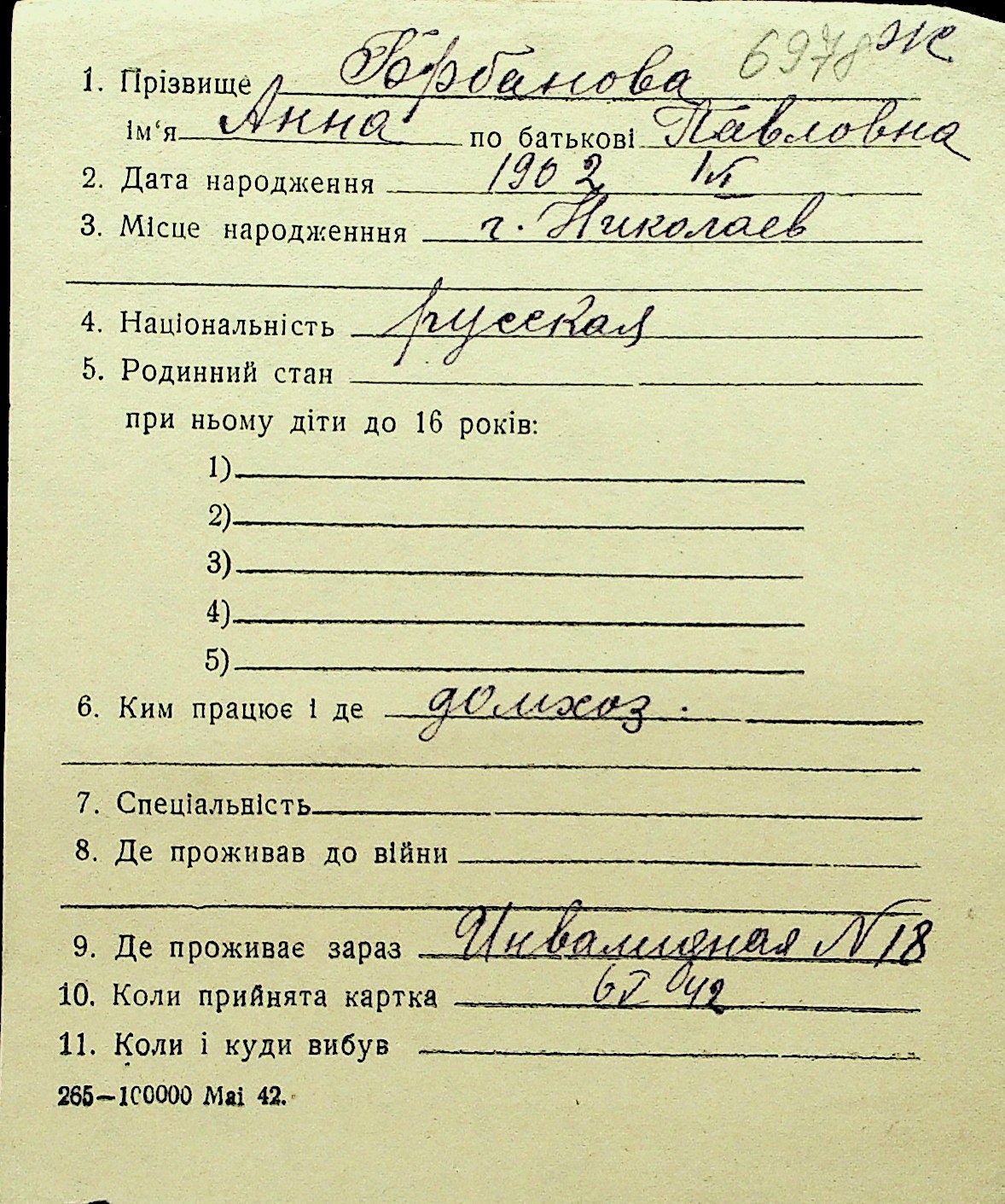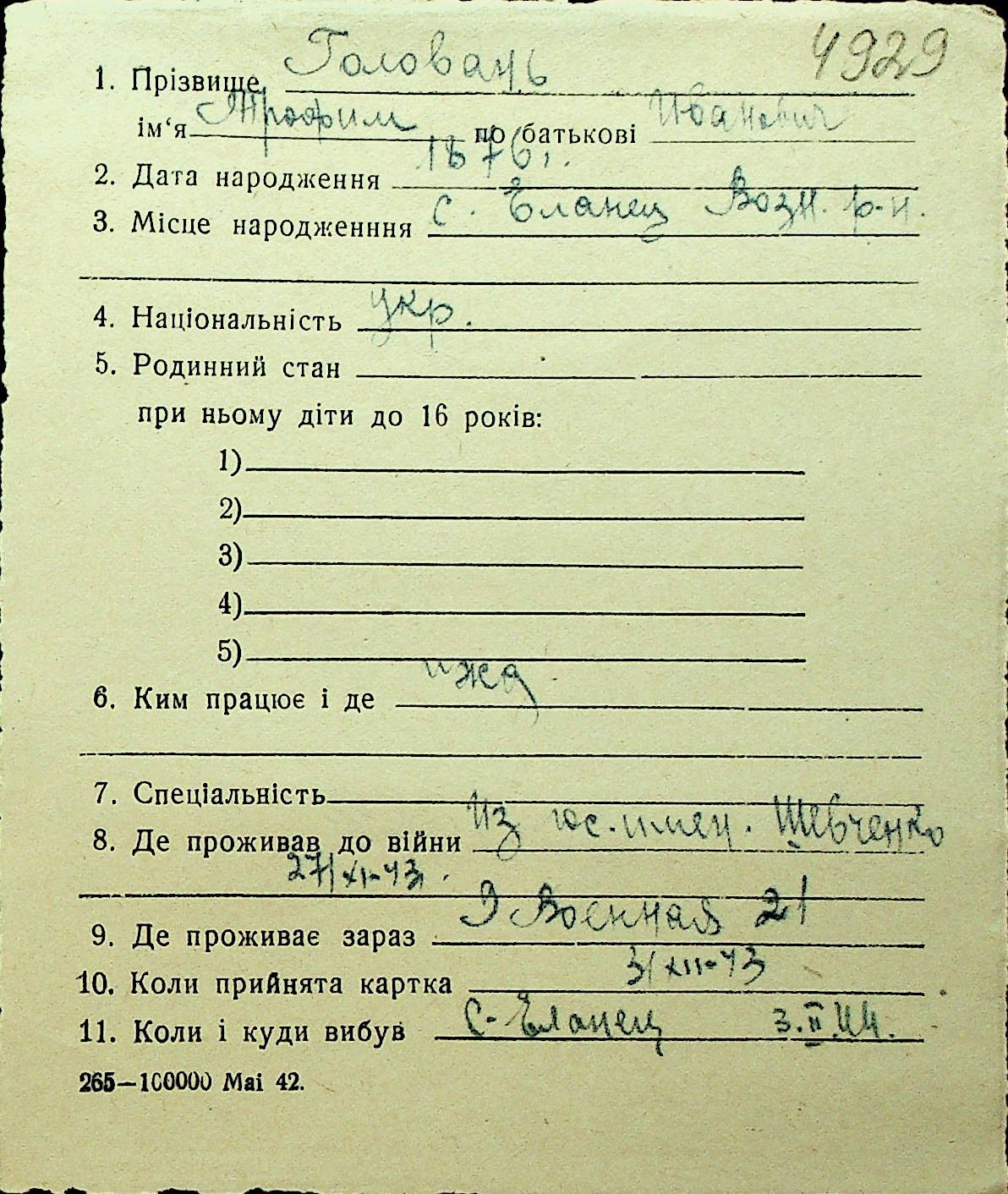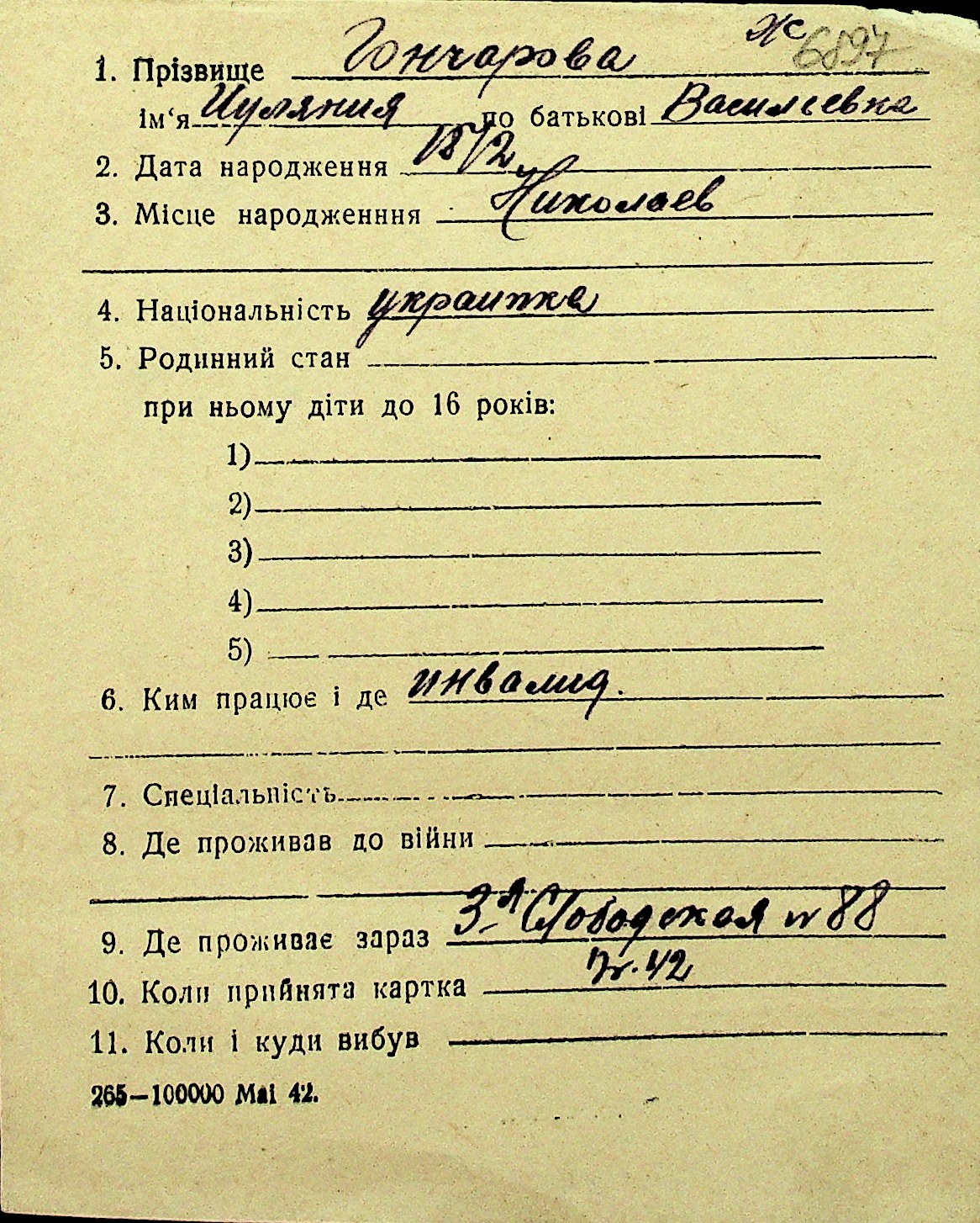 • • Перелік карток до фонду № Н-1016