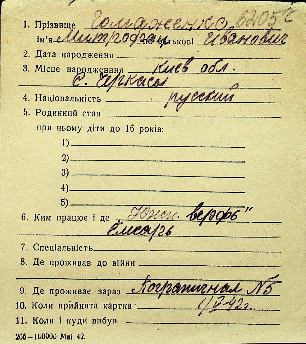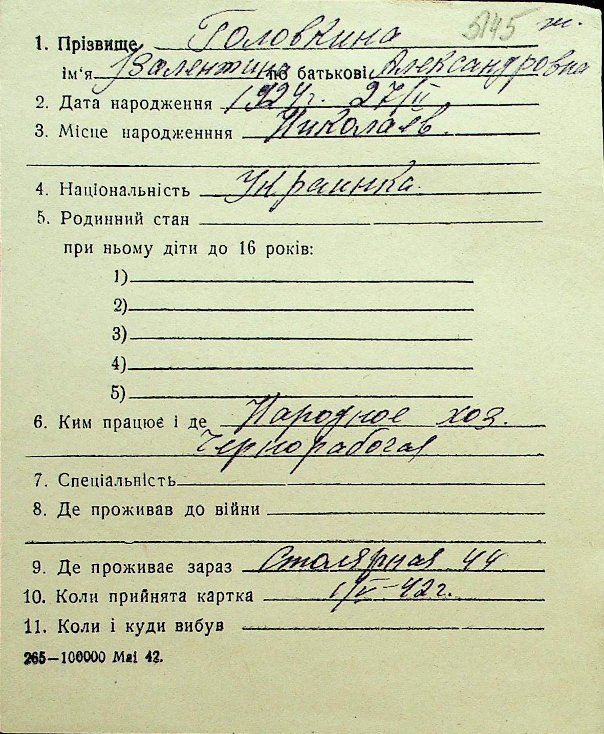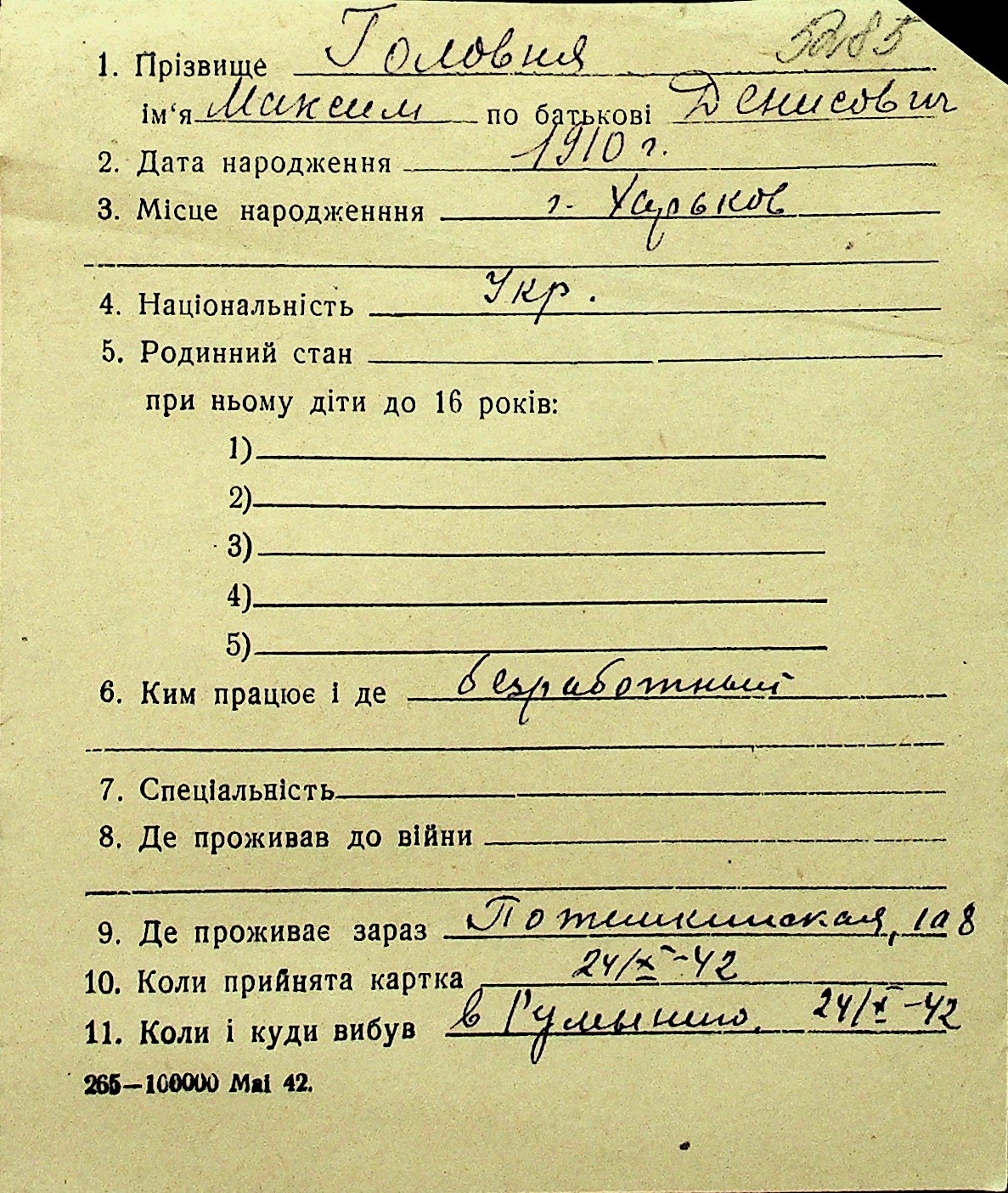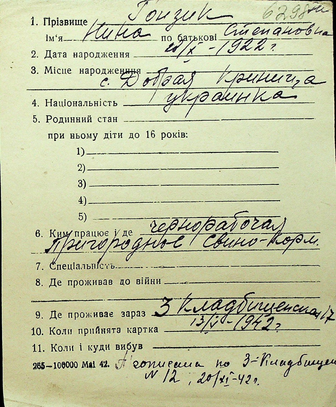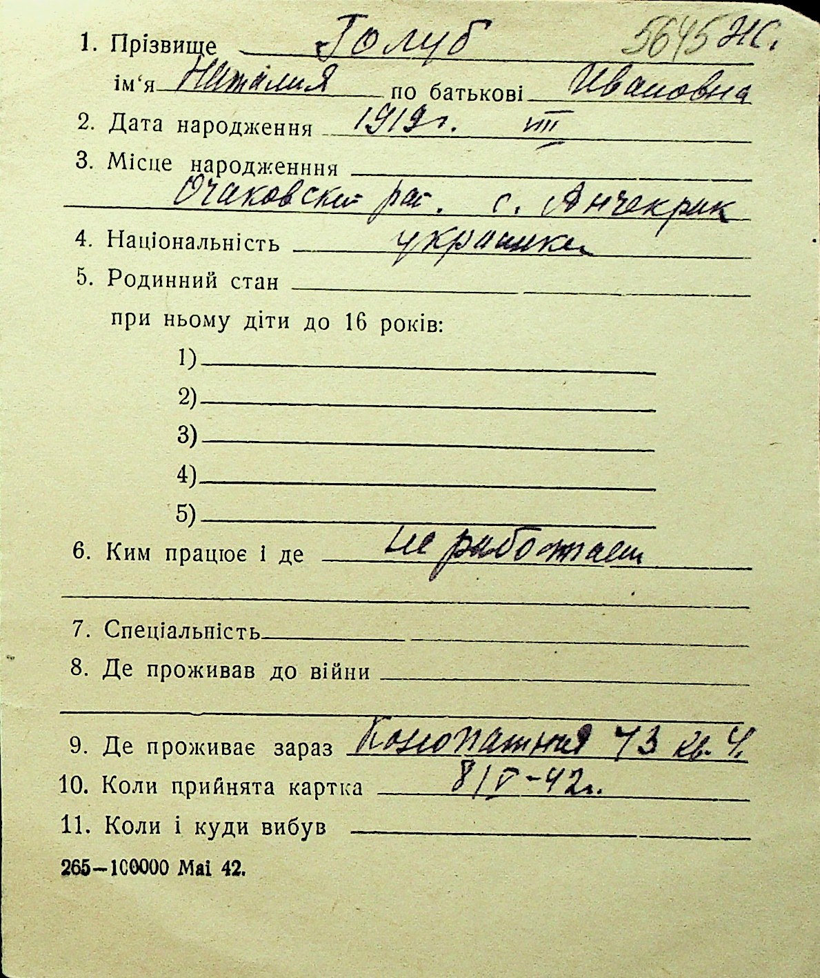 • • Перелік карток до фонду № Н-1016