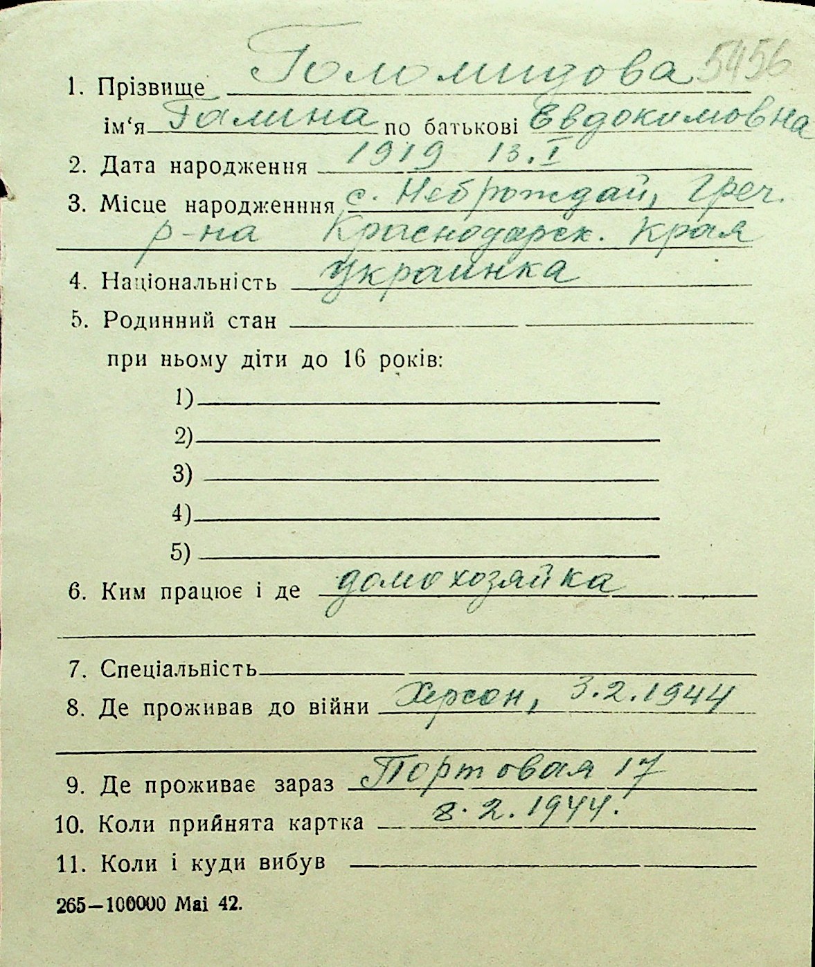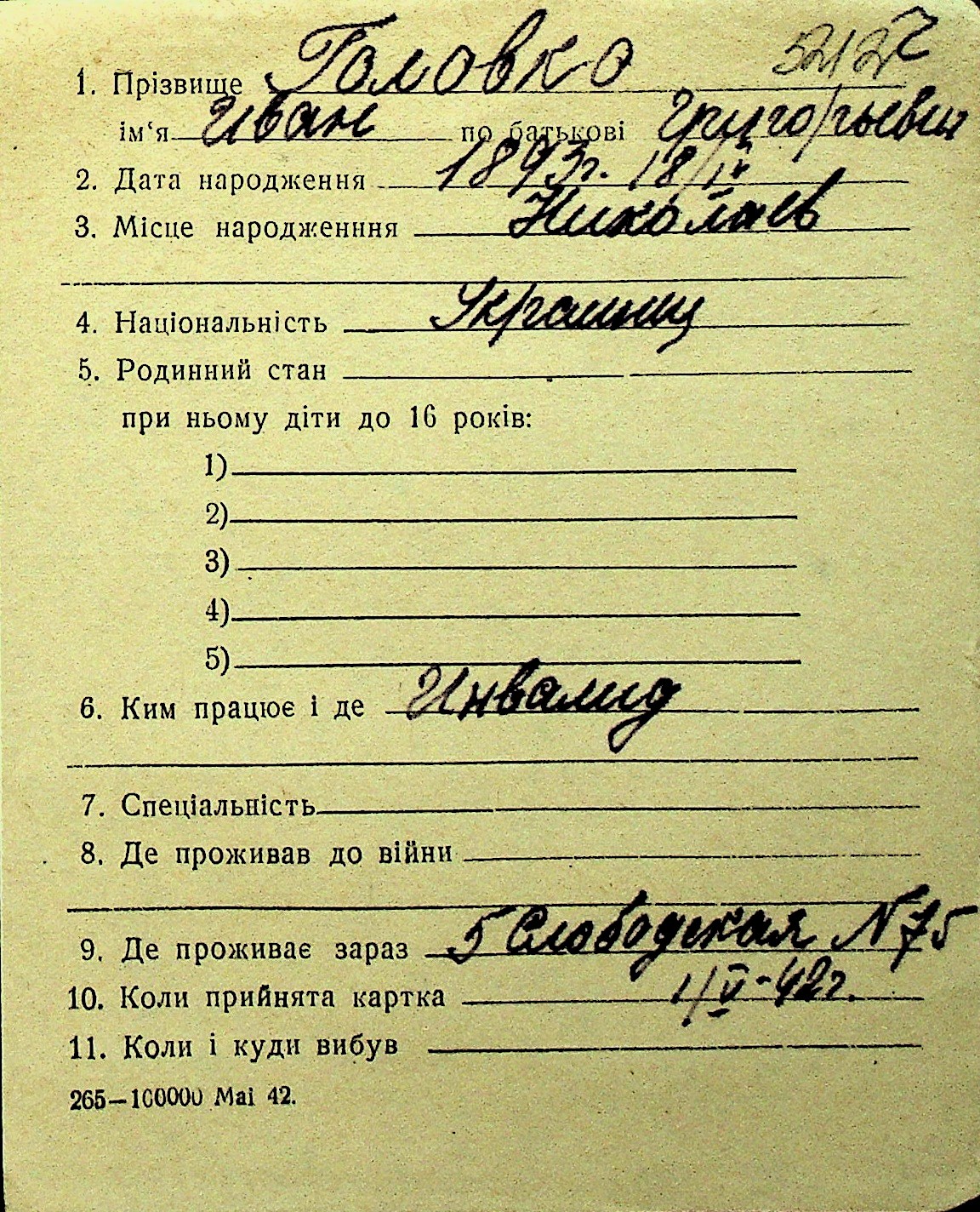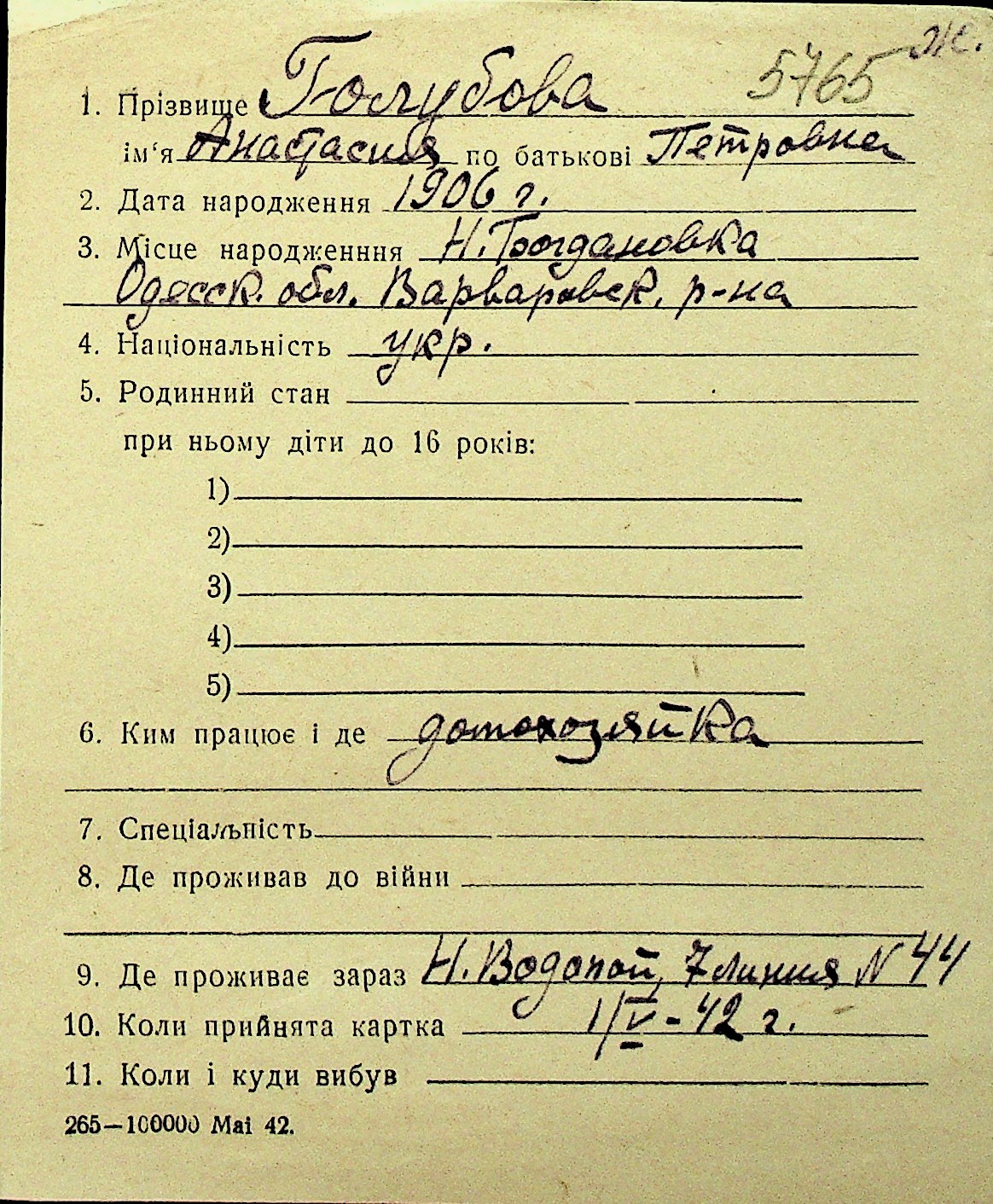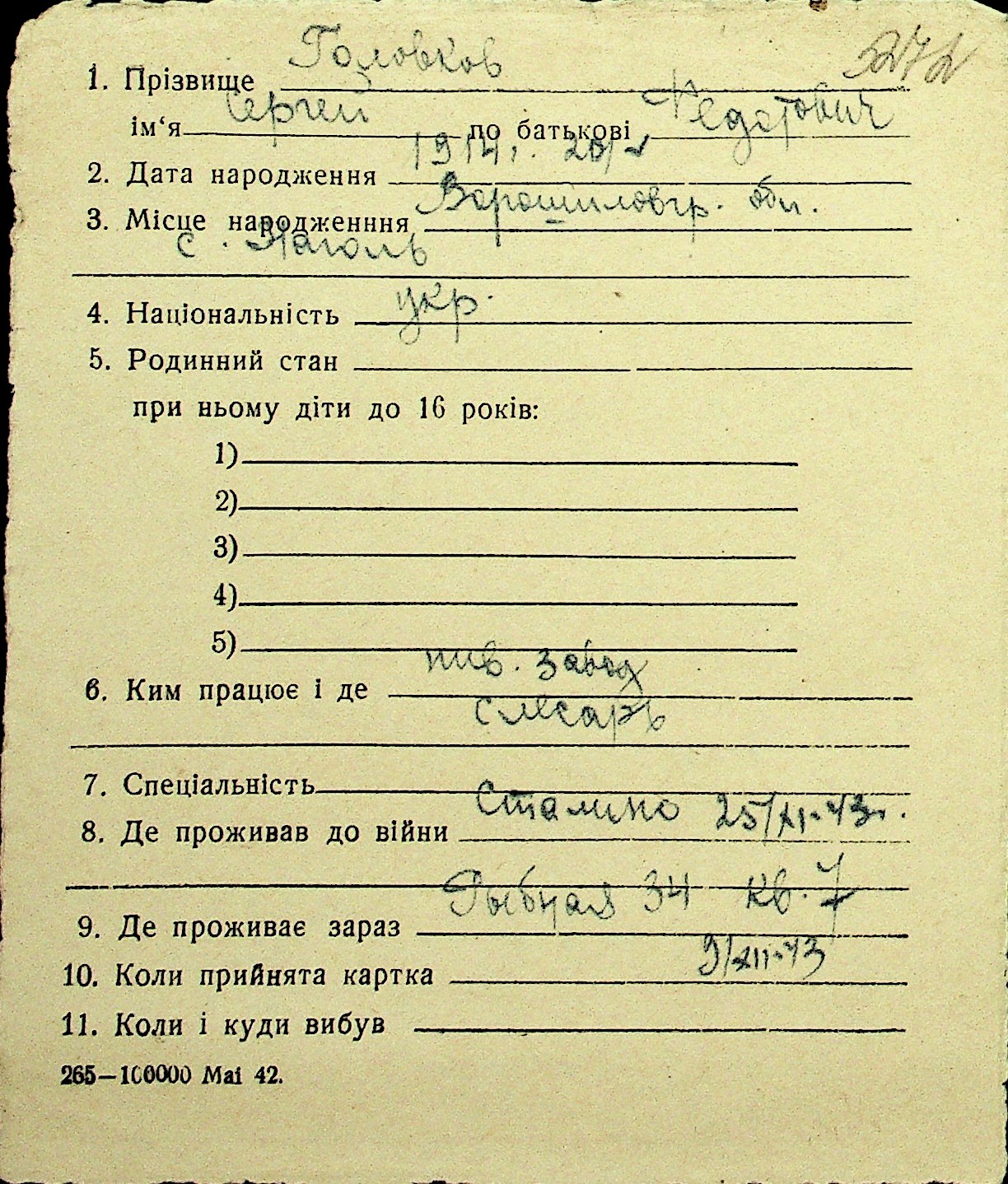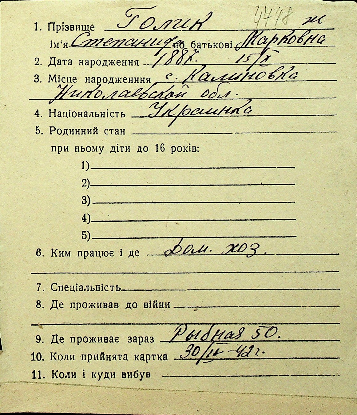 • • Перелік карток до фонду № Н-1016