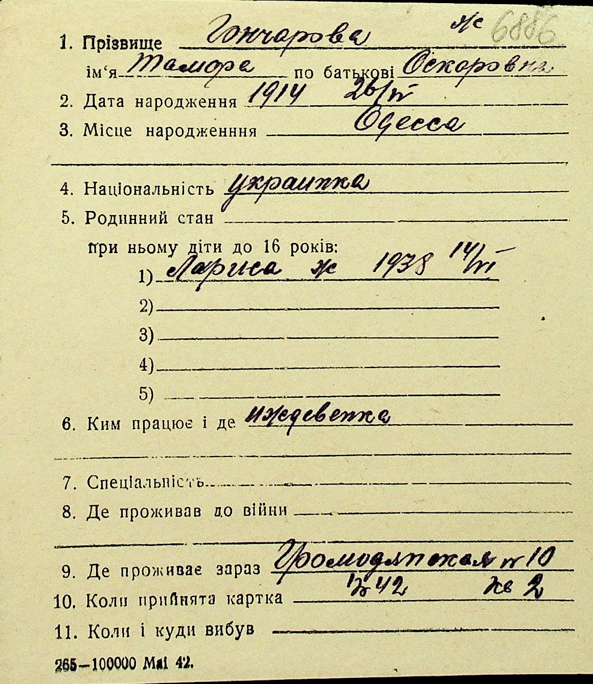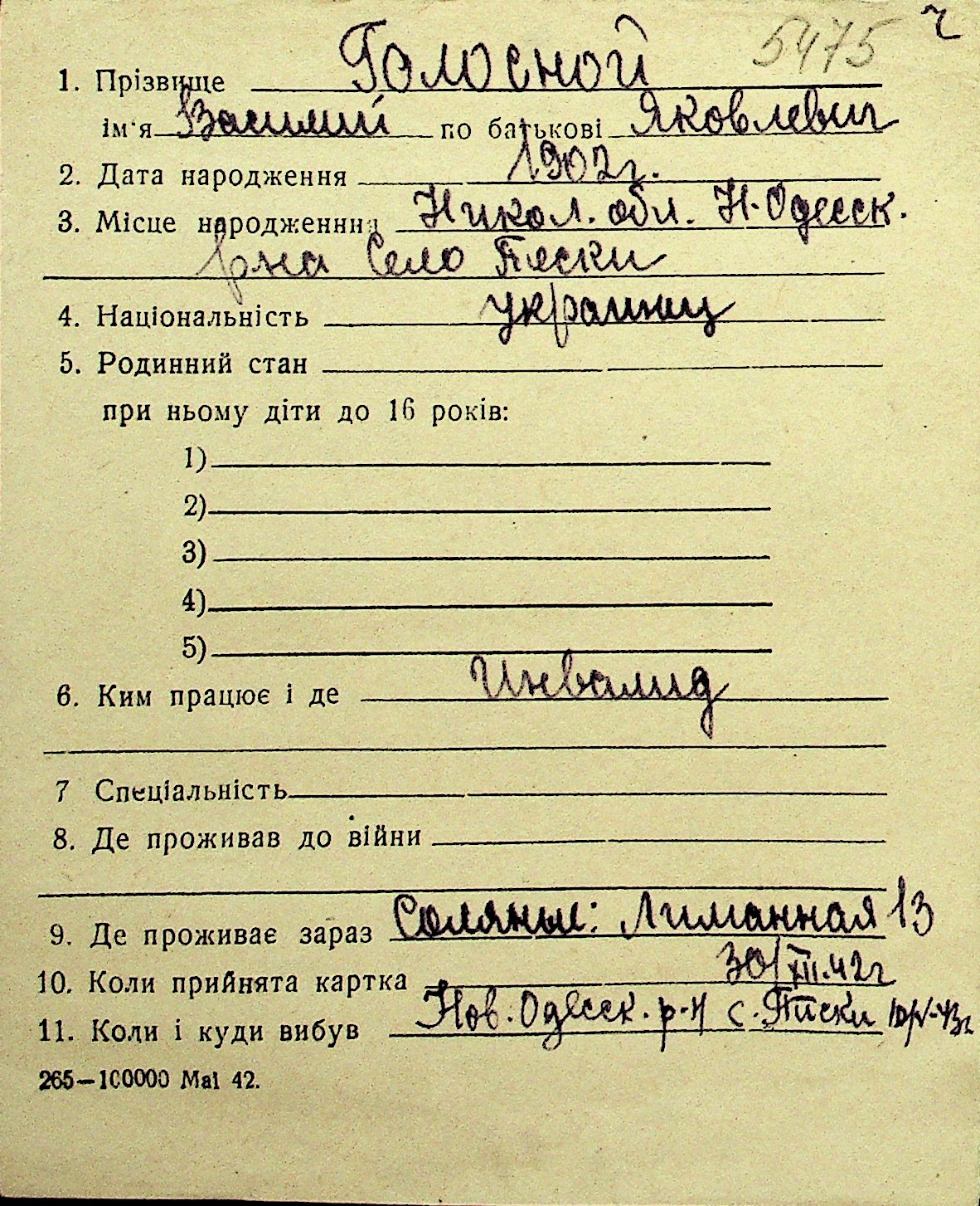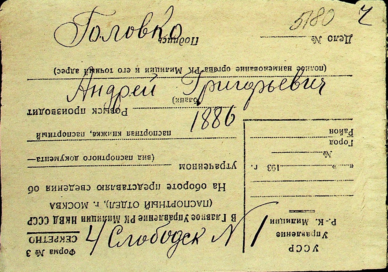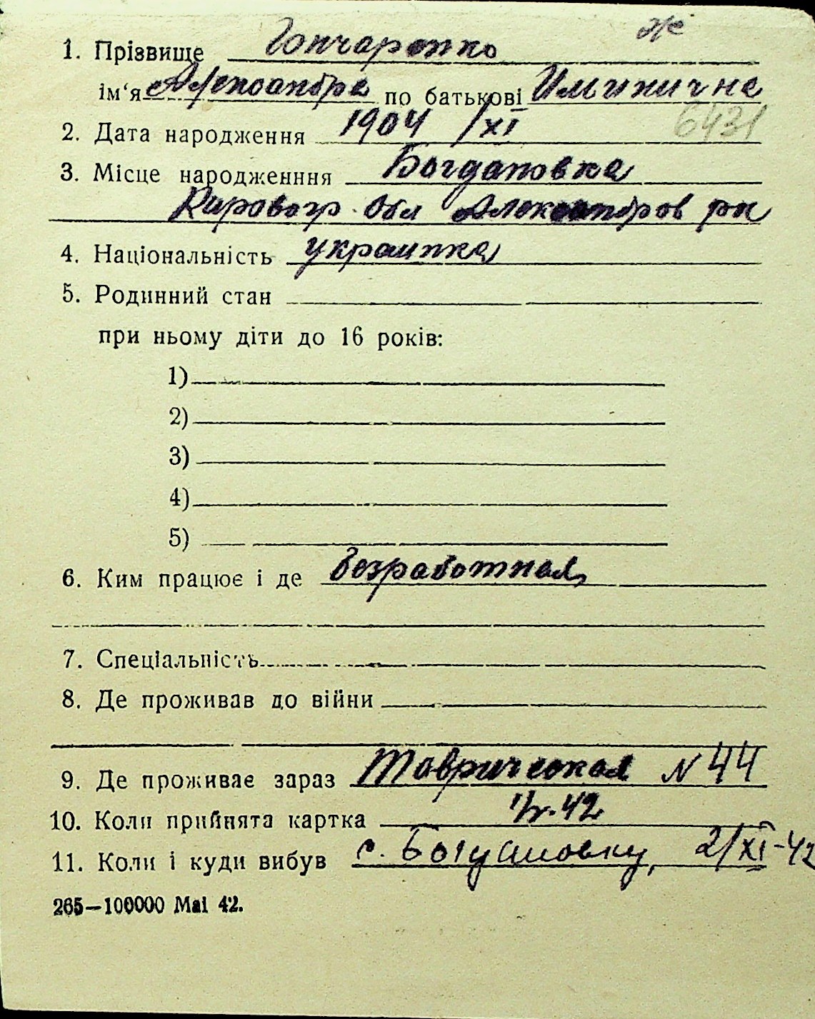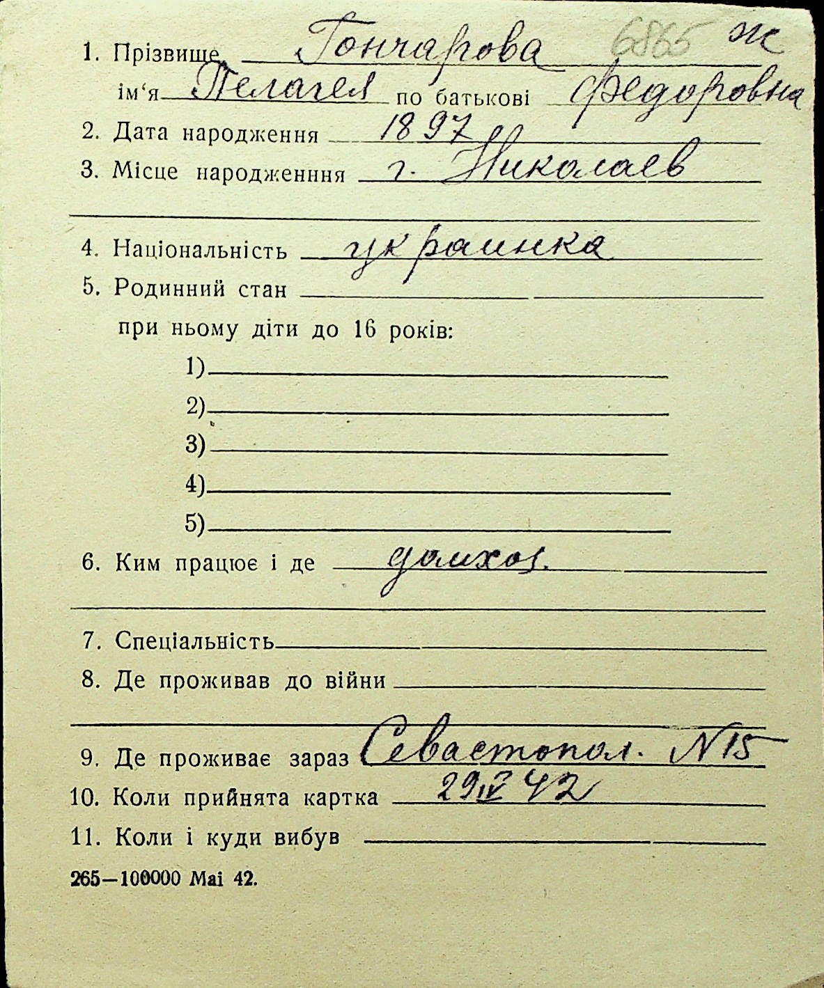 • • Перелік карток до фонду № Н-1016