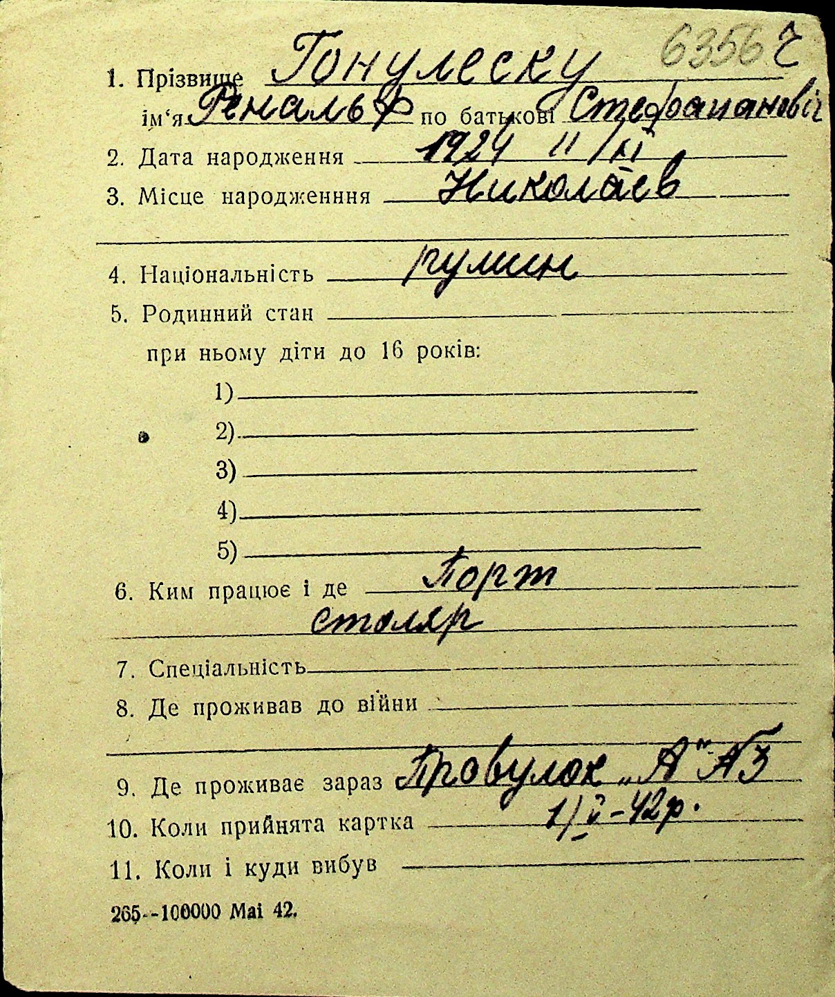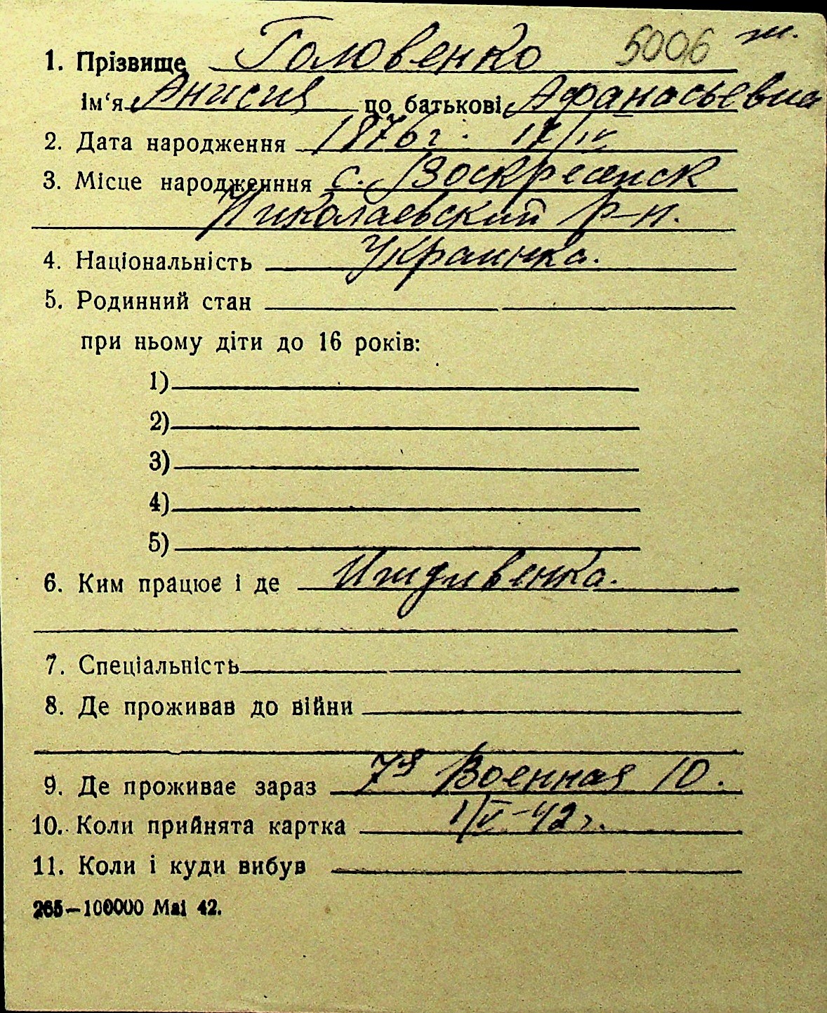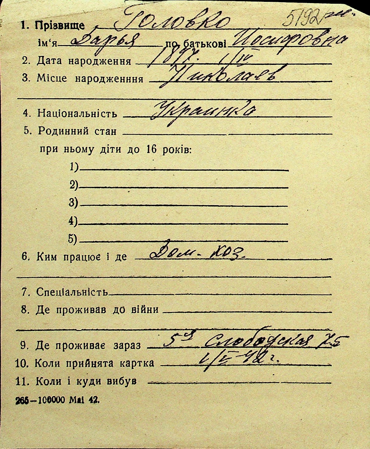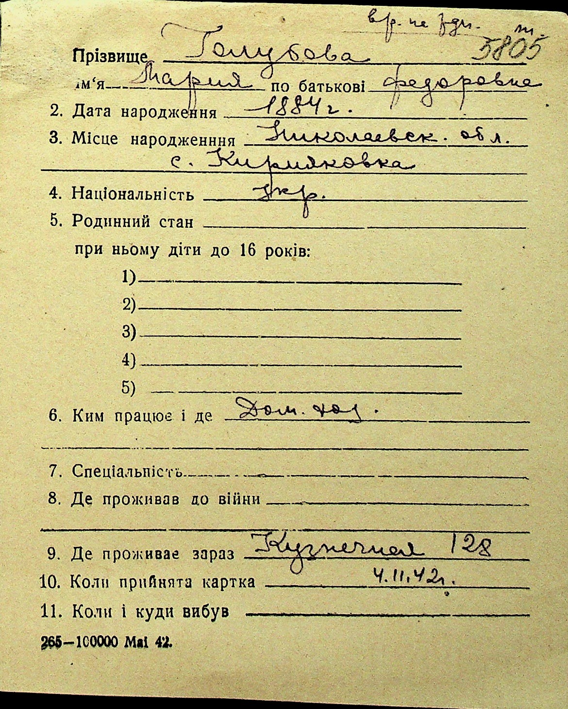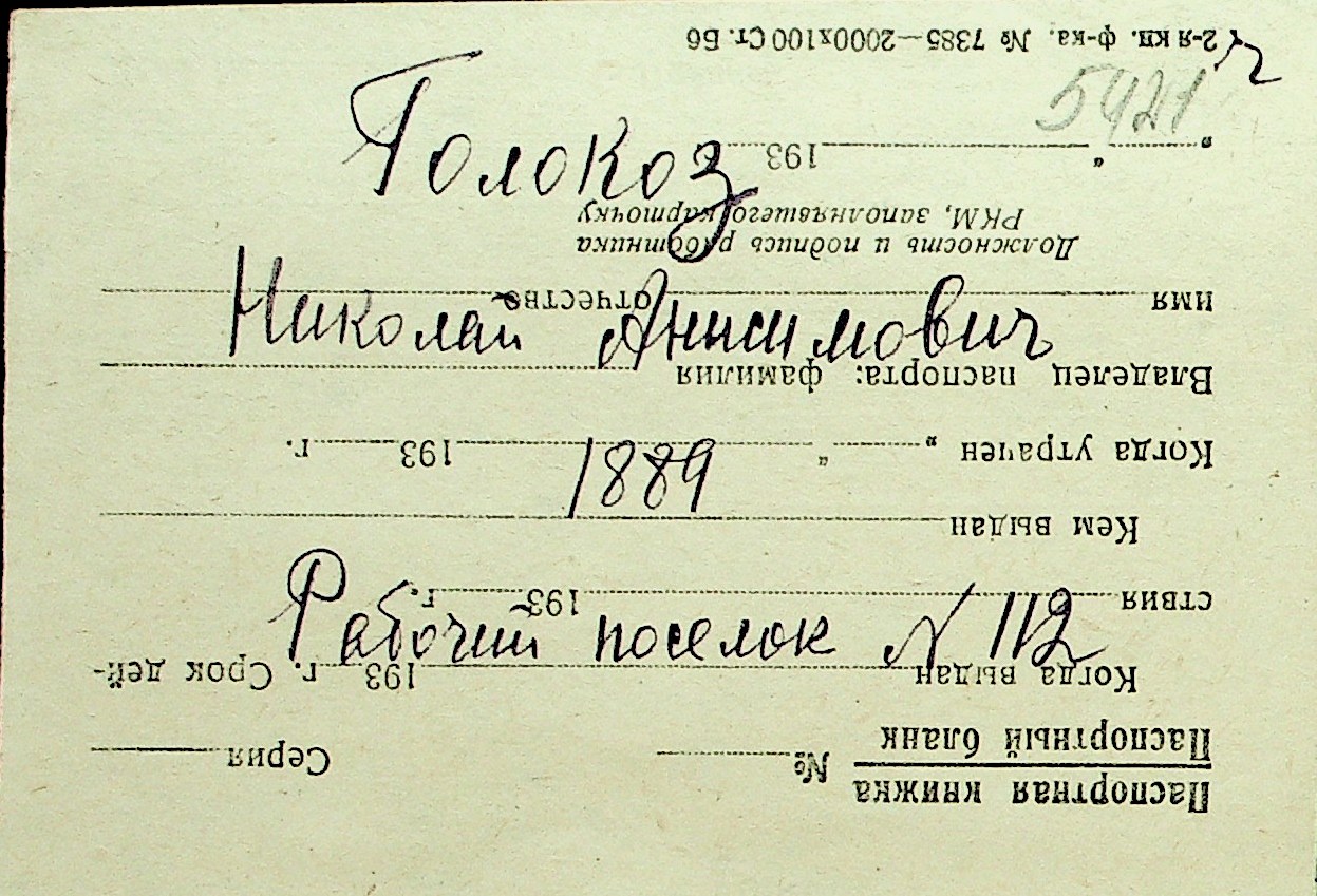 • • Перелік карток до фонду № Н-1016