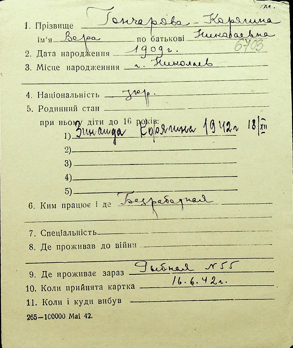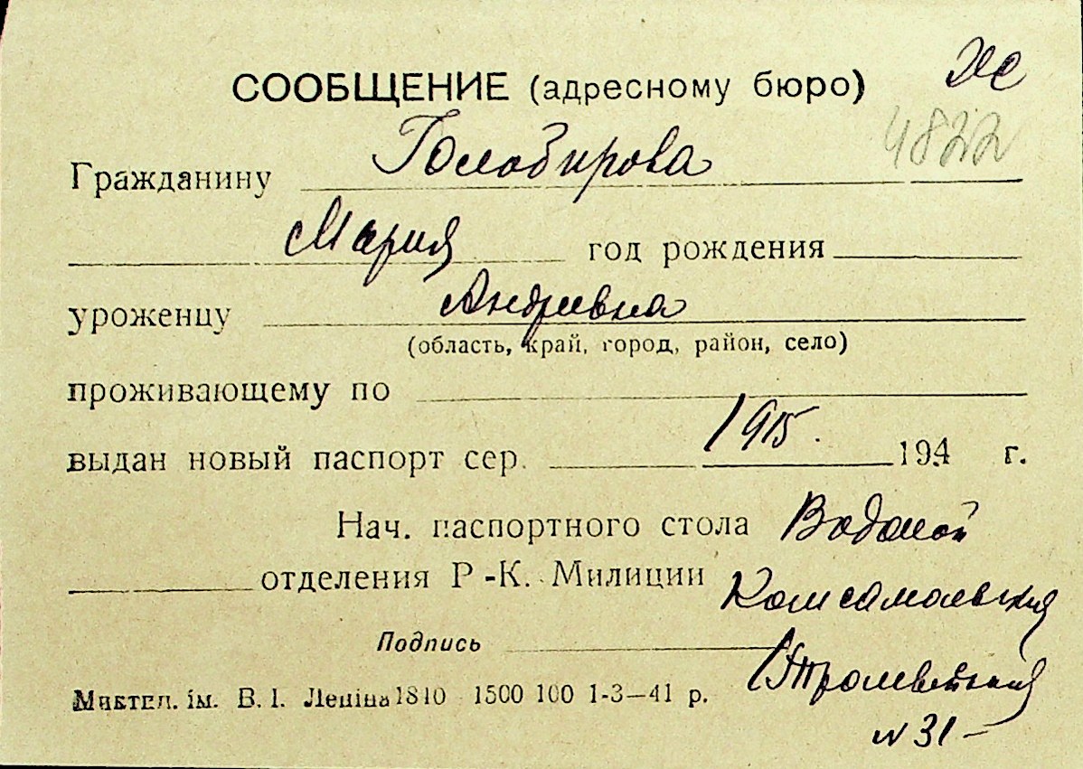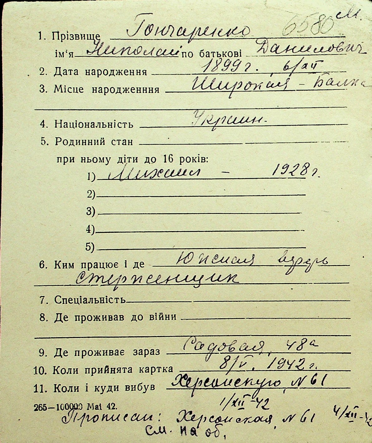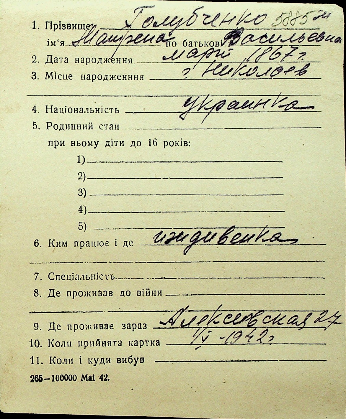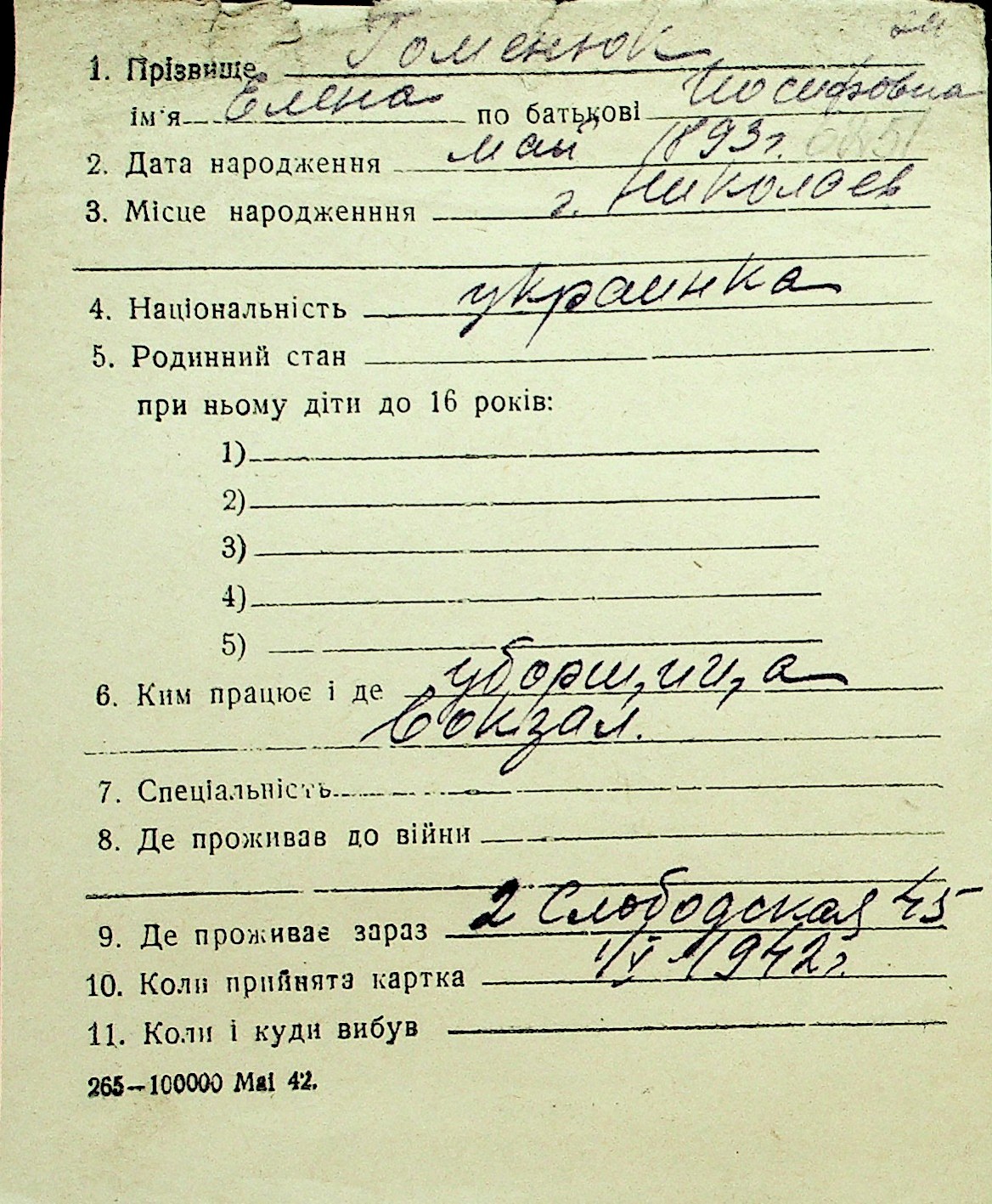 • • Перелік карток до фонду № Н-1016