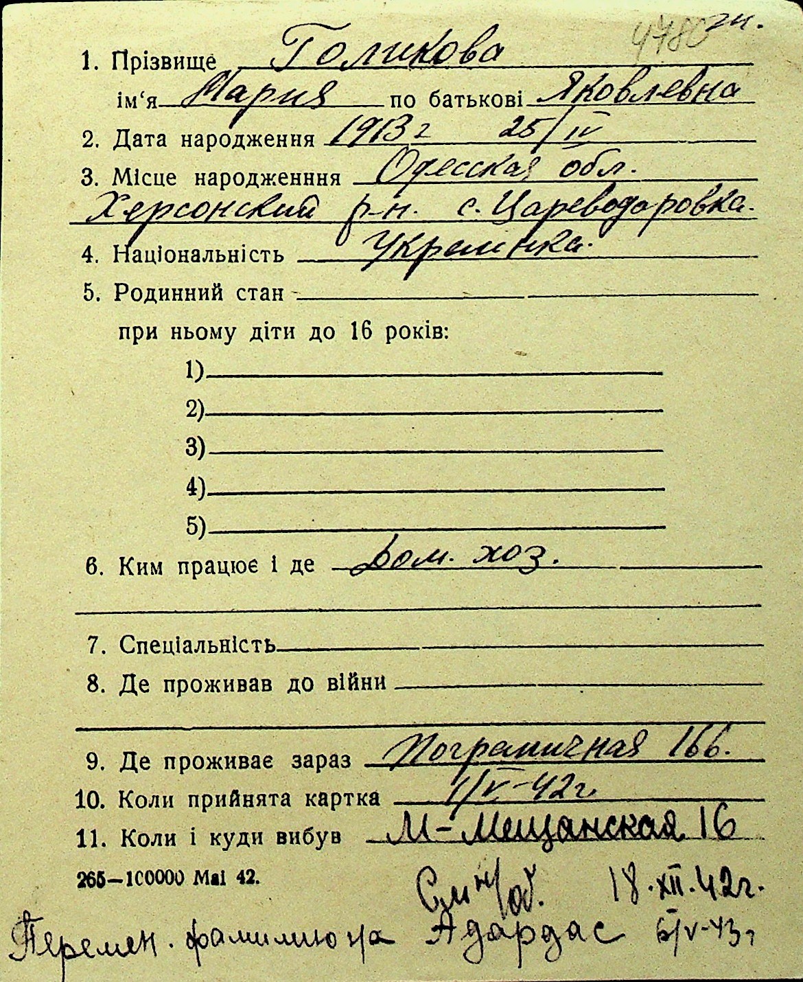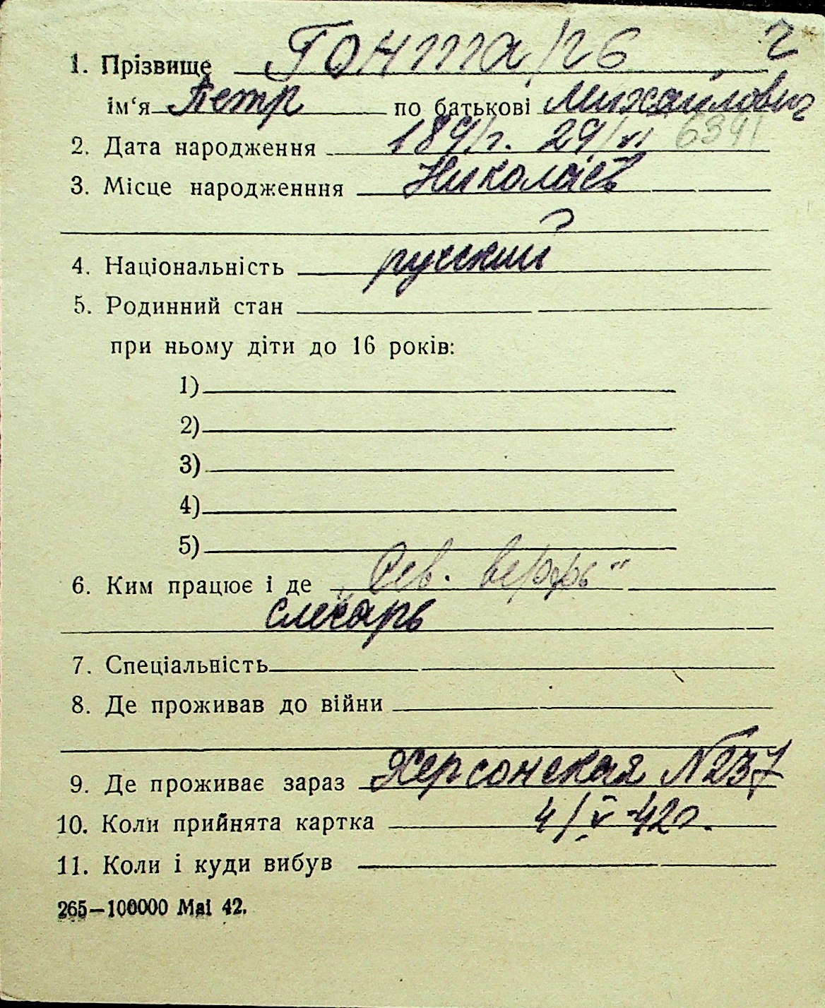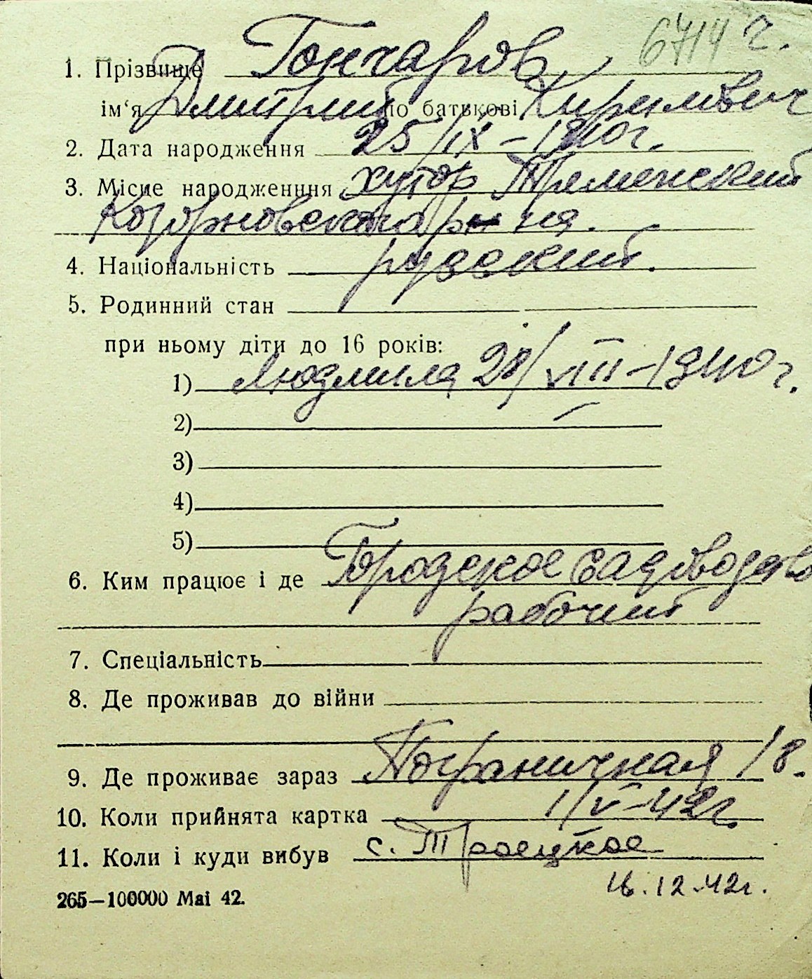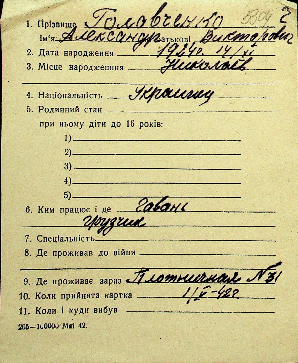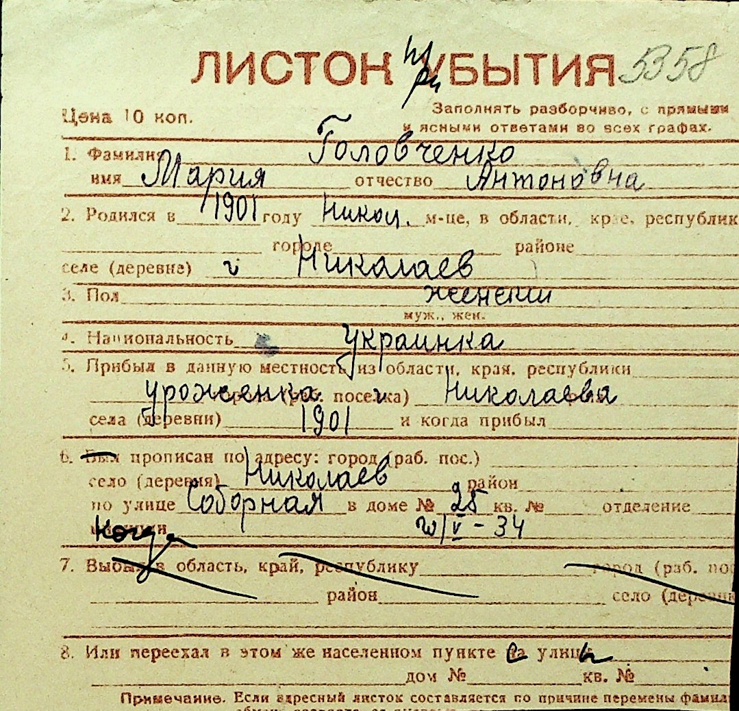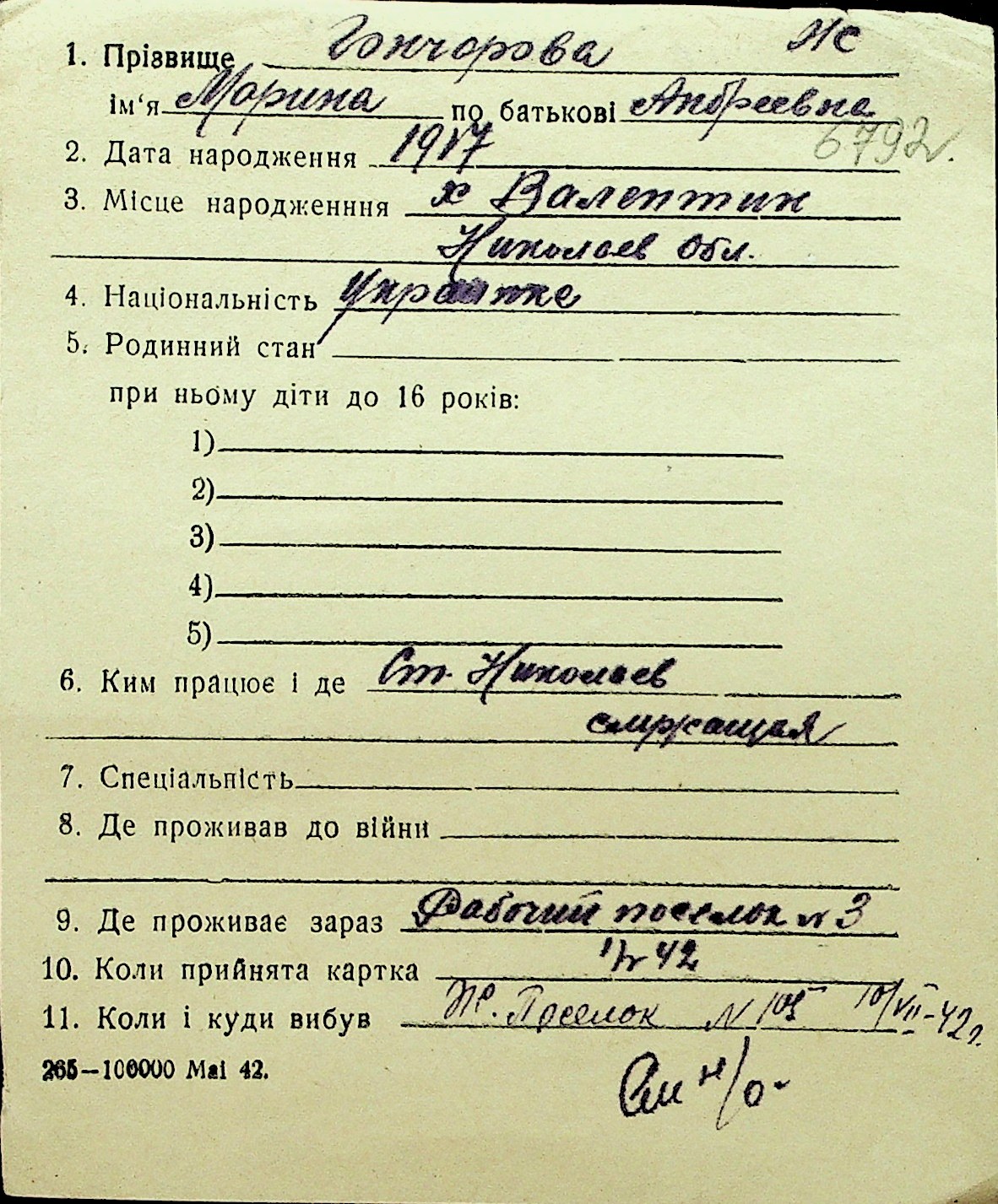 • • Перелік карток до фонду № Н-1016